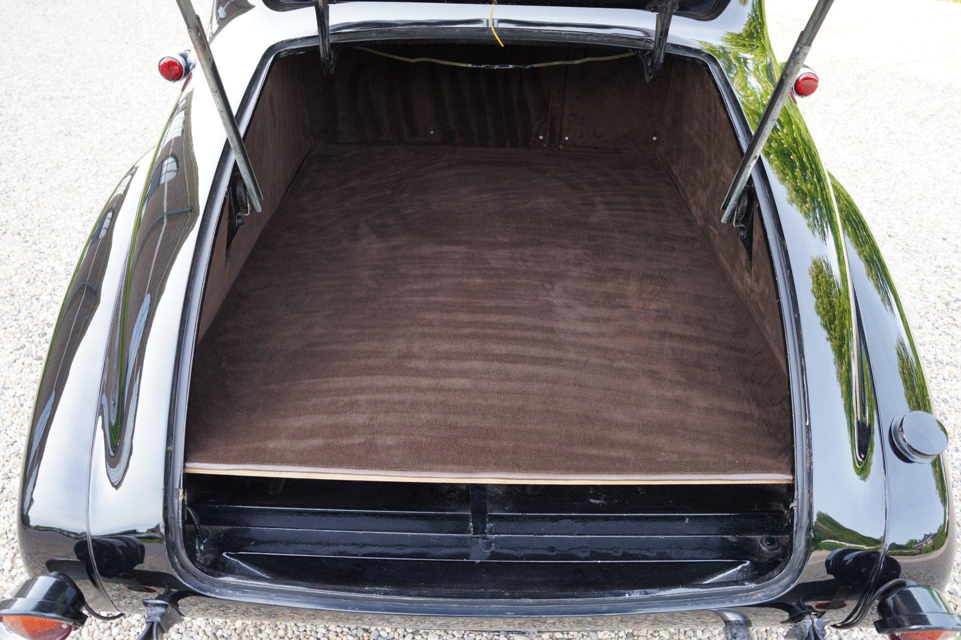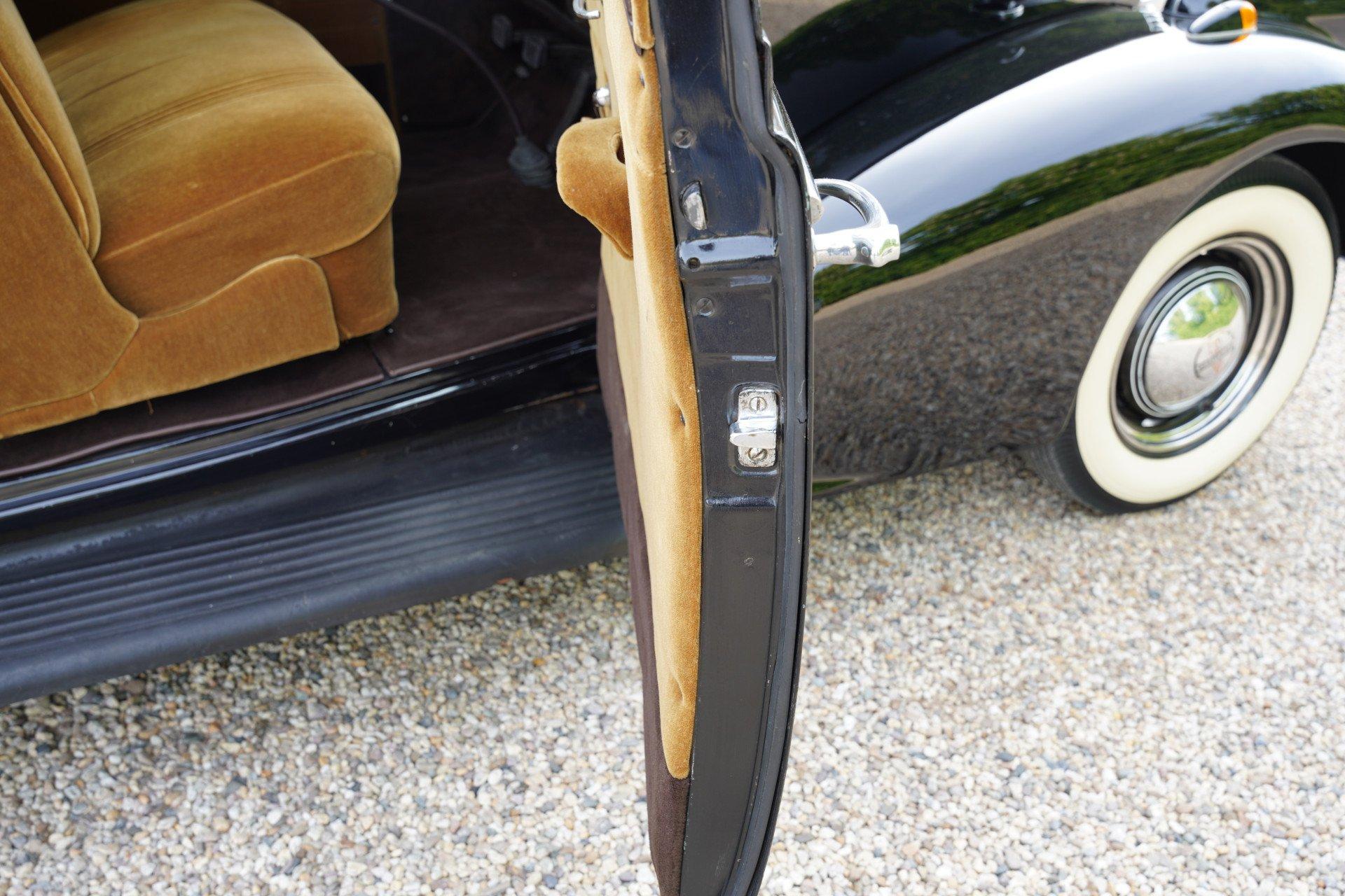 It wears factory color number one: classic black. A shade that suits it perfectly. That long hood, the sweeping fenders, the understated yet graceful chrome accents—it all comes together in a way that feels harmonious and true to its era. It's as if it just rolled off a 1938 film set.