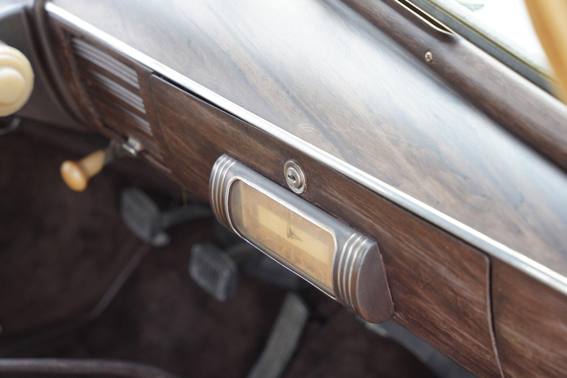 And then there are the details. Like the clock built into the glove compartment. The manual gearbox works just as it should. Under the hood lies a six-cylinder engine that was enlarged in 1937 to 3,770 cc. It produces around 95 horsepower, which might not sound like much today, but this Oldsmobile isn't about speed. It's about the experience.