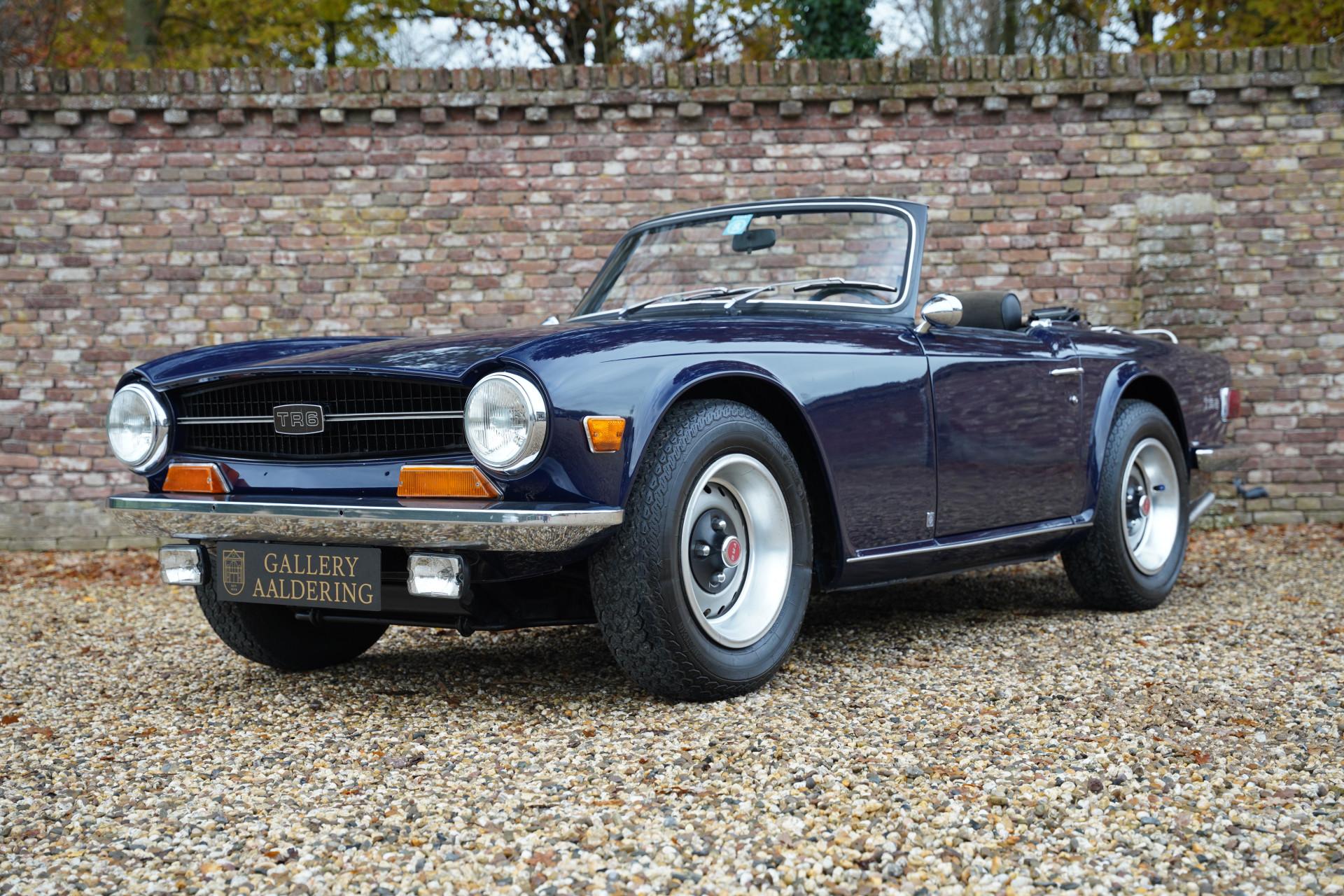 This tasteful navy blue TR has been in the Netherlands since 2001, has known three owners of which two owned the car each for over ten years. They were all enthusiasts who maintained the car with a lot f TLC. The Triumph is a proper drivers car, marrying sportiveness and pleasure in equal measures. The car has a great sounding 2.5 litre straight-six putting out 150 hp. The engine is coupled to a manual 4-speed with the popular overdrive option. The latter making distant trips as enjoyable as more sporty ventures out.