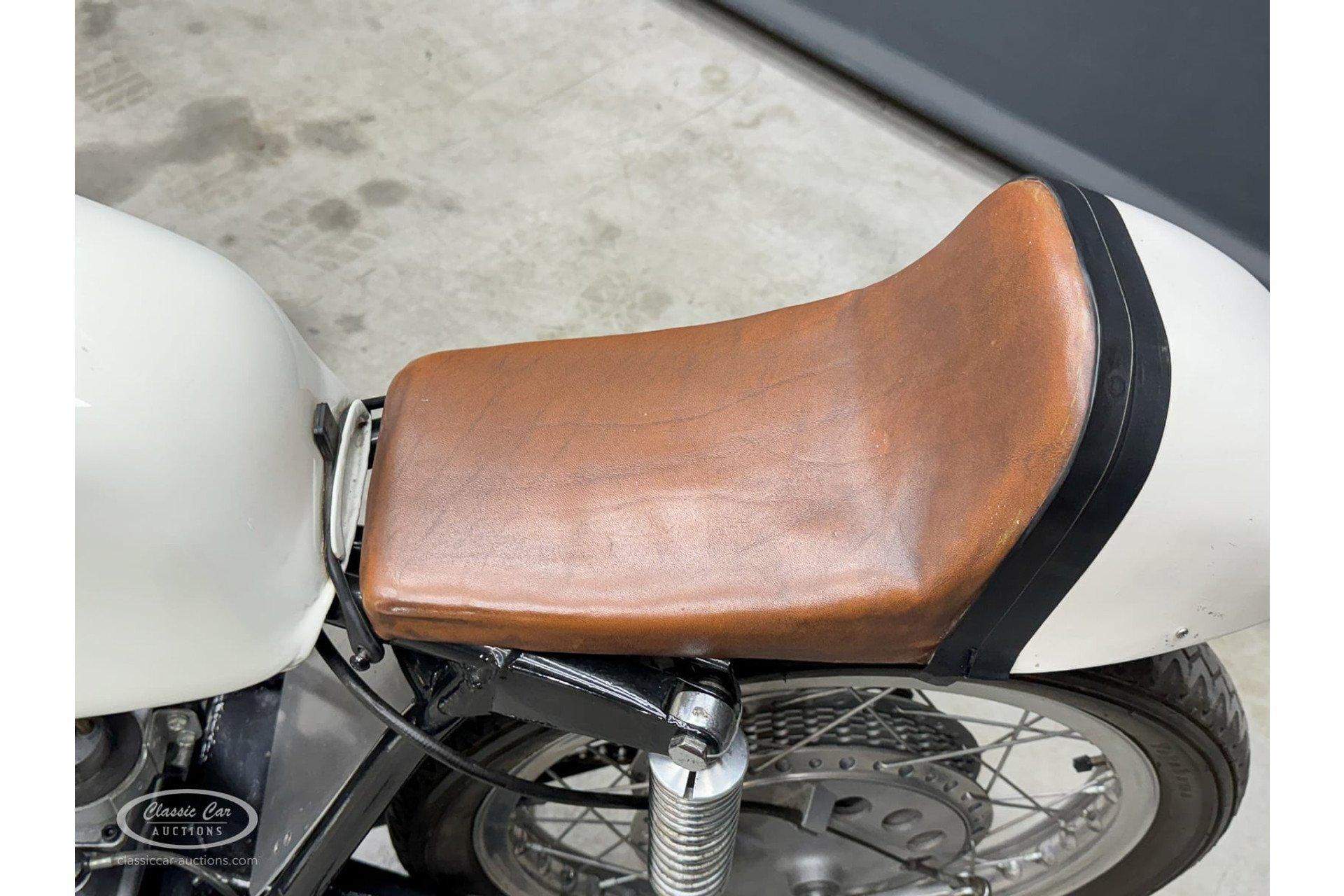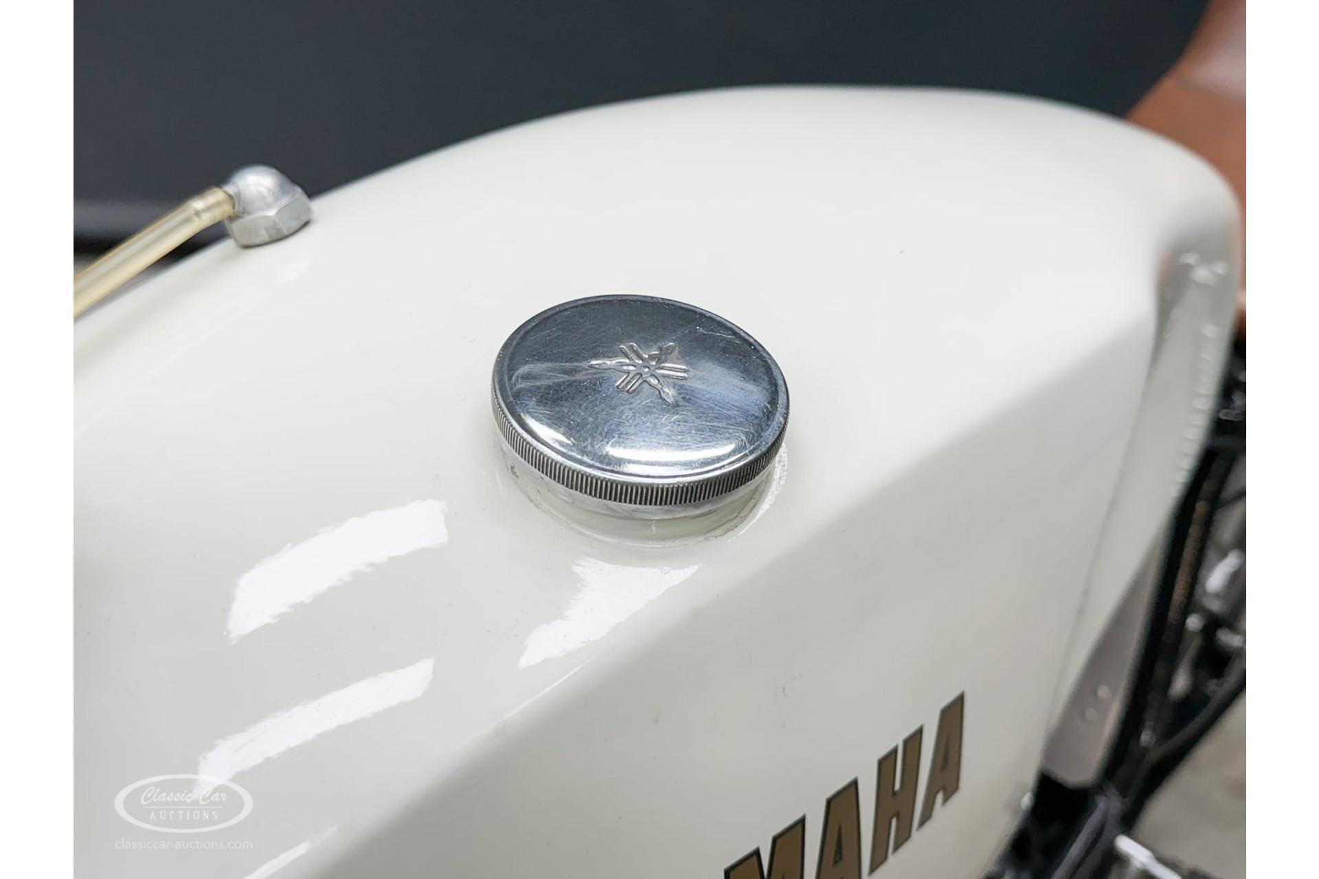 This example has been restored with an eye for historic detail, with features such as the beautifully designed fuel tank, leather tachometer mount and front brake with cooling air intake. This meticulous restoration makes this TD1-C one of the top restored race bikes both visually and technically. The combination of performance, durability and accessibility of parts through Yamaha dealers made this bike popular among private racers, resulting in numerous podium finishes in its time.