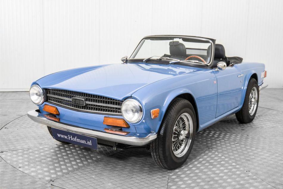 Last owner has owned the car since 2003. Recently fitted with new chrome rims with hubs and nuts. Equipped with twin SU carburettors and a stainless steel sports exhaust. Finished in the beautiful pastel colour Wedgewood Blue. Drives, runs and shifts perfectly . The Triumph TR6 is an iconic British roadster produced by Triumph Motor Company from 1968 to 1976. The model built on the technical basis of its predecessors (the TR4 and TR5), but was given a completely new look by German coachbuilder Karmann. The result: a classic-looking two-seater with muscular lines, sporty performance and a raw character perfectly suited to the 1970s. The TR6 stands out for its angular, muscular design with a low nose, wide wheel arches and a short butt. The classic steel wheels or optional wire wheels give the model its distinctive oldskool charm. The chrome bumpers, small grille and open hood make it a real summer eye-catcher. The interior exudes British sportiness: a wooden dashboard with classic Smiths clocks, a three-spoke sports steering wheel, leather upholstery and a minimalist but functional character. The driving feel is involving, raw and direct, with a soundtrack that growls delightfully thanks to the six-cylinder engine. The Triumph TR6 is one of the last true British roadsters of the classic era. A characterful classic that is ideal for the enthusiast who loves mechanical driving, open air, and a good dose of nostalgia. Those who maintain it properly will get a faithful companion with charisma in return.