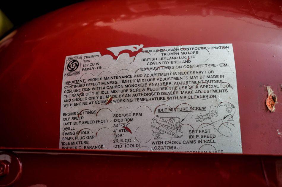 This is a very cool and very original Triumph TR6! This example was built in December 1973 and registered in the US state of California shortly afterwards. Thanks to the favourable warm and dry climate in which this TR6 spent over 40 years, the overall condition has remained remarkably solid, both bodywork and chassis are both hard and unwelded! The previous owner ensured that the technology was well maintained but also renewed various items such as the soft top and seat covers in the recent past. The tough bodywork has a tight fit. Tyres with a narrow 'red wall' are fitted on the original steel wheels, as they should be. Under the long bonnet lies the powerful 6-cylinder engine, which runs beautifully and produces a beautiful sound. The TR6 also runs and drives well. The American registration title is present as well as the import documents, we have already paid the import taxes.