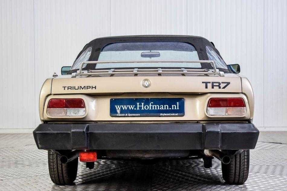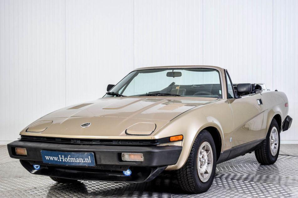 Californië import, in 1995 omgebouwd met Rover SD 1 V8 motor met 5 bak, met specificatie's zoals de originele TR8 V8 geleverd door Triumph. Besloten werd om de 8 cilinder V motor van Rover in de TR 7 te bouwen. Hiermee was in de ontwerpfase al rekening gehouden zodat er geen technische belemmeringen waren. De auto werd TR 8 ]genoemd en is alleen in de Verenigde Staten verkocht. Productieaantal van 1979 tot 1981: 2.722 stuks. The TR8 did not use Triumph's own single overhead cam V8 as found in the Stag due to its weight and service record but instead shared its Rover V8 engine with the Rover SD1. The engine itself was derived from an early 1960s Buick/Oldsmobile all-aluminum V8 215 cu in (3.52 L) that Rover acquired from General Motors in the mid-60s. History has shown this engine to be an extremely reliable, flexible, and robust powerplant, especially after BL developed a better manufacturing process. TR8s were initially fitted with twin Zenith-Stromberg carburetors. However, about 400 1980 models sold in California, all 1981 models---of which only 352 were produced including twenty carbed cars for the UK market---and all 1982 models (of which all seventy went to Canada featured a Bosch L-jetronic fuel injection system with a specially designed Lucas fuel injection computer (ECU). The carburetor model was rated at 133 bhp (99 kW; 135 PS) (at around 5000 rpm) and the fuel injected at either 137 or possibly 148 bhp[12] delivering 0-60 mph times in the low 8 seconds. Other differences between the TR8 and TR7 are upgraded brakes, revised axle ratio (3.08:1 on the TR8 and all automatic TR7s), battery moved to the trunk (boot), alloy wheels, leather steering wheel and a few minor trim changes.