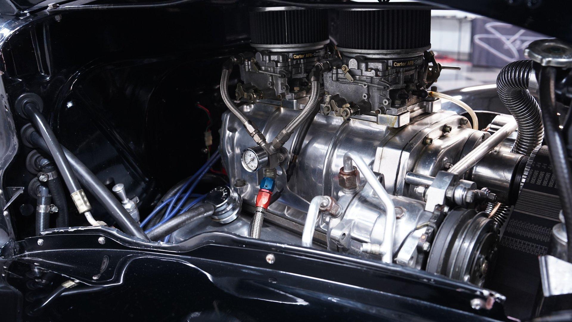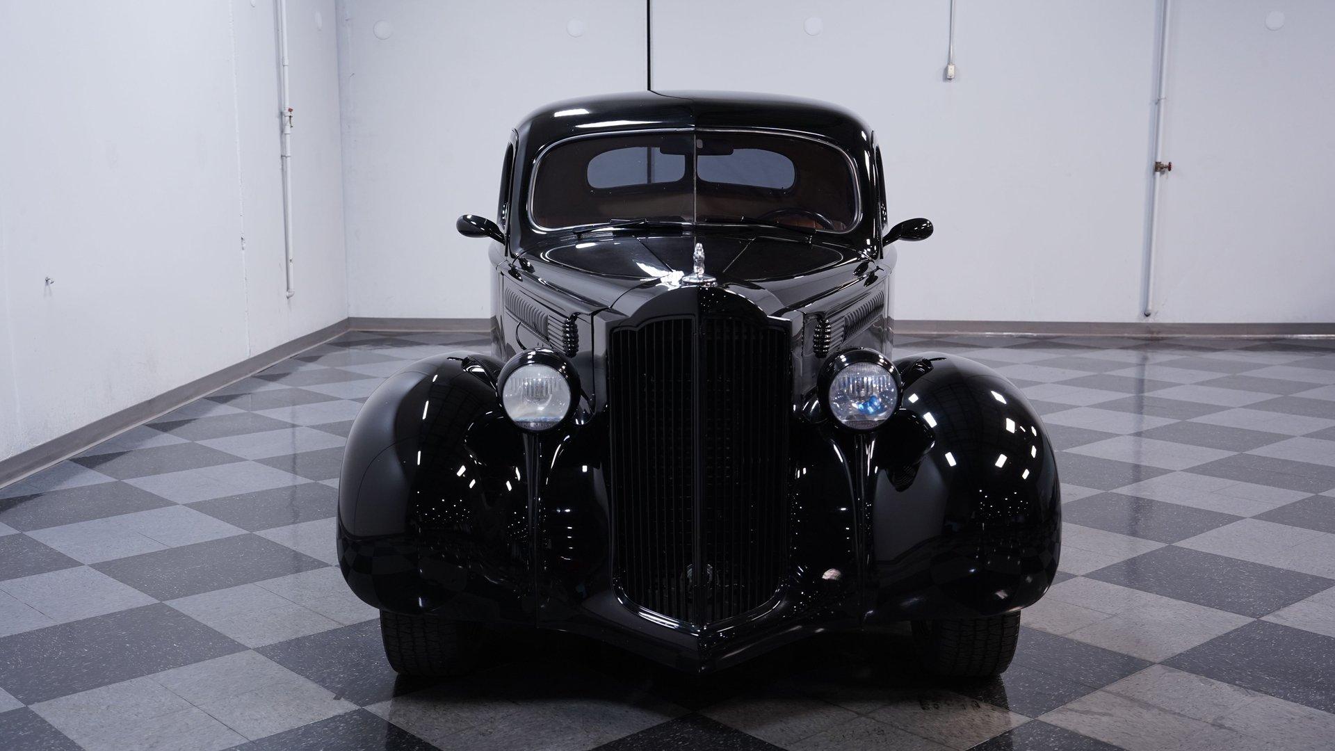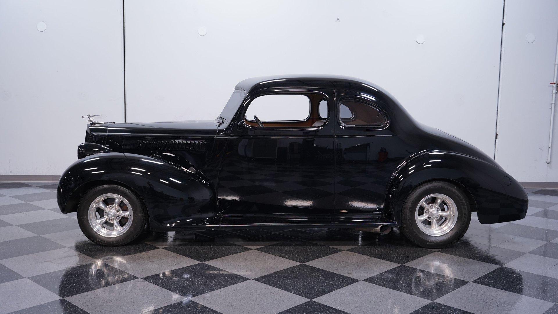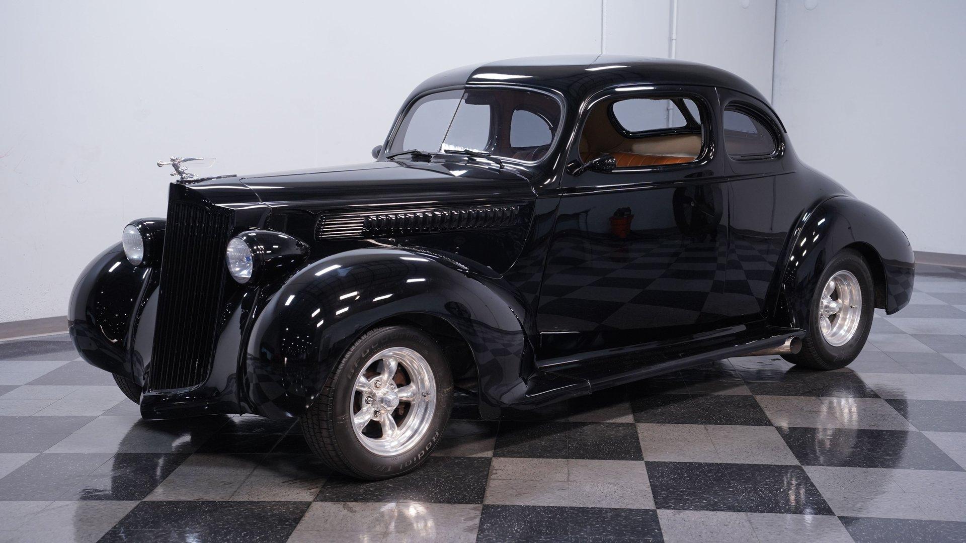 Take a sharp-looking, pre-war classic, combine it with some tastefully aggressive exterior modifications, then add in supercharged big block power, and you can't help but have yourself the prescription for a truly awesome ride! It's a prescription that was closely followed when building this 1939 Packard 120 Pro Street. With its high-impact black paint draped over the front grille, its deleted bumpers, and shaved door handles, this is a truly awesome finished result that's sure to impress, even before you fire it up, tap on the accelerator, and witness the top-level power at your disposal. Flush-mounted taillights and a third brake light add to its signature look from the back while offering an added measure of safety, and the painted trim surrounding the cockpit windows really looks great. Inside the doors, the tan, vinyl-clad split bench seat provides plenty of comfort for even longer journeys and, along with the matching door panels, creates a very effective visual contrast to the black painted dash area, where you'll find an assembly of clear aftermarket gauges inside the instrument cluster. Unlike many of the offerings in its segment, this '39 sports some welcome convenience features in the form of power windows, a remote-opening trunk, and cruise control. While the air conditioning system will need a bit of attention to get back online, all the components are in place, so this should be a pretty minor fix. There's also a Kenwood AM/FM stereo with Bluetooth connectivity on board, so you won't run out of audio options anytime soon. The builder of this Packard obviously subscribed to the notion that "there's no replacement for displacement," but then even ratcheted things up a notch from there. You'll find an expansive 454-cubic-inch V8 lurking inside a well-maintained compartment. Fed by a pair of Carter carburetors and enhanced by a Littlefield supercharger, it goes without saying that this powerplant can liquify tires with very little effort. The engine exhales into a pair of headers leading to a dual side-exit exhaust and pairs with a 3-speed automatic TH400 shifting at the top of its game. Power steering makes this cruiser easy to navigate, while four-wheel power disc brakes bring it to a stop quickly. And, with both front and rear aftermarket suspensions added to the mix, you'll enjoy a more refined ride than you'd normally expect, with minimal body roll around corners. HIGHLIGHTS 454-CUBIC-INCH V8 LITTLEFIELD BLOWER DUAL 4-BARREL CARTER CARBURETORS 3-SPEED AUTOMATIC TH400 TRANSMISSION LONG TUBE HEADERS DUAL SIDE EXIT EXHAUST POWER STEERING 4-WHEEL POWER DISC BRAKES AFTERMARKET SUSPENSION AT BOTH ENDS 15" TORQ THRUST WHEELS TAN VINYL UPHOLSTERY SPLIT BENCH SEAT GRANT STEERING WHEEL AIR CONDITIONING KENWOOD AM/FM STEREO WITH BLUETOOTH CONNECTIVITY A great-looking classic with a tastefully foreboding presence, this 1939 Packard 120 Pro Street scorches the asphalt on a set of 15" Torq Thrust wheels and packs enough punch to put a smile on the face of even the most power-hungry driver. Call today!