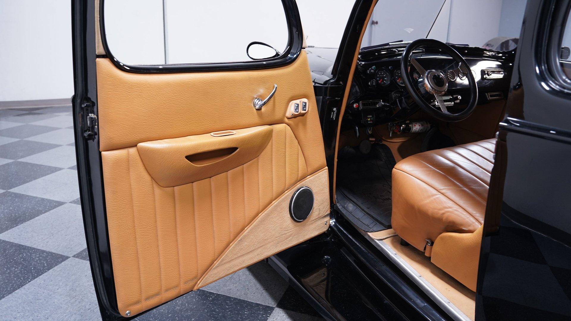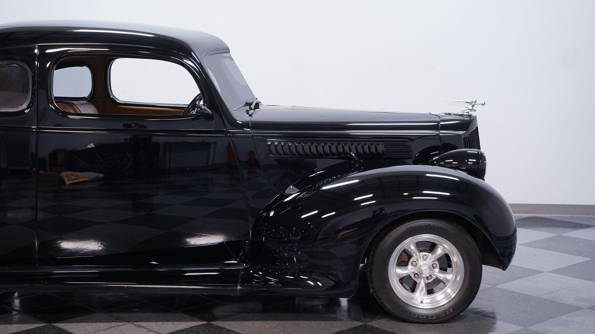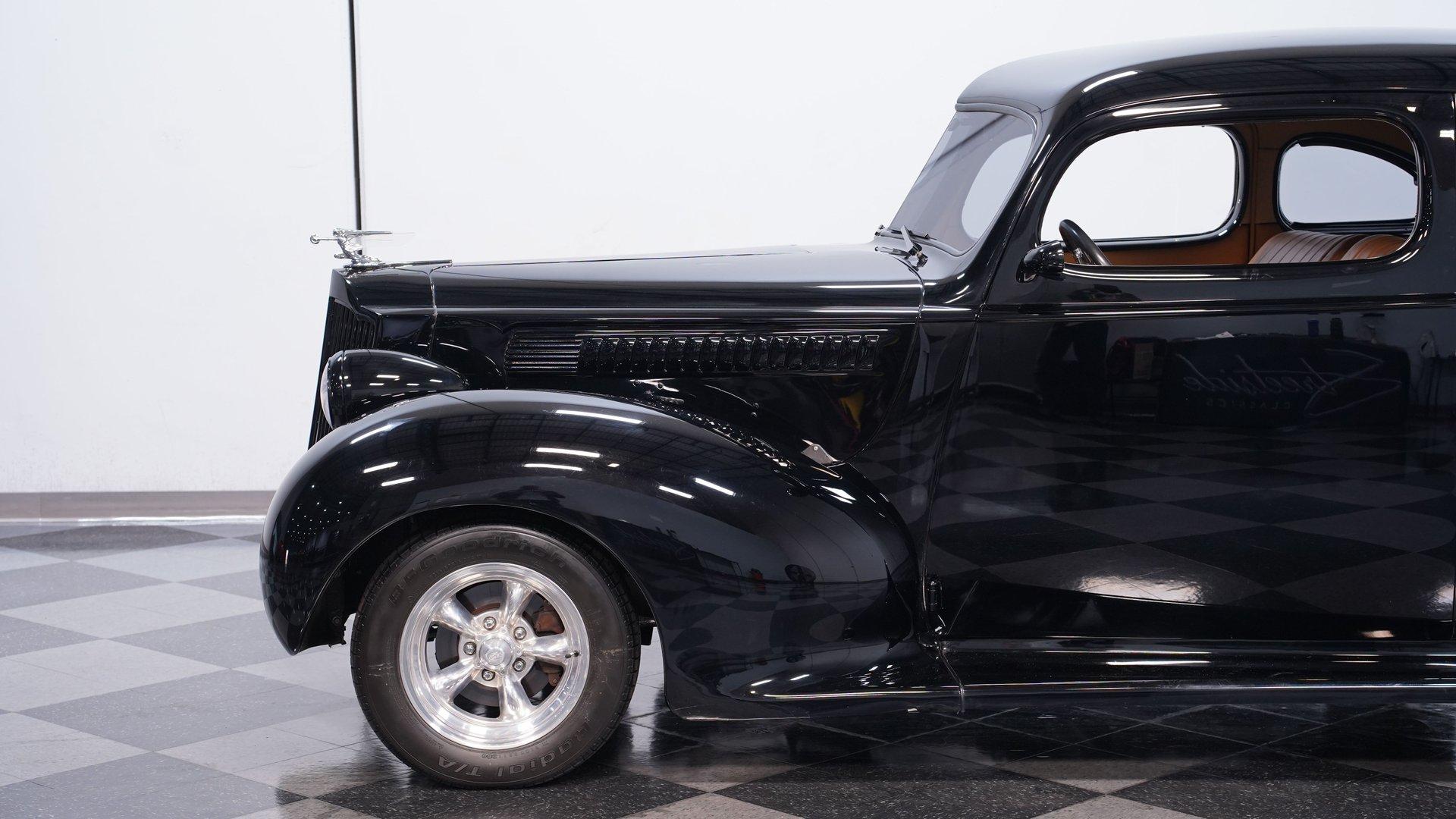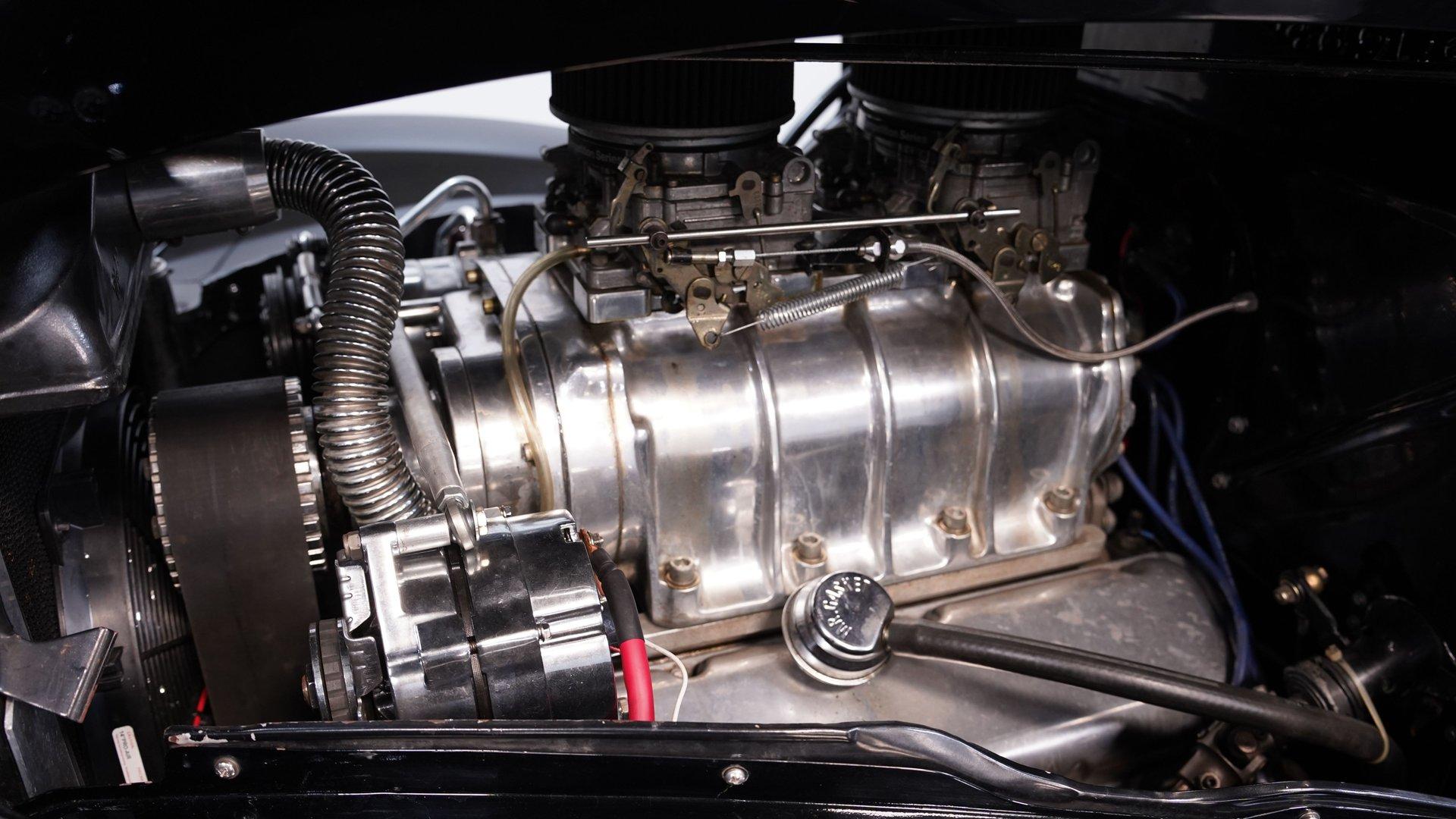 Take a sharp-looking, pre-war classic, combine it with some tastefully aggressive exterior modifications, then add in supercharged big block power, and you can't help but have yourself the prescription for a truly awesome ride! It's a prescription that was closely followed when building this 1939 Packard 120 Pro Street. With its high-impact black paint draped over the front grille, its deleted bumpers, and shaved door handles, this is a truly awesome finished result that's sure to impress, even before you fire it up, tap on the accelerator, and witness the top-level power at your disposal. Flush-mounted taillights and a third brake light add to its signature look from the back while offering an added measure of safety, and the painted trim surrounding the cockpit windows really looks great. Inside the doors, the tan, vinyl-clad split bench seat provides plenty of comfort for even longer journeys and, along with the matching door panels, creates a very effective visual contrast to the black painted dash area, where you'll find an assembly of clear aftermarket gauges inside the instrument cluster. Unlike many of the offerings in its segment, this '39 sports some welcome convenience features in the form of power windows, a remote-opening trunk, and cruise control. While the air conditioning system will need a bit of attention to get back online, all the components are in place, so this should be a pretty minor fix. There's also a Kenwood AM/FM stereo with Bluetooth connectivity on board, so you won't run out of audio options anytime soon. The builder of this Packard obviously subscribed to the notion that "there's no replacement for displacement," but then even ratcheted things up a notch from there. You'll find an expansive 454-cubic-inch V8 lurking inside a well-maintained compartment. Fed by a pair of Carter carburetors and enhanced by a Littlefield supercharger, it goes without saying that this powerplant can liquify tires with very little effort. The engine exhales into a pair of headers leading to a dual side-exit exhaust and pairs with a 3-speed automatic TH400 shifting at the top of its game. Power steering makes this cruiser easy to navigate, while four-wheel power disc brakes bring it to a stop quickly. And, with both front and rear aftermarket suspensions added to the mix, you'll enjoy a more refined ride than you'd normally expect, with minimal body roll around corners. HIGHLIGHTS 454-CUBIC-INCH V8 LITTLEFIELD BLOWER DUAL 4-BARREL CARTER CARBURETORS 3-SPEED AUTOMATIC TH400 TRANSMISSION LONG TUBE HEADERS DUAL SIDE EXIT EXHAUST POWER STEERING 4-WHEEL POWER DISC BRAKES AFTERMARKET SUSPENSION AT BOTH ENDS 15" TORQ THRUST WHEELS TAN VINYL UPHOLSTERY SPLIT BENCH SEAT GRANT STEERING WHEEL AIR CONDITIONING KENWOOD AM/FM STEREO WITH BLUETOOTH CONNECTIVITY A great-looking classic with a tastefully foreboding presence, this 1939 Packard 120 Pro Street scorches the asphalt on a set of 15" Torq Thrust wheels and packs enough punch to put a smile on the face of even the most power-hungry driver. Call today!