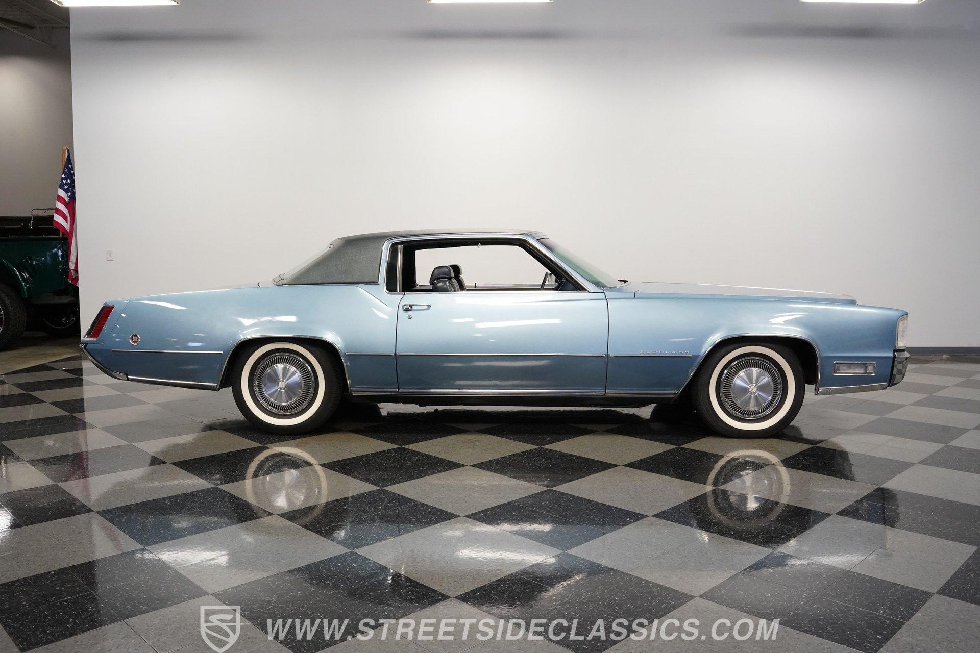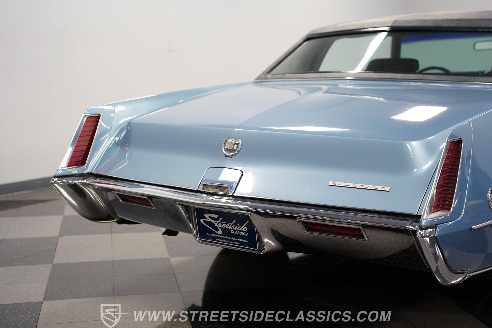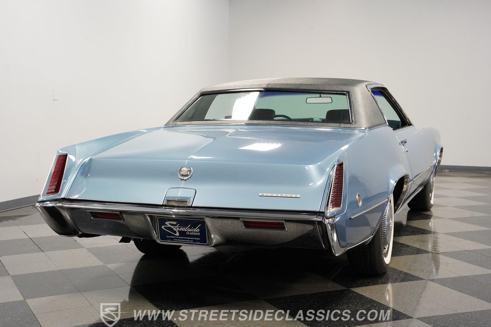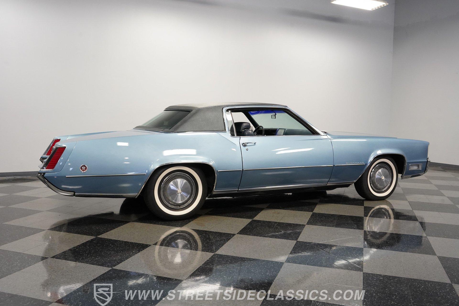Owning a classic car is more than just having a mode of transportation; it's about embracing a piece of history and the statement it makes on the road. The 1969 Cadillac Eldorado represents an era of luxury, style, and power, evoking memories of a time when cars were crafted with bold design and elegance. This beautifully restored Eldorado, with its commanding presence and timeless appeal, offers a chance to relive those golden days while making your own unforgettable moments. If you've ever dreamed of commanding attention and cruising in classic American luxury, this 1969 Cadillac Eldorado might just be the car you need. Step inside this Cadillac Eldorado, and you'll find a very nice, clean interior that combines vintage charm with comfort. The dash pad appears to be newer and fits nicely, while the cluster and gauges retain their original look in very good condition. The steering wheel has been thoughtfully re-wrapped, and the seats maintain a shape and feel like original leather. Door cards and rear panels are clean, and all buttons and knobs are intact. Carpets are fresh and the headliner fits tight, creating an inviting cabin space. Under the hood, this Eldorado boasts a powerful 472 V8 engine that has been well cared for and runs smoothly. The engine starts easily and offers strong acceleration paired with a 3-speed automatic transmission that shifts smoothly. The clean factory presentation under the hood showcases the Rochester quadrajet carburetor and distinctive 472 callouts on the air cleaner. While the manifolds show some age, the belts and wiring remain in good condition. The car drives like a true Cadillac, floating down the road with responsive steering and reliable brakes, ensuring a pleasurable and confident driving experience. Highlights 1969 Cadillac Eldorado 472 V8 Engine 3 Speed Automatic Transmission Rochester Quadrajet Carburetor Power Disc Front Brakes Power Rear Brakes Factory Style Suspension 15" Factory Style Wheels 235/75R15 Tires Front and Rear Vinyl Top in Excellent Shape Very Nice Respray with Pearl Leather Seats Retro AM/FM Radio with Bluetooth Financing Available Vehicle Protection Plans Available Worldwide Shipping This 1969 Cadillac Eldorado offers a fantastic blend of classic style, strong performance, and comfort, making it a remarkable find for enthusiasts or collectors alike. With its well-restored condition and iconic presence, it's ready to be enjoyed and admired. Don't miss your chance to own a piece of American automotive history. Call, email, or come visit our showroom today!