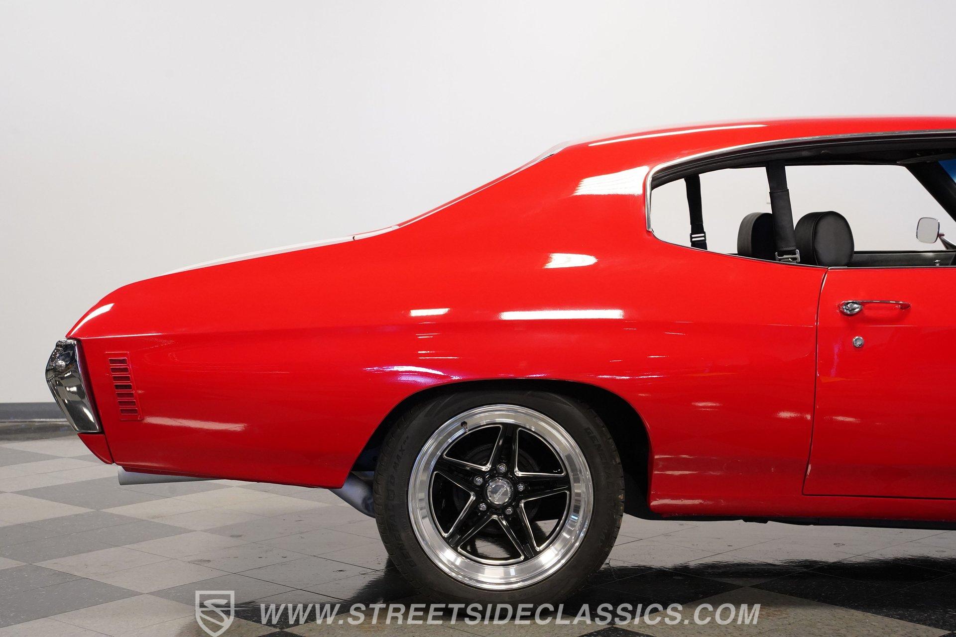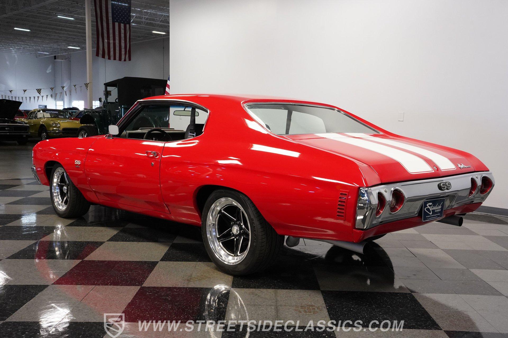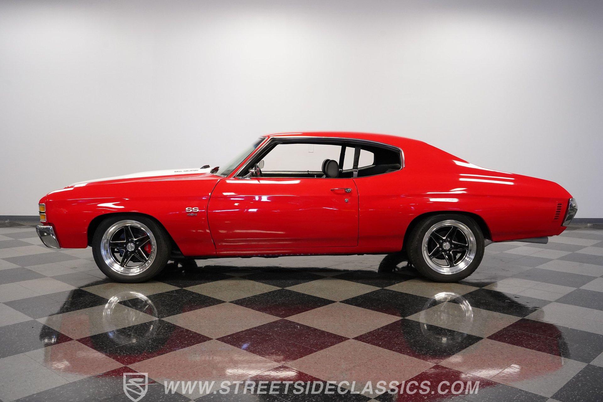 Few muscle cars command as much recognition and notoriety as the Chevelle. One look at this 1971 Chevrolet Chevelle SS 454 Tribute Restomod, and it's easy to see why this car has left an indelible mark on enthusiasts worldwide, despite being out of production since 1977. Fully repainted in a head-turning bright red complemented by a set of full-length white painted SS stripes to go along with its pinned cowl-induction hood, this Tribute shows off the aggressive lines of the Chevelle from any angle. Inside, we find a clean, redone black vinyl interior. A custom center console complete with dual cupholders separates a pair of supportive Procar bucket seats. A small power-assisted, three-spoke steering wheel sits just ahead of a six-pod Equus gauge cluster mounted on a custom 3D-printed dashboard, featuring an 8,000-rpm tachometer and a 120-mph speedometer. Gone is the old-school AM radio, and in its place is a modern Pioneer AM/FM touchscreen that offers SiriusXM, Apple CarPlay, Android Auto, and Bluetooth. At the same time, a chrome cueball shifter with the easy-to-see shift pattern really provides all the entertainment necessary for any long drive. Under the hood, we find a clean engine bay with a massive 468 cubic-inch V-8 engine on display. This bored-over big block sports lightweight AFR aluminum heads, Edelbrock Performer RPM intake, a Lunati cam, Holley Sniper EFI, Hedman long tube headers, and high-flow FlowMaster catalytic converters to help this juiced-up rat motor pump out 600 horsepower. That massive power is routed through a Tremec TKO600 five-speed manual transmission before being sent to a 3.55-geared Posi rear end, which translates those ponies to the pavement via a set of 18-inch American Racing wheels. HIGHLIGHTS: Full Bright Red Repaint White Racing Stripes Cowl Hood Hood Pins New Front End New Quarters 468 CID V8 600 HP AFR Aluminum Heads Edelbrock Performer RPM Intake Sniper EFI Long Tube Headers High Flow Cats Tremec TKO600 Five Speed Manual 3.55 Posi Power Steering BMR Control Arms BMR Sway Bar QA1 Coilovers American Racing Wheels Power Brakes Front Wilwood Disc Brakes Redone Black Vinyl Interior Procar Bucket Seats New Headliner Pioneer Touchscreen Apple CarPlay Android Auto Satellite Ready Bluetooth Custom Center Console Custom 3D Printed Dash Equus Gauges Air Conditioning Power Locks Keyless Entry This 1971 Chevrolet Chevelle SS 454 Tribute Restomod rides on a custom suspension that includes a BMR sway bar, along with matching BMR upper and lower control arms and QA1 coilovers. Power brakes featuring Wilwood front discs are ready to rein in those ponies whenever called upon. If you have been looking for a great example of one of the baddest big-block monsters from the Golden Age of muscle cars, then look no further because this is the car for you. Don't wait, call today!