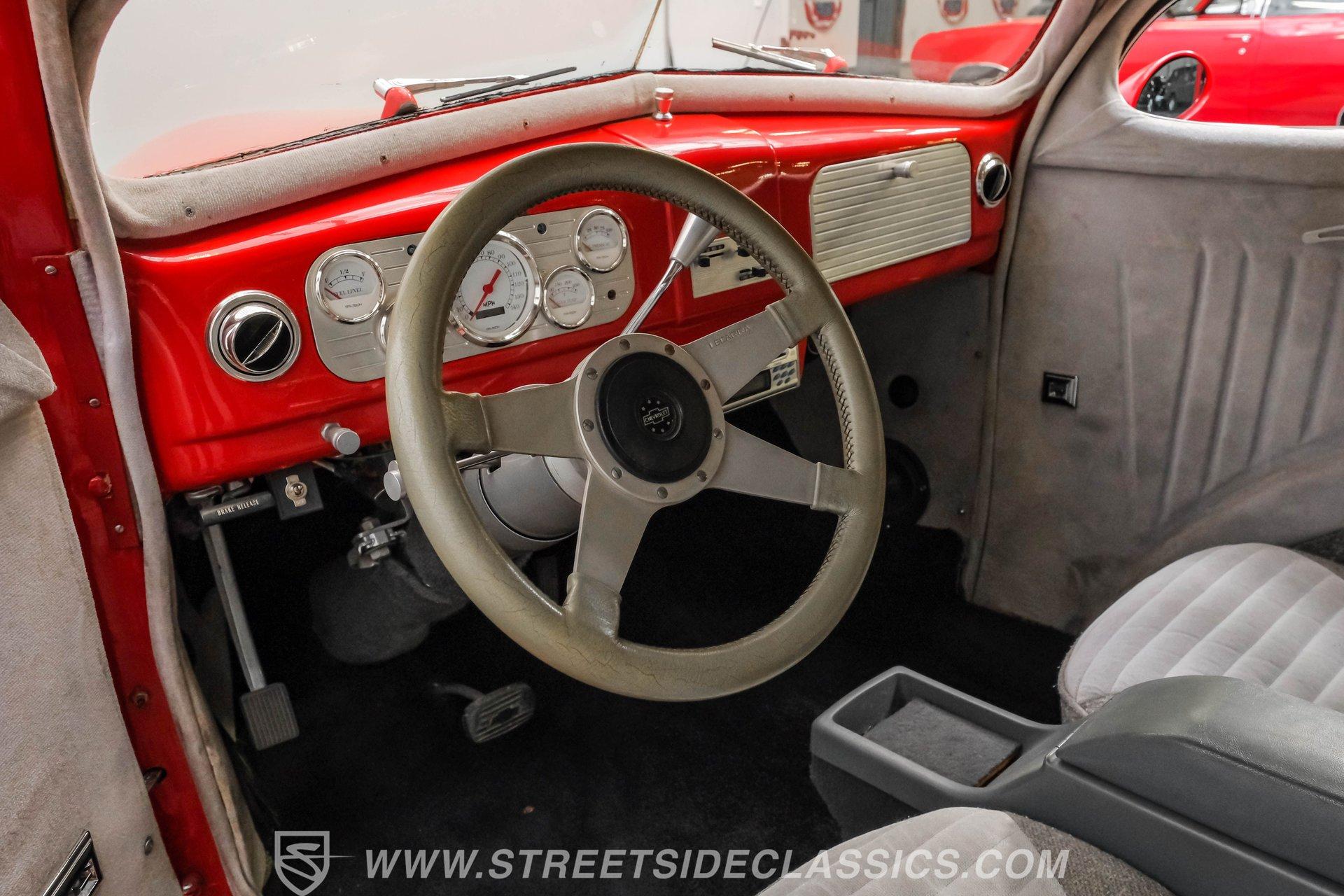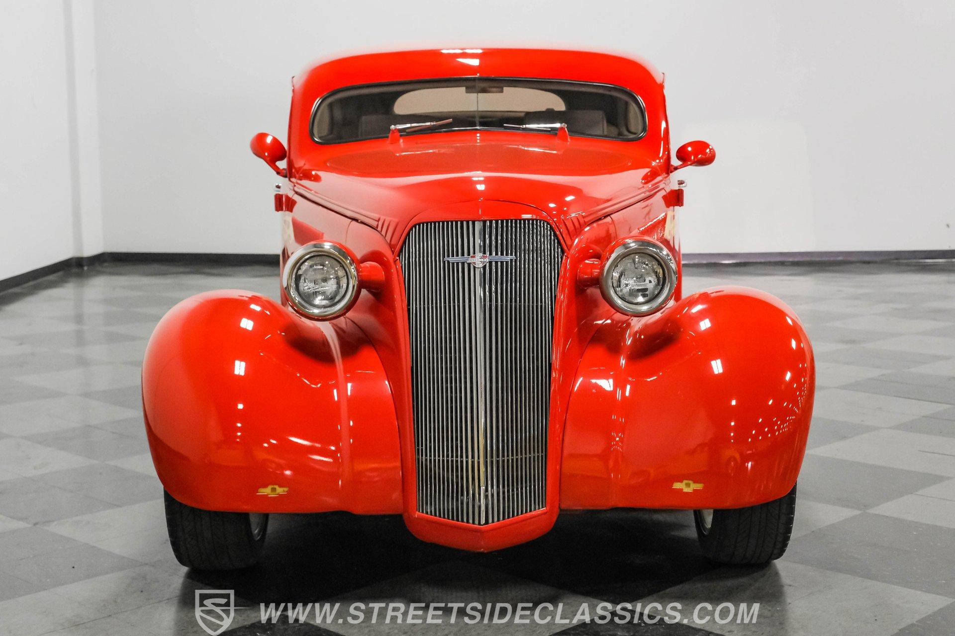 This 1937 Chevrolet Master Deluxe Sedan Street Rod blends classic design with modern touches that turns heads wherever it goes. Imagine cruising down the open road, the gleam of chrome catching the sunlight, and the rumble of a powerful V8 echoing your passion for driving. This iconic vehicle offers a unique mix of nostalgia and performance, making it a perfect weekend warrior or a standout addition to any collection. Inside, the cabin invites you with a tweed and cloth bucket seat interior that evokes vintage charm. The tilt column and Lecarra steering wheel offer comfortable control, while a Clarion radio and TPI tech gauges provide a touch of modern convenience. Vintage air conditioning keeps the interior cool, making every drive enjoyable. Under the hood, a 350 cubic inch small block V8 engine with a Holley four-barrel carburetor and Edelbrock intake delivers solid power and smooth acceleration. This engine is paired with a TH200-4R four-speed automatic transmission featuring a column shifter, offering an easy yet engaging drive. Chrome details throughout the engine bay add visual appeal, while an electric fan helps maintain optimal temperatures. The Mustang II front suspension and leaf springs at the rear, combined with power steering and power front disc brakes, provide a balanced and responsive driving experience. Highlights 350 V8 Engine With Edelbrock Intake Four-Speed Automatic Transmission With Column Shifter Chrome Engine Bay Detailing Mustang II Front Suspension Power Brakes with Front Disc Power Steering Vintage Air Conditioning Tilt Steering Column with Lecarra Wheel Clarion Radio With CD Changer Tweed & Cloth Interior With Power Windows 17" Chrome Billet Specialties Wheels Financing Available Vehicle Protection Plans Available Worldwide Shipping This 1937 Chevrolet Master Deluxe Sedan Street Rod offers a compelling blend of classic style and performance upgrades, making it a rewarding project or a unique driver for car enthusiasts. Don't miss the chance to own a piece of automotive history that's ready for new adventures. Call, email, or come visit our showroom today!