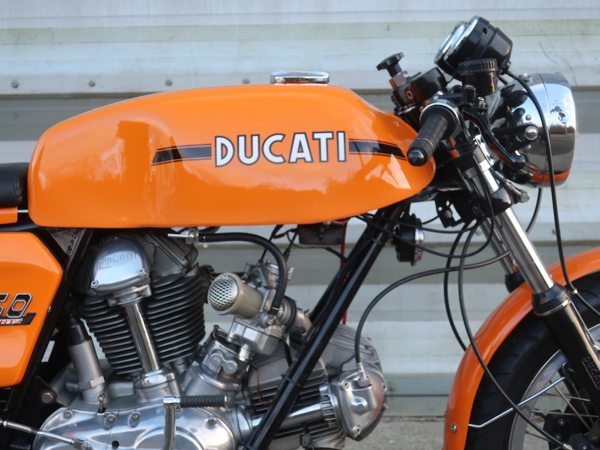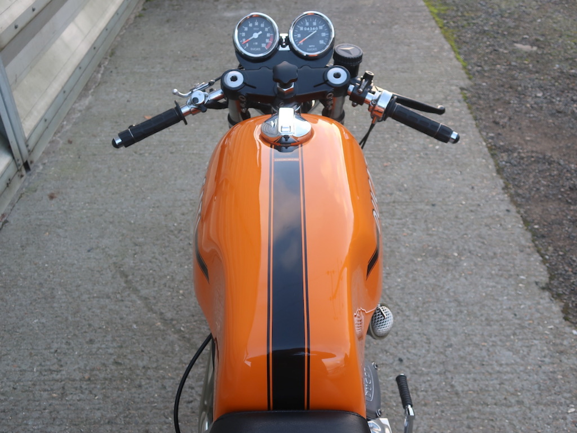 The early history of this example is not known, factory records show the production was late 1972, the bike came to the UK in 2000 and was registered as EKP269K. Not long after this it was restored by marque specialist Paul Klatkiewicz of Ducati Technical Services, the engine received a full rebuild to 775cc with gas flowed cylinder heads and electronic ignition, dyno tested at 64 bhp at the crank and 59 bhp at the rear wheel, new Borrani rims and Conti silencers were also fitted and the bike has covered about 4,500 miles since.
