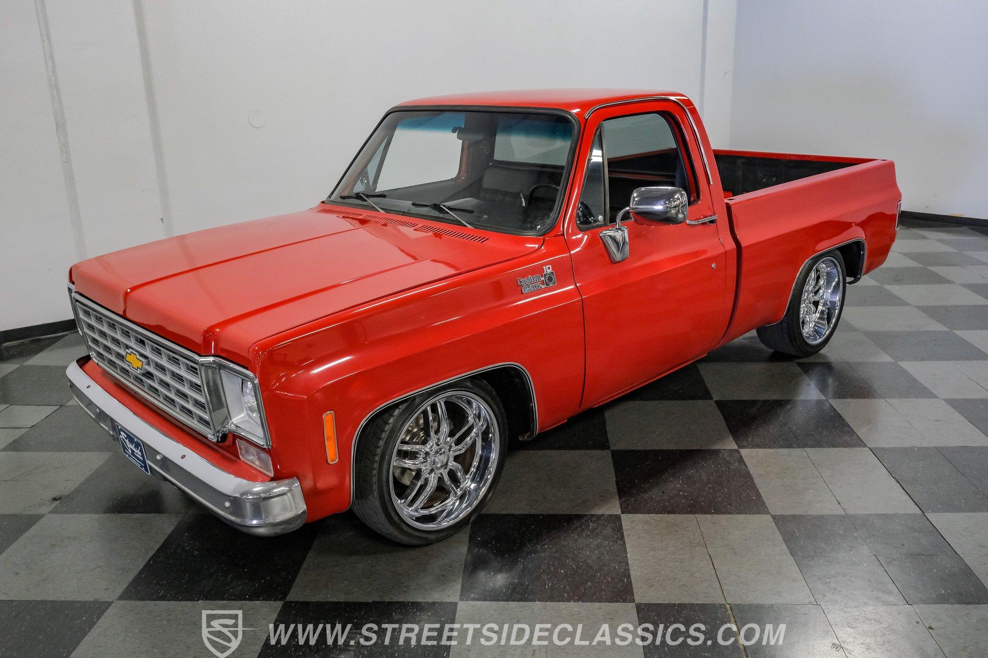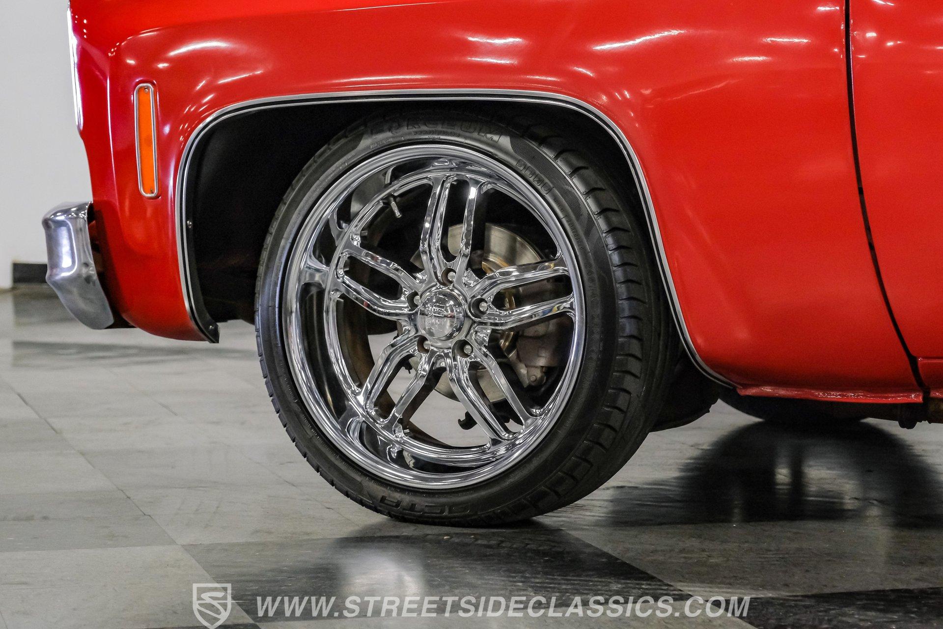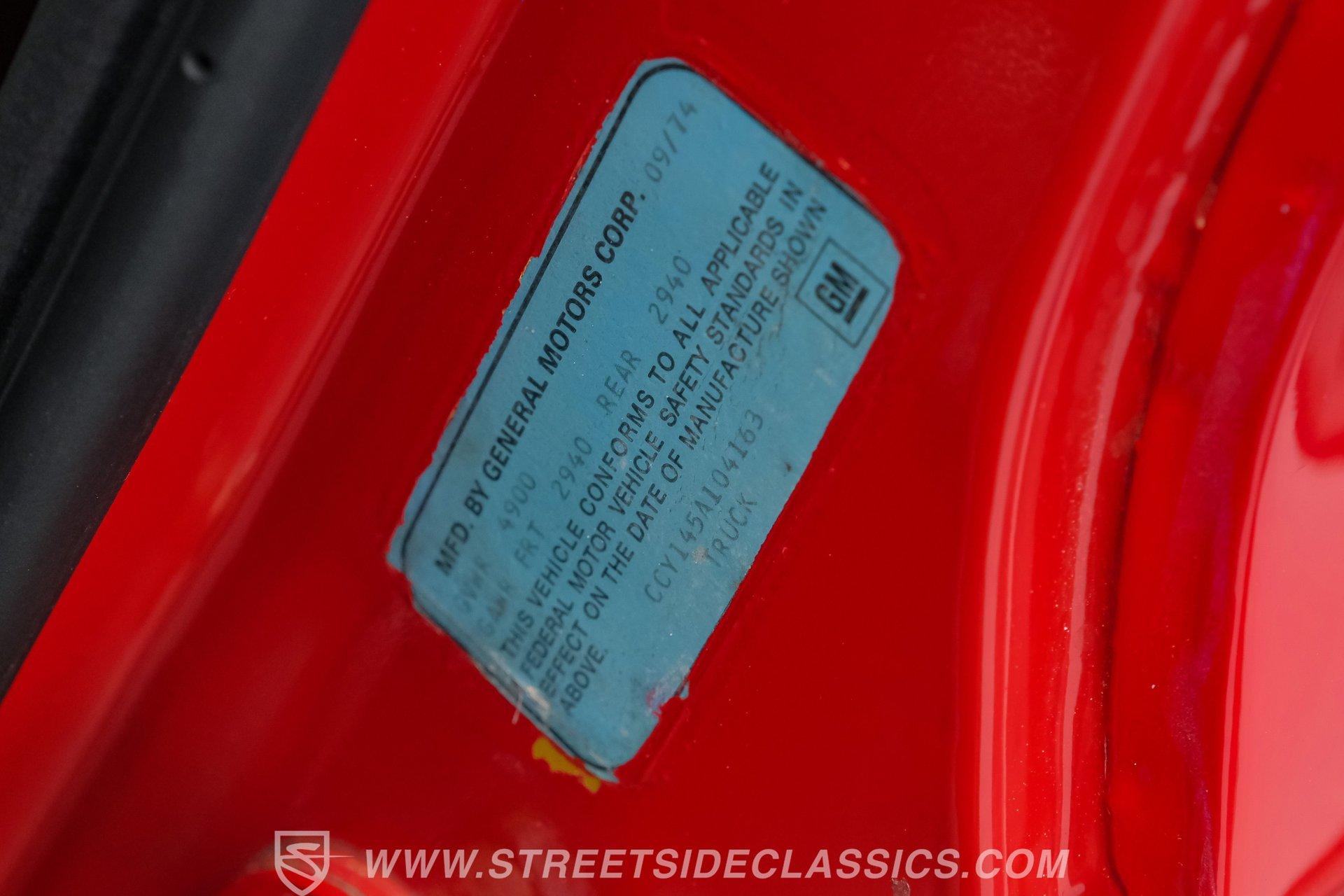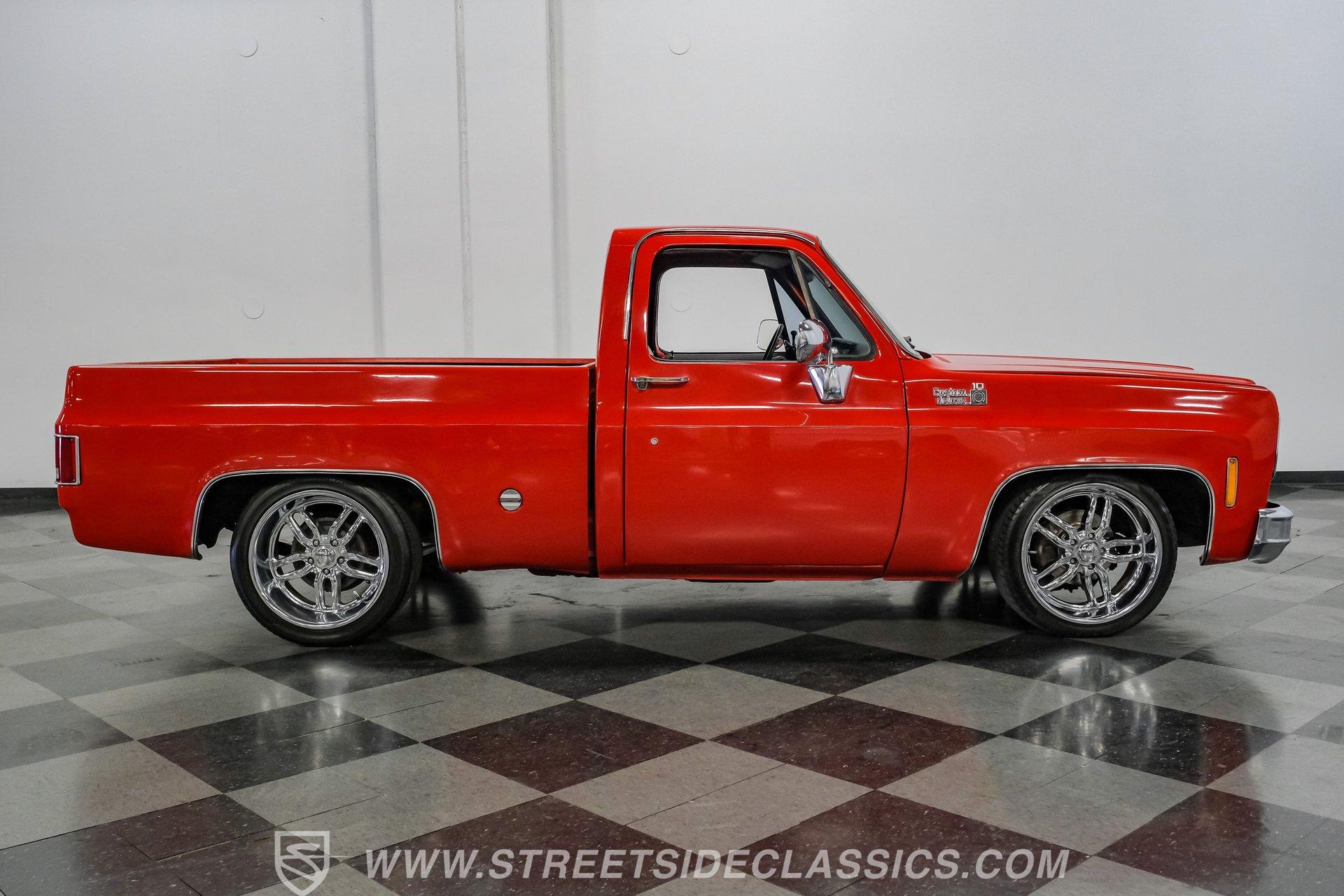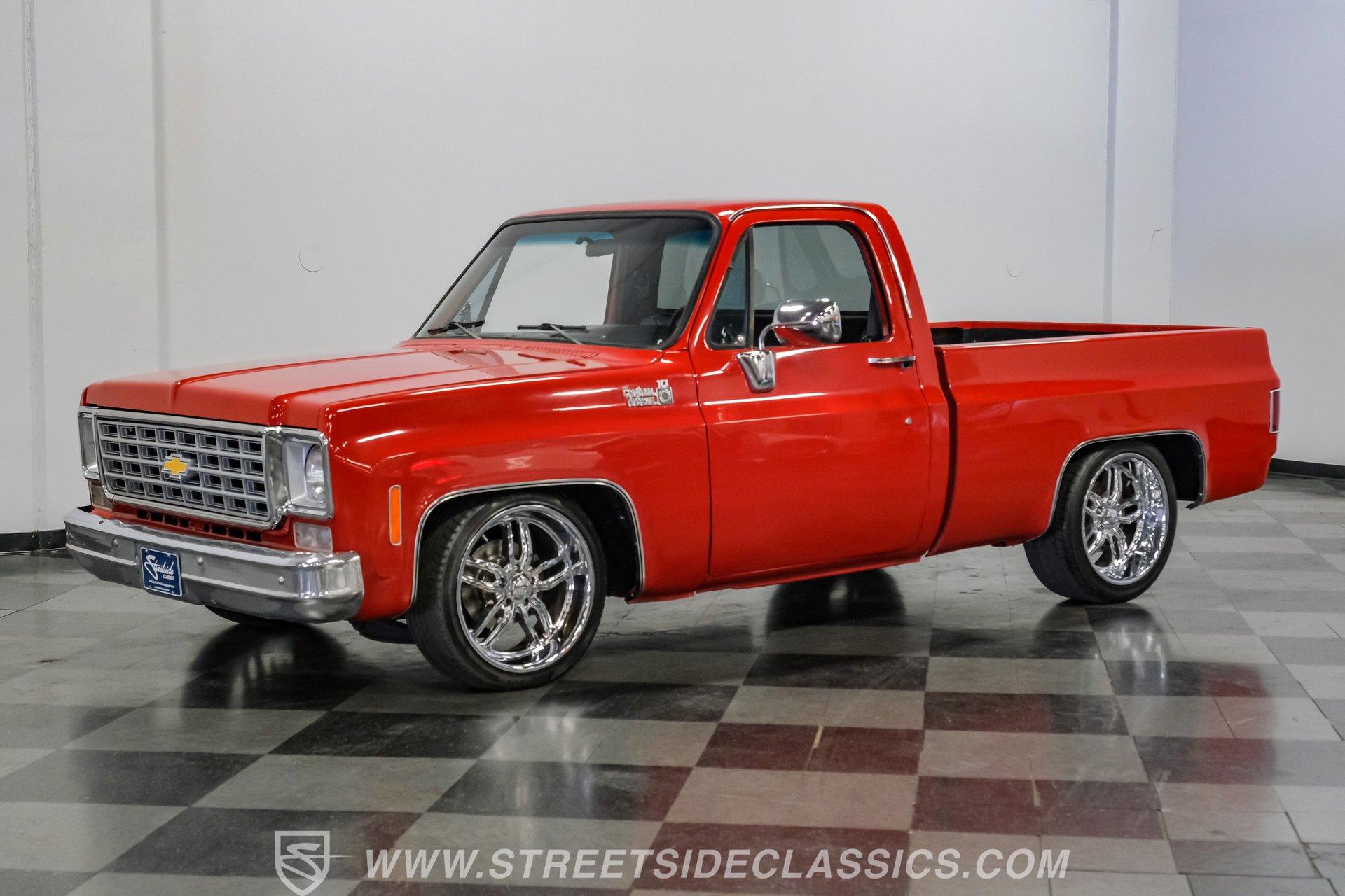 Step back in time and feel the thrill of driving a classic that perfectly blends nostalgia with a touch of modern flair. This 1975 Chevrolet C10 isn't just a truck; it's a statement of enduring style and rugged charm. Whether you're cruising down the boulevard or showing off at a weekend car meet, this vibrant red Chevy embodies the spirit of American muscle and craftsmanship. Its vibrant orange engine bay and sleek, lowered stance hint at the power and care under the hood. This is more than a vehicle; it's a weekend warrior ready to make memories with you behind the wheel. Step inside to discover a carefully curated interior that combines vintage appeal with comfort. The custom plaid bench seat offers a unique and inviting look, complemented by black carpeting and door panels that enhance the classic vibe. The factory-style dashboard, complete with rebuilt gauges and a steering wheel, maintains the truck's authentic feel. Under the hood, you'll find a numbers-matching 350 V8 engine, painted in a striking bright orange that commands attention. This powerhouse is paired with a smooth-shifting TH350 3-speed automatic transmission, delivering a driving experience that's both responsive and enjoyable. The engine bay's clean and spacious design allows room for potential upgrades, such as air conditioning, to enhance your comfort. With a Quadrajet 4-barrel carburetor, this C10 offers a classic muscle truck feel that's ready to hit the road with confidence. Highlights Numbers Matching 350 V8 Engine TH350 3-Speed Automatic Transmission Quadrajet 4-Barrel Carburetor Custom Plaid Bench Seat Interior Dual Cup Holders Lowered Stance with Spindles and Flip Kit 20" Polished US Mags Wheels Power Front Disc Brakes Power Steering Rhino Liner Bed Protection Financing Available Vehicle Protection Plans Available Worldwide Shipping This 1975 Chevrolet C10 offers a unique blend of classic style, solid performance, and tasteful customization, making it a great addition for any collector or enthusiast. Its blend of originality and upgrades means you can enjoy it right away or personalize it further. Don't miss the chance to own a truck that stands out and drives with confidence. Call, email, or come visit our showroom today!