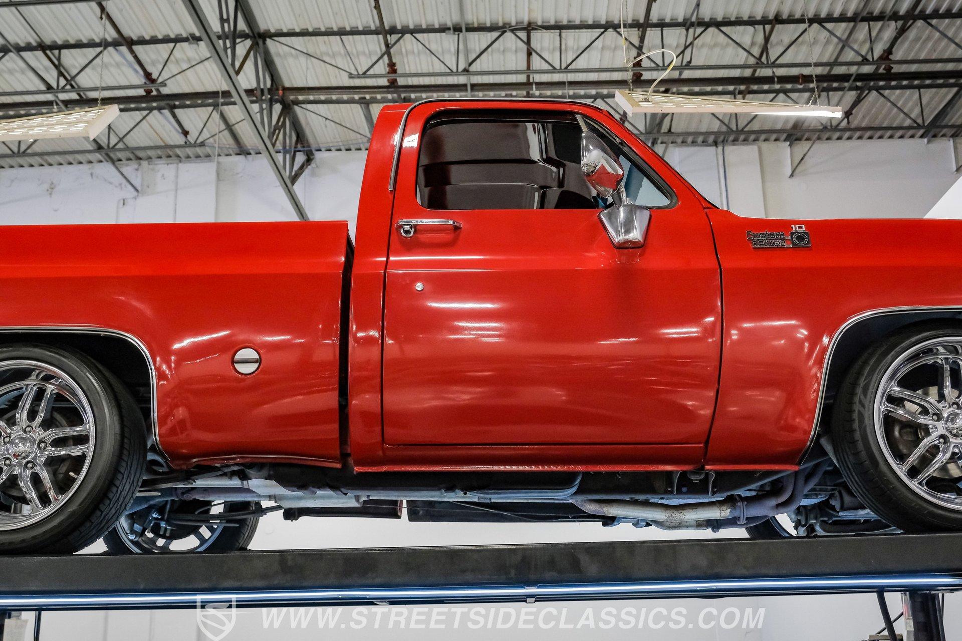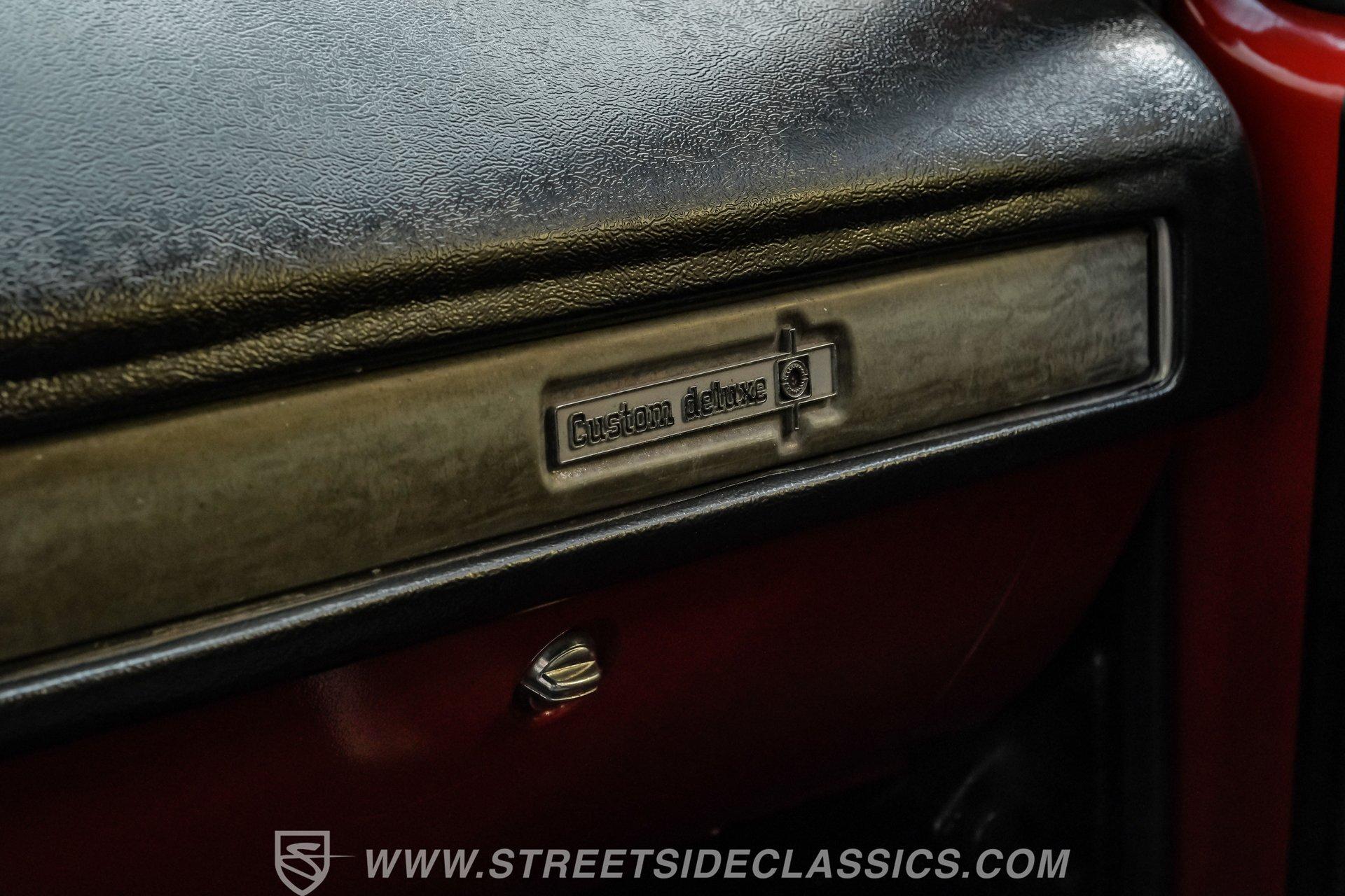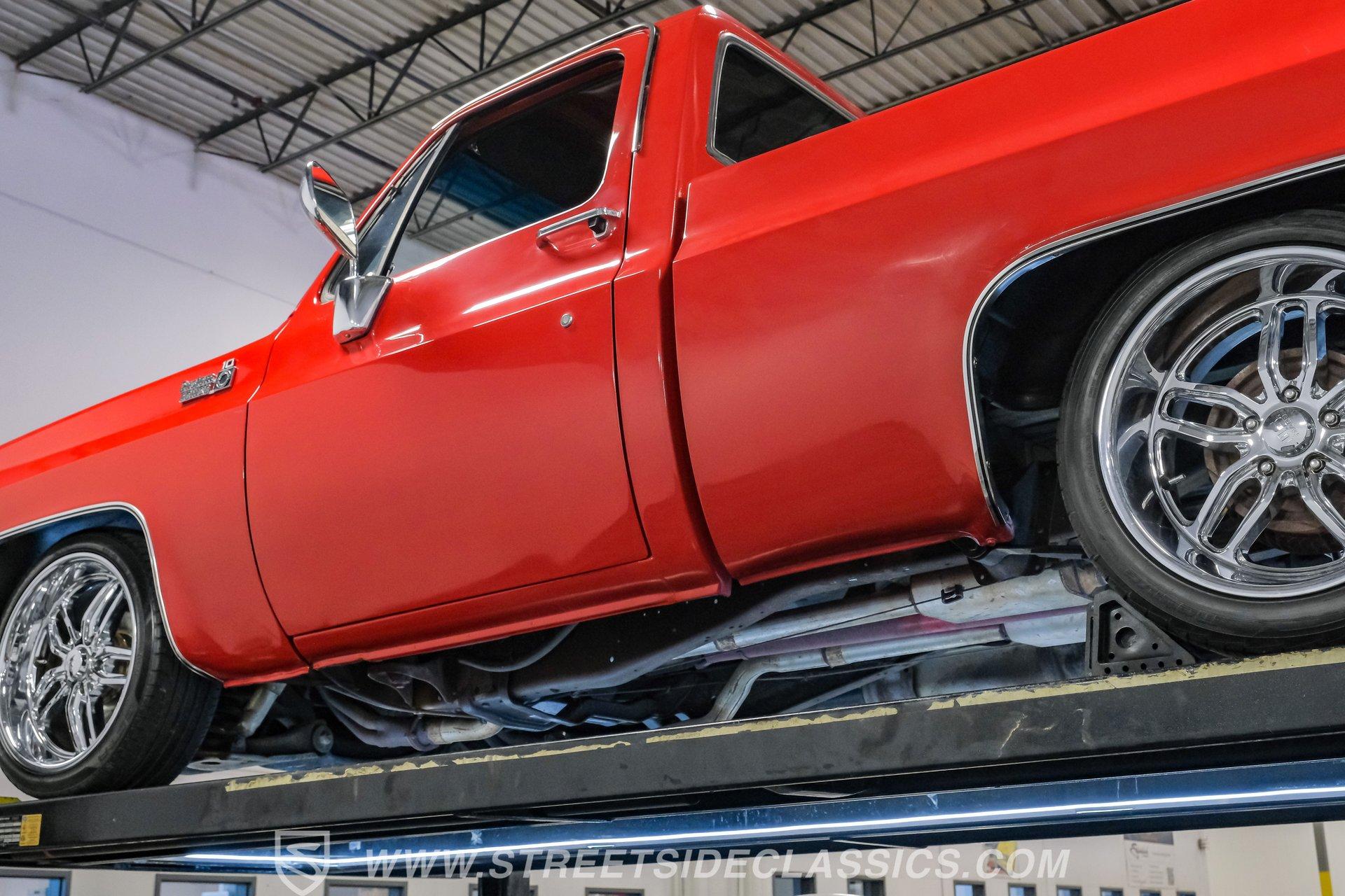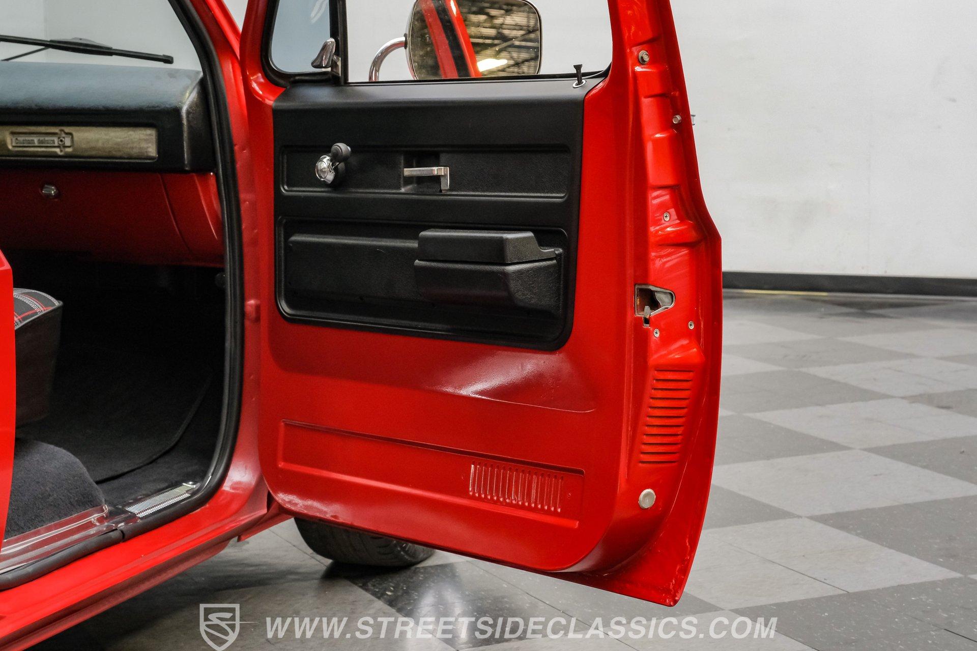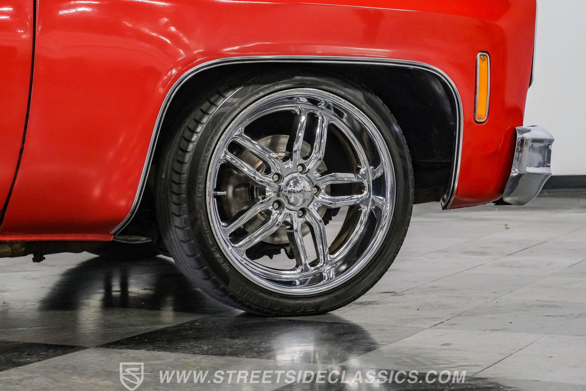 Step back in time and feel the thrill of driving a classic that perfectly blends nostalgia with a touch of modern flair. This 1975 Chevrolet C10 isn't just a truck; it's a statement of enduring style and rugged charm. Whether you're cruising down the boulevard or showing off at a weekend car meet, this vibrant red Chevy embodies the spirit of American muscle and craftsmanship. Its vibrant orange engine bay and sleek, lowered stance hint at the power and care under the hood. This is more than a vehicle; it's a weekend warrior ready to make memories with you behind the wheel. Step inside to discover a carefully curated interior that combines vintage appeal with comfort. The custom plaid bench seat offers a unique and inviting look, complemented by black carpeting and door panels that enhance the classic vibe. The factory-style dashboard, complete with rebuilt gauges and a steering wheel, maintains the truck's authentic feel. Under the hood, you'll find a numbers-matching 350 V8 engine, painted in a striking bright orange that commands attention. This powerhouse is paired with a smooth-shifting TH350 3-speed automatic transmission, delivering a driving experience that's both responsive and enjoyable. The engine bay's clean and spacious design allows room for potential upgrades, such as air conditioning, to enhance your comfort. With a Quadrajet 4-barrel carburetor, this C10 offers a classic muscle truck feel that's ready to hit the road with confidence. Highlights Numbers Matching 350 V8 Engine TH350 3-Speed Automatic Transmission Quadrajet 4-Barrel Carburetor Custom Plaid Bench Seat Interior Dual Cup Holders Lowered Stance with Spindles and Flip Kit 20" Polished US Mags Wheels Power Front Disc Brakes Power Steering Rhino Liner Bed Protection Financing Available Vehicle Protection Plans Available Worldwide Shipping This 1975 Chevrolet C10 offers a unique blend of classic style, solid performance, and tasteful customization, making it a great addition for any collector or enthusiast. Its blend of originality and upgrades means you can enjoy it right away or personalize it further. Don't miss the chance to own a truck that stands out and drives with confidence. Call, email, or come visit our showroom today!