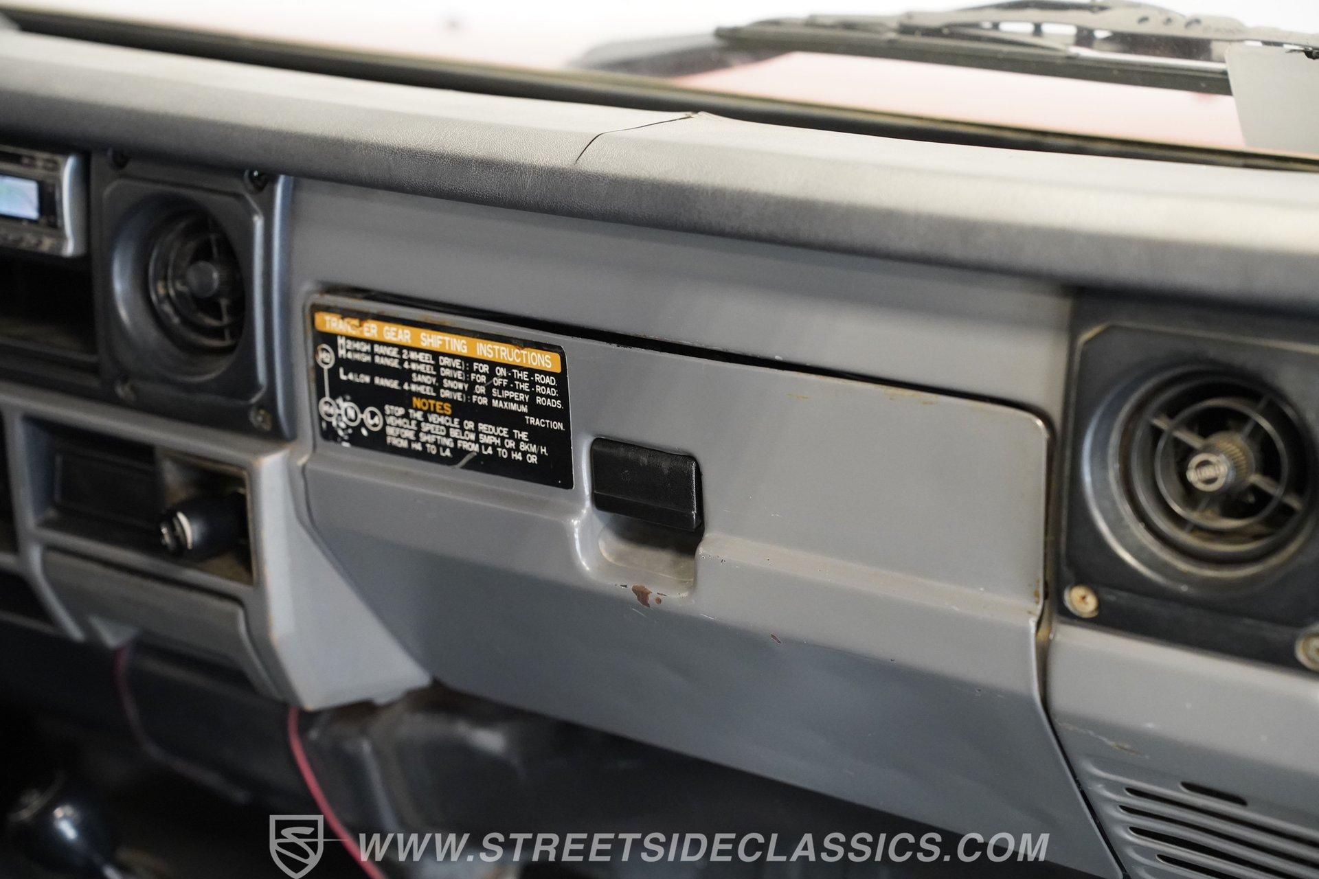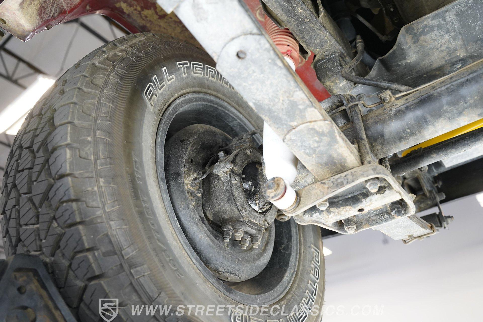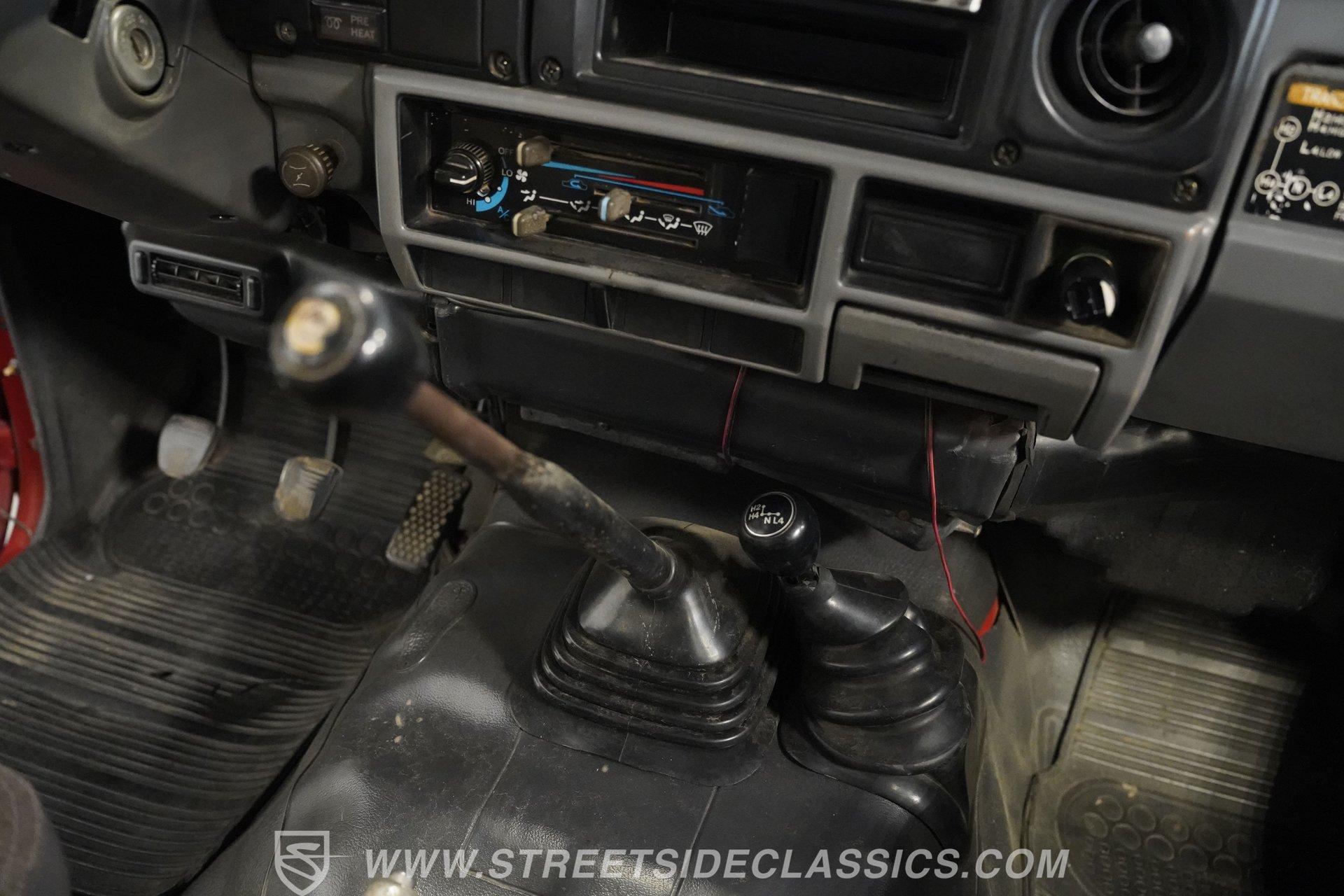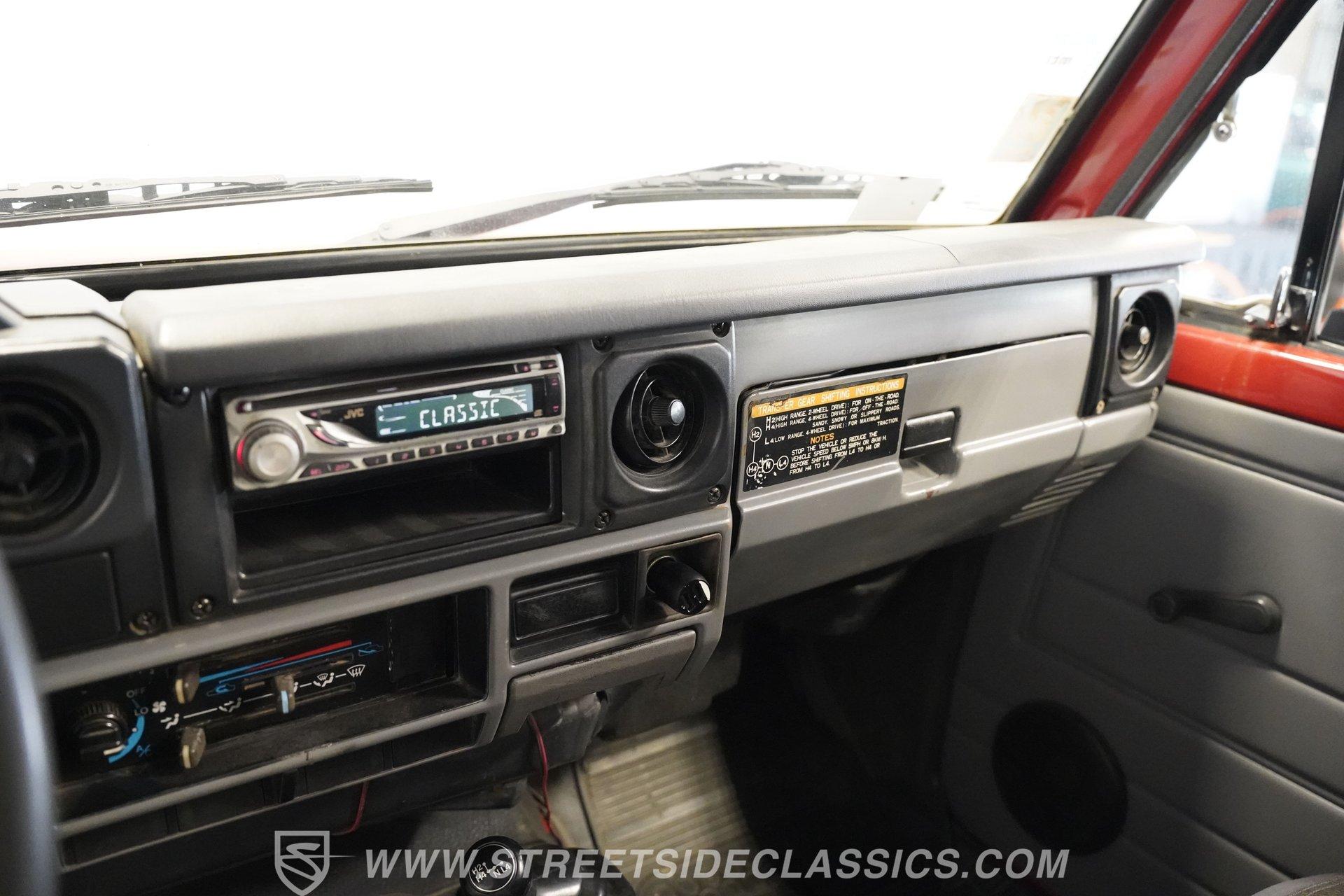 Here we have a 1989 Toyota Land Cruiser 4x4-a nice little rugged buggy that makes driving super fun. It's definitely different with a nice red paint job, and for a 1989, it's in pretty good shape. The body is solid with no rust damage. The Land Cruiser is outfitted with beadlock wheels for tough driving, a pintle hitch, a tow hook in the front, a spare tire in the back, and rear barn doors, making it ready for just about anything. It's equipped with a small lift kit, side steps to assist people in and out, and, because of the short length of the vehicle, it makes driving on roads and back trails pretty convenient. The interior is mostly stock. You can tell it has been beaten up, but a vehicle like this is designed to take a beating. The no-carpet and rubber floor mats are the way these vehicles come from the factory. This design makes for easy cleaning, so you don't have to worry about getting into it after a long day of hunting, camping, hiking, or whatever messy things you've been up to. The front seats are buckets with seat covers, and the rear seats are horizontal bench seats for more seating space. The gauge cluster is clear and reads in KM/H, the shifter is on the floor but long, putting it right in your hands, and there is a JVC aftermarket radio. All in all, the interior is nothing flashy-it's designed for you to give it a beating and built to take it day in and day out. The engine is a 3.4-liter inline-4 diesel that uses glow plugs, so it takes a little longer to warm up than a gas motor. An aftermarket aluminium radiator has been installed. Power is sent through a 4-speed manual transmission and a 2-speed transfer case for the four-wheel drive. A solid axle is used in the front, and for the rear, there is a semi-float axle. For suspension, both the front and rear utilize leaf springs and shock absorbers. This Toyota rides on 265/70R17 Pathfinder All-Terrain tires wrapped around 17-inch beadlock rims. Vacuum-powered drum brakes are posted at all four corners of the Land Cruiser, and an aftermarket chambered muffler has been installed. Highlights: 3.4-Liter Inline-4 Diesel Fuel Injection Aluminum Radiator Four-Wheel Drive 4-Speed Manual Transmission 2-Speed Transfercase Front Solid Axle-Rear Simi-Float Axle Front And Rear-Leaf Springs And Shock Absorber Vacuum-Driven Drum Brakes 17-Inch Beadlock Wheels 265/70R17 Pathfinder All Terrain Tires DOT 2023 Chambered Mufflers Heat/AC JVC AM/FM/CD Head Unit Spare Tire Rear Barn Doors If you like hitting the trails, mud bogging, rock crawling, camping, or any other duty activities, this 1989 Toyota Land Cruiser is the perfect vehicle for you. It has all-terrain capabilities, the interior is great for taking on dirt, mud, snow, water, and more, and the outside just needs a quick wash now and then-and the paint will still shine. Call Today!