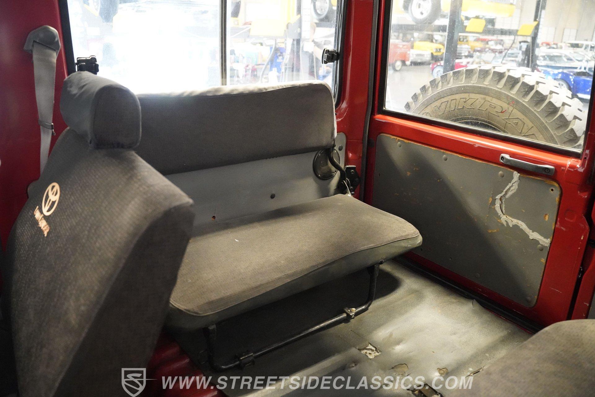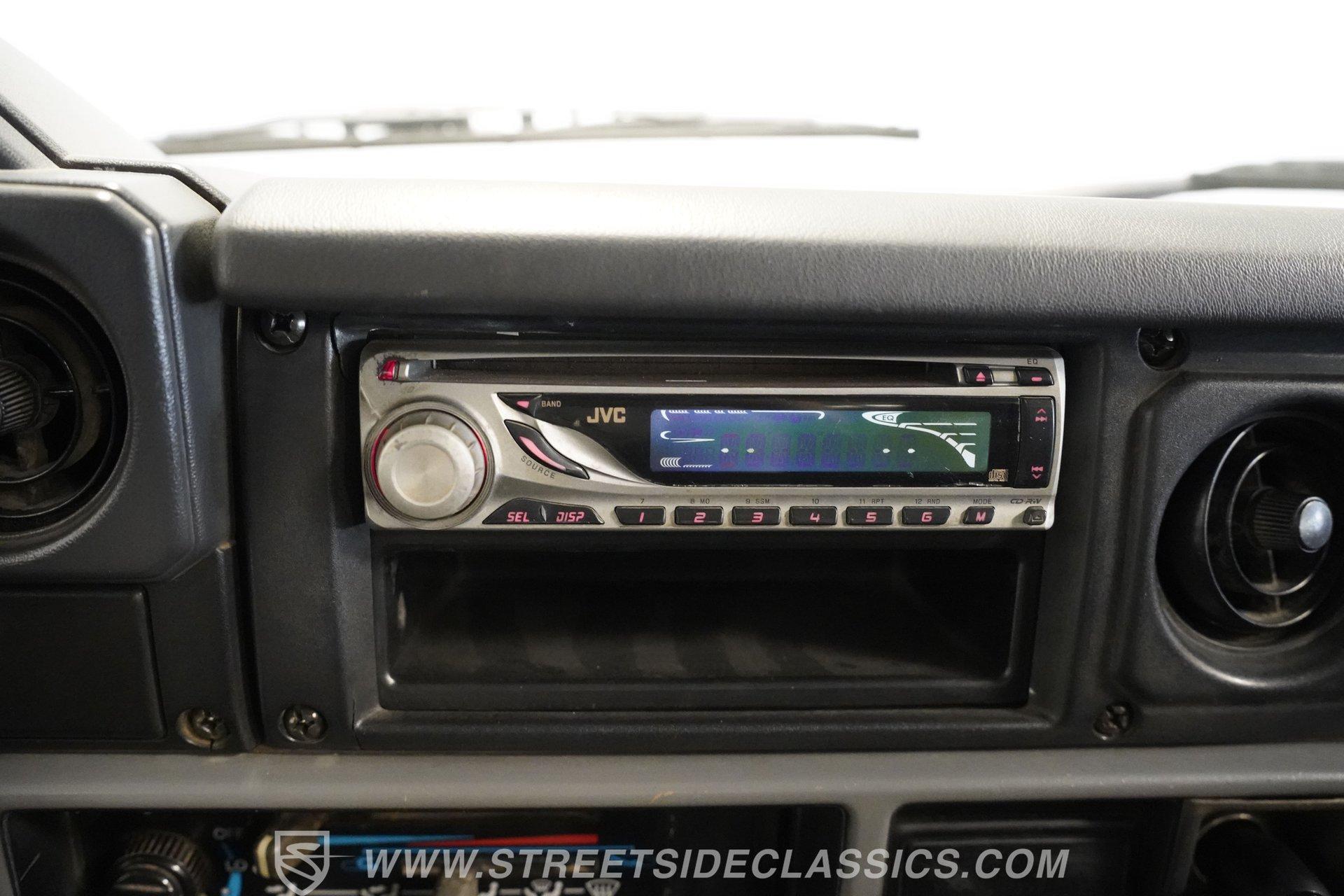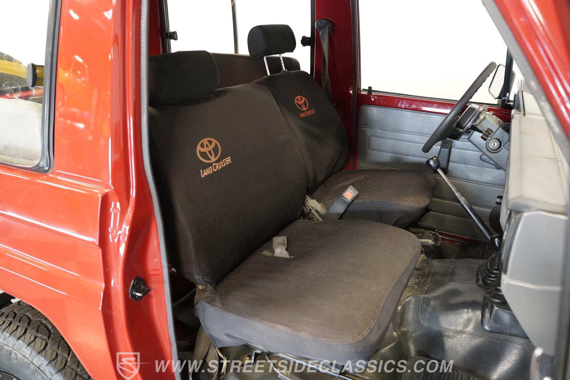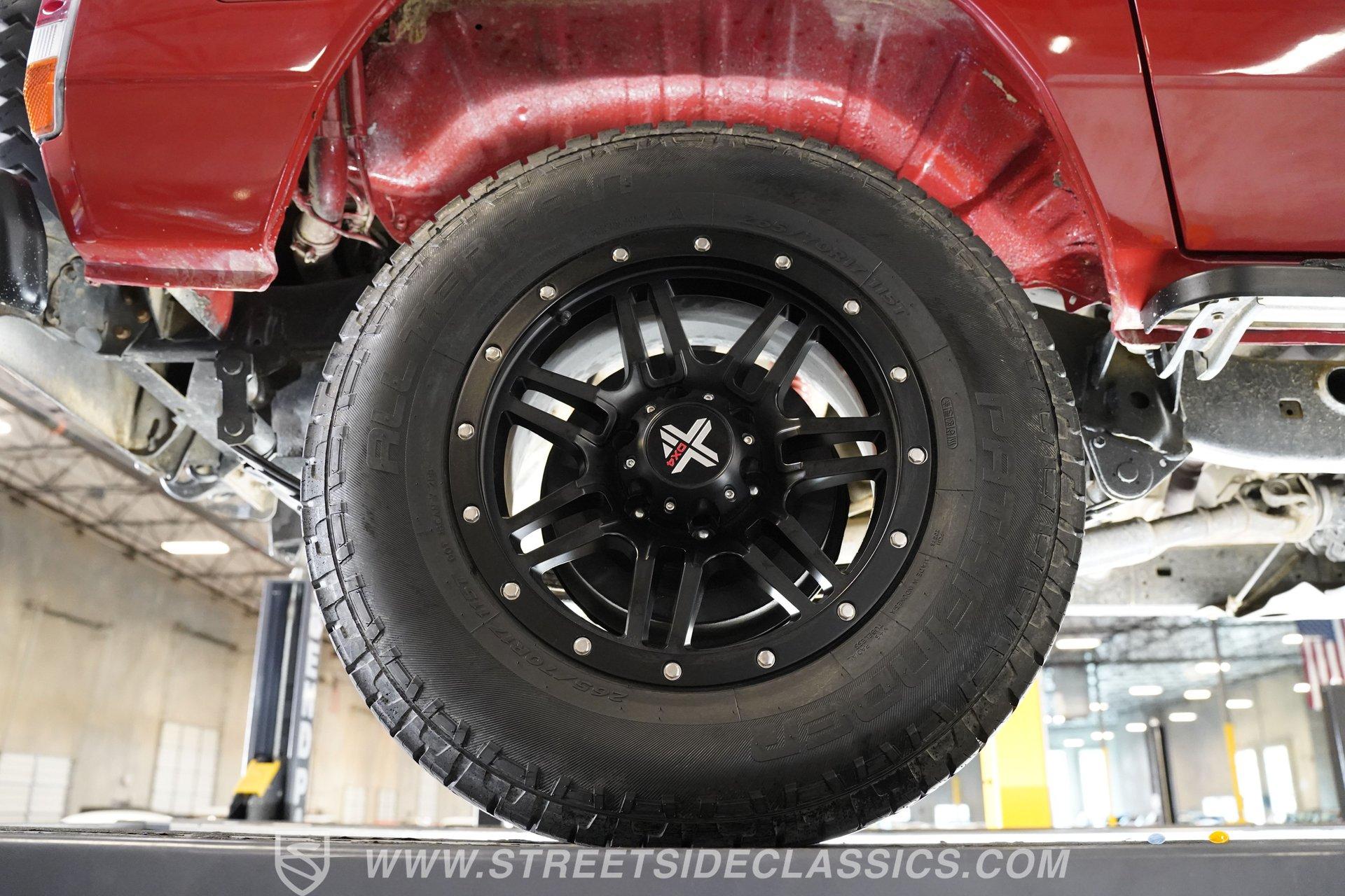 Here we have a 1989 Toyota Land Cruiser 4x4-a nice little rugged buggy that makes driving super fun. It's definitely different with a nice red paint job, and for a 1989, it's in pretty good shape. The body is solid with no rust damage. The Land Cruiser is outfitted with beadlock wheels for tough driving, a pintle hitch, a tow hook in the front, a spare tire in the back, and rear barn doors, making it ready for just about anything. It's equipped with a small lift kit, side steps to assist people in and out, and, because of the short length of the vehicle, it makes driving on roads and back trails pretty convenient. The interior is mostly stock. You can tell it has been beaten up, but a vehicle like this is designed to take a beating. The no-carpet and rubber floor mats are the way these vehicles come from the factory. This design makes for easy cleaning, so you don't have to worry about getting into it after a long day of hunting, camping, hiking, or whatever messy things you've been up to. The front seats are buckets with seat covers, and the rear seats are horizontal bench seats for more seating space. The gauge cluster is clear and reads in KM/H, the shifter is on the floor but long, putting it right in your hands, and there is a JVC aftermarket radio. All in all, the interior is nothing flashy-it's designed for you to give it a beating and built to take it day in and day out. The engine is a 3.4-liter inline-4 diesel that uses glow plugs, so it takes a little longer to warm up than a gas motor. An aftermarket aluminium radiator has been installed. Power is sent through a 4-speed manual transmission and a 2-speed transfer case for the four-wheel drive. A solid axle is used in the front, and for the rear, there is a semi-float axle. For suspension, both the front and rear utilize leaf springs and shock absorbers. This Toyota rides on 265/70R17 Pathfinder All-Terrain tires wrapped around 17-inch beadlock rims. Vacuum-powered drum brakes are posted at all four corners of the Land Cruiser, and an aftermarket chambered muffler has been installed. Highlights: 3.4-Liter Inline-4 Diesel Fuel Injection Aluminum Radiator Four-Wheel Drive 4-Speed Manual Transmission 2-Speed Transfercase Front Solid Axle-Rear Simi-Float Axle Front And Rear-Leaf Springs And Shock Absorber Vacuum-Driven Drum Brakes 17-Inch Beadlock Wheels 265/70R17 Pathfinder All Terrain Tires DOT 2023 Chambered Mufflers Heat/AC JVC AM/FM/CD Head Unit Spare Tire Rear Barn Doors If you like hitting the trails, mud bogging, rock crawling, camping, or any other duty activities, this 1989 Toyota Land Cruiser is the perfect vehicle for you. It has all-terrain capabilities, the interior is great for taking on dirt, mud, snow, water, and more, and the outside just needs a quick wash now and then-and the paint will still shine. Call Today!