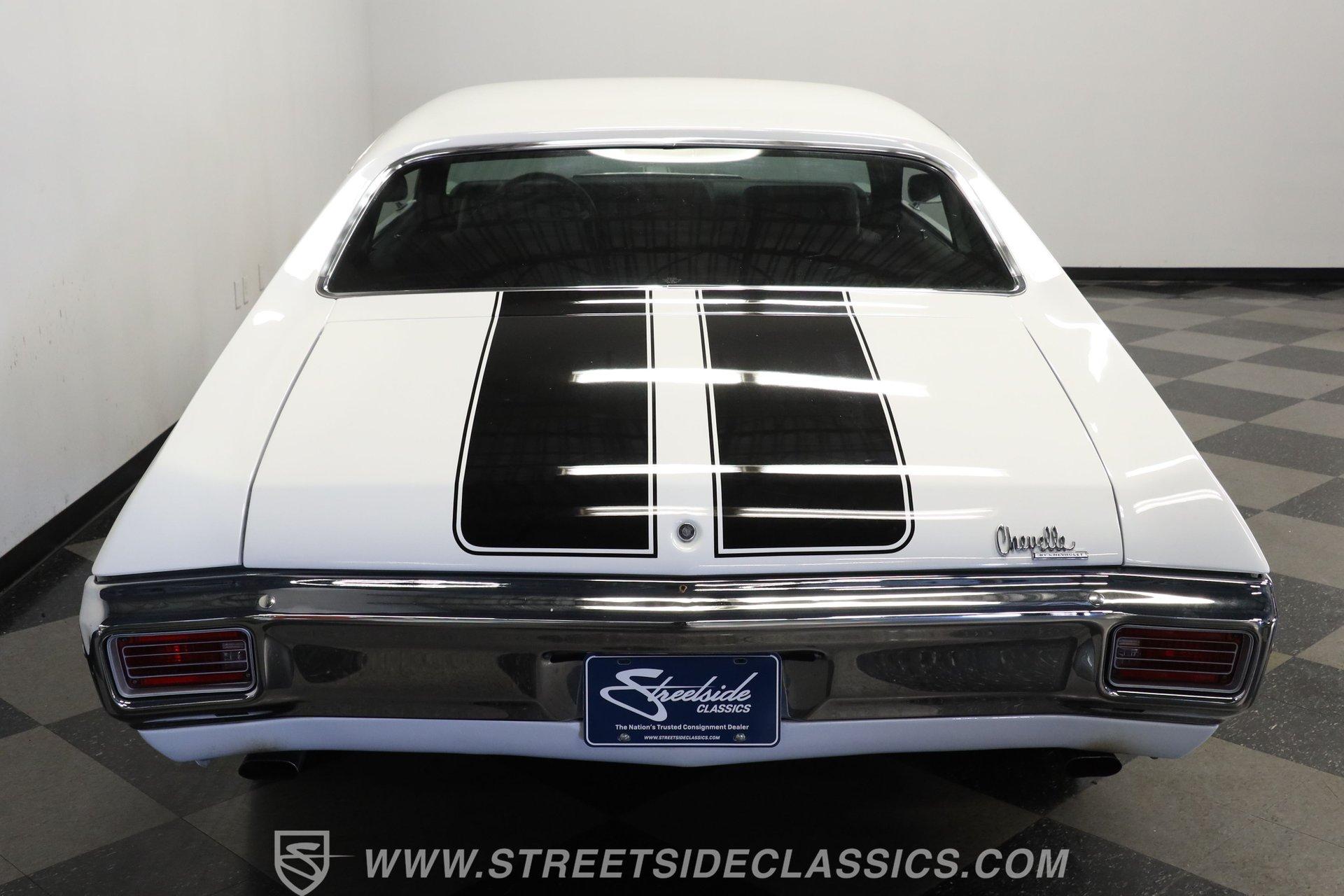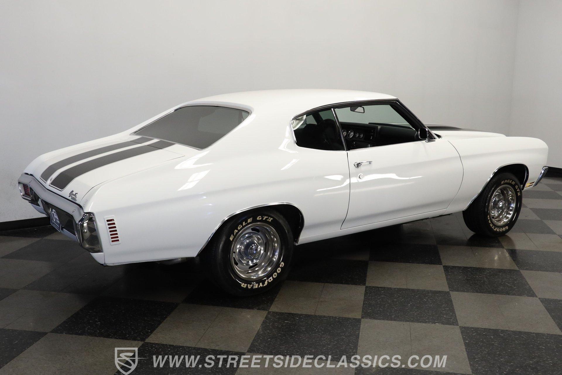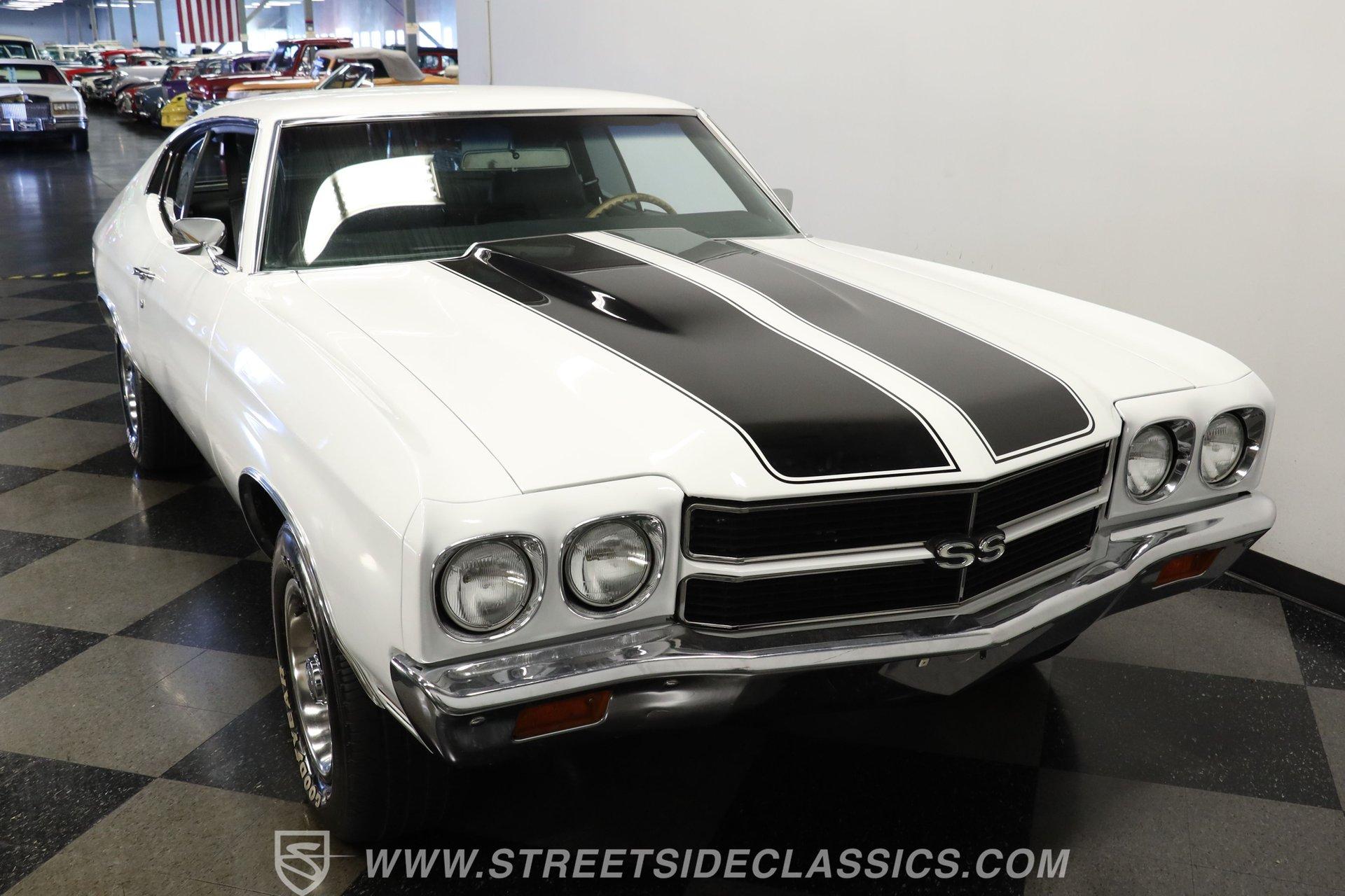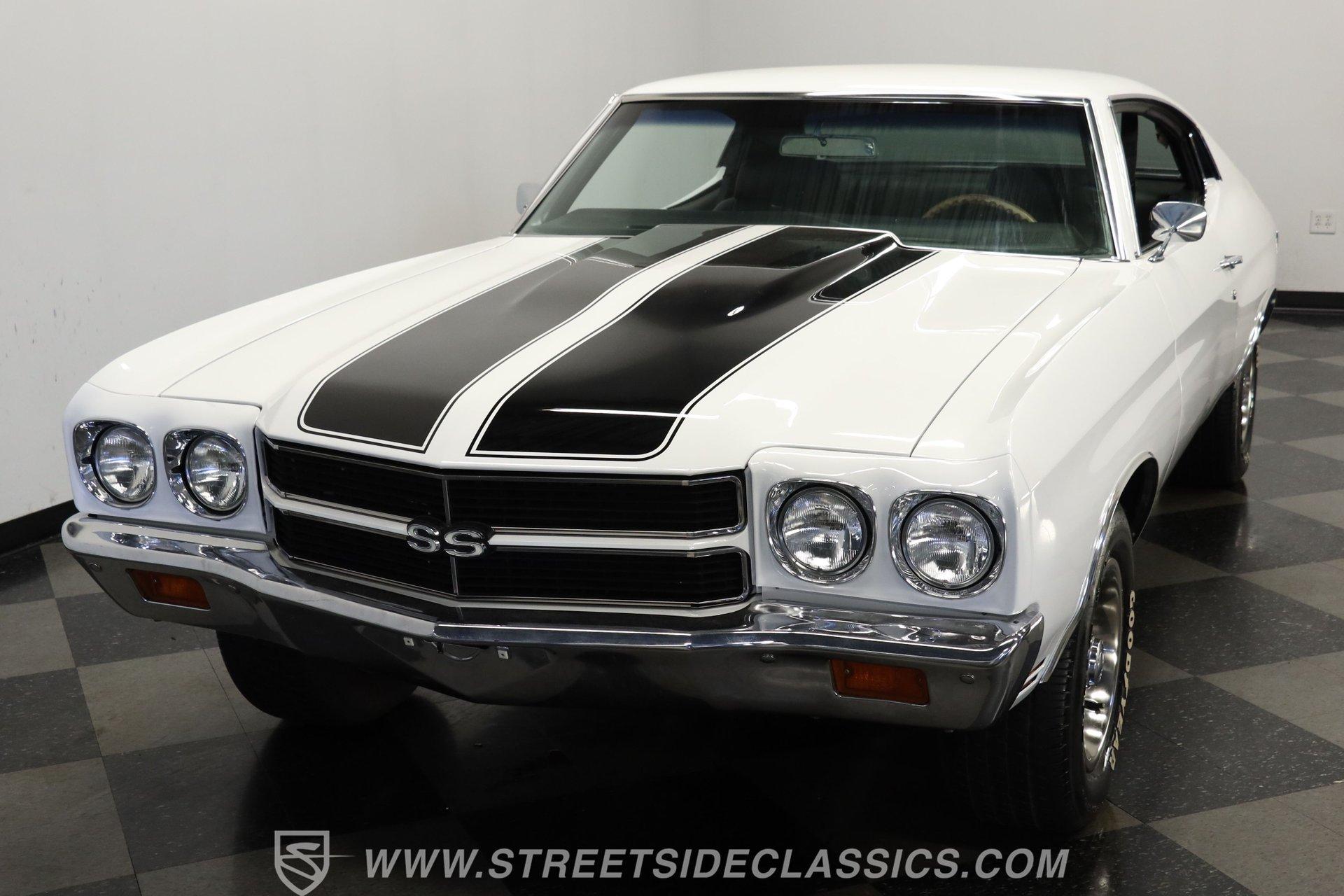 When it comes to the Golden Age of muscle cars, there will never be a unanimous agreement on which car was the king of the era. But, at least in the GM world, many enthusiasts will name the mighty Chevy Chevelle SS as their choice for the ultimate factory hot rod. That is why this 1970 Chevrolet Chevelle SS Tribute exists, and why we are bringing it to you today. Dual full-length black racing stripes set against its brilliant white exterior announce to the world that this car is serious about performance. Inside, we find a well-done black vinyl and suede interior. A center console separates a pair of TMI bucket seats, complemented by matching TMI door panels on either side. A three-spoke power-assisted wood-rimmed steering wheel adds a nice pop of color. In contrast, the six-pod of brushed-aluminum-faced AutoMeter gauges adds a unique look to this Chevelle that we typically don't see in other restored cars. A JBL Bluetooth system offers far more entertainment options than the unit it replaces. At the same time, air conditioning keeps the cabin cool, allowing you to focus on the music coming from the speakers or the exhaust. Under the cowl hood, we find a 350 cubic-inch naturally-aspirated V-8 engine. Featuring a single four-barrel carburetor, long tube headers, and FlowMaster dual-exhaust, this powerful small block sounds every bit a Golden Age motor should. That power is sent through a TCI TH350 three-speed automatic transmission before heading out to the ten-bolt rear. HIGHLIGHTS: Full White Repaint Black Racing Stripes Cowl Hood 350 CID V8 Single Four Barrel Carb Long Tubes Dual Exhaust FlowMasters TCI TH350 Three Speed Auto 10 Bolt Rear Factory Style Suspension Rallye Wheels Goodyear Tires Power Brakes Front Disc Brakes Power Steering Redone Interior Upgraded TMI Seats Upgraded TMI Door Panels Wood Rimmed Wheel AutoMeter Gauges JBL Bluetooth Stereo Owner's Manual This 1970 Chevrolet Chevelle SS Tribute rides on a factory-style suspension, and 15-inch Rallye wheels shod in 255/60R-15 Goodyear Eagle GT2 tires. Power brakes feature a set of front discs, ready to scrub off speed whenever called upon. So, while there will never be a fully agreed-upon king of muscle cars, this Chevelle SS tribute shows us why the big Chevy has been in the conversation for over half a century. Call today! We can assist you with getting an Extended Vehicle Service Plan from Freedom Warranty, which provides comprehensive coverage that can save thousands of dollars on unexpected repairs. Inquire for more details and pricing!