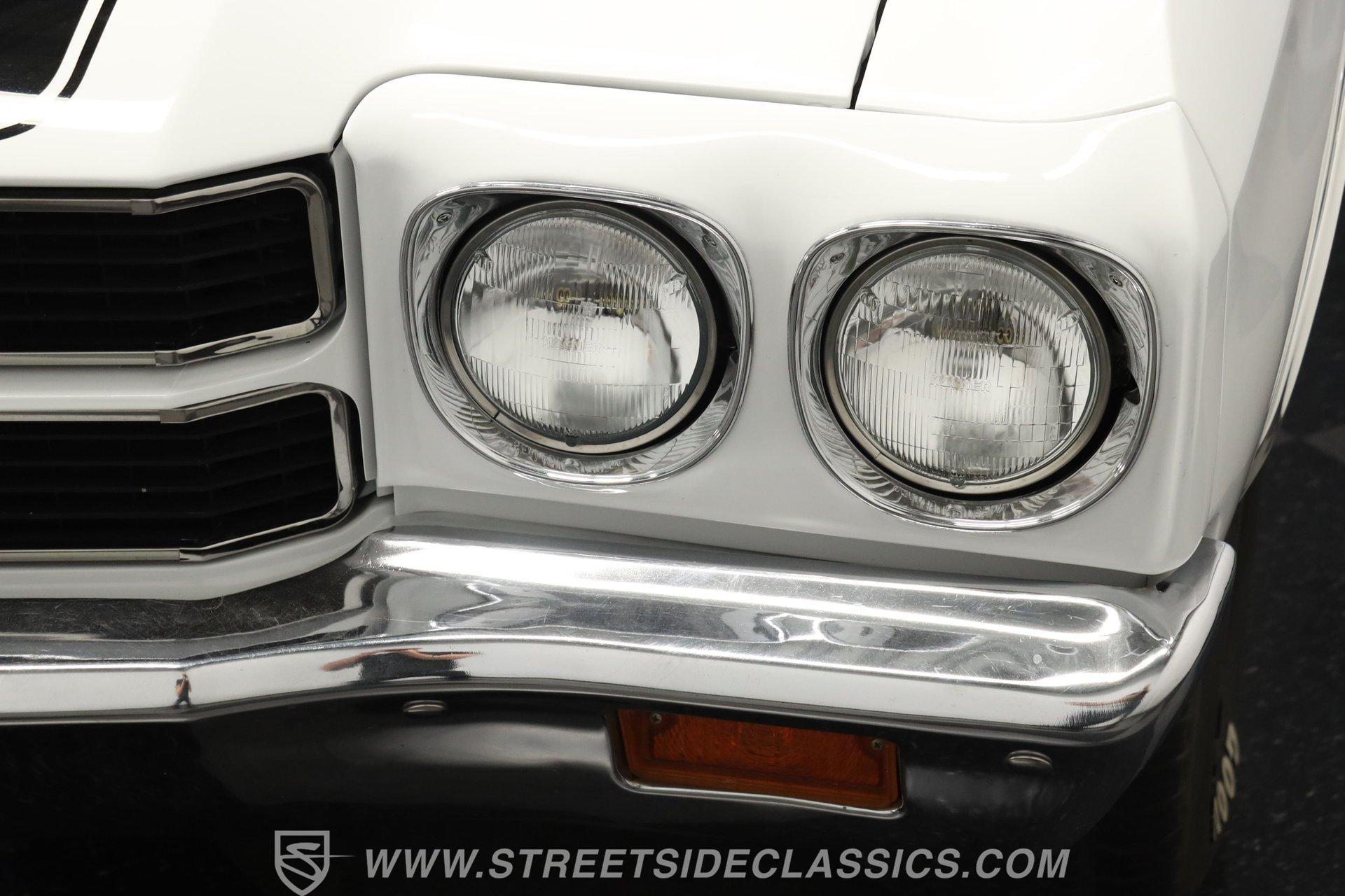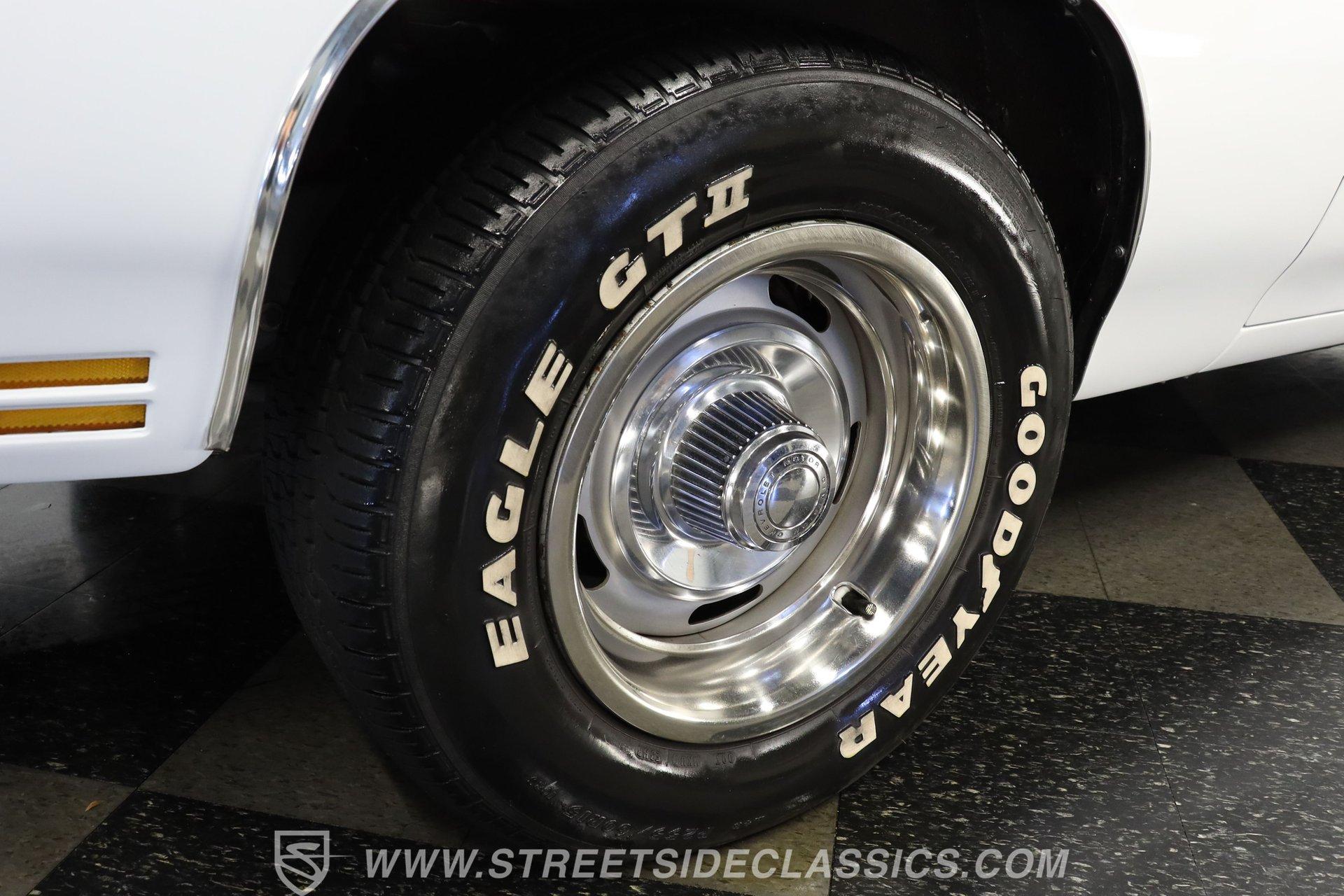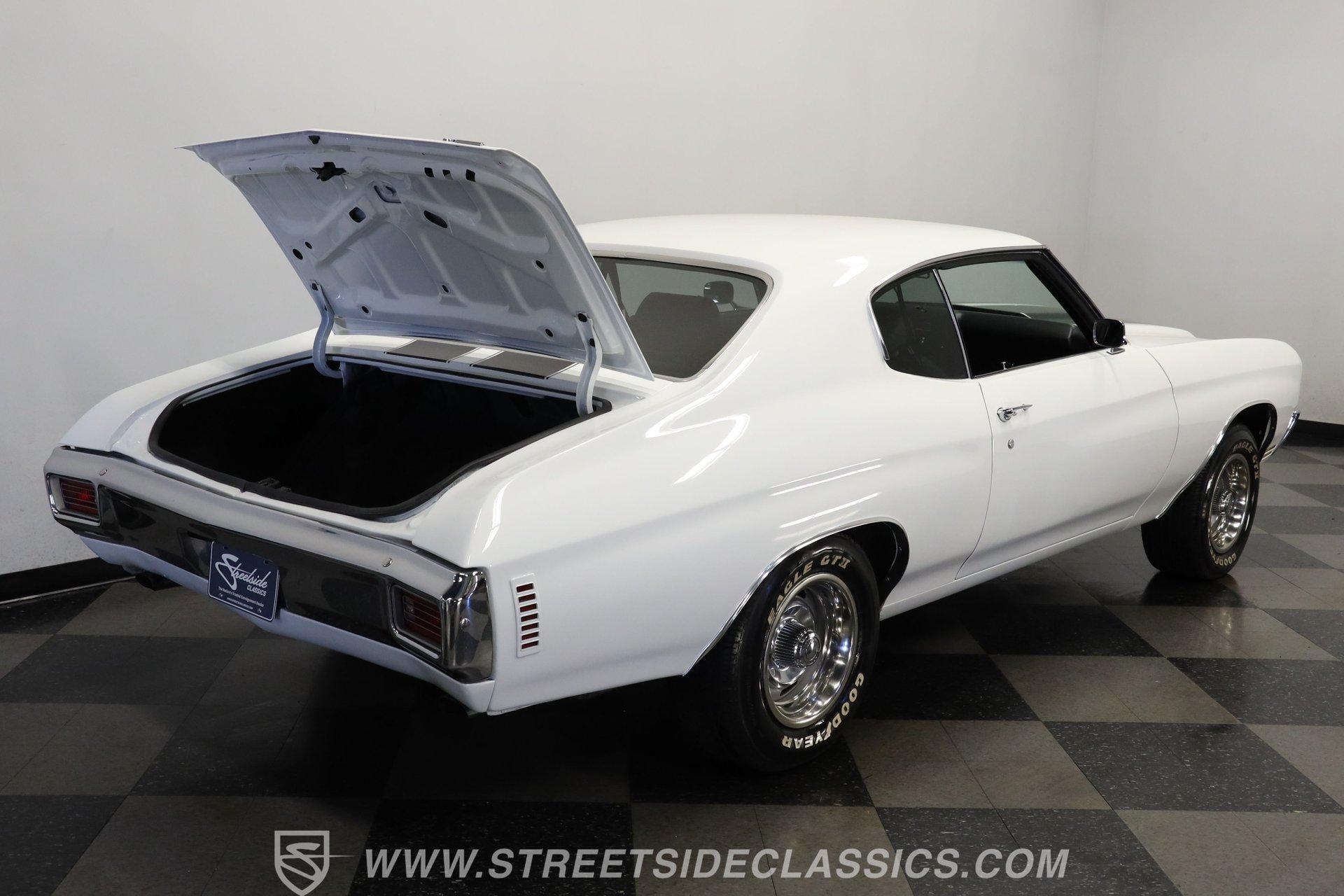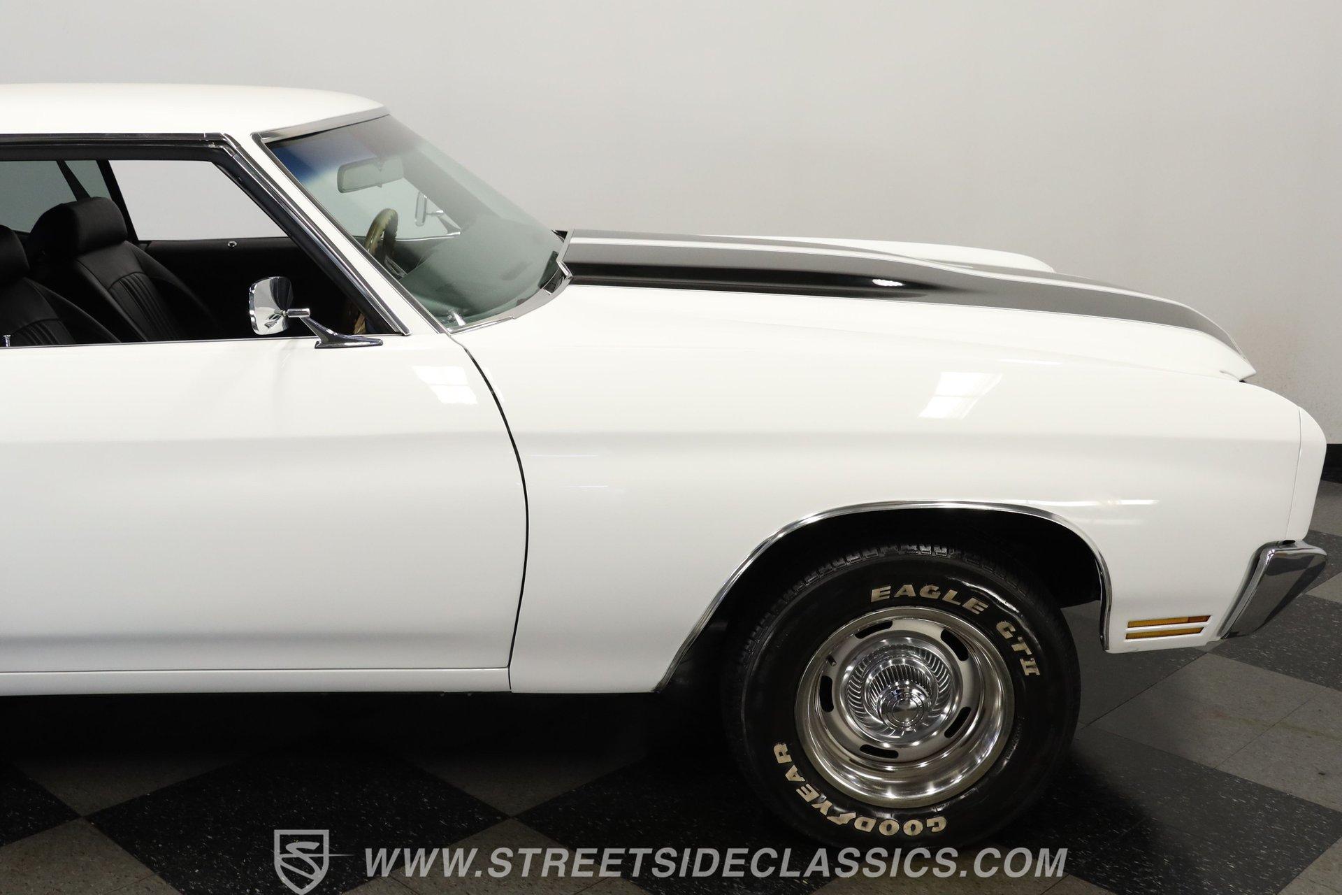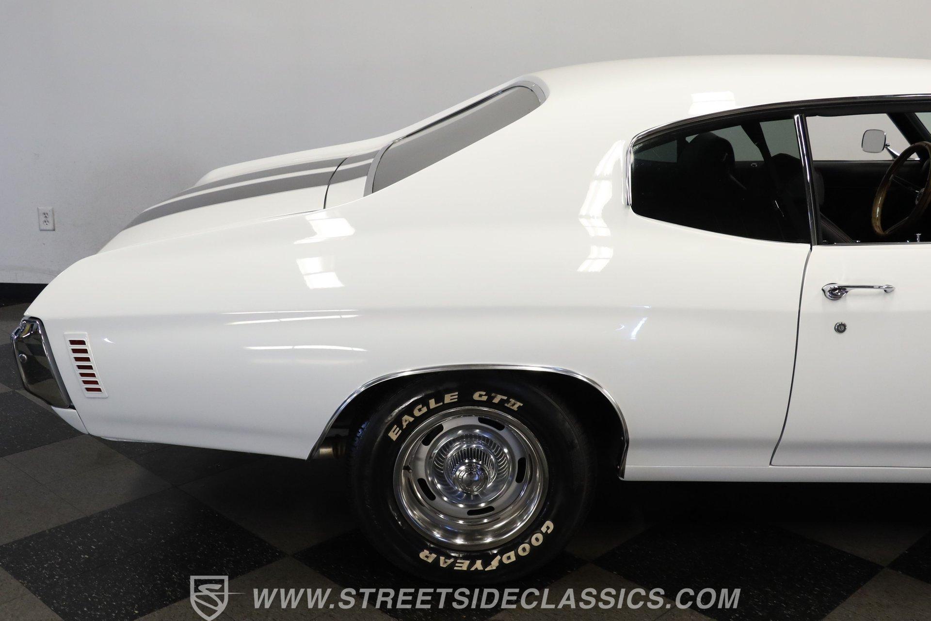 When it comes to the Golden Age of muscle cars, there will never be a unanimous agreement on which car was the king of the era. But, at least in the GM world, many enthusiasts will name the mighty Chevy Chevelle SS as their choice for the ultimate factory hot rod. That is why this 1970 Chevrolet Chevelle SS Tribute exists, and why we are bringing it to you today. Dual full-length black racing stripes set against its brilliant white exterior announce to the world that this car is serious about performance. Inside, we find a well-done black vinyl and suede interior. A center console separates a pair of TMI bucket seats, complemented by matching TMI door panels on either side. A three-spoke power-assisted wood-rimmed steering wheel adds a nice pop of color. In contrast, the six-pod of brushed-aluminum-faced AutoMeter gauges adds a unique look to this Chevelle that we typically don't see in other restored cars. A JBL Bluetooth system offers far more entertainment options than the unit it replaces. At the same time, air conditioning keeps the cabin cool, allowing you to focus on the music coming from the speakers or the exhaust. Under the cowl hood, we find a 350 cubic-inch naturally-aspirated V-8 engine. Featuring a single four-barrel carburetor, long tube headers, and FlowMaster dual-exhaust, this powerful small block sounds every bit a Golden Age motor should. That power is sent through a TCI TH350 three-speed automatic transmission before heading out to the ten-bolt rear. HIGHLIGHTS: Full White Repaint Black Racing Stripes Cowl Hood 350 CID V8 Single Four Barrel Carb Long Tubes Dual Exhaust FlowMasters TCI TH350 Three Speed Auto 10 Bolt Rear Factory Style Suspension Rallye Wheels Goodyear Tires Power Brakes Front Disc Brakes Power Steering Redone Interior Upgraded TMI Seats Upgraded TMI Door Panels Wood Rimmed Wheel AutoMeter Gauges JBL Bluetooth Stereo Owner's Manual This 1970 Chevrolet Chevelle SS Tribute rides on a factory-style suspension, and 15-inch Rallye wheels shod in 255/60R-15 Goodyear Eagle GT2 tires. Power brakes feature a set of front discs, ready to scrub off speed whenever called upon. So, while there will never be a fully agreed-upon king of muscle cars, this Chevelle SS tribute shows us why the big Chevy has been in the conversation for over half a century. Call today! We can assist you with getting an Extended Vehicle Service Plan from Freedom Warranty, which provides comprehensive coverage that can save thousands of dollars on unexpected repairs. Inquire for more details and pricing!