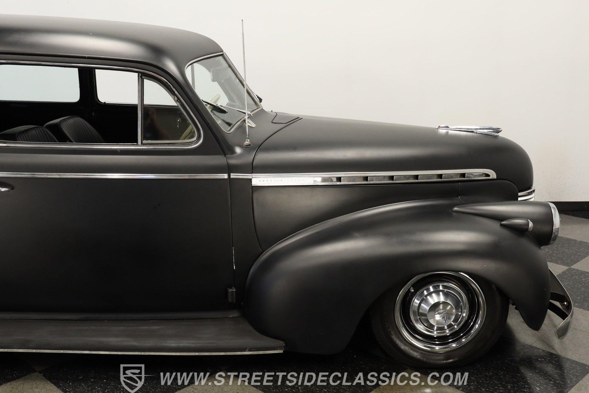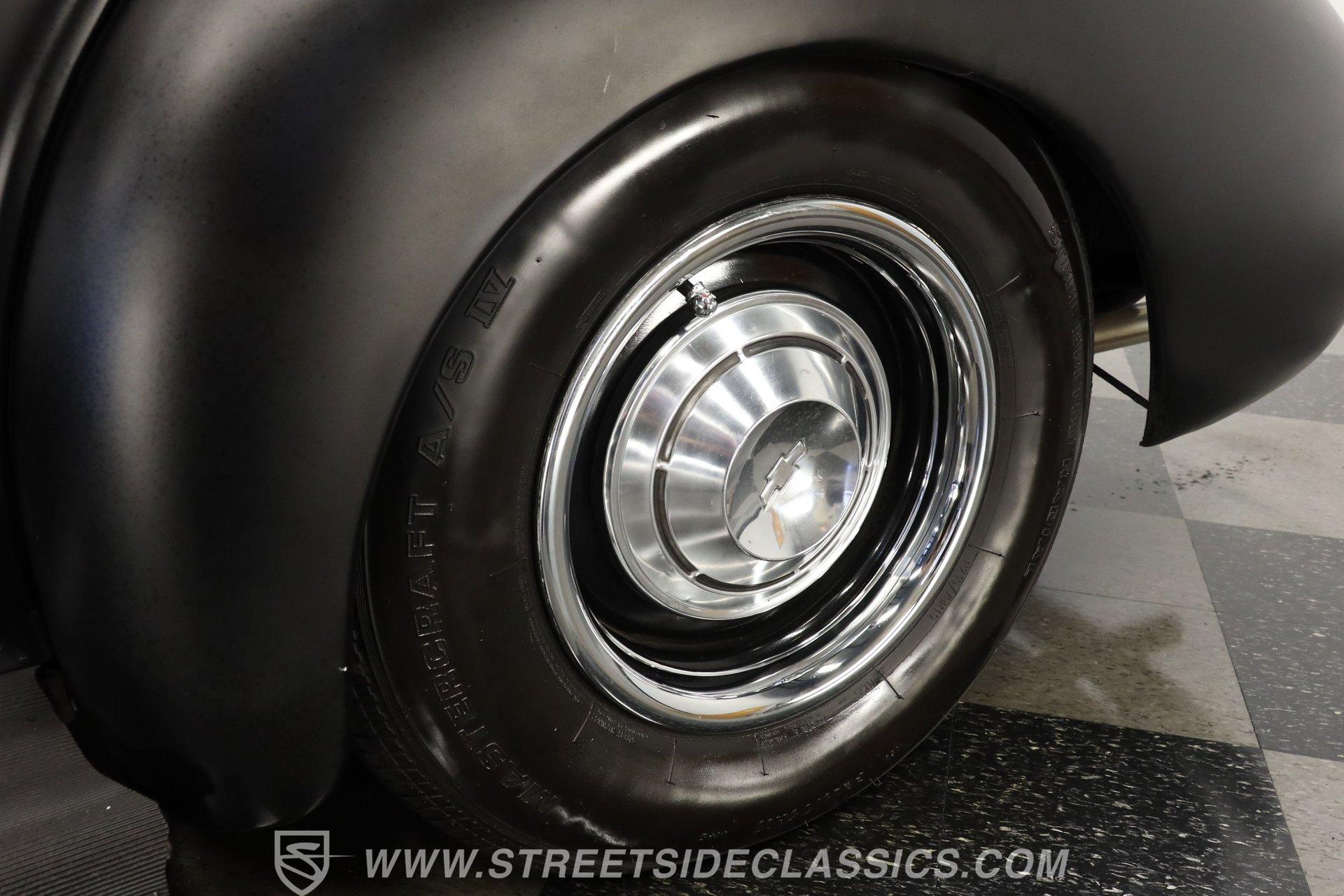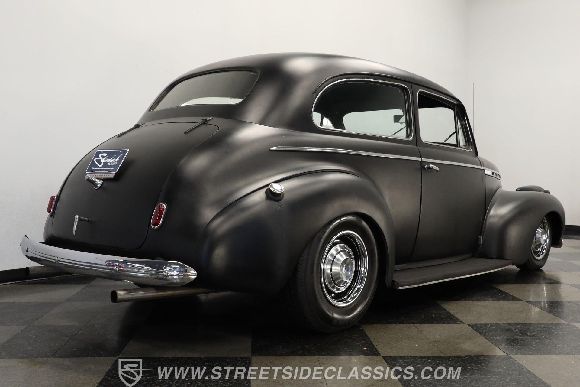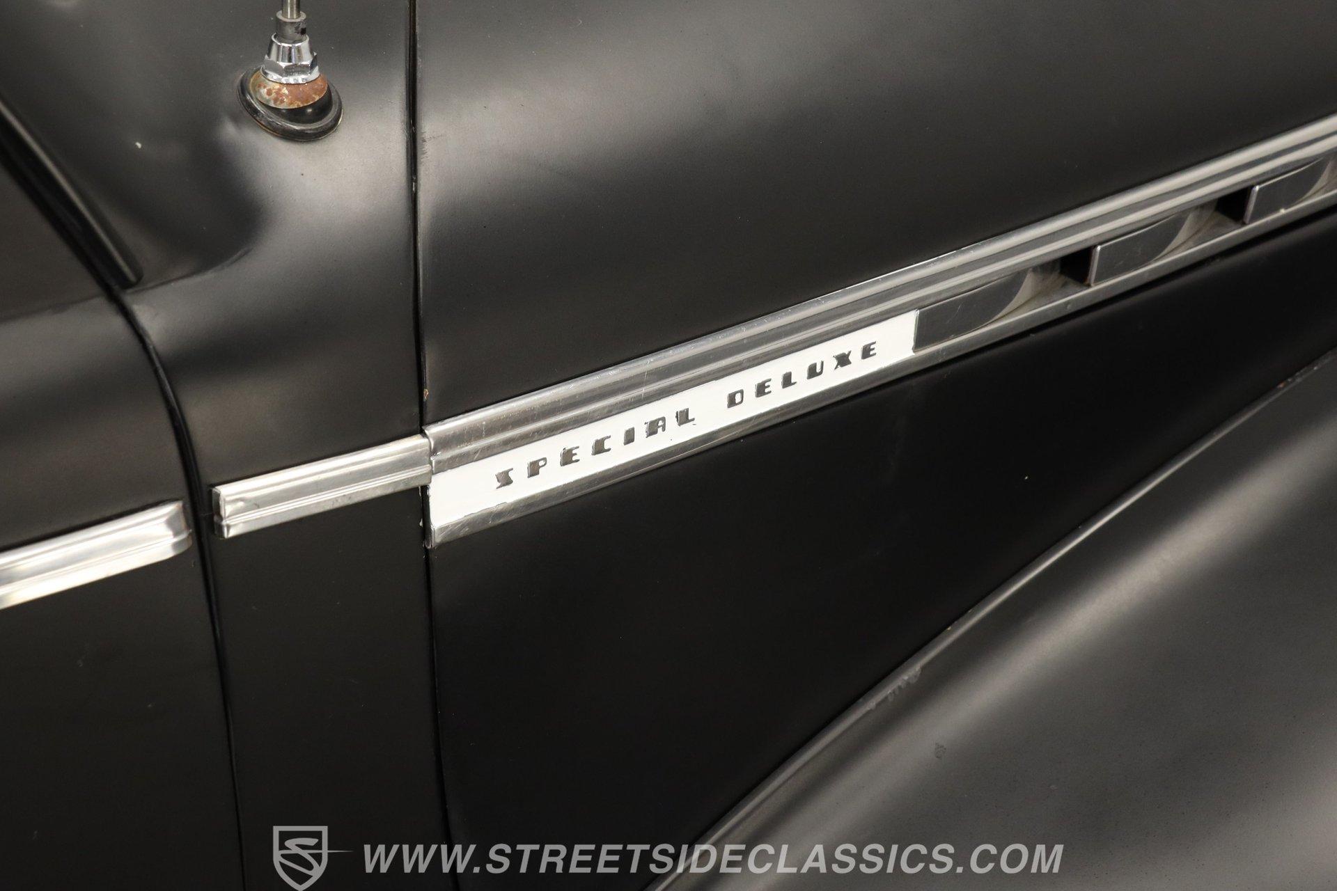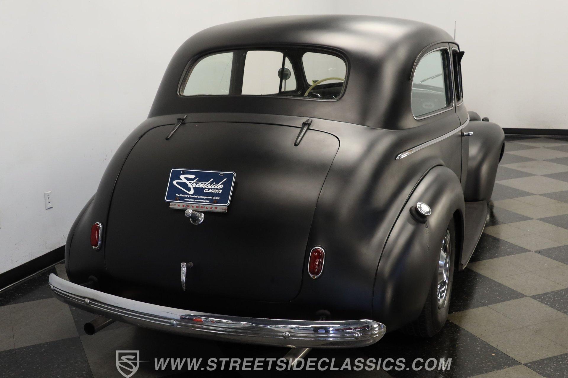 Draped in matte black paint, with its steel body still in largely original configuration and its substantial collection of chrome body trim shining brightly, this 1940 Chevrolet Special Deluxe is a great-looking pre-war classic. As you circle the car, you may spot a few areas that will require a bit of attention to bring them back to top form, but none of them represent major undertakings, and beneath this seldom-seen Chevy's well-aligned exterior sits an array of modern mechanical components that combine to afford a modern experience behind the wheel. The black vinyl interior features a pair of modern bucket seats at its center to make for a comfortable driving experience and, as you look around, you'll likely notice how all the components inside these doors still retain their deep pigmentation. The distinctive ivory-colored steering wheel perched on its column offers a good bit of contrast to its surroundings, and just beyond it, there's an array of modern gauges seamlessly recessed into the padded dash area. A high stick floor shifter puts control of the automatic transmission within easy reach. Raise the long, tapered hood, and you'll see an engine compartment that presents nicely, at the center of which lurks a 350-cubic-inch BluePrint V8 that's been outfitted with an Edelbrock 4-barrel carburetor and an Offenhauser aluminum intake to optimize its performance. Having logged only 2600 miles since its installation, the engine is just now emerging from its break-in phase and exhales into long tube headers leading out to a pair of Turbo mufflers that create a smooth, yet suitably aggressive exhaust note. An added small electric fan mounted on the radiator combines with the belt-driven fan already in place to keep operating conditions in check under more demanding motoring conditions. Power rack-and-pinion steering makes this vintage Chevy easy to navigate, while power brakes - which include slotted and drilled rotors up front - add fade-resistant stopping ability. HIGHLIGHTS BLUEPRINT 350-CUBIC-INCH V8 EDELBROCK 4-BARREL CARBURETOR OFFENHAUSER ALUMINUM INTAKE MANIFOLD 3-SPEED AUTOMATIC TH350 TRANSMISSION POWER RACK AND PINION STEERING POWER BRAKES, WITH DISCS UP FRONT LONG TUBE HEADERS DUAL EXHAUST WITH TURBO MUFFLERS TUBULAR A-ARM FRONT SUSPENSION STRIKING MATTE BLACK PAINT BLACK VINYL INTERIOR BUCKET SEATS FLOOR SHIFTER 15" PAINTED WHEELS WITH CHROME CENTERS An excellent example of pre-war automotive style mixed with some well-chosen aftermarket upgrades designed to improve drivability, this 1940 Chevrolet Special Deluxe cruises on a set of 15" painted wheels with chrome, bow-tie badged centers, and would be a great fit for the collector searching for a combination of a vintage appearance and modern drivability. Call today! We can assist you with getting an Extended Vehicle Service Plan from Freedom Warranty, which provides comprehensive coverage that can save thousands of dollars on unexpected repairs. Inquire for more details and pricing!