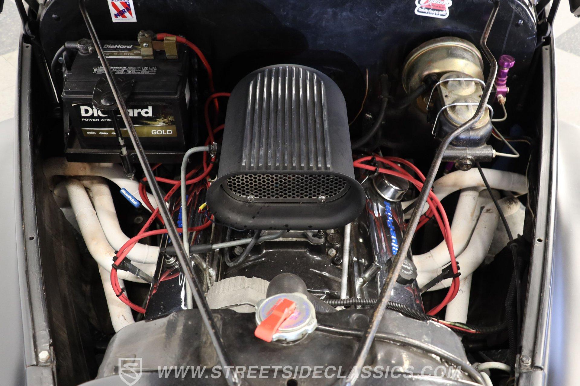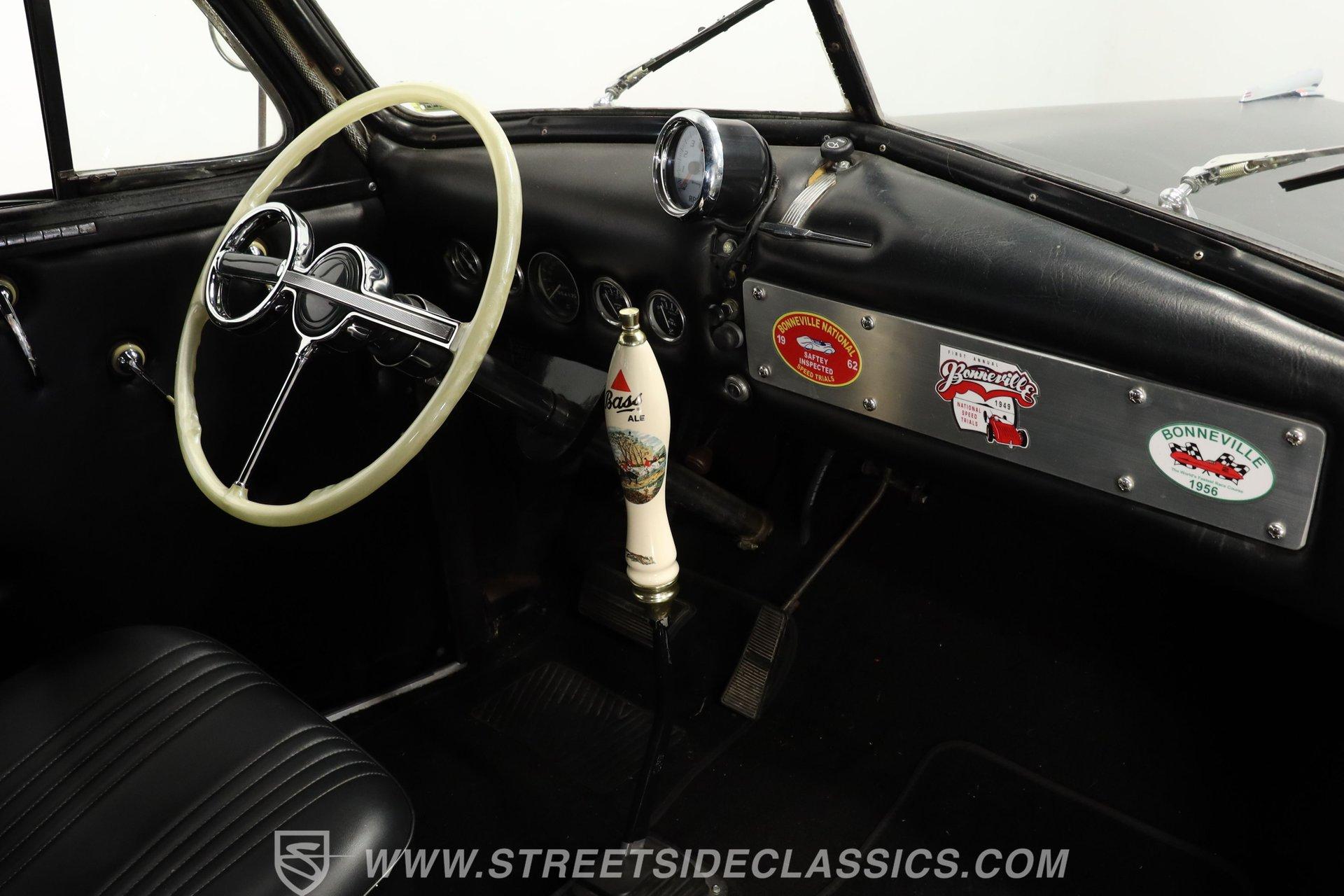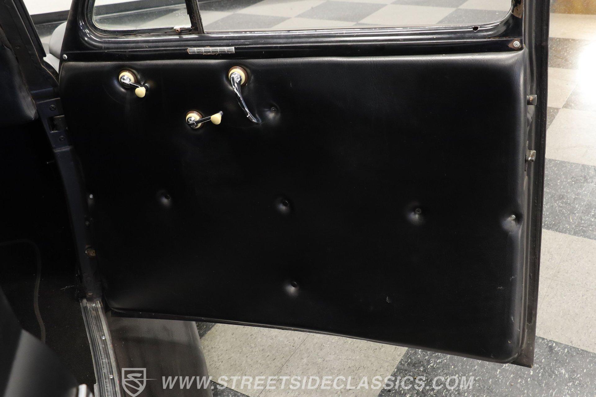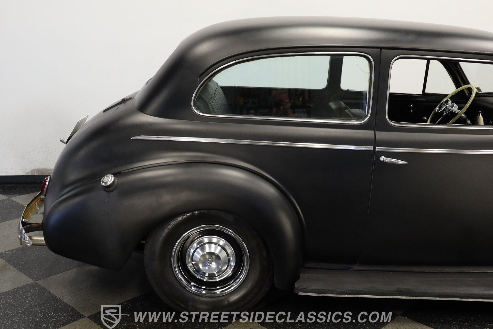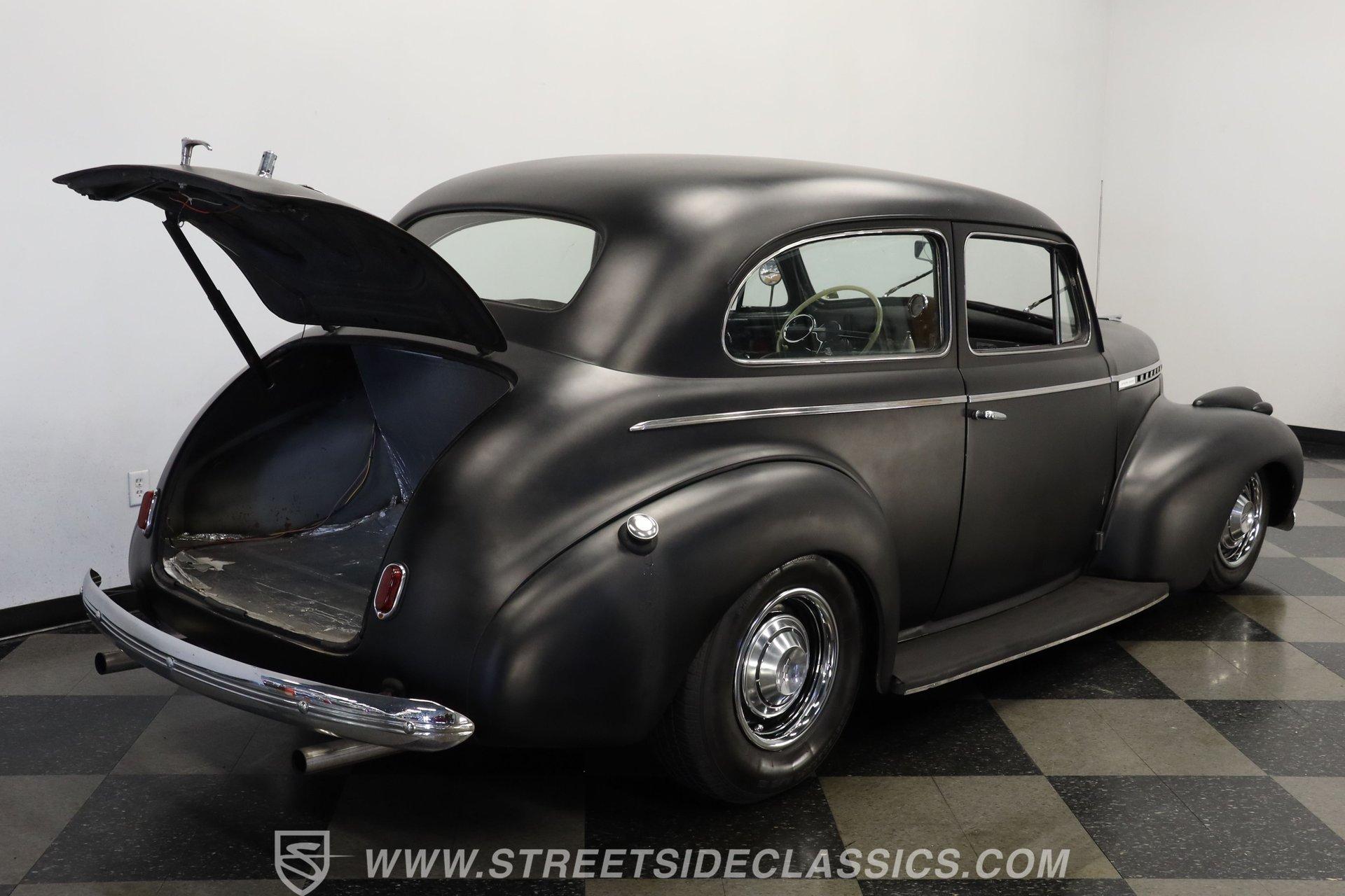 Draped in matte black paint, with its steel body still in largely original configuration and its substantial collection of chrome body trim shining brightly, this 1940 Chevrolet Special Deluxe is a great-looking pre-war classic. As you circle the car, you may spot a few areas that will require a bit of attention to bring them back to top form, but none of them represent major undertakings, and beneath this seldom-seen Chevy's well-aligned exterior sits an array of modern mechanical components that combine to afford a modern experience behind the wheel. The black vinyl interior features a pair of modern bucket seats at its center to make for a comfortable driving experience and, as you look around, you'll likely notice how all the components inside these doors still retain their deep pigmentation. The distinctive ivory-colored steering wheel perched on its column offers a good bit of contrast to its surroundings, and just beyond it, there's an array of modern gauges seamlessly recessed into the padded dash area. A high stick floor shifter puts control of the automatic transmission within easy reach. Raise the long, tapered hood, and you'll see an engine compartment that presents nicely, at the center of which lurks a 350-cubic-inch BluePrint V8 that's been outfitted with an Edelbrock 4-barrel carburetor and an Offenhauser aluminum intake to optimize its performance. Having logged only 2600 miles since its installation, the engine is just now emerging from its break-in phase and exhales into long tube headers leading out to a pair of Turbo mufflers that create a smooth, yet suitably aggressive exhaust note. An added small electric fan mounted on the radiator combines with the belt-driven fan already in place to keep operating conditions in check under more demanding motoring conditions. Power rack-and-pinion steering makes this vintage Chevy easy to navigate, while power brakes - which include slotted and drilled rotors up front - add fade-resistant stopping ability. HIGHLIGHTS BLUEPRINT 350-CUBIC-INCH V8 EDELBROCK 4-BARREL CARBURETOR OFFENHAUSER ALUMINUM INTAKE MANIFOLD 3-SPEED AUTOMATIC TH350 TRANSMISSION POWER RACK AND PINION STEERING POWER BRAKES, WITH DISCS UP FRONT LONG TUBE HEADERS DUAL EXHAUST WITH TURBO MUFFLERS TUBULAR A-ARM FRONT SUSPENSION STRIKING MATTE BLACK PAINT BLACK VINYL INTERIOR BUCKET SEATS FLOOR SHIFTER 15" PAINTED WHEELS WITH CHROME CENTERS An excellent example of pre-war automotive style mixed with some well-chosen aftermarket upgrades designed to improve drivability, this 1940 Chevrolet Special Deluxe cruises on a set of 15" painted wheels with chrome, bow-tie badged centers, and would be a great fit for the collector searching for a combination of a vintage appearance and modern drivability. Call today! We can assist you with getting an Extended Vehicle Service Plan from Freedom Warranty, which provides comprehensive coverage that can save thousands of dollars on unexpected repairs. Inquire for more details and pricing!