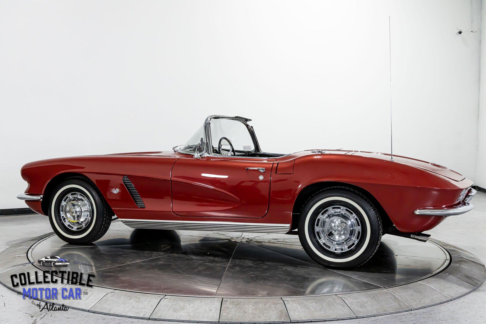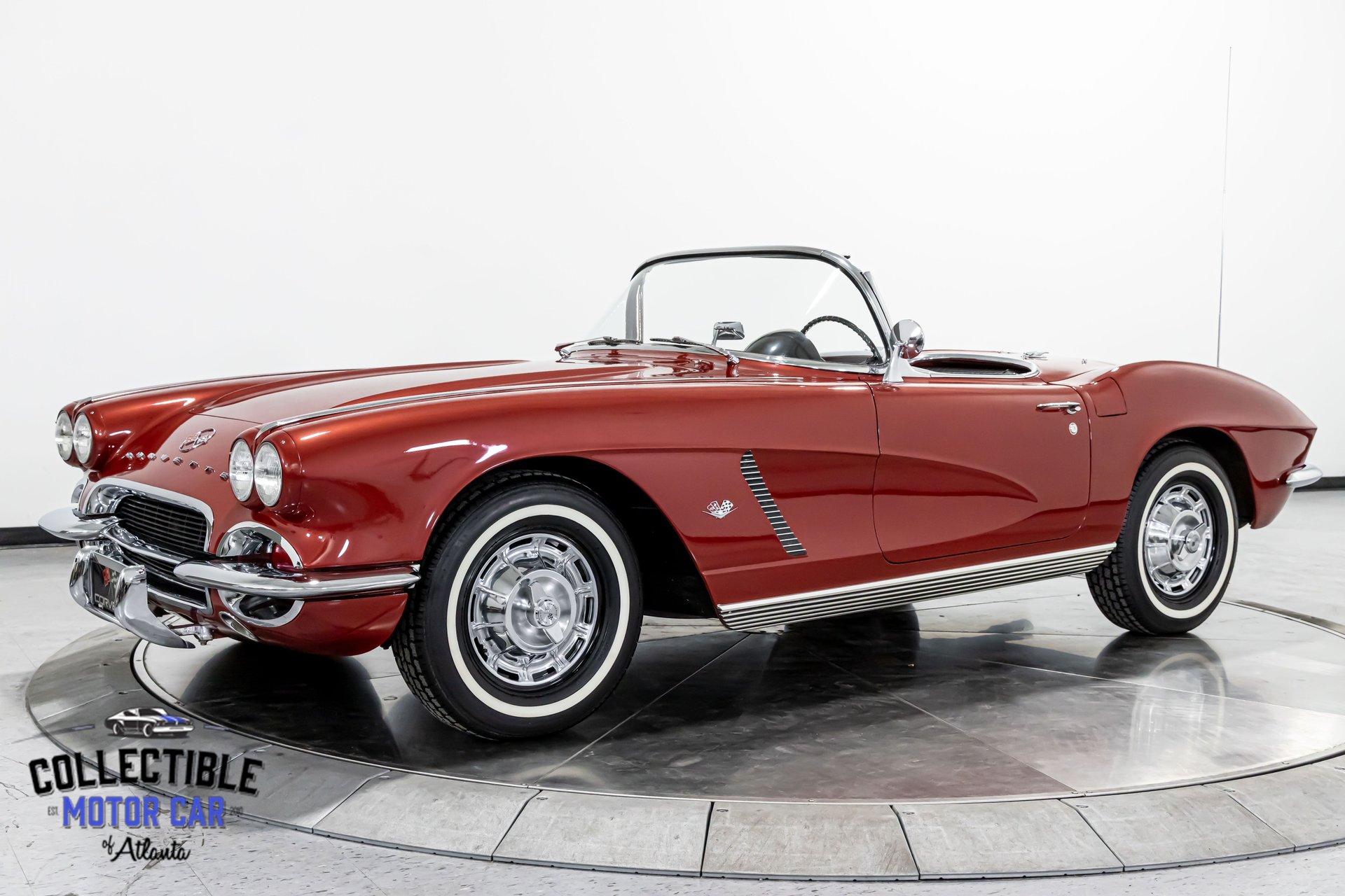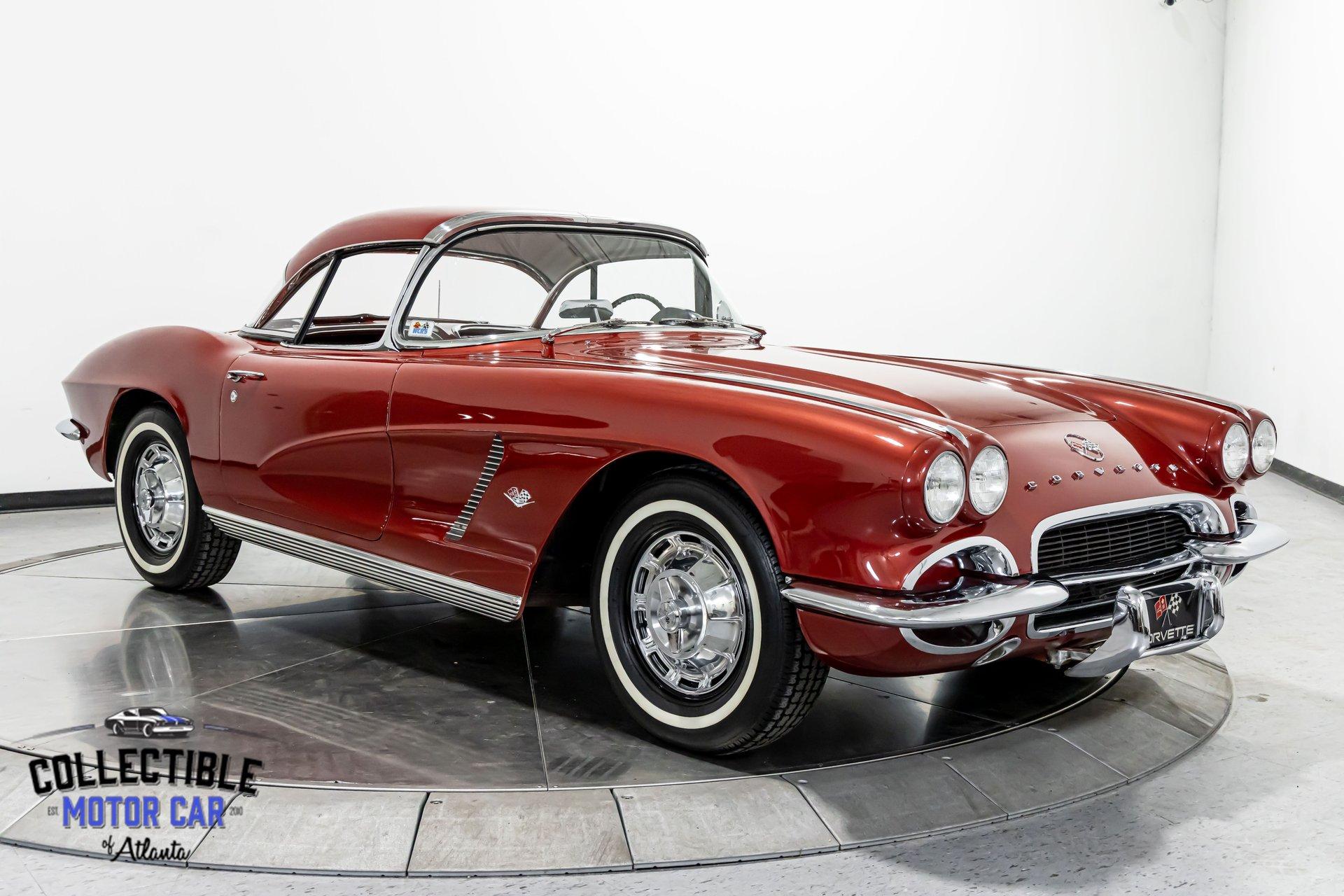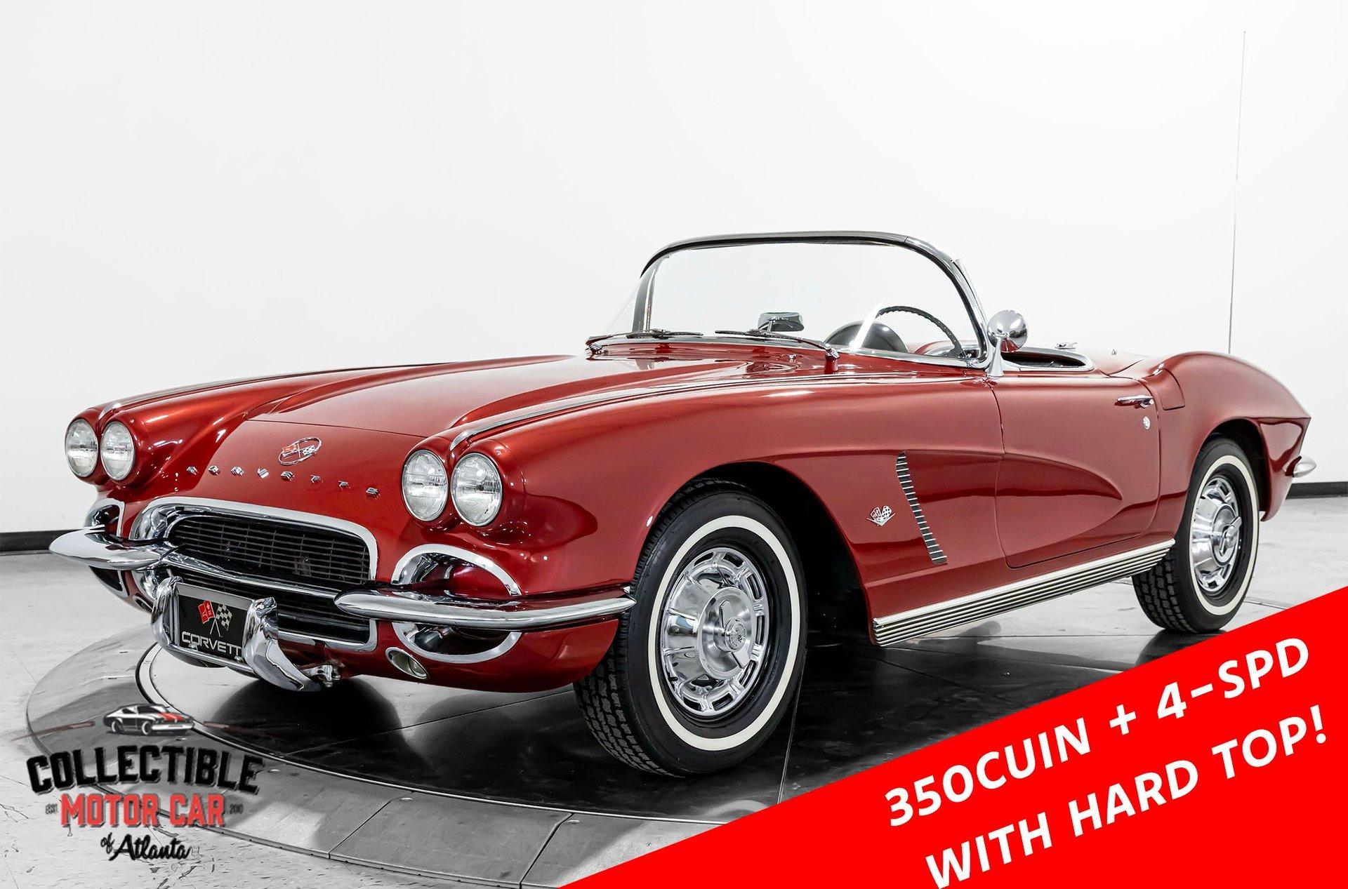 1962 Chevrolet Corvette Honduras Maroon 4-Speed The final year of the first-generation Corvette (C1) is also one of the most beautiful—crisp body lines, toothy grille, and quad tail lamps that hint at the Sting Ray era to come. Finished in striking Honduras Maroon with gleaming brightwork and wide whitewalls, this ’62 presents as the quintessential American roadster, enhanced with tasteful performance upgrades that make it a joy to drive. Highlights Replacement Small-Block V8 (350 ci) – professionally built in Southern California (per prior owner notes) with custom headers and a Holley 750 CFM double-pumper; an easy-starting, strong-pulling package that feels right at home in a C1. Estimated 400+ HP tune (seller notes) with the sound and throttle response enthusiasts expect. Borg-Warner T-10 4-speed manual – the right gearbox for a C1; crisp shifts and great highway manners. Auxiliary body-color hardtop shown; classic roadster stance with removable-top versatility. Wide whitewall radials (P205/75R15) on correct bright factory wheels and caps. Clean, tidy engine bay with finned Corvette valve covers and period-correct appearance. Well-sorted driver: smooth clutch take-up, confident brakes, tracks straight, and runs cool. Trunk full of extras: period manuals, catalogs, spare parts, and Corvette literature add provenance and value (see photos). Exterior The Honduras Maroon paint shows deep gloss and even panel reflections over straight fiberglass. Chrome bumpers, spears, and trim present beautifully, and the iconic coves wear correct crossed-flags emblems. Panel fit is consistent, glass is clear, and the removable hardtop’s stainless trim is bright and tight. Interior Classic black cockpit with original-style seats and door panels, factory steering wheel, and the signature twin-hood dash. Gauges are clean and legible, switchgear operates as it should, and the overall presentation is honest and inviting—exactly what you want in a C1 you’ll actually drive. Drivetrain & Performance Under the hood, the upgraded 350 V8 breathes through headers and a Holley 750 for strong mid-range torque and an authoritative small-block soundtrack. Coupled with the T-10 4-speed, this car pulls hard, shifts cleanly, and cruises comfortably. It’s the essence of early-sixties Corvette performance with modern reliability baked in. Undercarriage The underside presents tidy and driver-ready, with solid structure, clean exhaust, proper routing, and no drama. It’s the kind of chassis you won’t hesitate to enjoy on weekend tours or local cruise-ins. Why This ’62 Last year of the C1—collectible styling with the most refined driving experience of the solid-axle era Turn-key upgrades that enhance drivability without straying from the classic look Auxiliary hardtop + literature/parts cache that sweeten the package for the next caretaker Specs Engine: 350ci small-block V8 (performance build with Holley 750 & headers) Transmission: Borg-Warner T-10 4-speed manual Mileage: 85,232 (TMU) Exterior: Honduras Maroon Interior: Black Offered by Collectible Motorcar of Atlanta We handle financing, trades, and enclosed shipping nationwide. Have questions or need a detailed walk-around video? Call/text our team will be happy to help. This is a beautiful, driver-focused C1 you’ll be proud to show and even happier to drive—don’t miss it.