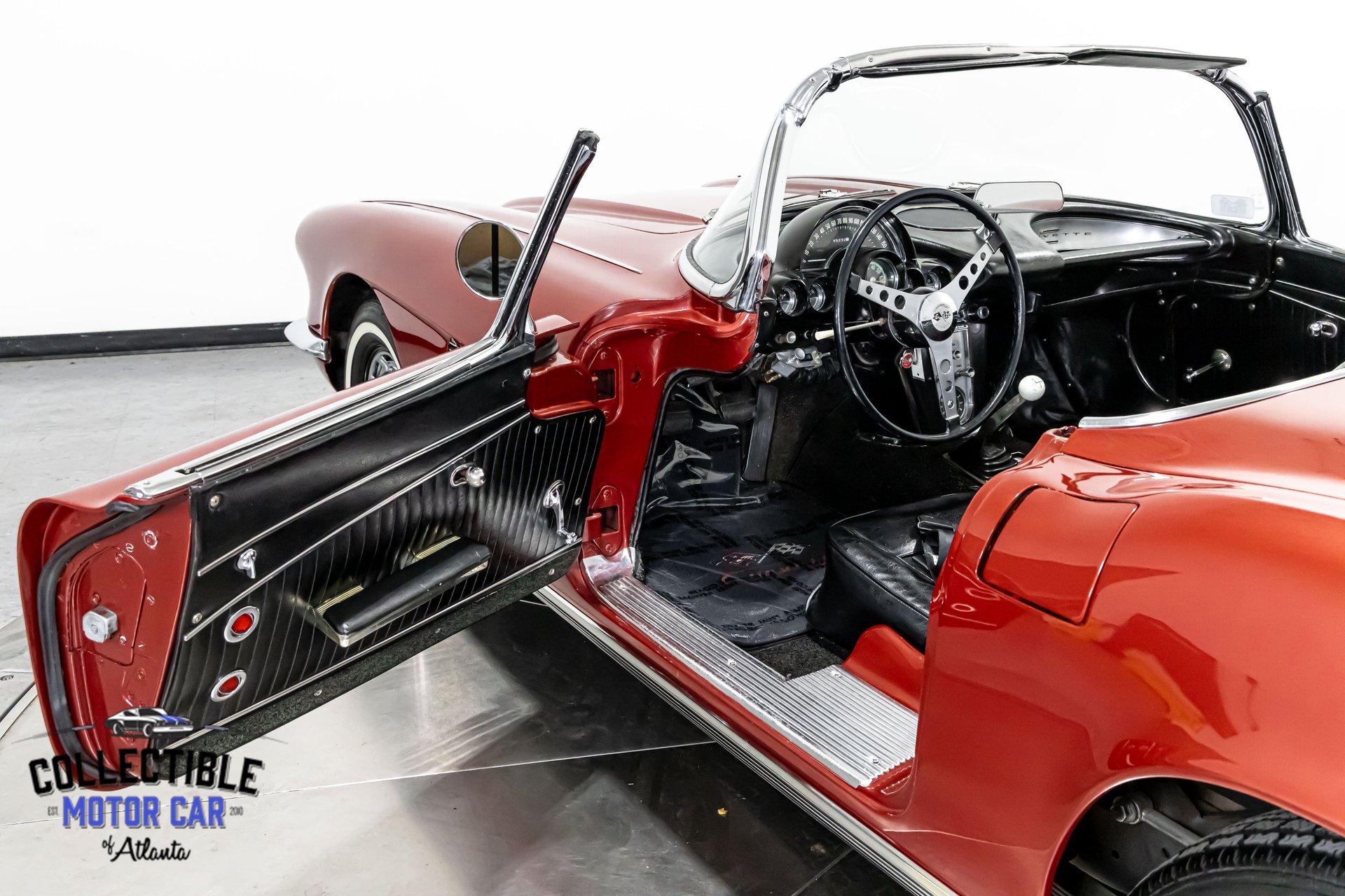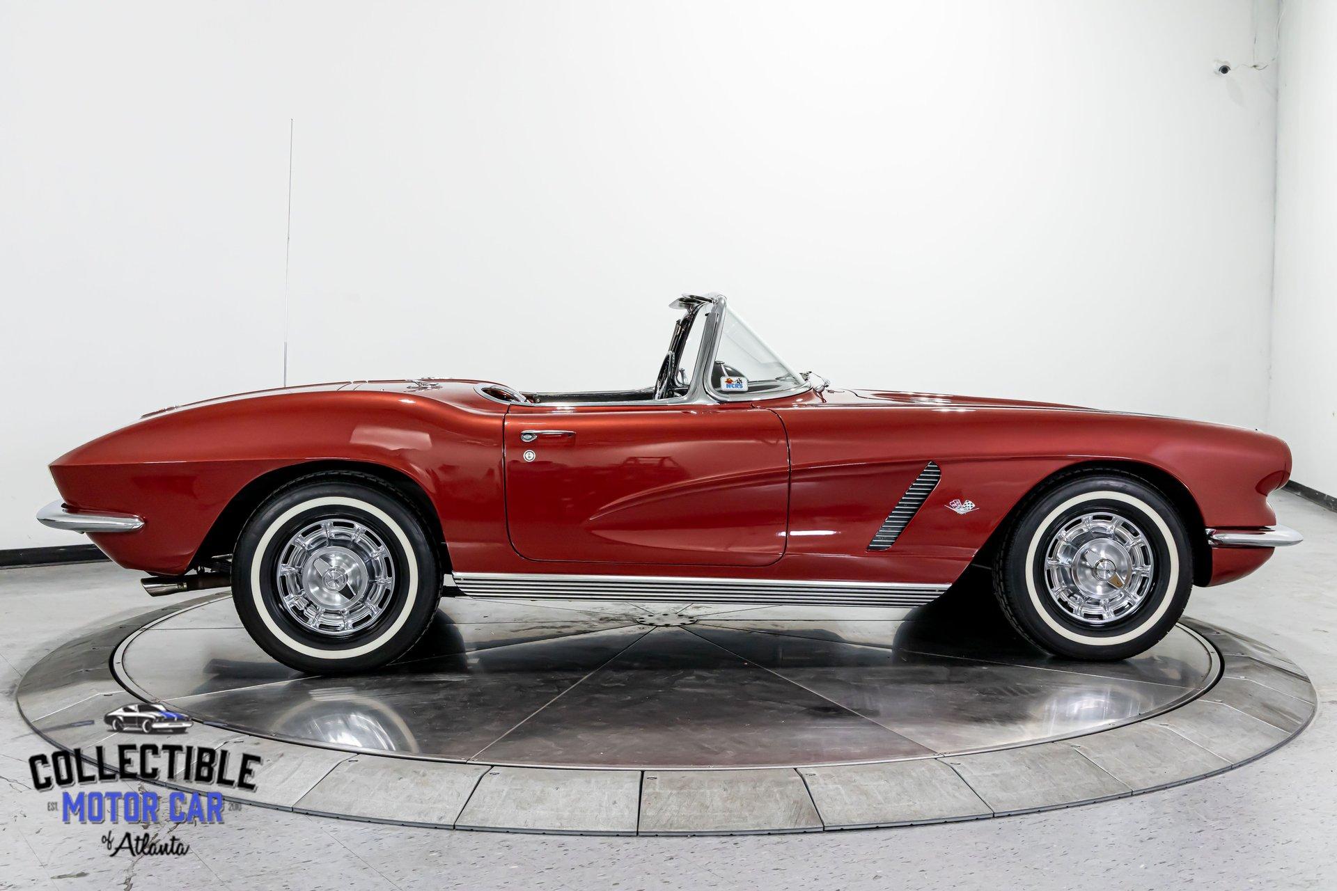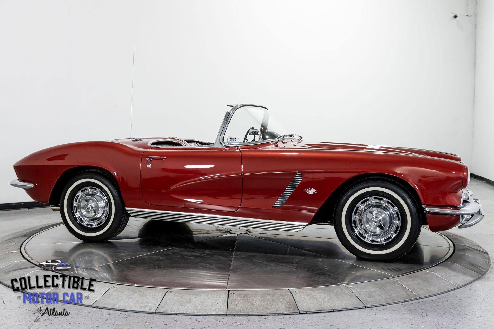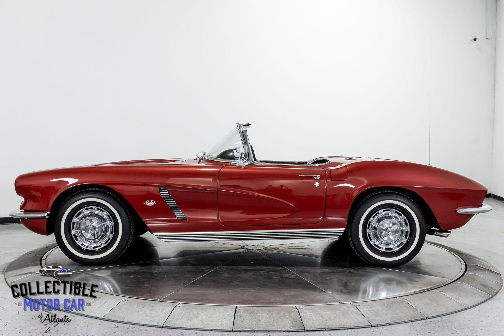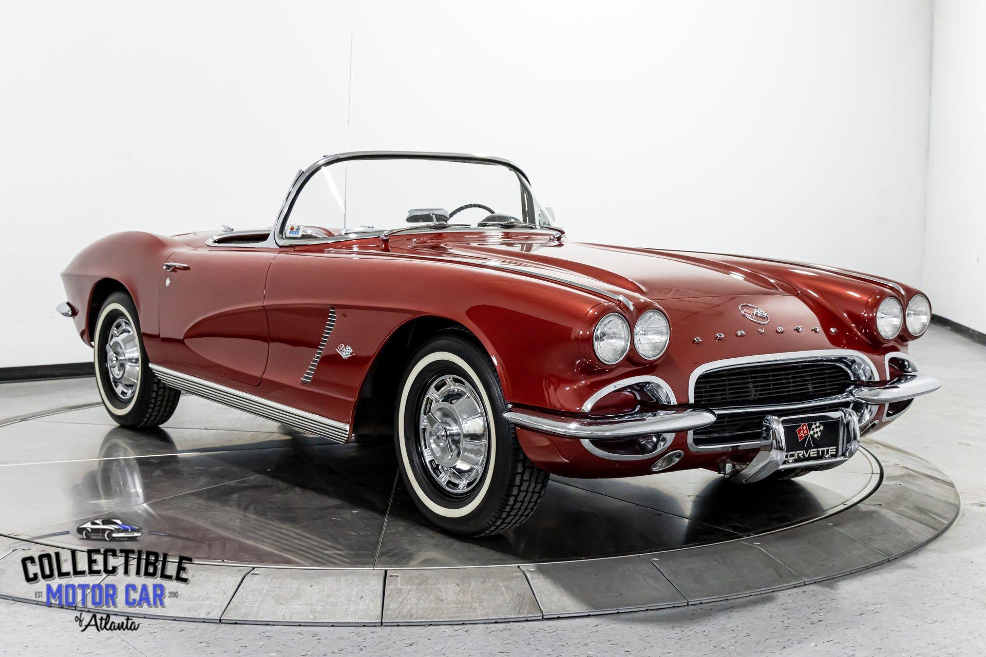 1962 Chevrolet Corvette Honduras Maroon 4-Speed The final year of the first-generation Corvette (C1) is also one of the most beautiful—crisp body lines, toothy grille, and quad tail lamps that hint at the Sting Ray era to come. Finished in striking Honduras Maroon with gleaming brightwork and wide whitewalls, this ’62 presents as the quintessential American roadster, enhanced with tasteful performance upgrades that make it a joy to drive. Highlights Replacement Small-Block V8 (350 ci) – professionally built in Southern California (per prior owner notes) with custom headers and a Holley 750 CFM double-pumper; an easy-starting, strong-pulling package that feels right at home in a C1. Estimated 400+ HP tune (seller notes) with the sound and throttle response enthusiasts expect. Borg-Warner T-10 4-speed manual – the right gearbox for a C1; crisp shifts and great highway manners. Auxiliary body-color hardtop shown; classic roadster stance with removable-top versatility. Wide whitewall radials (P205/75R15) on correct bright factory wheels and caps. Clean, tidy engine bay with finned Corvette valve covers and period-correct appearance. Well-sorted driver: smooth clutch take-up, confident brakes, tracks straight, and runs cool. Trunk full of extras: period manuals, catalogs, spare parts, and Corvette literature add provenance and value (see photos). Exterior The Honduras Maroon paint shows deep gloss and even panel reflections over straight fiberglass. Chrome bumpers, spears, and trim present beautifully, and the iconic coves wear correct crossed-flags emblems. Panel fit is consistent, glass is clear, and the removable hardtop’s stainless trim is bright and tight. Interior Classic black cockpit with original-style seats and door panels, factory steering wheel, and the signature twin-hood dash. Gauges are clean and legible, switchgear operates as it should, and the overall presentation is honest and inviting—exactly what you want in a C1 you’ll actually drive. Drivetrain & Performance Under the hood, the upgraded 350 V8 breathes through headers and a Holley 750 for strong mid-range torque and an authoritative small-block soundtrack. Coupled with the T-10 4-speed, this car pulls hard, shifts cleanly, and cruises comfortably. It’s the essence of early-sixties Corvette performance with modern reliability baked in. Undercarriage The underside presents tidy and driver-ready, with solid structure, clean exhaust, proper routing, and no drama. It’s the kind of chassis you won’t hesitate to enjoy on weekend tours or local cruise-ins. Why This ’62 Last year of the C1—collectible styling with the most refined driving experience of the solid-axle era Turn-key upgrades that enhance drivability without straying from the classic look Auxiliary hardtop + literature/parts cache that sweeten the package for the next caretaker Specs Engine: 350ci small-block V8 (performance build with Holley 750 & headers) Transmission: Borg-Warner T-10 4-speed manual Mileage: 85,232 (TMU) Exterior: Honduras Maroon Interior: Black Offered by Collectible Motorcar of Atlanta We handle financing, trades, and enclosed shipping nationwide. Have questions or need a detailed walk-around video? Call/text our team will be happy to help. This is a beautiful, driver-focused C1 you’ll be proud to show and even happier to drive—don’t miss it.