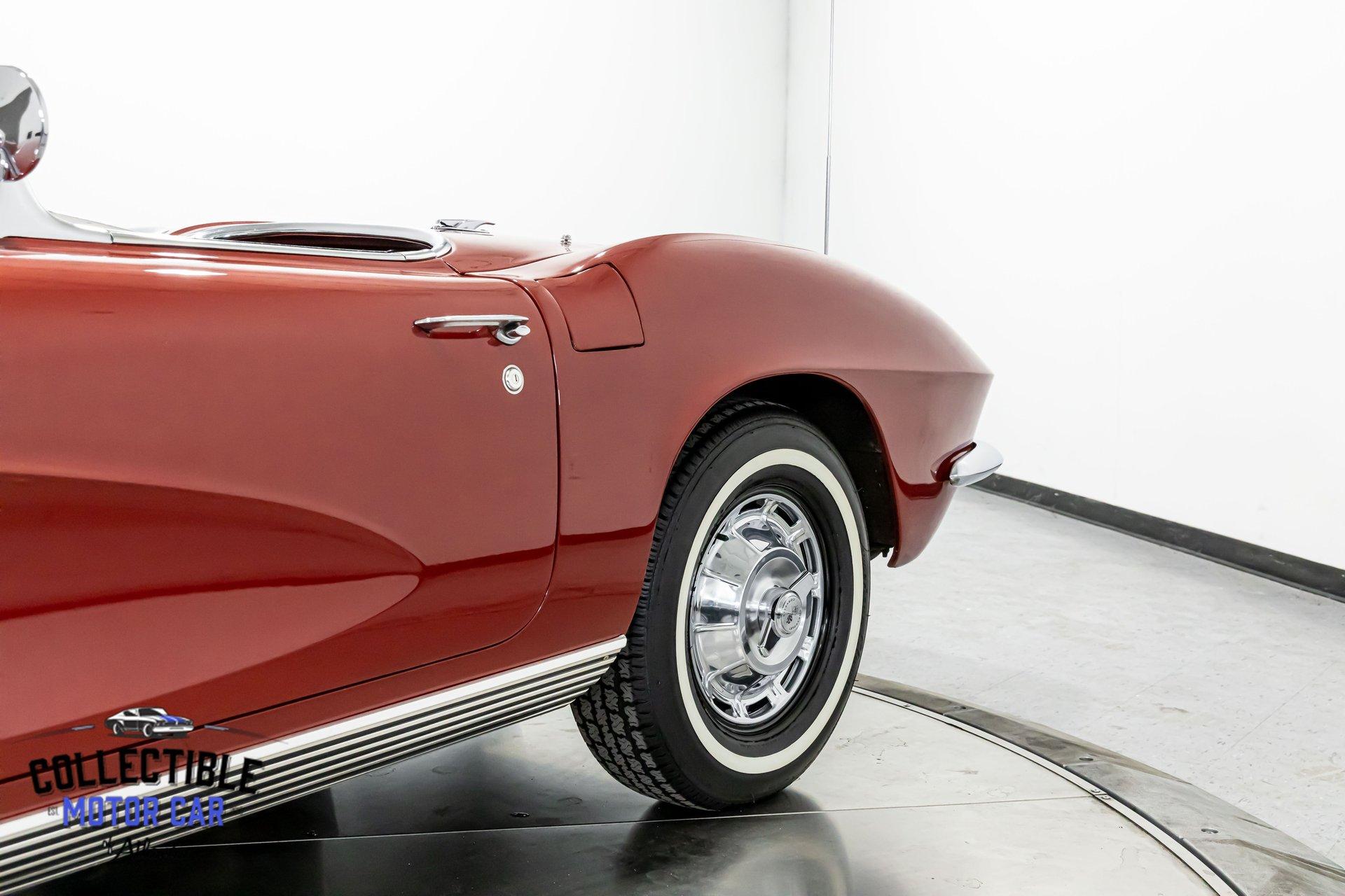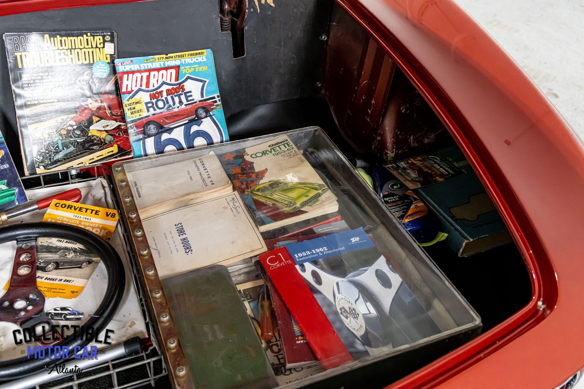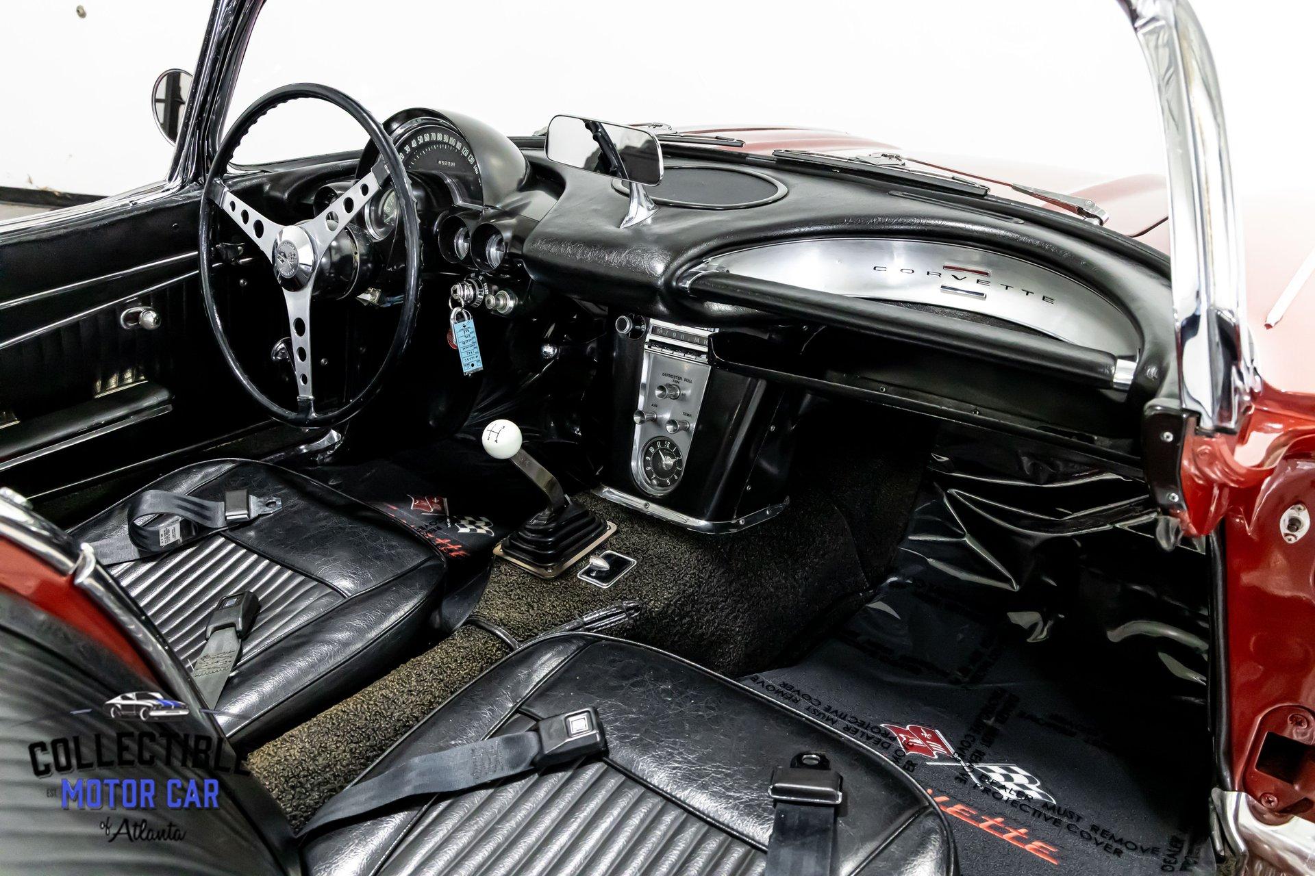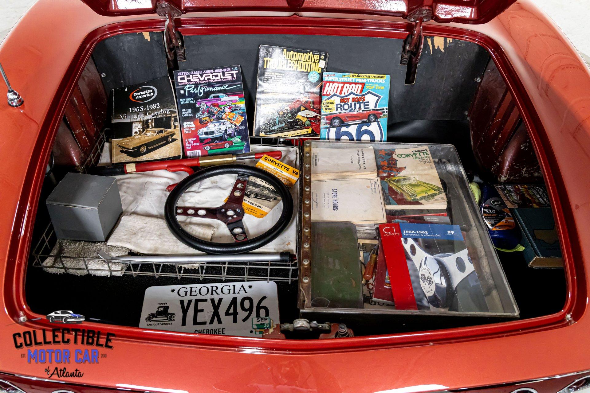 1962 Chevrolet Corvette Honduras Maroon 4-Speed The final year of the first-generation Corvette (C1) is also one of the most beautiful—crisp body lines, toothy grille, and quad tail lamps that hint at the Sting Ray era to come. Finished in striking Honduras Maroon with gleaming brightwork and wide whitewalls, this ’62 presents as the quintessential American roadster, enhanced with tasteful performance upgrades that make it a joy to drive. Highlights Replacement Small-Block V8 (350 ci) – professionally built in Southern California (per prior owner notes) with custom headers and a Holley 750 CFM double-pumper; an easy-starting, strong-pulling package that feels right at home in a C1. Estimated 400+ HP tune (seller notes) with the sound and throttle response enthusiasts expect. Borg-Warner T-10 4-speed manual – the right gearbox for a C1; crisp shifts and great highway manners. Auxiliary body-color hardtop shown; classic roadster stance with removable-top versatility. Wide whitewall radials (P205/75R15) on correct bright factory wheels and caps. Clean, tidy engine bay with finned Corvette valve covers and period-correct appearance. Well-sorted driver: smooth clutch take-up, confident brakes, tracks straight, and runs cool. Trunk full of extras: period manuals, catalogs, spare parts, and Corvette literature add provenance and value (see photos). Exterior The Honduras Maroon paint shows deep gloss and even panel reflections over straight fiberglass. Chrome bumpers, spears, and trim present beautifully, and the iconic coves wear correct crossed-flags emblems. Panel fit is consistent, glass is clear, and the removable hardtop’s stainless trim is bright and tight. Interior Classic black cockpit with original-style seats and door panels, factory steering wheel, and the signature twin-hood dash. Gauges are clean and legible, switchgear operates as it should, and the overall presentation is honest and inviting—exactly what you want in a C1 you’ll actually drive. Drivetrain & Performance Under the hood, the upgraded 350 V8 breathes through headers and a Holley 750 for strong mid-range torque and an authoritative small-block soundtrack. Coupled with the T-10 4-speed, this car pulls hard, shifts cleanly, and cruises comfortably. It’s the essence of early-sixties Corvette performance with modern reliability baked in. Undercarriage The underside presents tidy and driver-ready, with solid structure, clean exhaust, proper routing, and no drama. It’s the kind of chassis you won’t hesitate to enjoy on weekend tours or local cruise-ins. Why This ’62 Last year of the C1—collectible styling with the most refined driving experience of the solid-axle era Turn-key upgrades that enhance drivability without straying from the classic look Auxiliary hardtop + literature/parts cache that sweeten the package for the next caretaker Specs Engine: 350ci small-block V8 (performance build with Holley 750 & headers) Transmission: Borg-Warner T-10 4-speed manual Mileage: 85,232 (TMU) Exterior: Honduras Maroon Interior: Black Offered by Collectible Motorcar of Atlanta We handle financing, trades, and enclosed shipping nationwide. Have questions or need a detailed walk-around video? Call/text our team will be happy to help. This is a beautiful, driver-focused C1 you’ll be proud to show and even happier to drive—don’t miss it.