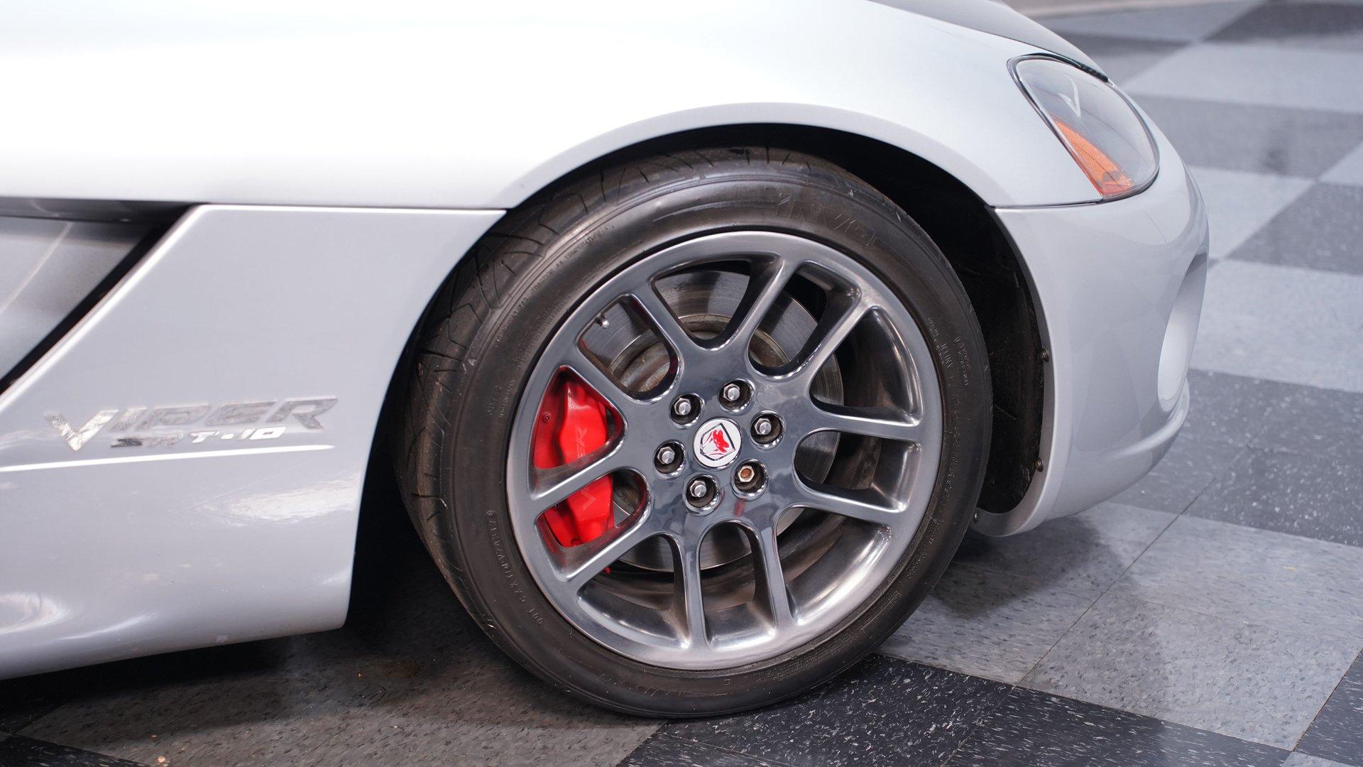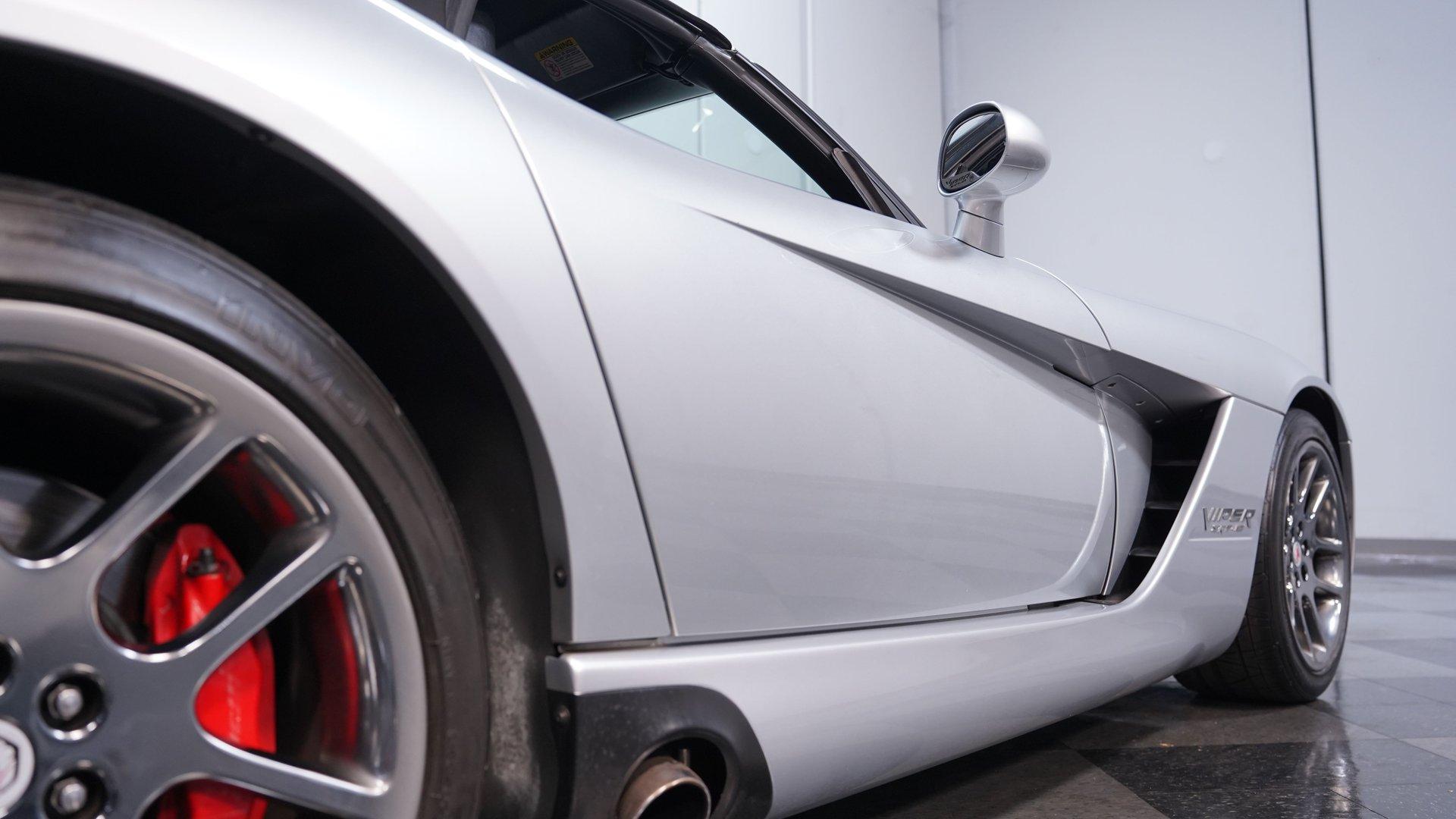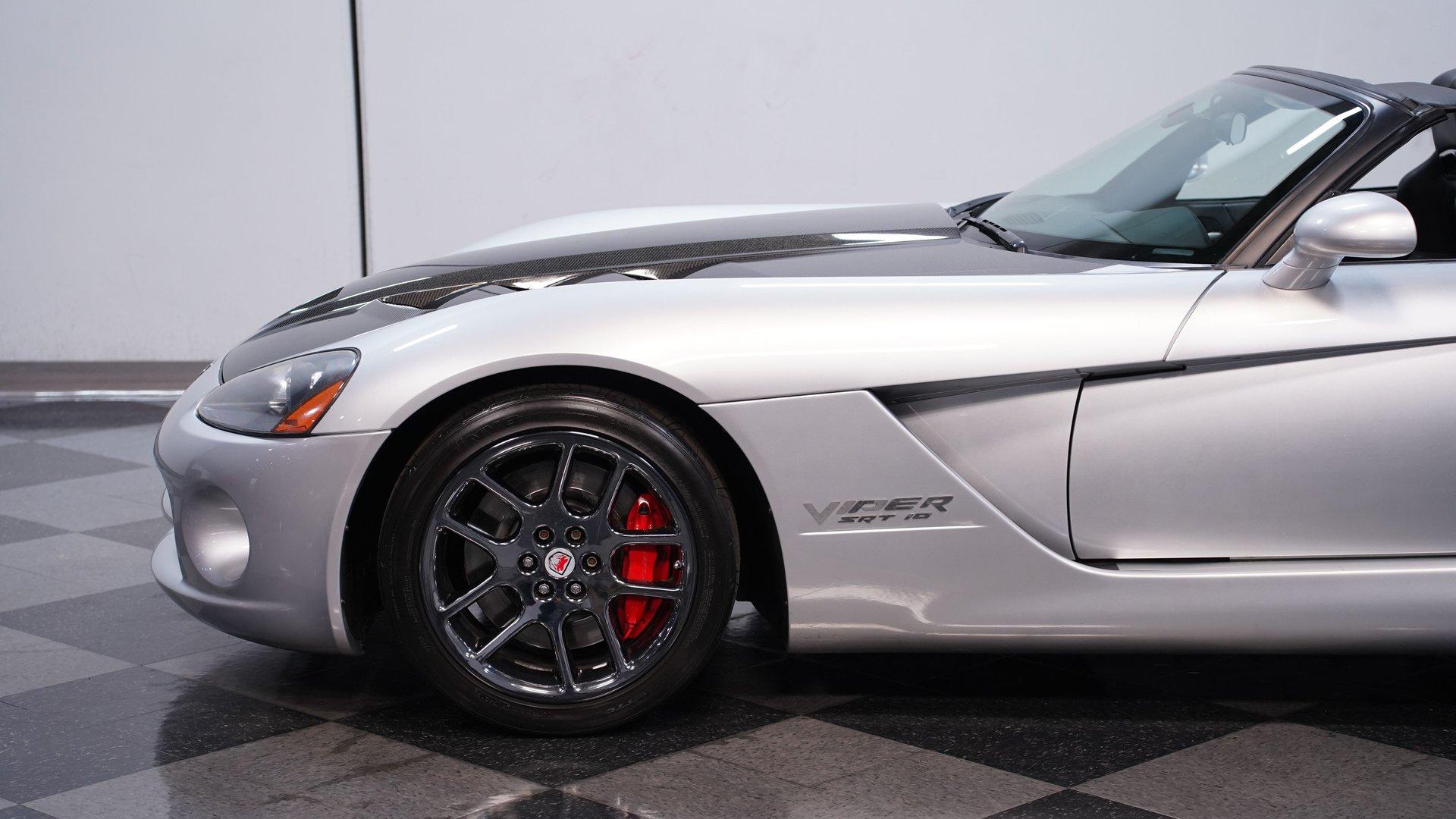 In terms of visually intimidating on-road presence, almost no vehicle on the planet can match the Dodge Viper. One look at this 2005 Dodge Viper RT-10 Roadster. With its fourth-generation-style Anderson carbon-fiber hood and matching carbon-fiber wing, this Viper packs a venomous look unlike any other. Inside, aside from the beautiful and supportive bucket seats and carbon-fiber-style console and dash trim, the most exciting detail you'll notice from behind the wheel is an odometer set against a set of white-faced gauges that reads 43,851 actual miles. Though the earlier first-gen Vipers had almost no amenities, this second-generation model comes with leather, power windows, power mirrors, power locks, and air conditioning. Under that carbon-fiber, front-hinged hood, we find a monstrous 8.3-liter overhead-valve naturally aspirated Viper V-10 engine. From the factory, this massive motor was capable of pumping out an incredible 500 horsepower and 525 pound-feet of torque through that glorious side-exit exhaust. That big-block power is sent through a six-speed manual transmission before heading out to the factory-style rear end. While the front 275/35ZR-18 Nitto tires are wide enough to be most sports cars' rear tires, the Viper gets a set of steamroller-sized 345/30ZR-19 meats out back, proof that this car can walk the walk. HIGHLIGHTS: 43,851 Actual Miles Anderson Carbon Fiber Hood APR Performance Carbon Fiber Wing Manual Convertible Top 8.3 Liter V10 Stated FlowMaster Exhaust Six Speed Manual Replaced Transmission New Clutch Replaced Rear End Power Windows Power Locks Power Mirrors Leather AC White Faced Gauges ABS Airbags Receipts Owner's Manual This 2005 Dodge Viper RT/10 rides on a fully independent suspension. Power steering and four-wheel power disc brakes, featuring eye-catching red calipers, add just a touch more civility to this neo-Cobra than the car it is based on. So, if you want one of the baddest-looking and most in-your-face vehicles ever to roll off an assembly line, this is your chance. Call today!