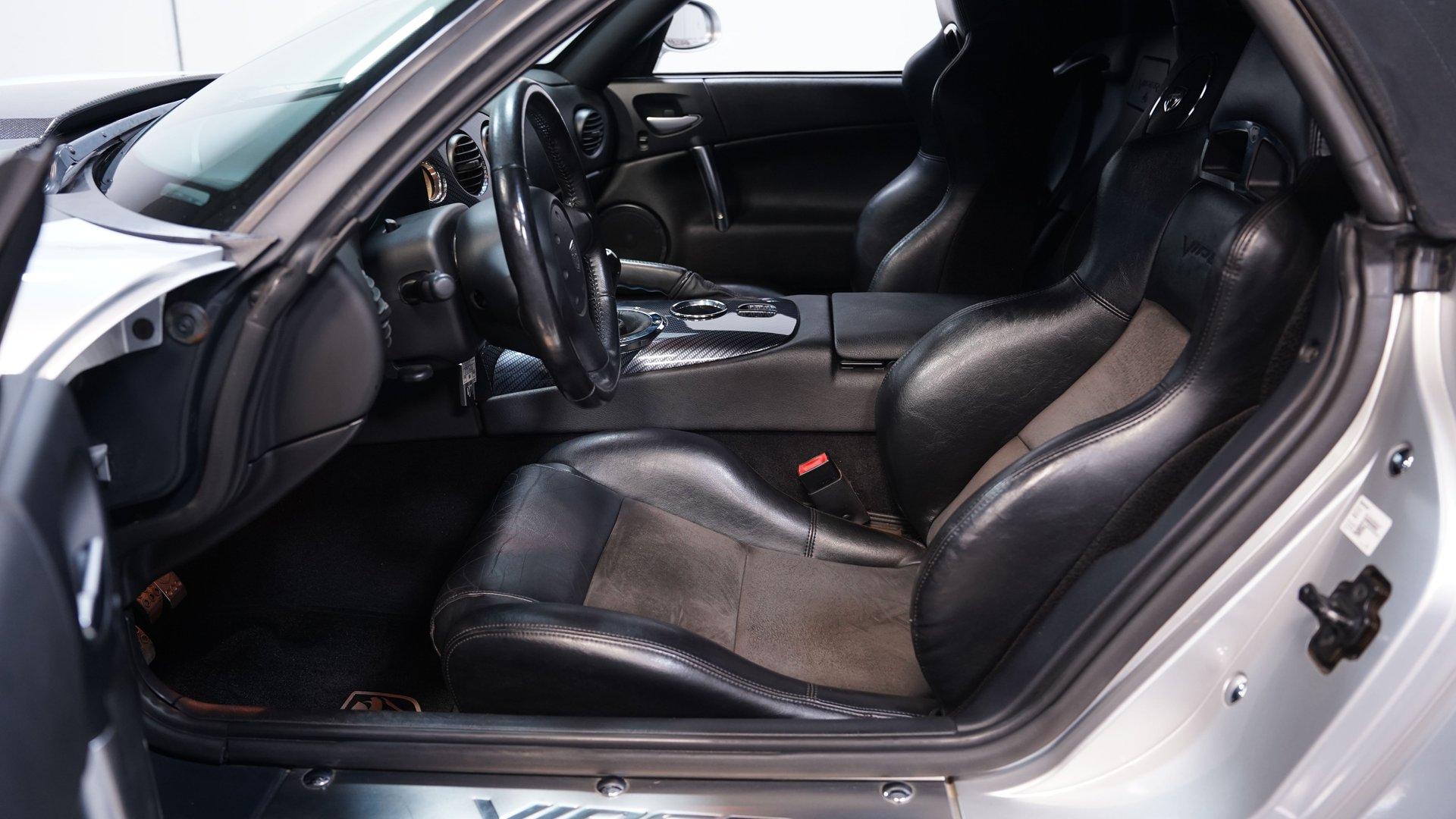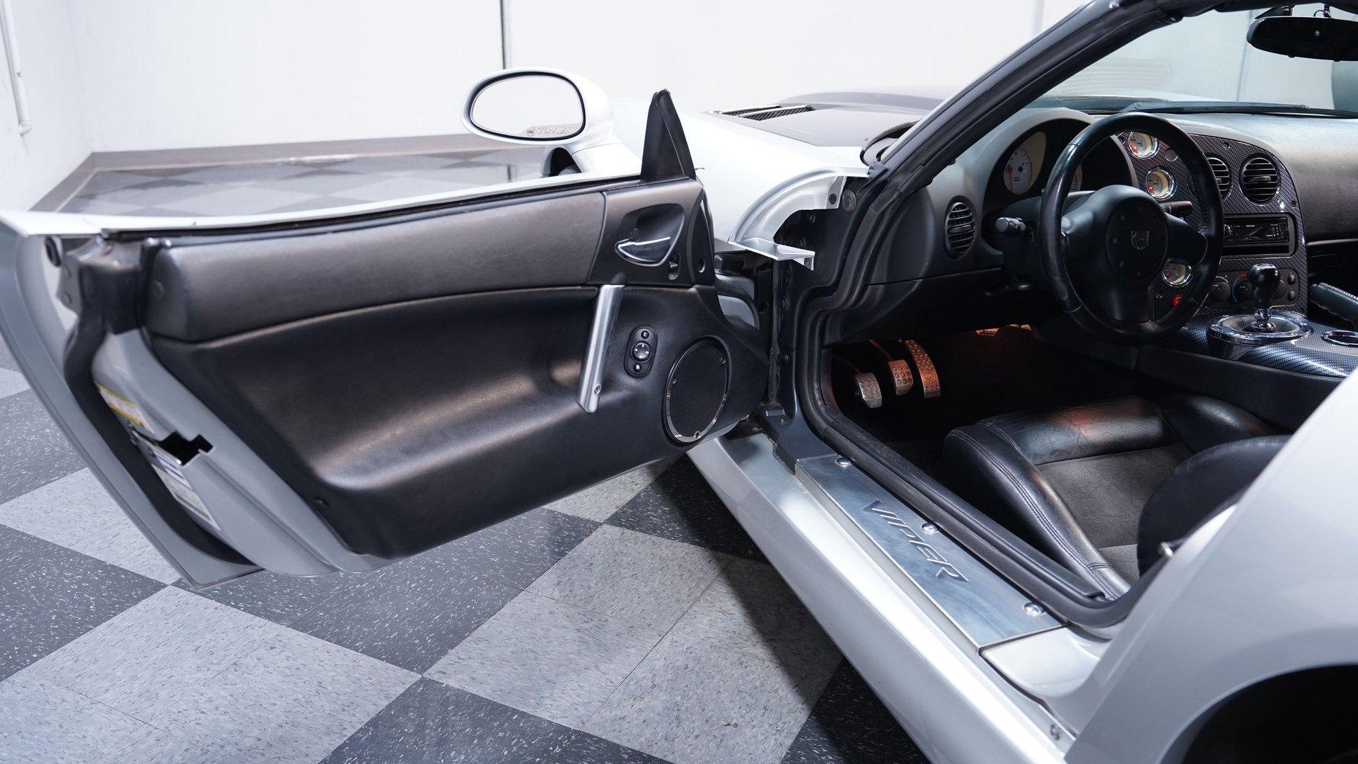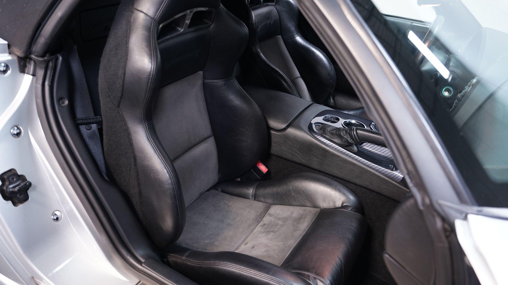 In terms of visually intimidating on-road presence, almost no vehicle on the planet can match the Dodge Viper. One look at this 2005 Dodge Viper RT-10 Roadster. With its fourth-generation-style Anderson carbon-fiber hood and matching carbon-fiber wing, this Viper packs a venomous look unlike any other. Inside, aside from the beautiful and supportive bucket seats and carbon-fiber-style console and dash trim, the most exciting detail you'll notice from behind the wheel is an odometer set against a set of white-faced gauges that reads 43,851 actual miles. Though the earlier first-gen Vipers had almost no amenities, this second-generation model comes with leather, power windows, power mirrors, power locks, and air conditioning. Under that carbon-fiber, front-hinged hood, we find a monstrous 8.3-liter overhead-valve naturally aspirated Viper V-10 engine. From the factory, this massive motor was capable of pumping out an incredible 500 horsepower and 525 pound-feet of torque through that glorious side-exit exhaust. That big-block power is sent through a six-speed manual transmission before heading out to the factory-style rear end. While the front 275/35ZR-18 Nitto tires are wide enough to be most sports cars' rear tires, the Viper gets a set of steamroller-sized 345/30ZR-19 meats out back, proof that this car can walk the walk. HIGHLIGHTS: 43,851 Actual Miles Anderson Carbon Fiber Hood APR Performance Carbon Fiber Wing Manual Convertible Top 8.3 Liter V10 Stated FlowMaster Exhaust Six Speed Manual Replaced Transmission New Clutch Replaced Rear End Power Windows Power Locks Power Mirrors Leather AC White Faced Gauges ABS Airbags Receipts Owner's Manual This 2005 Dodge Viper RT/10 rides on a fully independent suspension. Power steering and four-wheel power disc brakes, featuring eye-catching red calipers, add just a touch more civility to this neo-Cobra than the car it is based on. So, if you want one of the baddest-looking and most in-your-face vehicles ever to roll off an assembly line, this is your chance. Call today!