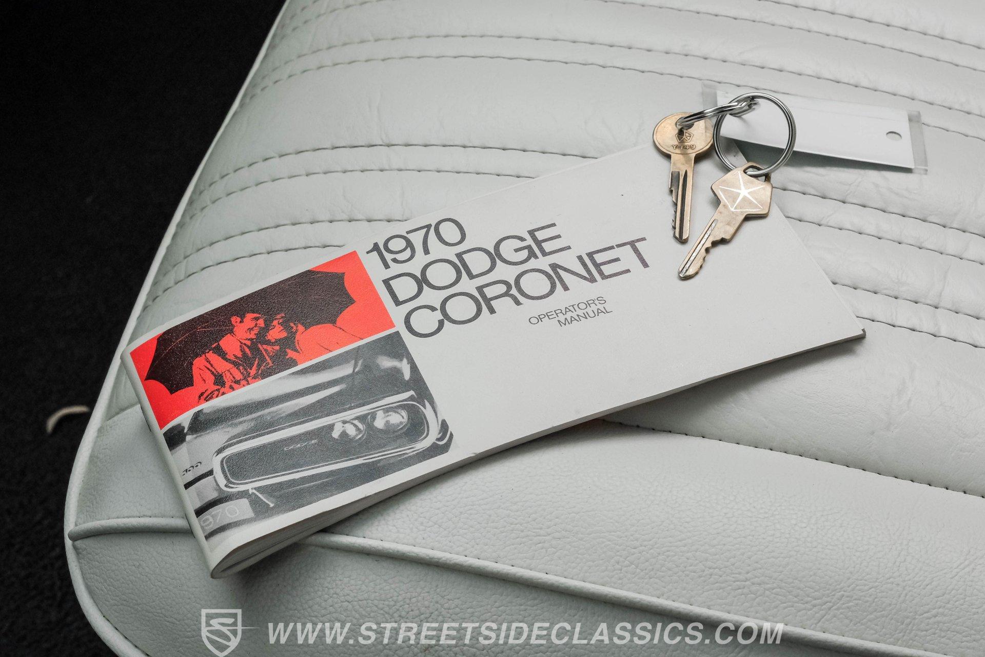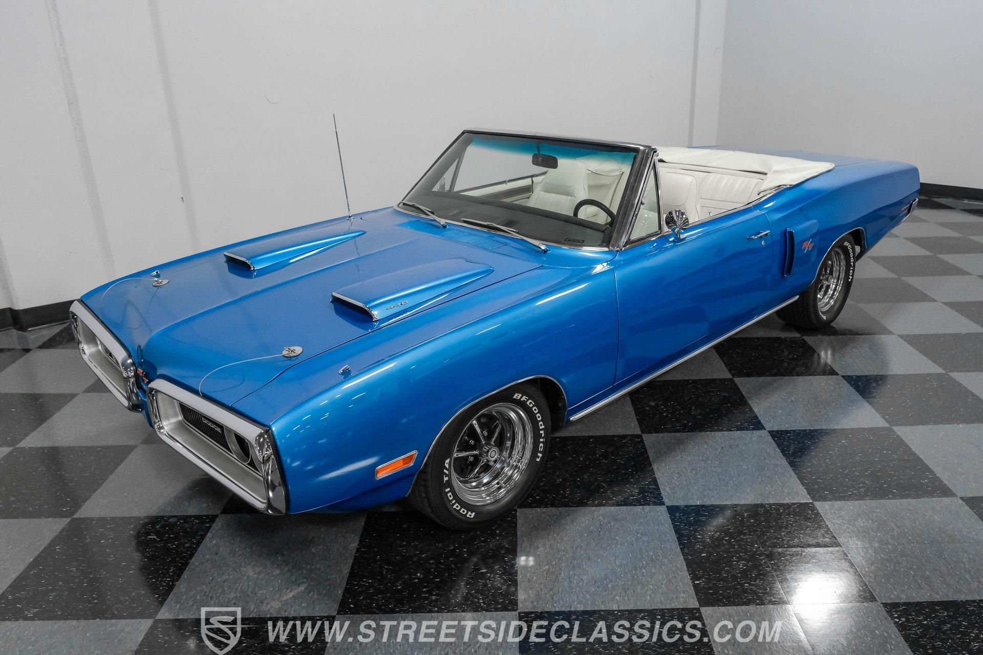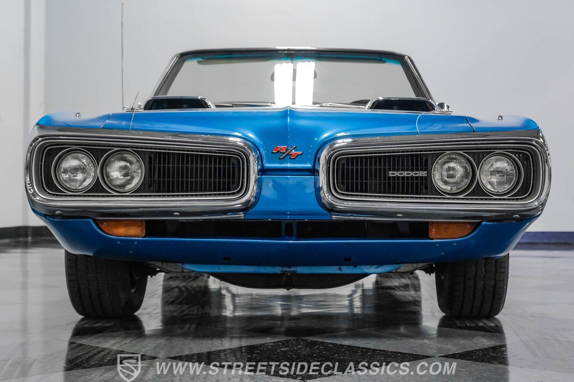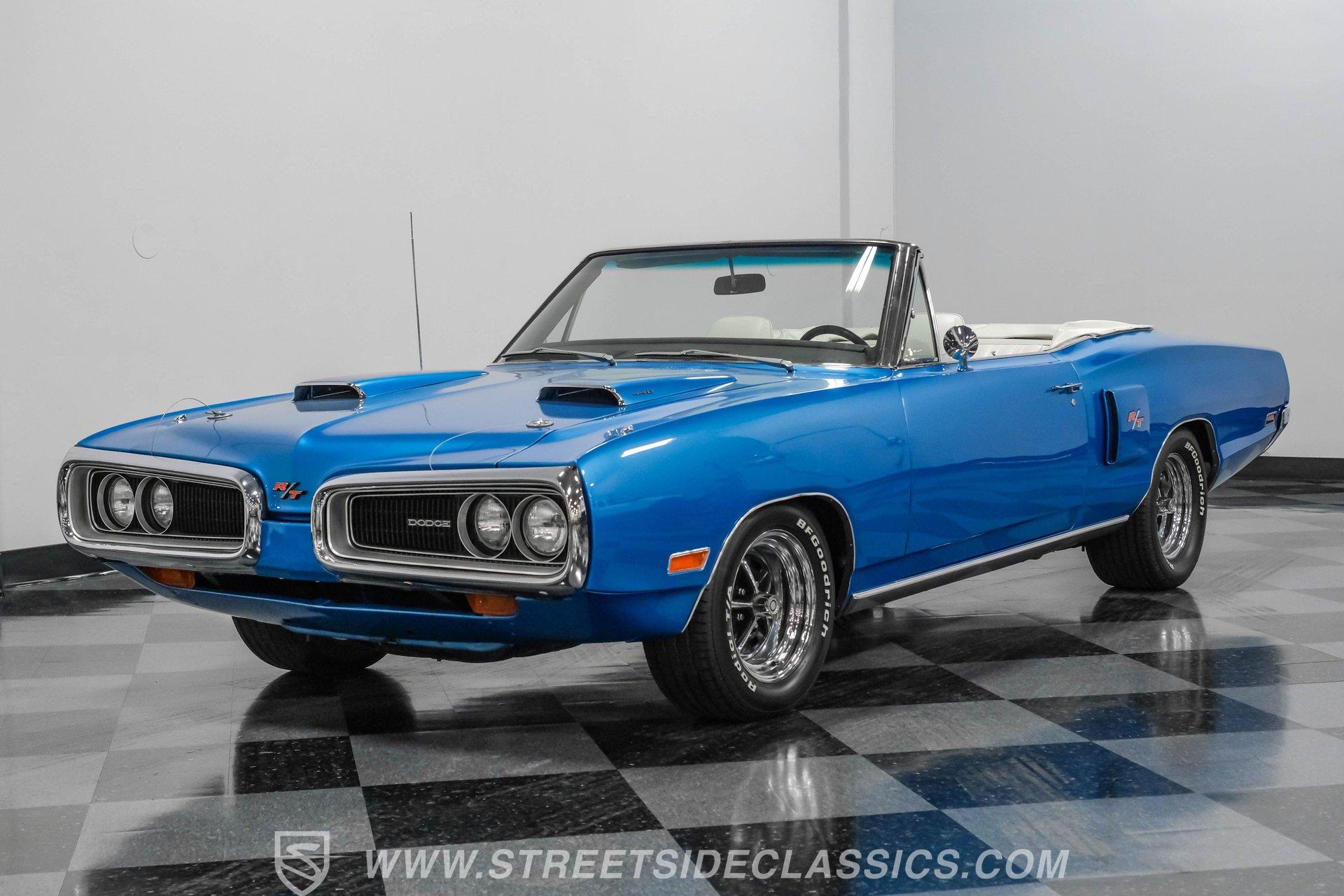 This 1970 Dodge Coronet Convertible R/T Tribute is a rare gem, believed to be one of only 924 Coronet 500 Convertibles produced that year. With its striking Bright Blue Metallic paint and iconic white convertible top, this car captures the spirit of American muscle and the open-air freedom of the '70s. It's a timeless piece for collectors and enthusiasts alike. Slide inside to experience a beautifully restored interior that stays true to its original design. The factory-correct white vinyl bucket seats and door cards contrast sharply with the black dash and carpets, creating a classic yet fresh ambiance. The center console boasts a pistol grip Hurst shifter, adding a sporty touch, while the factory AM/FM radio and seatbelts complete the authentic vintage feel. This interior offers comfort and style in every detail. Under the hood, this Dodge packs a numbers-matching 383 cubic inch V8 engine paired with a four-speed manual transmission, delivering an engaging and powerful driving experience. The engine bay is impressively clean and organized, featuring a Holley 4-barrel carburetor and a functional Ramcharger cold air induction system, which enhances performance. The drivetrain is designed for smooth shifting and responsive acceleration, making every drive a thrill. Highlights One of Only 924 Coronet 500 Convertibles Produced in 1970 383 Cubic Inch V8 Engine, Numbers Matching Four-Speed Manual Transmission Holley 4-Barrel Carburetor Functional Ramcharger Cold Air Induction Factory Correct White Vinyl Interior Pistol Grip Hurst Shifter Factory AM/FM Radio Full Repaint in Factory Correct EB5 Bright Blue Metallic White Vinyl Power Convertible Top 15" Magnum Chrome Wheels with BFGoodrich Tires Power Steering and Front Disc Brakes Seatbelts Front and Rear Financing Available Vehicle Protection Plans Available Worldwide Shipping This 1970 Dodge Coronet Convertible R/T Tribute is a fantastic opportunity to own a rare and beautifully maintained piece of muscle car history. Whether you're a seasoned collector or a passionate enthusiast, this car promises to deliver style, power, and timeless appeal. Don't miss your chance to add this exceptional vehicle to your collection. Call, email, or come visit our showroom today!