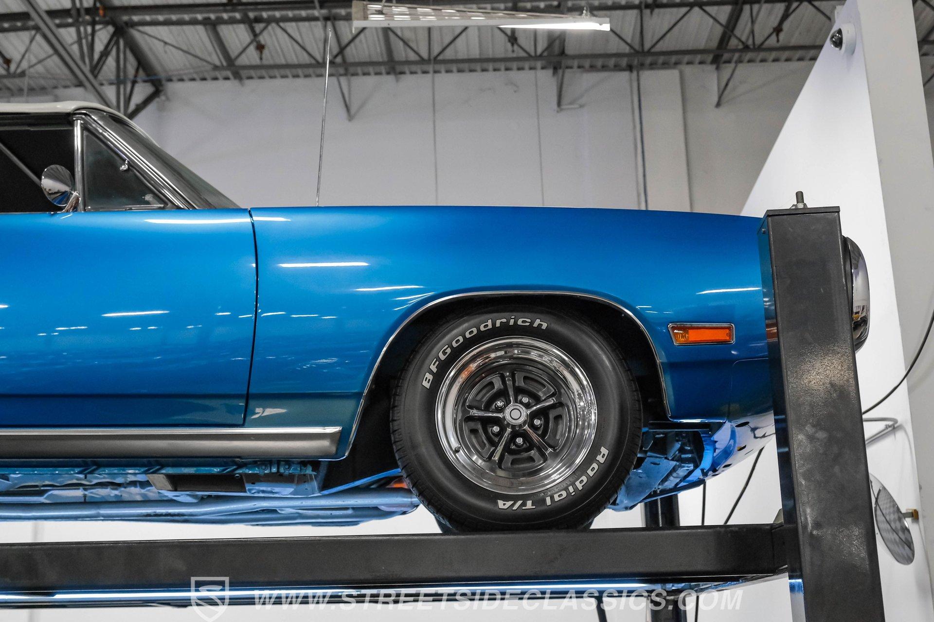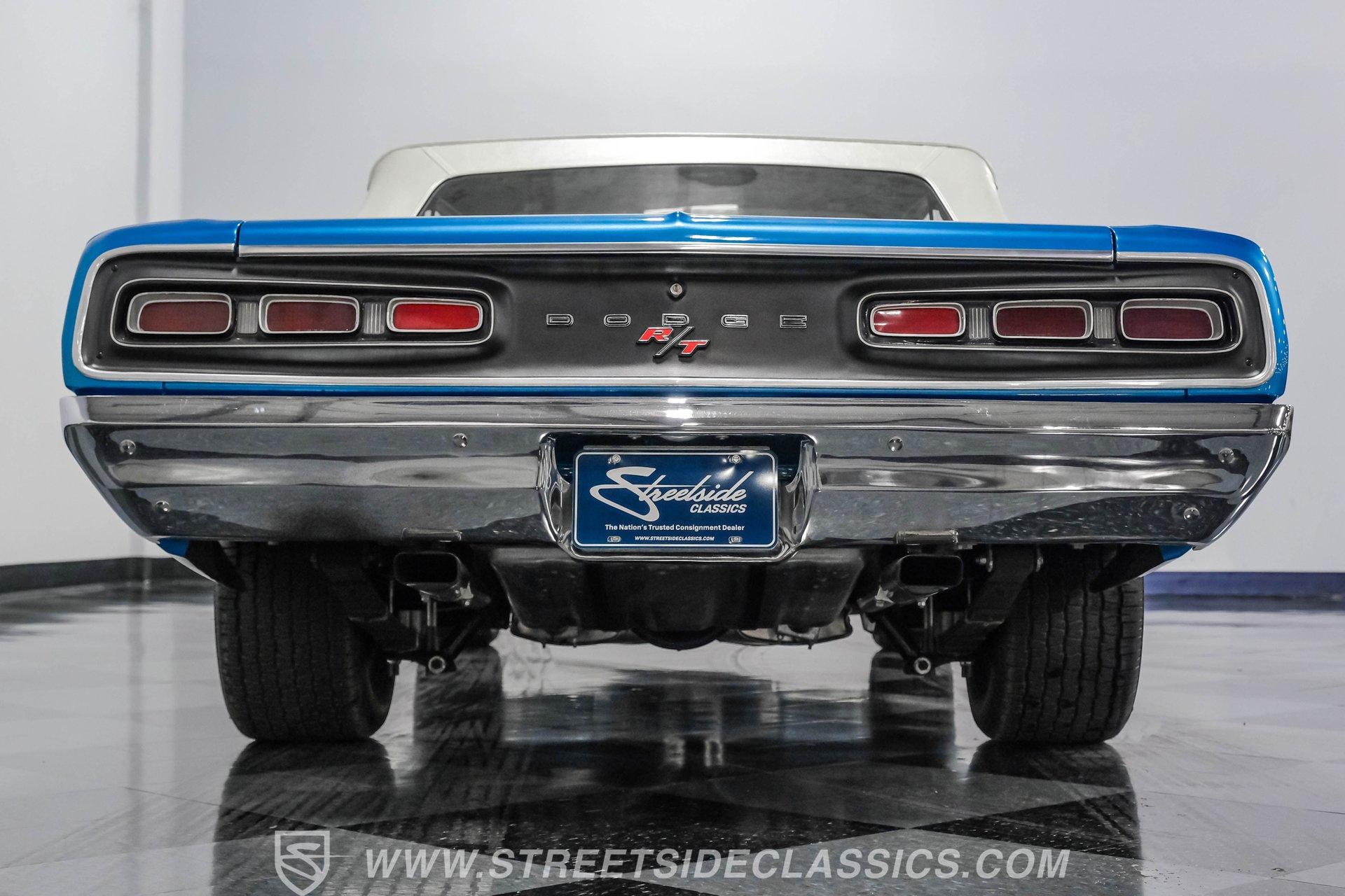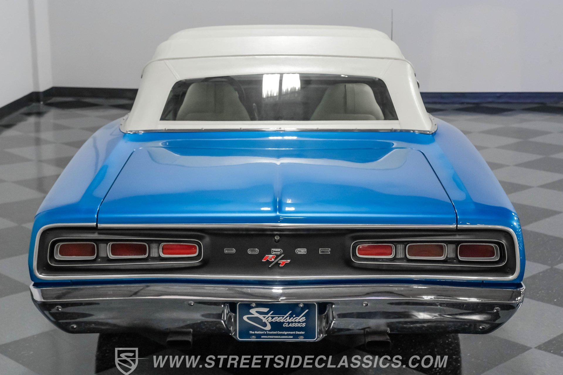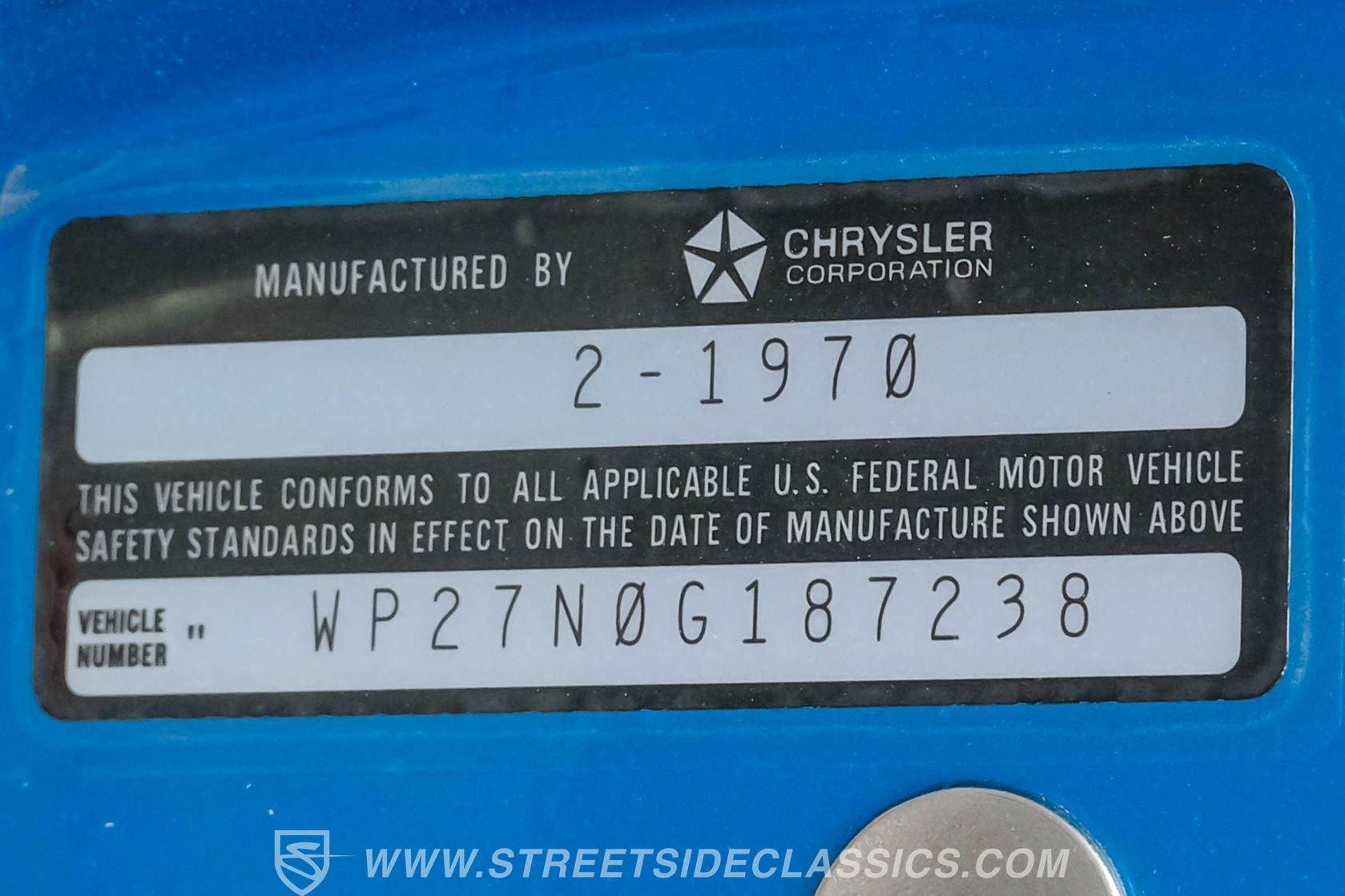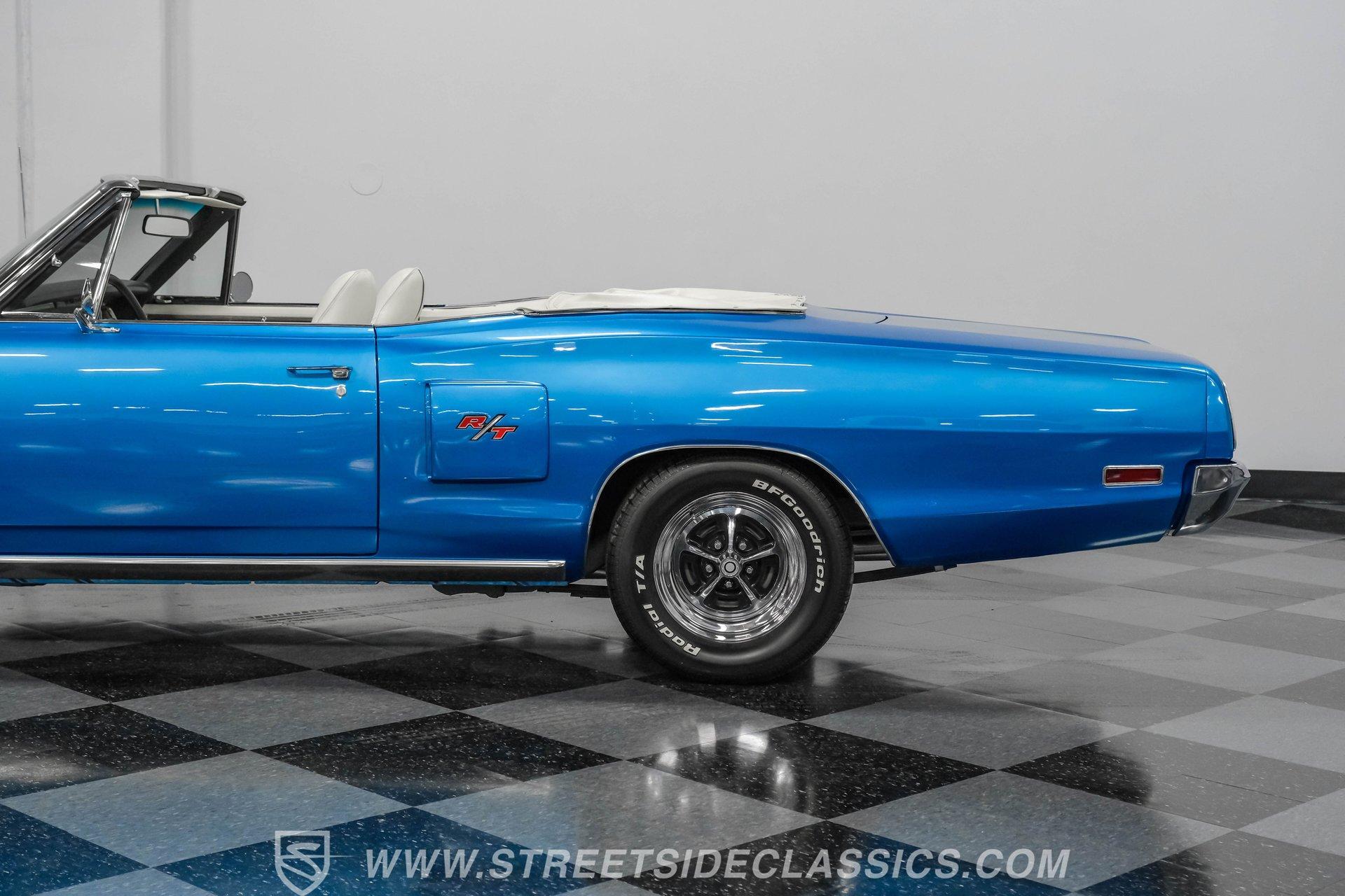 This 1970 Dodge Coronet Convertible R/T Tribute is a rare gem, believed to be one of only 924 Coronet 500 Convertibles produced that year. With its striking Bright Blue Metallic paint and iconic white convertible top, this car captures the spirit of American muscle and the open-air freedom of the '70s. It's a timeless piece for collectors and enthusiasts alike. Slide inside to experience a beautifully restored interior that stays true to its original design. The factory-correct white vinyl bucket seats and door cards contrast sharply with the black dash and carpets, creating a classic yet fresh ambiance. The center console boasts a pistol grip Hurst shifter, adding a sporty touch, while the factory AM/FM radio and seatbelts complete the authentic vintage feel. This interior offers comfort and style in every detail. Under the hood, this Dodge packs a numbers-matching 383 cubic inch V8 engine paired with a four-speed manual transmission, delivering an engaging and powerful driving experience. The engine bay is impressively clean and organized, featuring a Holley 4-barrel carburetor and a functional Ramcharger cold air induction system, which enhances performance. The drivetrain is designed for smooth shifting and responsive acceleration, making every drive a thrill. Highlights One of Only 924 Coronet 500 Convertibles Produced in 1970 383 Cubic Inch V8 Engine, Numbers Matching Four-Speed Manual Transmission Holley 4-Barrel Carburetor Functional Ramcharger Cold Air Induction Factory Correct White Vinyl Interior Pistol Grip Hurst Shifter Factory AM/FM Radio Full Repaint in Factory Correct EB5 Bright Blue Metallic White Vinyl Power Convertible Top 15" Magnum Chrome Wheels with BFGoodrich Tires Power Steering and Front Disc Brakes Seatbelts Front and Rear Financing Available Vehicle Protection Plans Available Worldwide Shipping This 1970 Dodge Coronet Convertible R/T Tribute is a fantastic opportunity to own a rare and beautifully maintained piece of muscle car history. Whether you're a seasoned collector or a passionate enthusiast, this car promises to deliver style, power, and timeless appeal. Don't miss your chance to add this exceptional vehicle to your collection. Call, email, or come visit our showroom today!