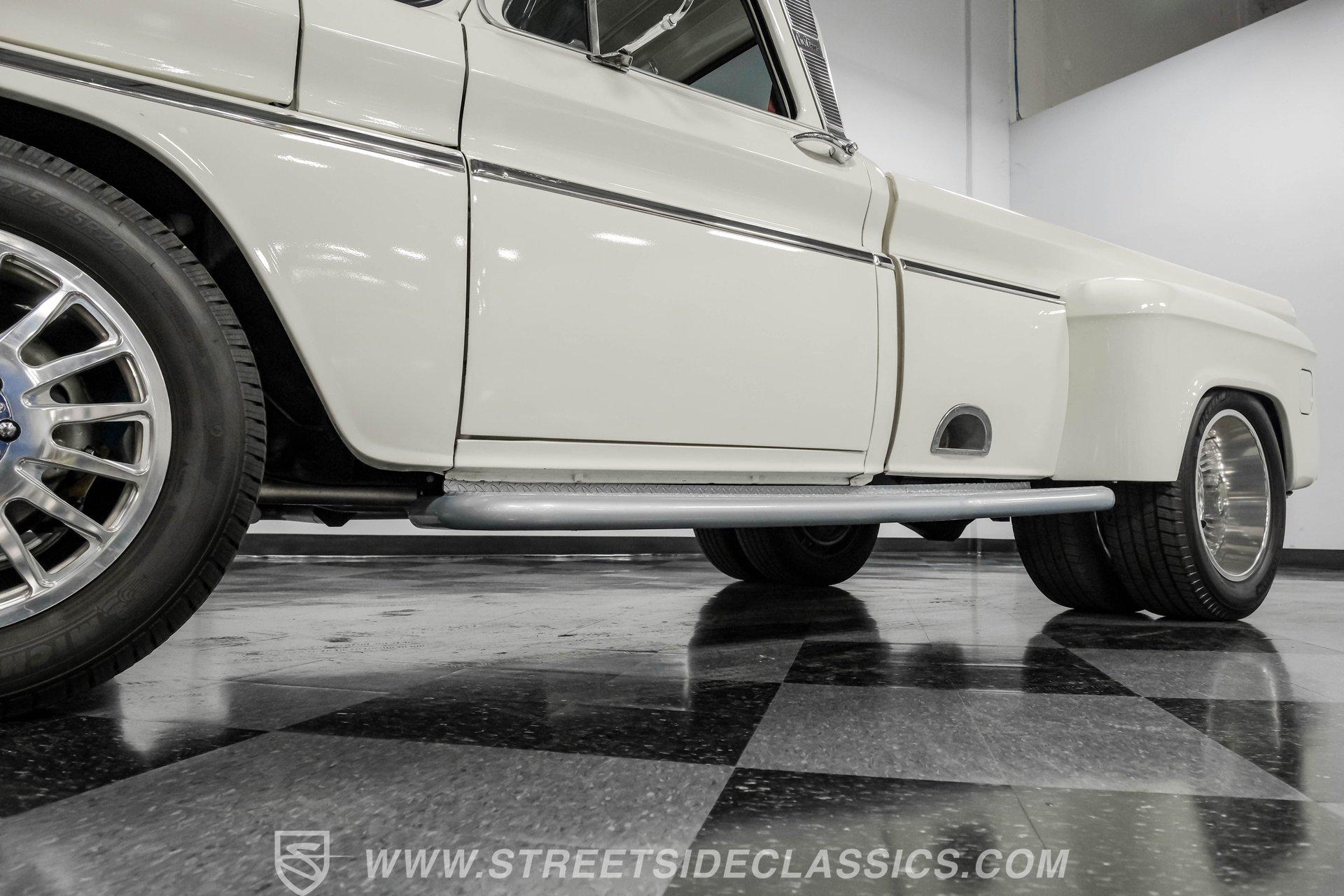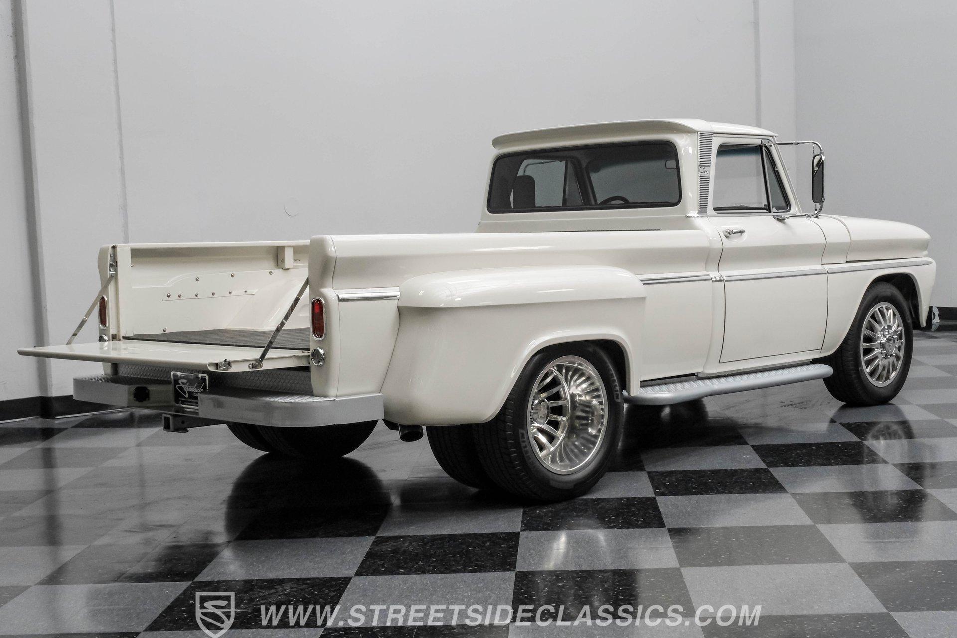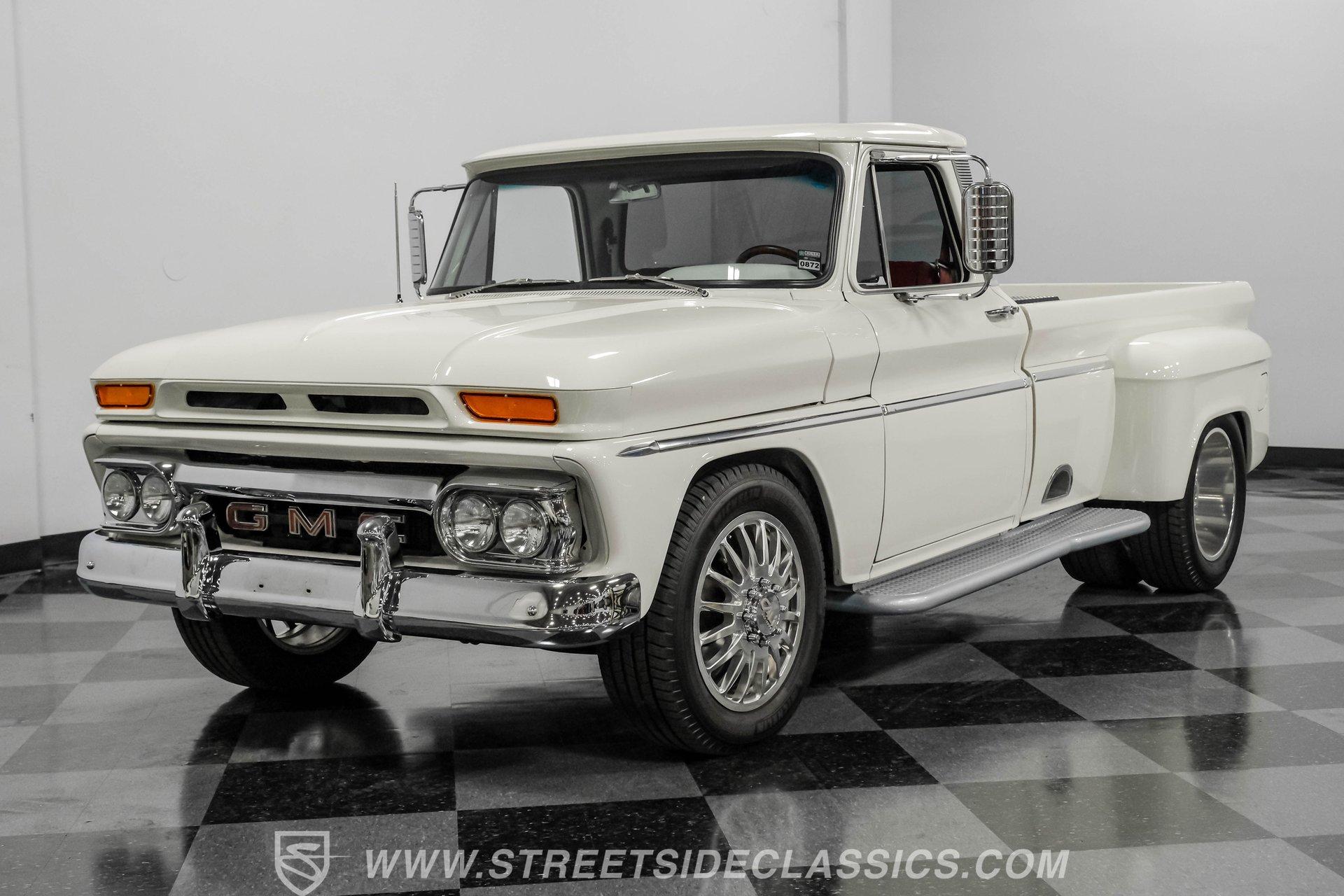 Step back in time with a modern twist in this beautifully crafted 1966 GMC C20 Dually Restomod. This truck is more than just a vehicle; it's a statement of passion and precision, blending classic charm with contemporary performance. Whether it's the gleam of the custom white paint or the power under the hood, this truck invites you to experience a unique ride that turns heads and sparks conversations. If you've been searching for a truck that's a real standout, this 1966 GMC C20 Dually Restomod deserves your attention. Inside, the cabin welcomes you with a custom interior that balances comfort and style. Rich dark red leather and cloth bench seats provide a cozy yet sophisticated atmosphere, complemented by matching carpet and door panels. Thoughtful details like dual center consoles with storage and cup holders enhance convenience, while Dakota Digital gauges and a vintage air conditioning system keep the driving experience both classic and comfortable. The Alpine radio paired with JL Audio subwoofer and Focal speakers ensure your favorite tunes sound spectacular on every journey. Beneath the hood, this restomod is powered by a robust 6.2L LS3 V8 GM Performance Crate engine producing 430 horsepower. Paired with a smooth-shifting 4L70E 4-speed automatic transmission built by Phoenix Transmissions in 2023 this truck delivers modern performance with classic styling. The drivetrain features 3.73 posi gears, new Curry axles, and a Hydratech braking system for confident stopping power. The frame-off build includes an aluminum radiator and a trailer towing package with an integrated brake controller, making this dually as functional as it is striking. Highlights: Frame-Off Restoration Completed 2022 8,473 Miles Since Build 6.2L LS3 V8 GM Performance Crate Engine 430 Horsepower 4L70E 4-Speed Automatic Transmission Big Rear Window Pickup Cab Custom Dually Bed and Frame Vintage Air Conditioning System Dakota Digital Gauges Alpine Radio with JL Audio Subwoofer Focal Speakers Installed Hydratech Power Braking System Trailer Towing Package with Brake Controller Michelin Tires 275/55R20 Financing Available Vehicle Protection Plans Available Worldwide Shipping This 1966 GMC C20 Dually Restomod offers the perfect blend of classic style and modern engineering, making it a compelling choice for enthusiasts and collectors alike. Don't miss your chance to own a truck that stands out on every road it travels. Call, email, or come visit our showroom today!