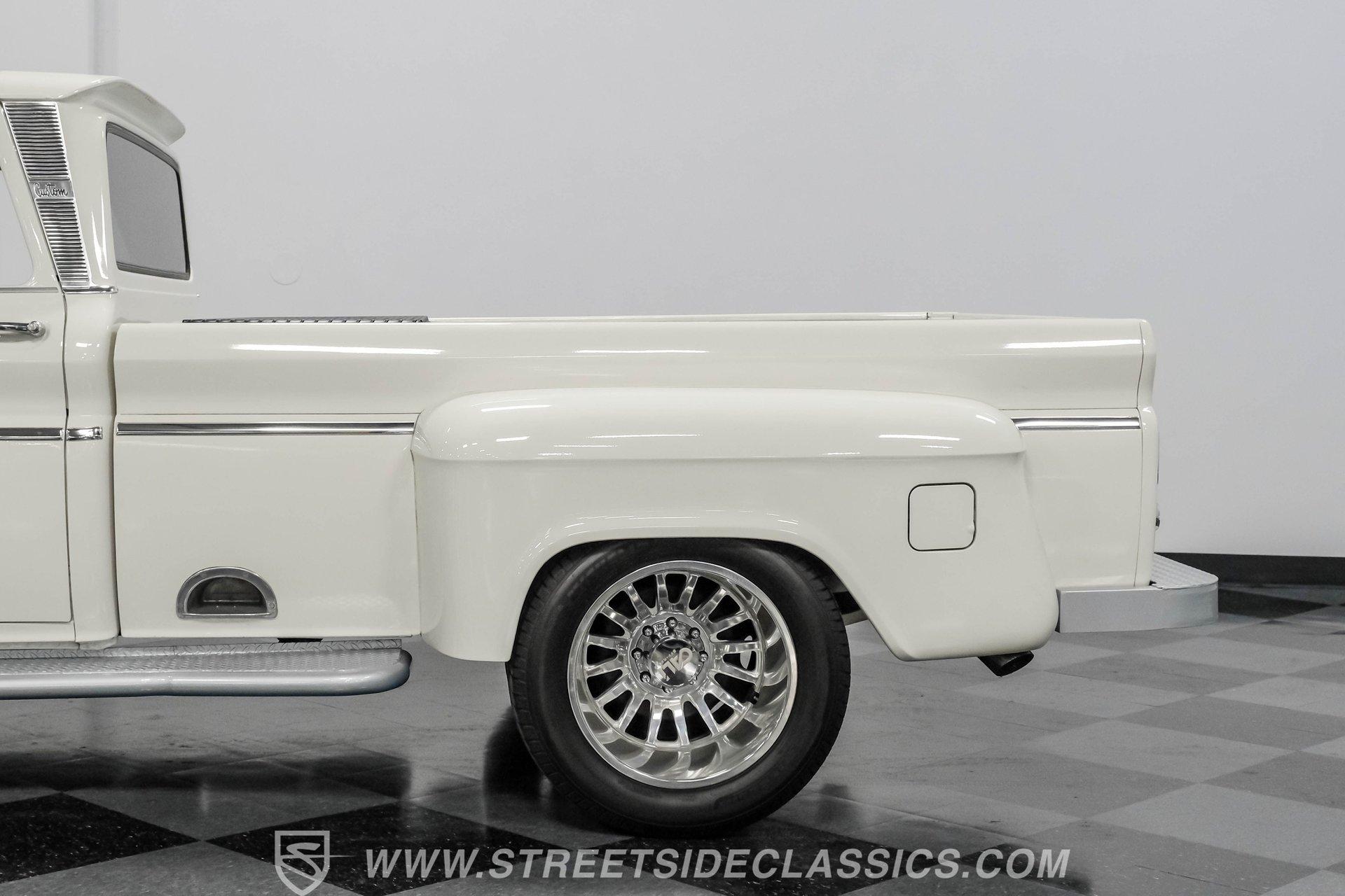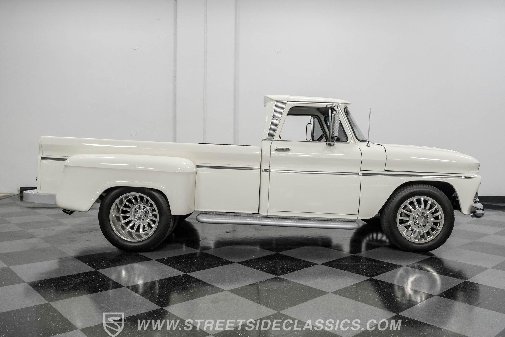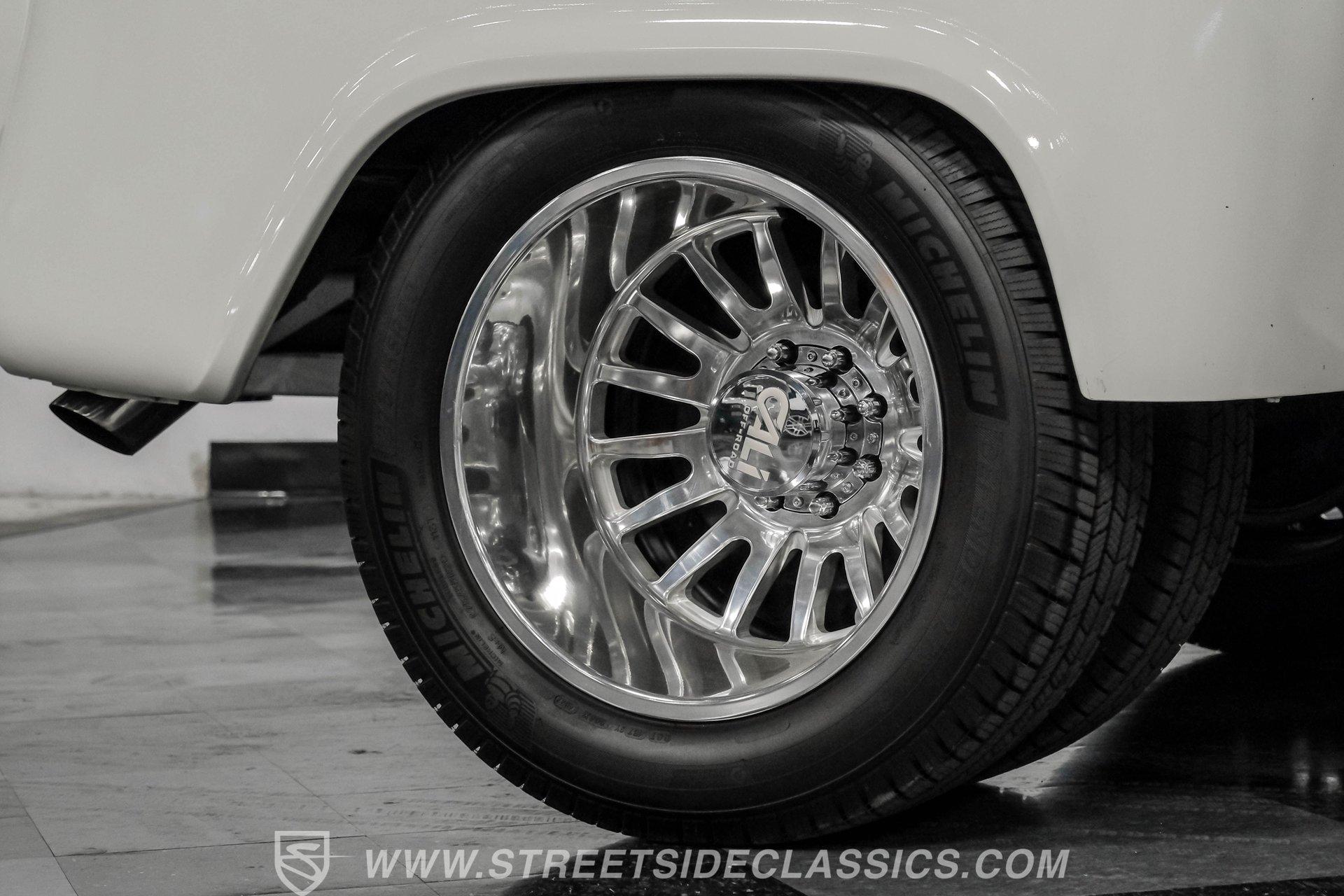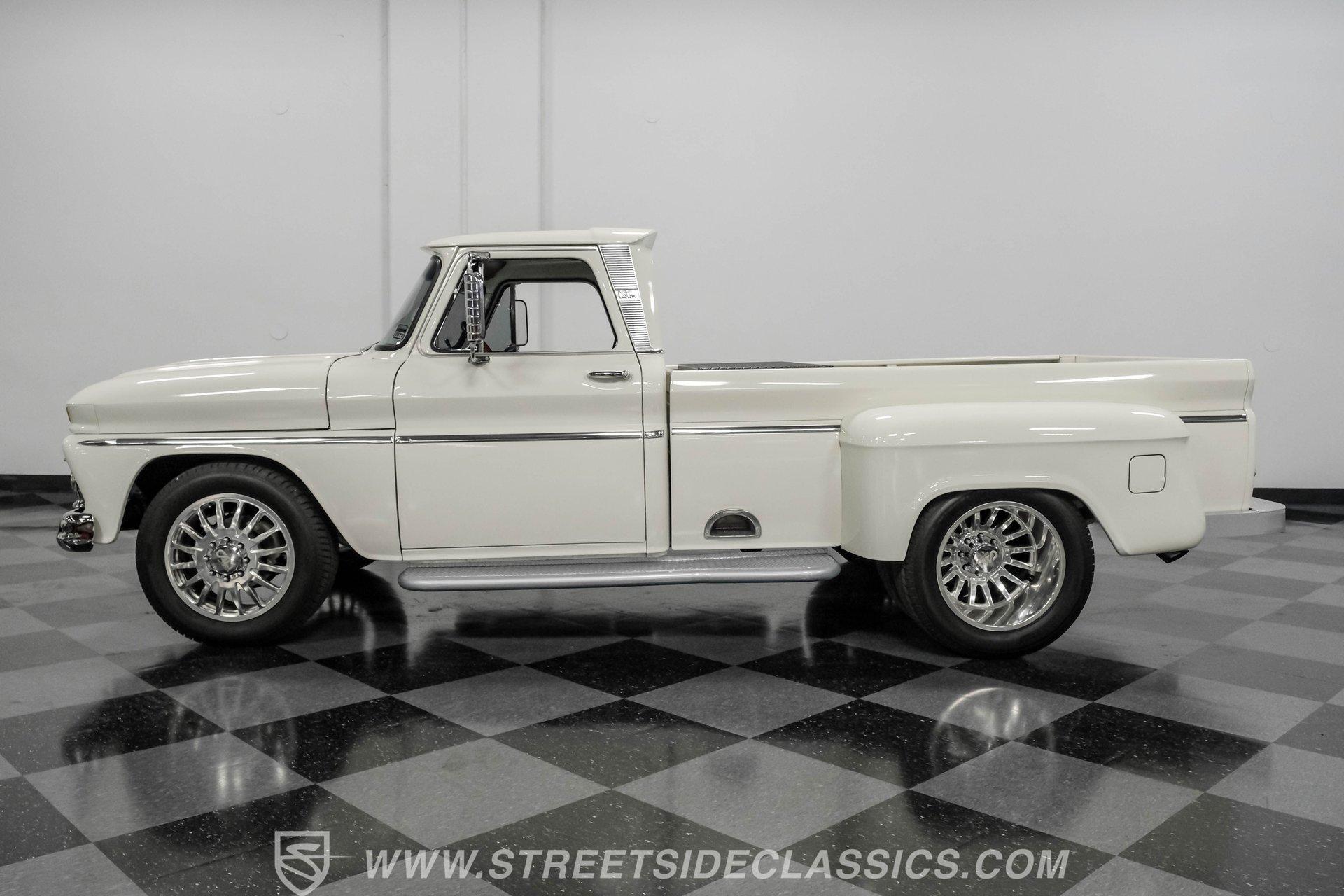 Step back in time with a modern twist in this beautifully crafted 1966 GMC C20 Dually Restomod. This truck is more than just a vehicle; it's a statement of passion and precision, blending classic charm with contemporary performance. Whether it's the gleam of the custom white paint or the power under the hood, this truck invites you to experience a unique ride that turns heads and sparks conversations. If you've been searching for a truck that's a real standout, this 1966 GMC C20 Dually Restomod deserves your attention. Inside, the cabin welcomes you with a custom interior that balances comfort and style. Rich dark red leather and cloth bench seats provide a cozy yet sophisticated atmosphere, complemented by matching carpet and door panels. Thoughtful details like dual center consoles with storage and cup holders enhance convenience, while Dakota Digital gauges and a vintage air conditioning system keep the driving experience both classic and comfortable. The Alpine radio paired with JL Audio subwoofer and Focal speakers ensure your favorite tunes sound spectacular on every journey. Beneath the hood, this restomod is powered by a robust 6.2L LS3 V8 GM Performance Crate engine producing 430 horsepower. Paired with a smooth-shifting 4L70E 4-speed automatic transmission built by Phoenix Transmissions in 2023 this truck delivers modern performance with classic styling. The drivetrain features 3.73 posi gears, new Curry axles, and a Hydratech braking system for confident stopping power. The frame-off build includes an aluminum radiator and a trailer towing package with an integrated brake controller, making this dually as functional as it is striking. Highlights: Frame-Off Restoration Completed 2022 8,473 Miles Since Build 6.2L LS3 V8 GM Performance Crate Engine 430 Horsepower 4L70E 4-Speed Automatic Transmission Big Rear Window Pickup Cab Custom Dually Bed and Frame Vintage Air Conditioning System Dakota Digital Gauges Alpine Radio with JL Audio Subwoofer Focal Speakers Installed Hydratech Power Braking System Trailer Towing Package with Brake Controller Michelin Tires 275/55R20 Financing Available Vehicle Protection Plans Available Worldwide Shipping This 1966 GMC C20 Dually Restomod offers the perfect blend of classic style and modern engineering, making it a compelling choice for enthusiasts and collectors alike. Don't miss your chance to own a truck that stands out on every road it travels. Call, email, or come visit our showroom today!