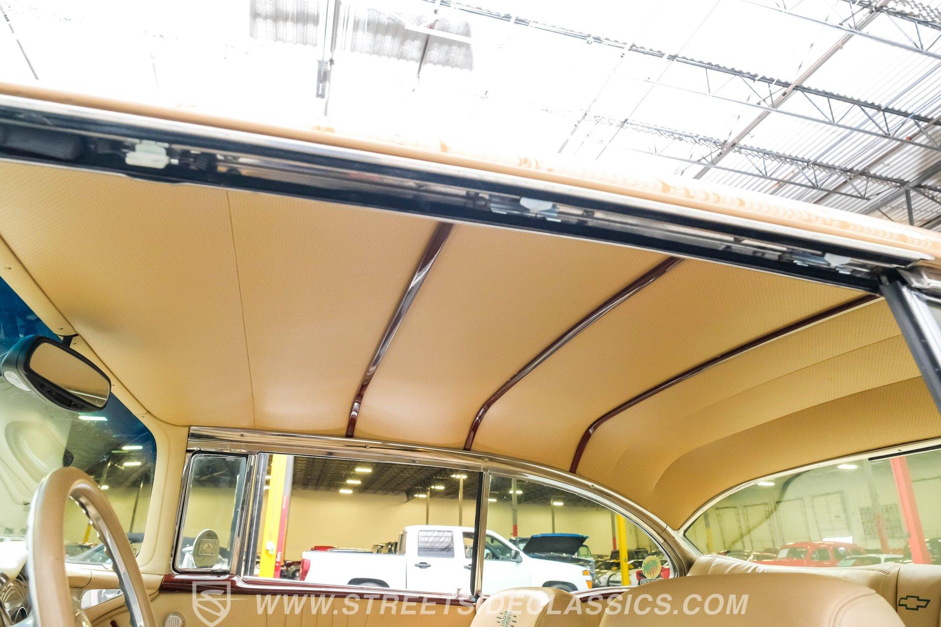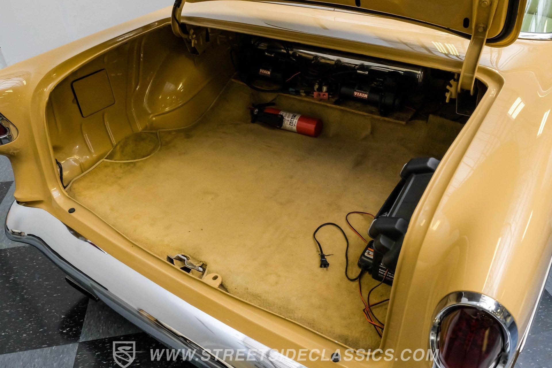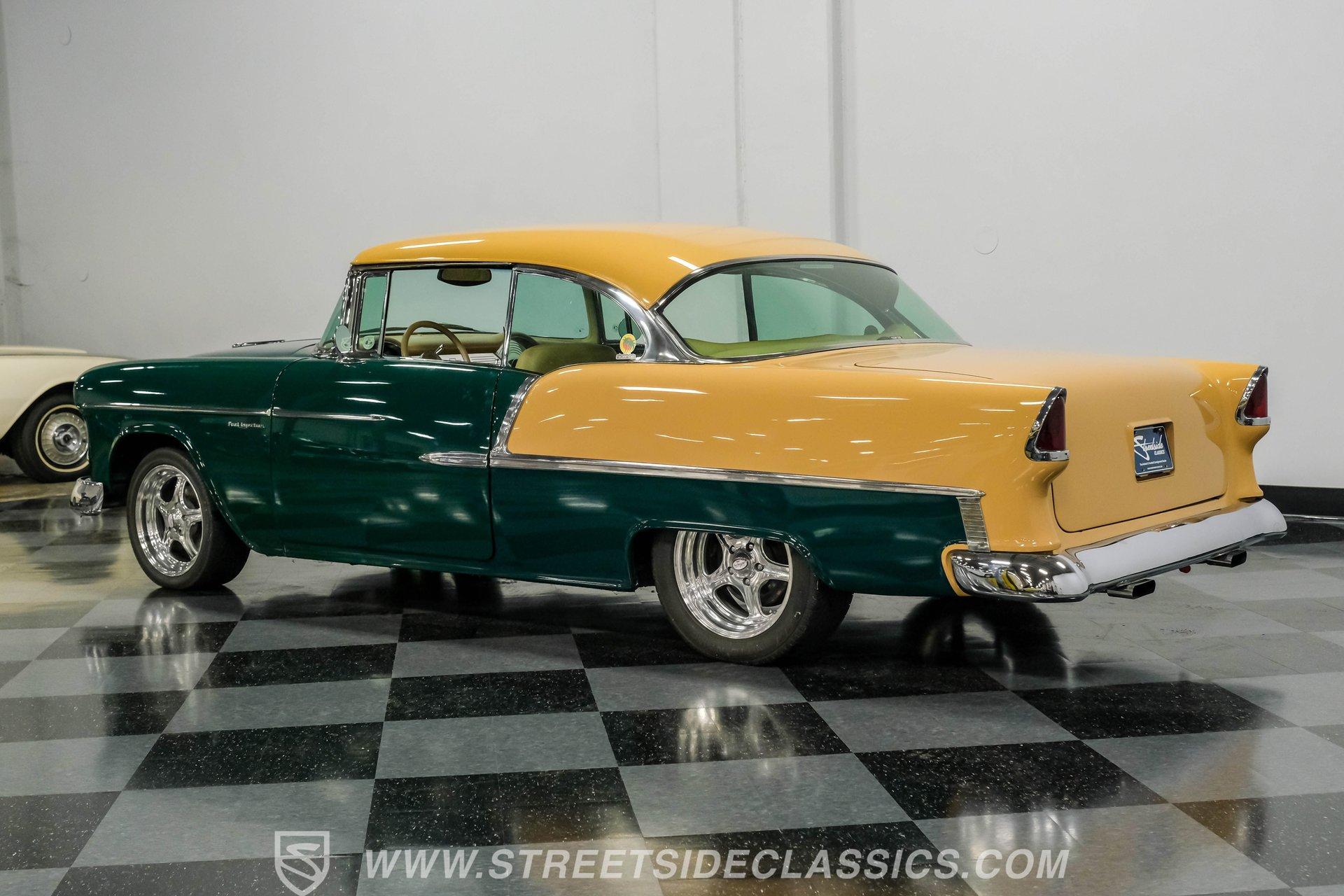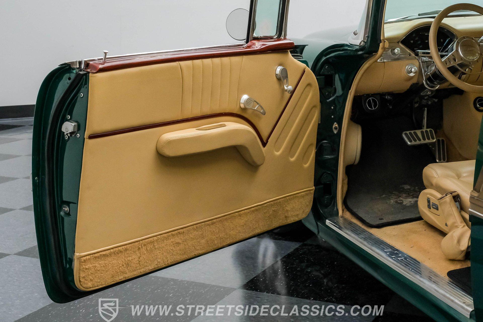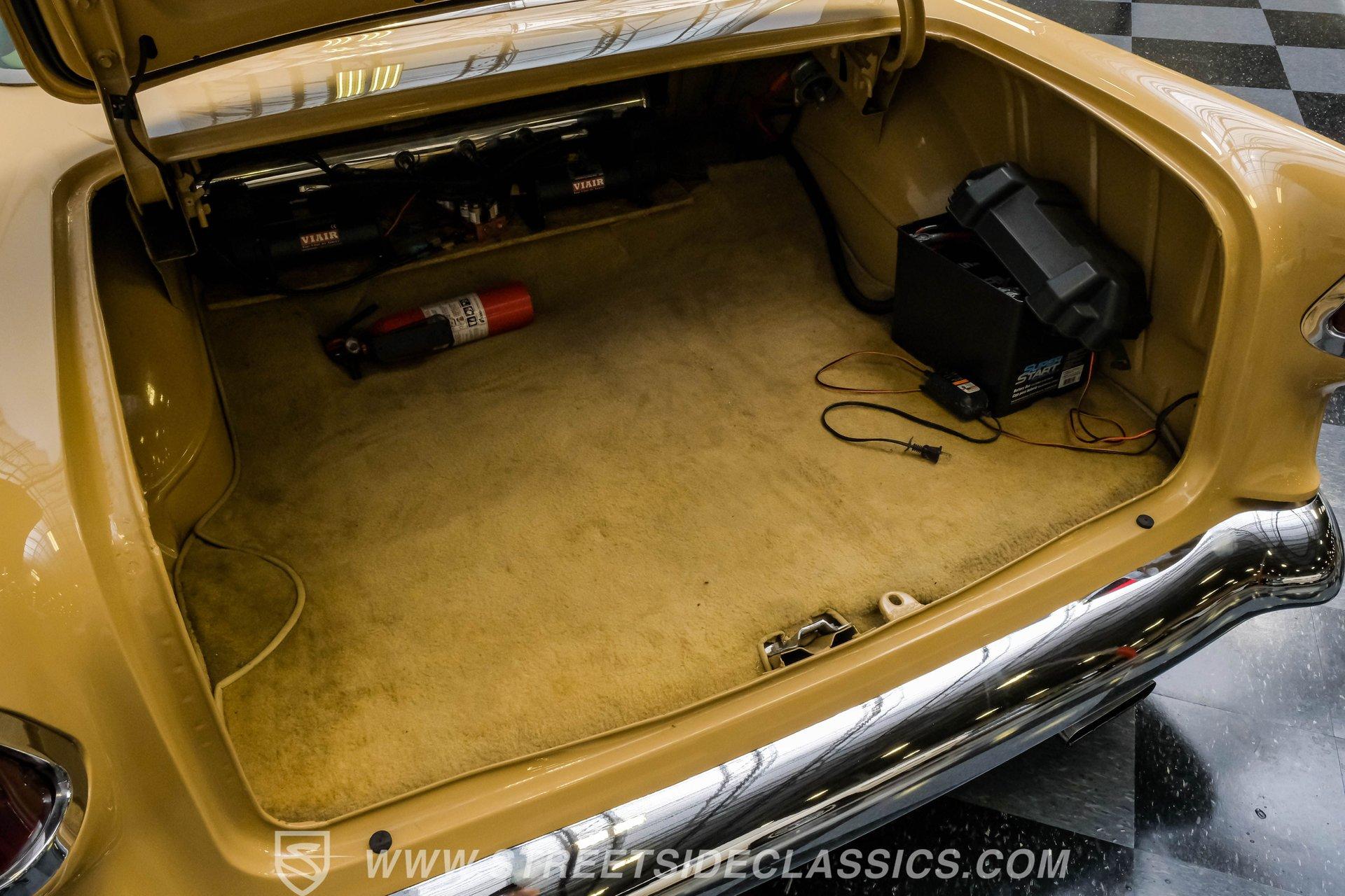 Owning a classic car is about more than just transportation-it's about embracing a piece of history, a symbol of timeless style and craftsmanship. This fully restored 1955 Chevrolet Bel Air Restomod captures the spirit of mid-century America with a modern twist, blending nostalgic charm with contemporary performance and comfort. Covered in a very unique and stylish color combination of Metallic Green and Colorado Beige, it really makes quite the impression with the aid of shaved door handles, smoothed hood and trunk with a recess for the license plate, one piece bumpers and a custom grille. If you've ever dreamed of owning a classic that offers both style and substance, this 1955 Chevrolet Bel Air might just be the perfect fit. Step inside to experience an interior that perfectly balances vintage aesthetics with modern luxury. The custom cream leather upholstery complements the exterior accents, creating a cohesive and elegant look. Equipped with power driver's seat featuring lumbar support and heating, a custom-built center console, and digital Dakota gauges, the cabin offers comfort and convenience. Additional features include a chrome Ididit tilt column with a custom billet steering wheel, power windows, power door poppers, and a power trunk release, all wrapped in a highly detailed space that invites you to enjoy every journey. Under the hood, this Bel Air houses a potent 5.7L V8 engine with tuned port injection paired with a smooth-shifting 700R4 four-speed automatic transmission operated via a column shifter. The engine bay is impressively clean and organized, with all wiring neatly tucked away in a matching color scheme. The tuned port injection enhances performance and reliability, while the 3.47 posi rear end and air ride suspension with airbags at all four corners provide a balanced, comfortable ride. Additional mechanical highlights include power steering, power brakes with front disc and a custom Brass Works radiator with a 16-inch fan, ensuring reliable cooling and spirited driving dynamics. Highlights 5.7L V8 Engine With Tuned Port Injection 700R4 Four-Speed Automatic Transmission Custom Leather Interior Power Driver's Seat With Lumbar Support And Heating Dakota Digital Gauges Air Conditioning Air Ride Suspension With Airbags On Four Corners 3.47 Posi Rear End Power Front Disc Brakes Power Steering Boyd Coddington 17" Chrome Wheels LED Taillights Shaved Doors, Hood, And Trunk With Recess for Plate Documentation Includes Restoration Photos, Receipts And Service Manuals Financing Available Vehicle Protection Plans Available Worldwide Shipping This 1955 Chevrolet Bel Air Restomod is a superb blend of classic style and modern upgrades, making it a standout choice for collectors and enthusiasts alike, ready to enjoy daily or showcase at any event. Don't miss the chance to own a beautifully restored piece of automotive history. Call, email, or come visit our showroom today!