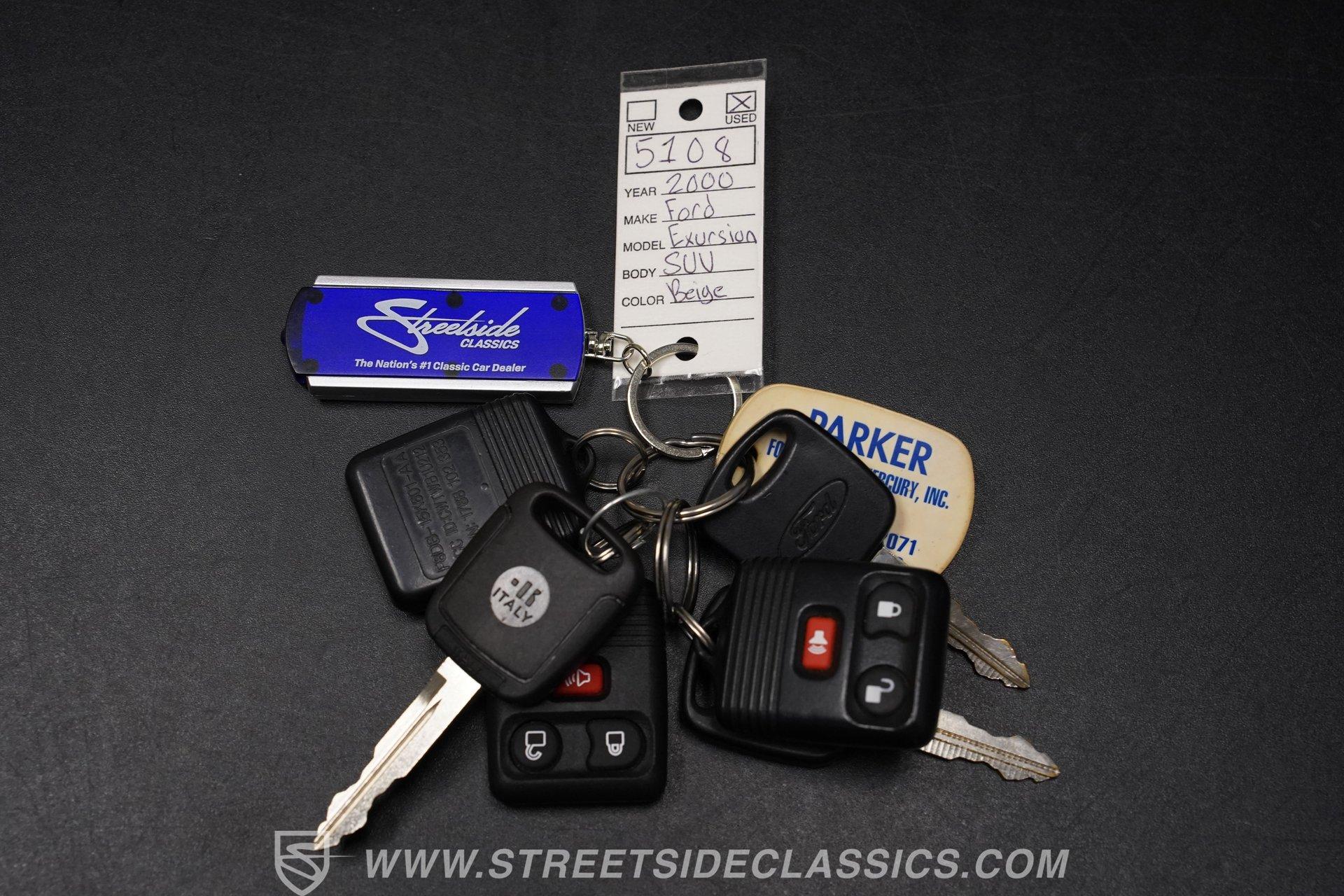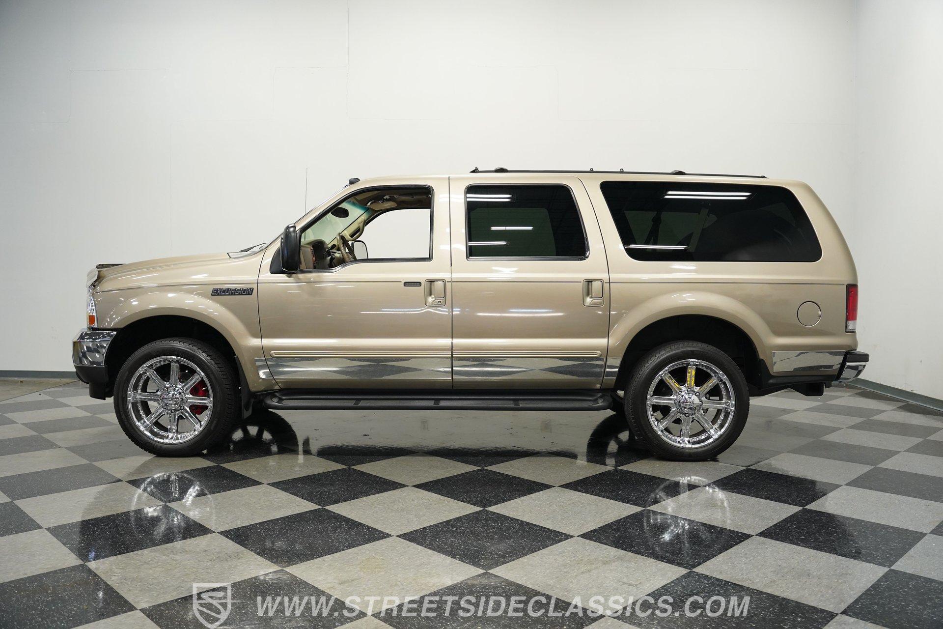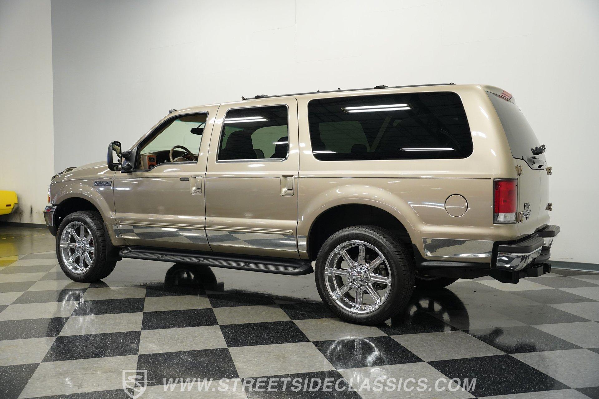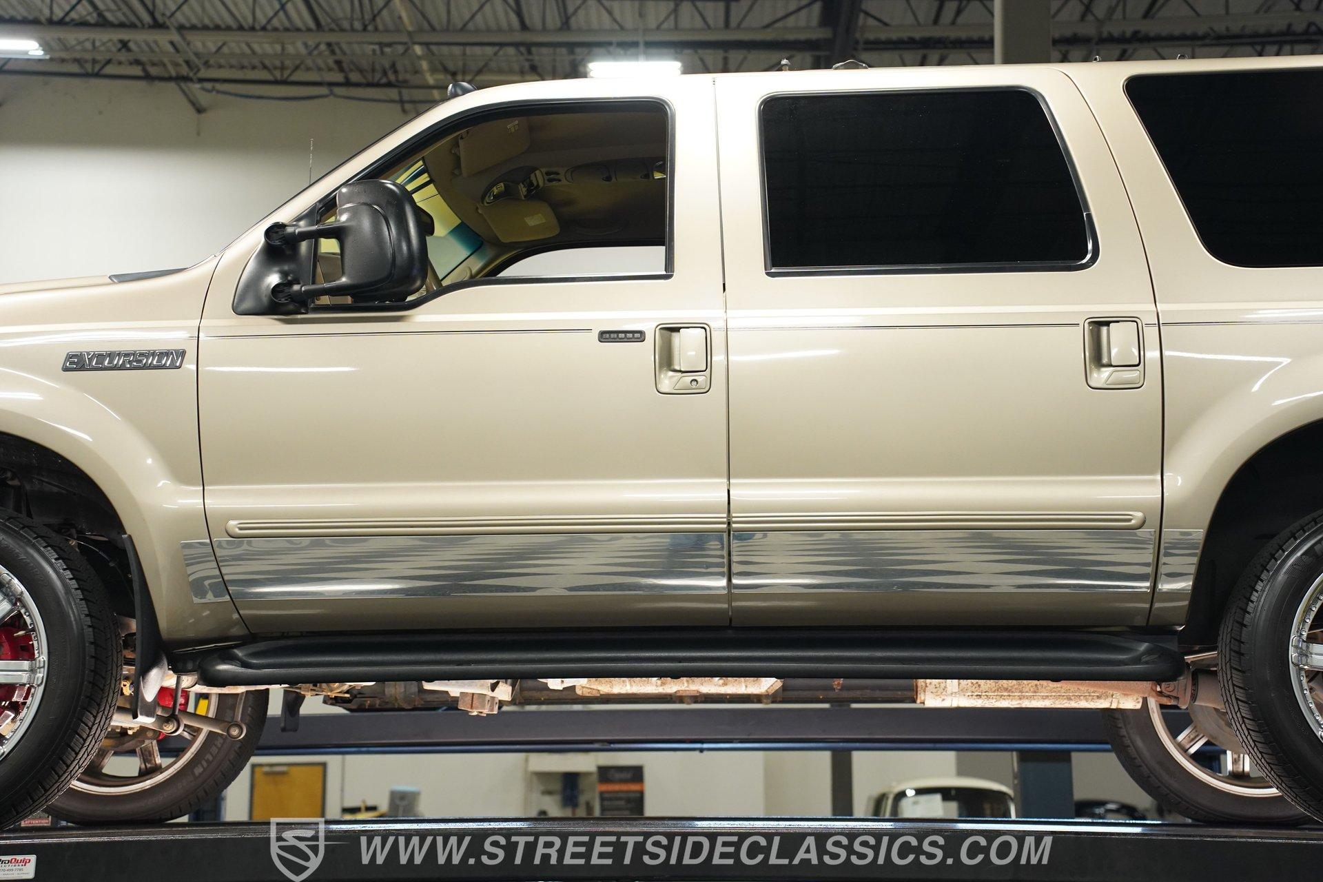 From the time it first rolled out, Ford's mega-sized Excursion was a dominating presence. Bigger and taller than its competitors and built on a truck-style chassis that equipped it with an elite towing and payload capacity, it was a unique vehicle that combined its expansive dimensions with surprisingly easy drivability and four-wheel drive surefootedness. Flash forward a quarter century to the present, and this 2000 Ford Excursion XLT 4x4 is an outstanding representative of that one-of-a-kind model. Its Arizona Beige Metallic paint has a nice, deep shine, and even under close scrutiny, you'd be hard-pressed to find any dents or blemishes to detract from its impact. Consistently fresh brightwork from front to back enhances this unusually clean Ford's vibrant curb appeal. The cloth Parchment interior is in flat-out great shape, and as you peer inside, its sheer volume becomes evident. This jumbo-sized SUV can effortlessly accommodate eight passengers in comfort with its three broad rows of seating. The condition of the seats themselves is especially impressive. Ford's cloth upholstery has a reputation for durability but not only do the front buckets and two rows of bench seating still show only the slightest of wear, but there are also no glaring stains or discolorations to be found. Walk around to the rear and open the full-size doors that combine with a drop-down tailgate, and you can also see just how much storage space will be at your disposal, especially with the third-row bench seat folded down. Up front, the dash area is another high point, with its contrasting dark panel encircling clear factory gauges and control knobs that look pretty much as they did from the start. Needless to say, a sizable SUV built for action requires a potent engine, and this Excursion has one. Its electronically fuel-injected 6.8-liter V10 represented Ford's most powerful gas option for the model at the time of its release, offering well over 400 lb.-ft. of torque and equipping it with a towing capacity of up to 10,000 lbs. Like everything else on this Ford, it's in top-notch working order and pairs with a 4-speed automatic transmission to make for a versatile yet refined driving experience. And when a sense of adventure grabs you, its four-wheel drive agility is unleashed via an easily reachable electronic push-button on the dash. HIGHLIGHTS 6.8-LITER V10 ENGINE ELECTRONIC FUEL INJECTION 4-SPEED AUTOMATIC TRANSMISSION ELECTRONIC SHIFT ON THE FLY 4-WHEEL DRIVE POWER STEERING 4-WHEEL POWER DISC BRAKES UPGRADED HEADLIGHTS ARIZONA BEIGE METALLIC PAINT 22" CHROME WHEELS AIR CONDITIONING CLOTH PARCHMENT INTERIOR BUCKET SEATS ADDITIONAL SET OF FACTORY WHEELS WITH OFF-ROAD TIRES INCLUDED An increasingly rare SUV that still commands attention, this 2000 Ford Excursion XLT 4x4 conquers terrain on a set of ultra-sharp 22" chrome wheels. It's a unique blend of ruggedness and refinement that would look great in any garage. Call today!