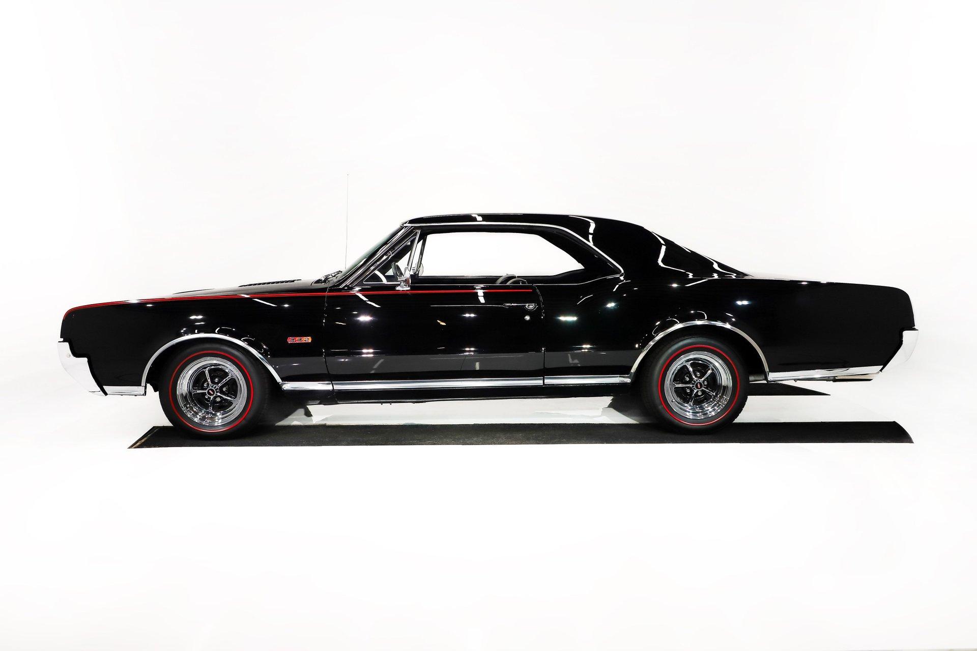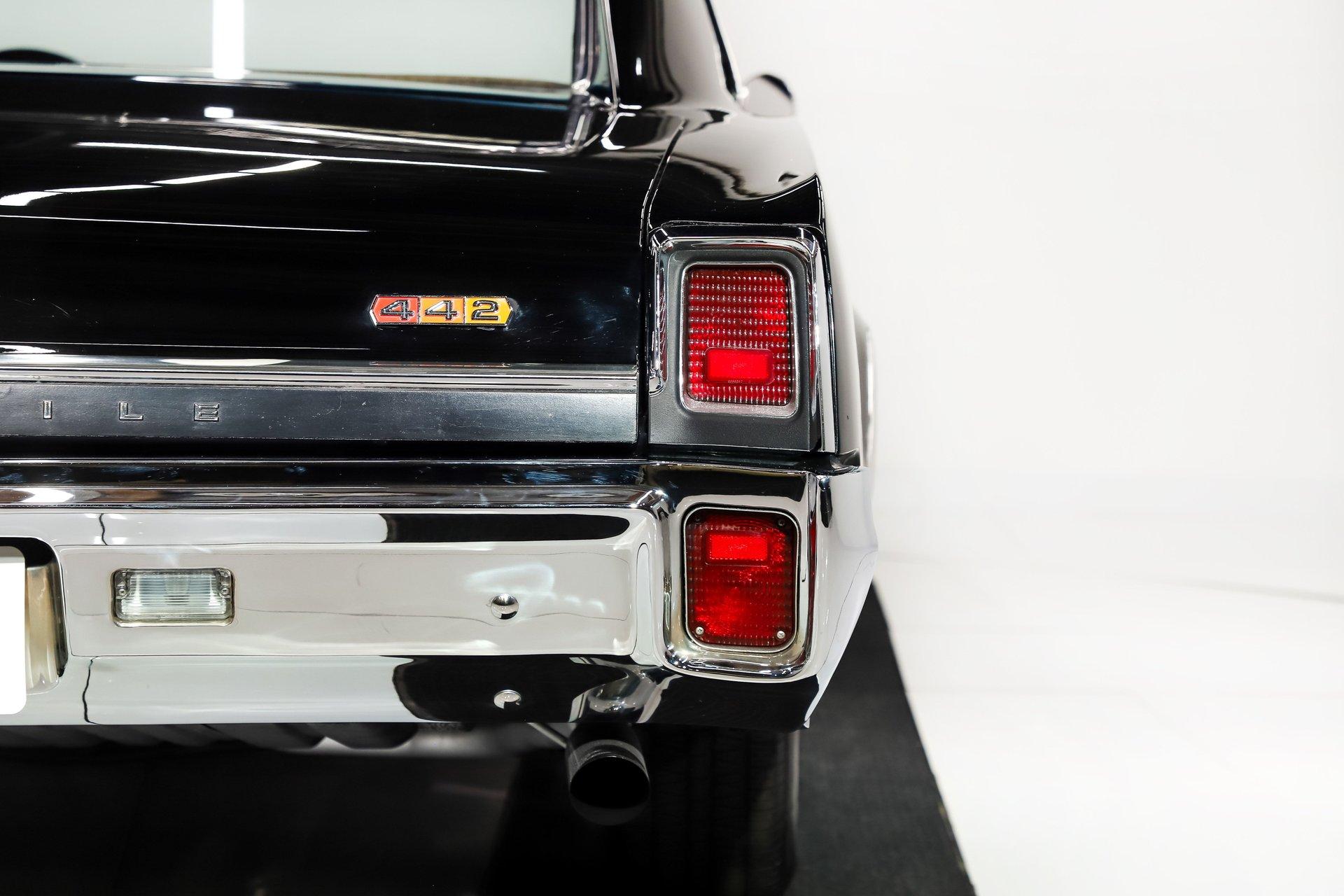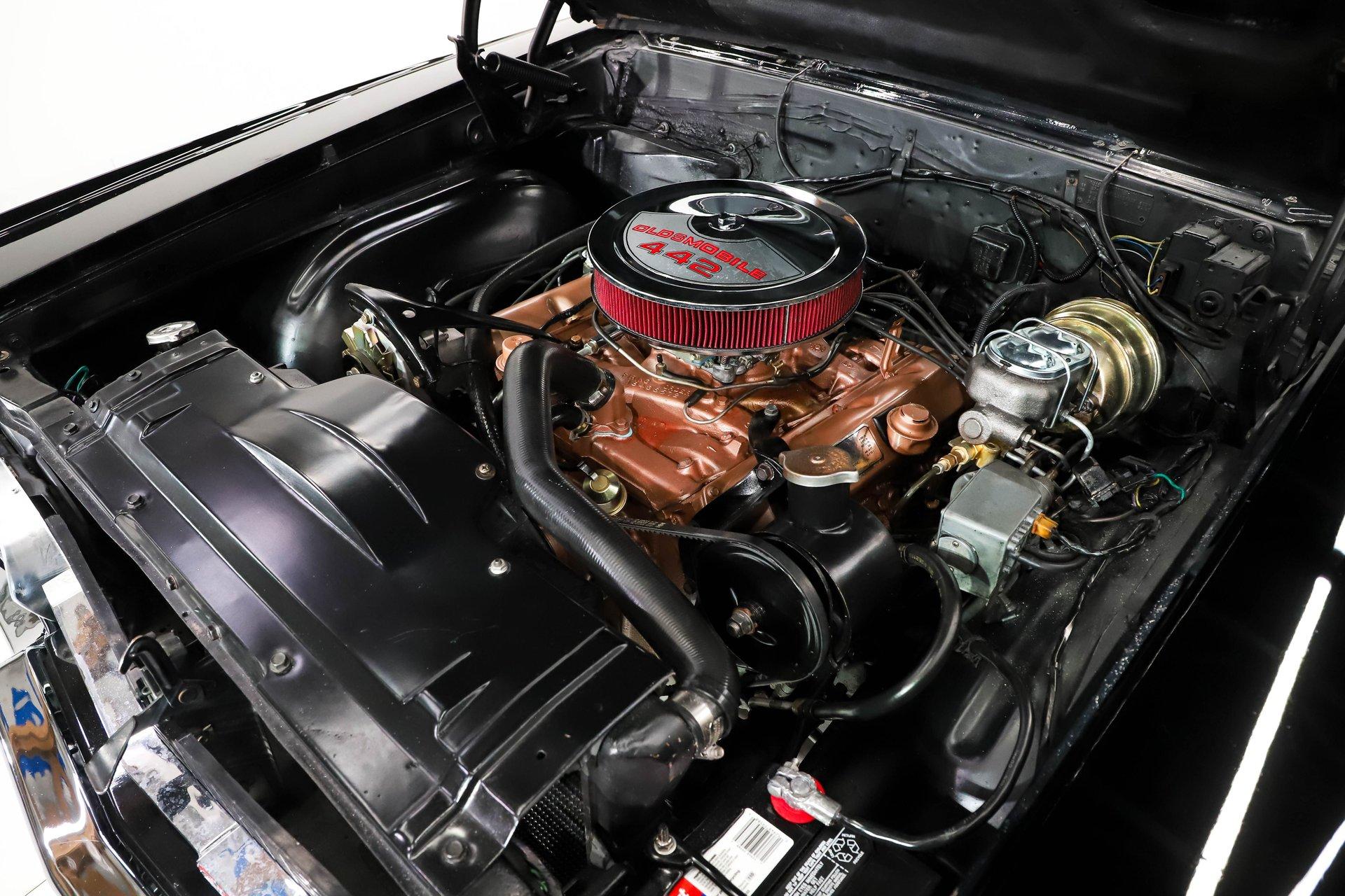 This is a real 442 with #s matching motor, trans and stunning factory colors! Believed to have 45,000 actual miles, it is exceptionally clean. Nicely Claimed 45,000 actual miles. I just acquired this car back from family I sold it to 6 years ago, they only put 70 miles on it! It was garage kept and just as beautiful as when we sold. It was just serviced in our shop and ready to be enjoyed! EXTERIOR: Striking combination of slick black paint with no vinyl top, red pinstripe, redline tires and the chrome SS-1 wheels! Looking down the sides of the car they're both laser straight. The body panel gaps are flush and square. No signs of any bubbling, cracking or issues. I am also noticing on how well the bumpers fit the body, where they line up against the quarter panels and fenders is about as good as they get. In back the bumper, tail panel, emblems and tail light bezels are in mint condition. The door handles have been replaced, mirrors are real nice original. Side moldings are straight and polished. Up front the bumper, emblem, headlight bezels are really sharp looking. The windshield is crystal clear. The door jambs have been painted nice, new weatherstrips, sill plates and fuzzy window seals. The doors shut like new, even with the windows rolled up. Tires and wheels really look amazing on this car! They are upgraded to 15 inch and the tires are radials. INTERIOR: It looks and functions like new! All of the chrome, lenses, bezels, dash pad look like new. The radio was serviced, original speaker restored, new glovebox liner with working light, restored ashtray. It has very desirable rally pac gauges with tachometer in the middle. New wiring harness. I have always said new carpet or seat covers are easy, restoring the dash area is much more difficult and this one is all done for you! It also has sport wheel, bucket seats and console. ENGINE COMPARTMENT: #s matching 400 engine. It was just completely rebuilt August 2017 and has very few miles since. Painted the correct bronze color. The carb is upgraded with a big Holley. Features include power brakes, power steering and rare cruise control. All the components, hoses, wires look neat and orderly. The trim tag on the firewall shows paint code A-A for Tuxedo black upper and lower and 5V indicates it is a 442. TRUNK COMPARTMENT: Under the trunk lid and jamb are painted slick. Inside is clean, solid metal with a mat, trunk light and jack assembly. The trunk floor and 1/4 panels appear to be original the originals. UNDERSIDE: Very solid metal. I dont see any signs of patching, the lower inner 1/4s are even clean. The bottom of motor is still clean, starter was replaced. It has the original Turbo 400 automatic trans, dated 1967 and code OG on its tag. The trans was also rebuilt. Upfront the suspension and steering have been rebuilt- new ball joints, bushings, shocks etc. In back it has the boxed control arms, sway bar and upgraded air shocks. The brakes were just serviced and have been upgraded to disc in front. Has air shocks. The dual exhaust has stainless mufflers. This 442 is going to do more than "Wow" the onlookers, it's going to be a real pleasure to drive for its new owner too! Power steering Power disc brakes Rally pac gauges Tachometer Cruise control Bucket seats Console Sport wheel Remote mirror SS-1 wheels Radial redlines F-41 suspension