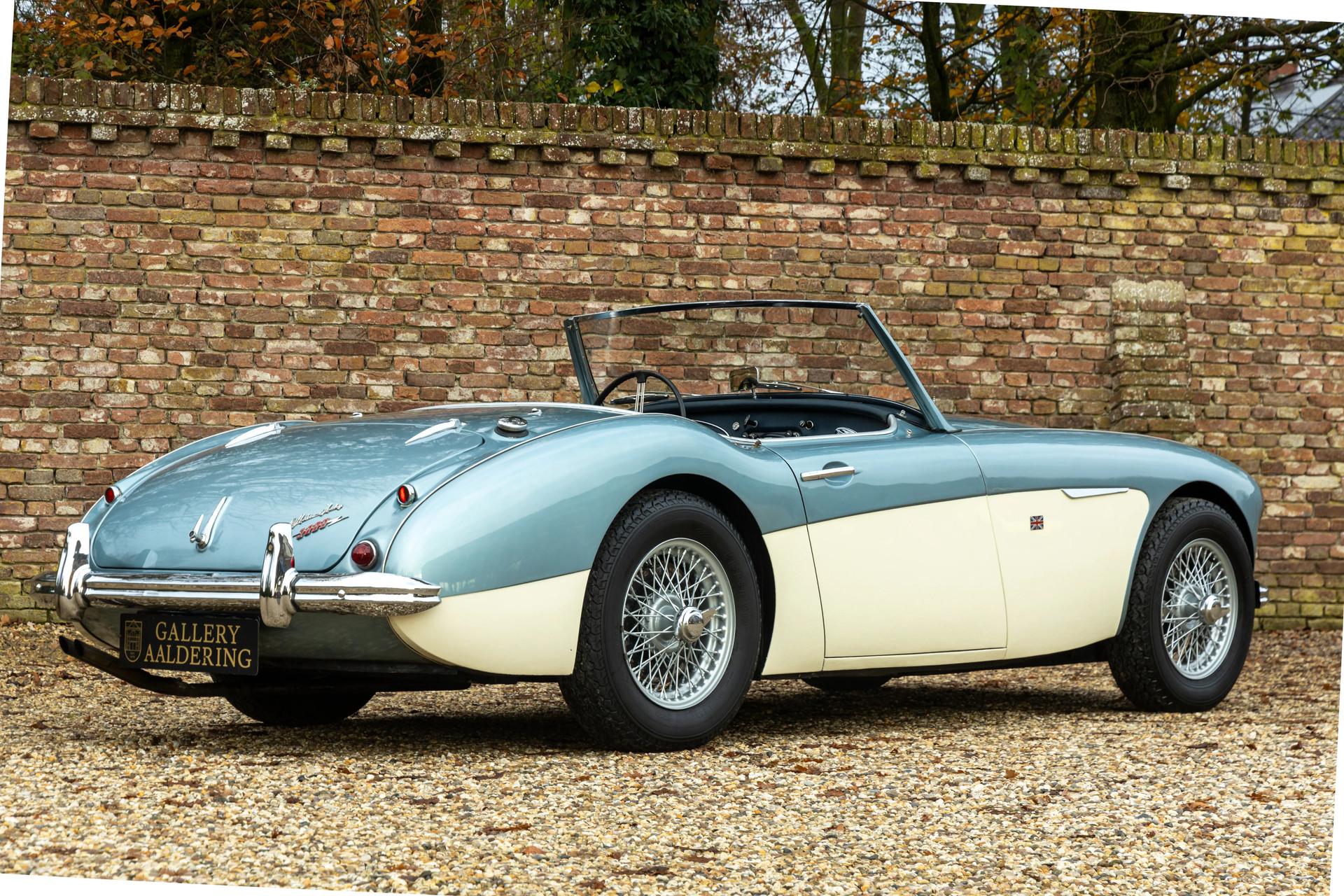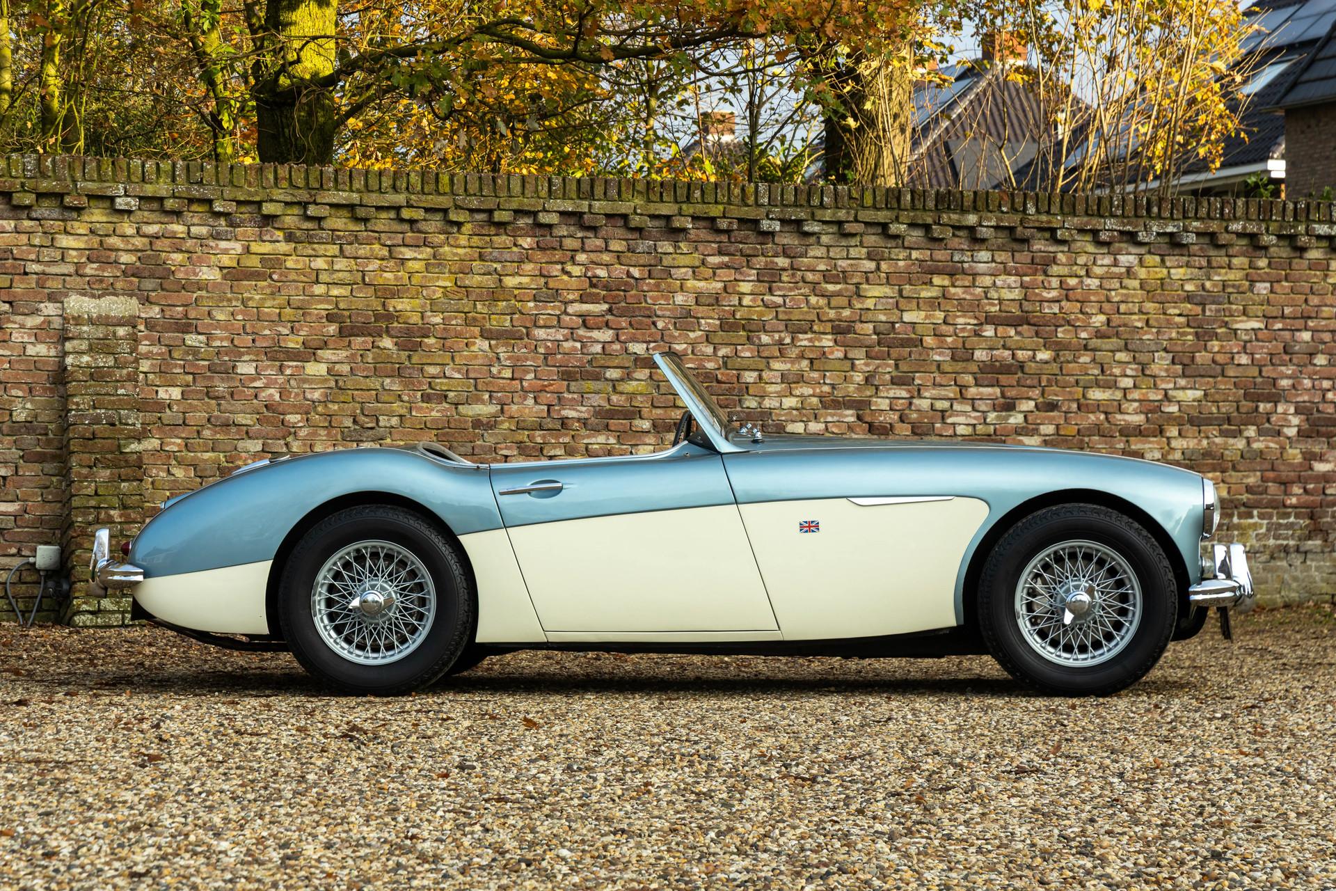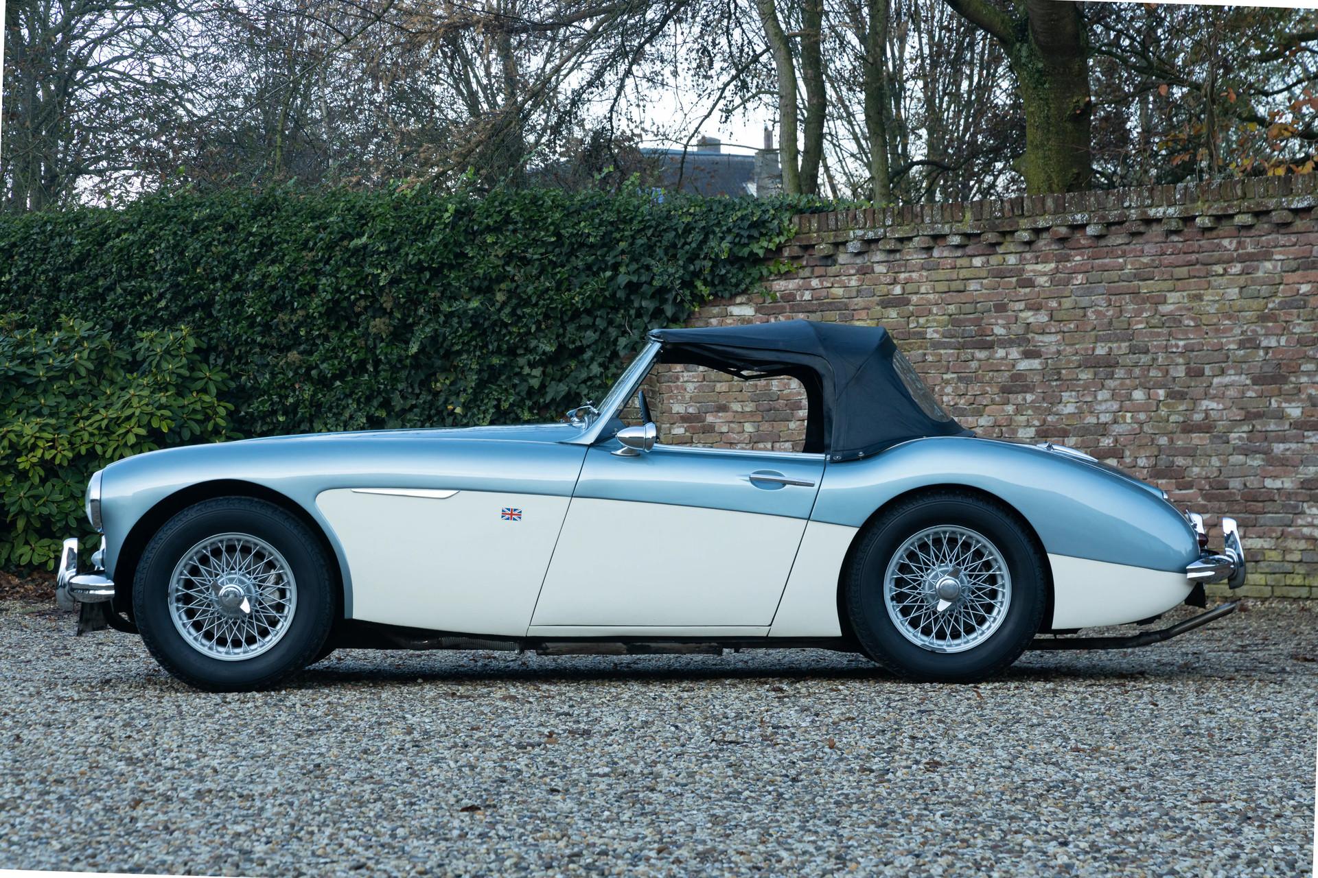 The Austin-Healey has been regarded since its debut as one of the purest British sports cars ever built. And that unmistakable feeling comes alive the moment you see this Healey in its iconic livery: Ice Blue over Old English White. A combination that has become legendary in the classic-car world and remains every bit as charming today as it was in the 1960s.