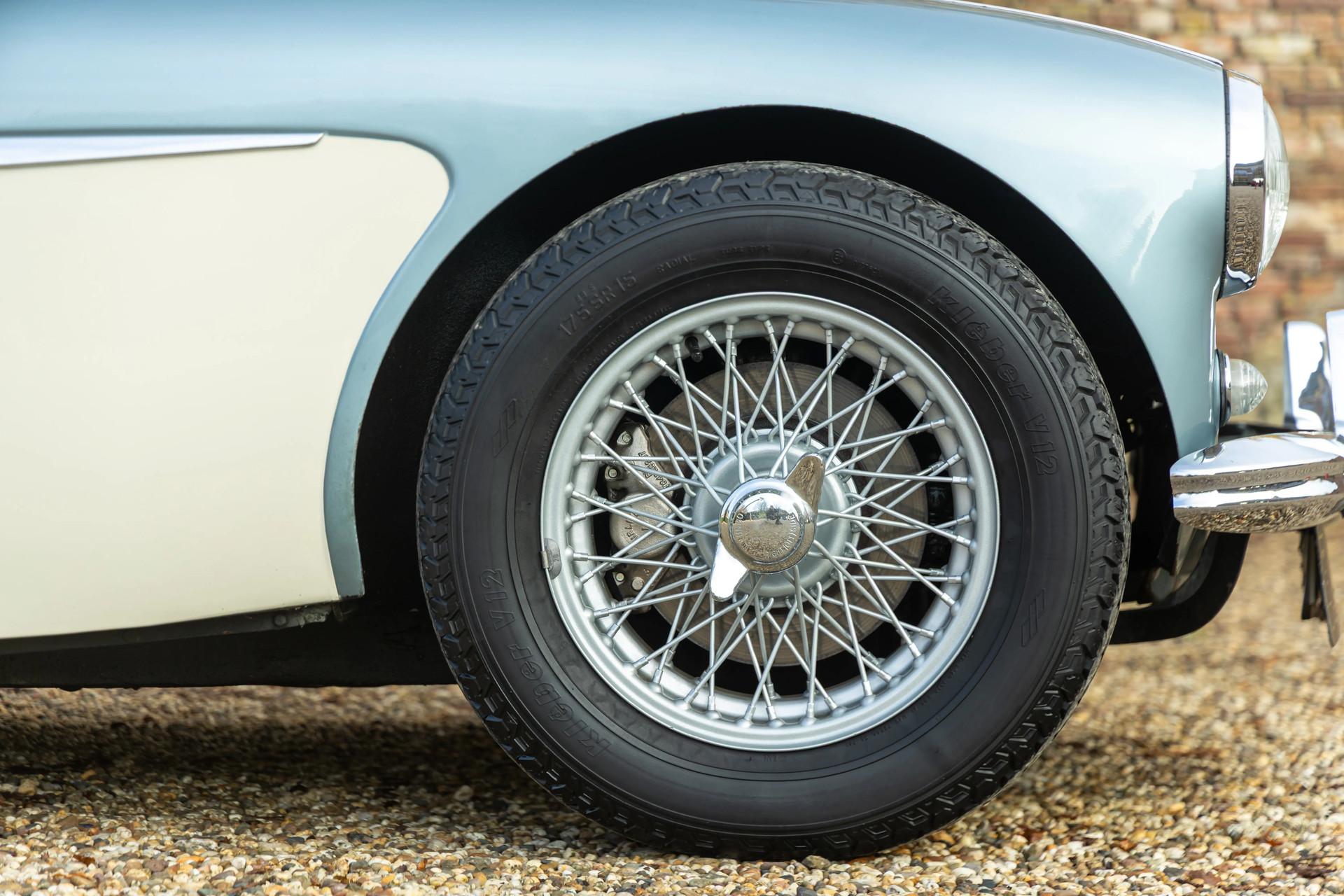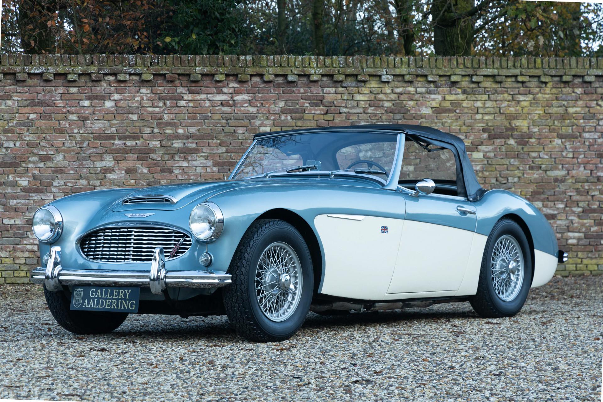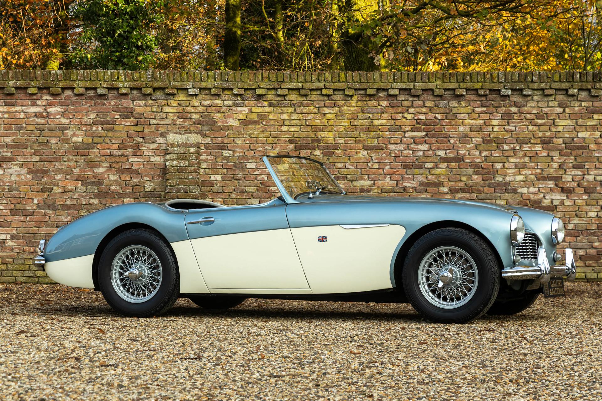 The Austin-Healey has been regarded since its debut as one of the purest British sports cars ever built. And that unmistakable feeling comes alive the moment you see this Healey in its iconic livery: Ice Blue over Old English White. A combination that has become legendary in the classic-car world and remains every bit as charming today as it was in the 1960s.