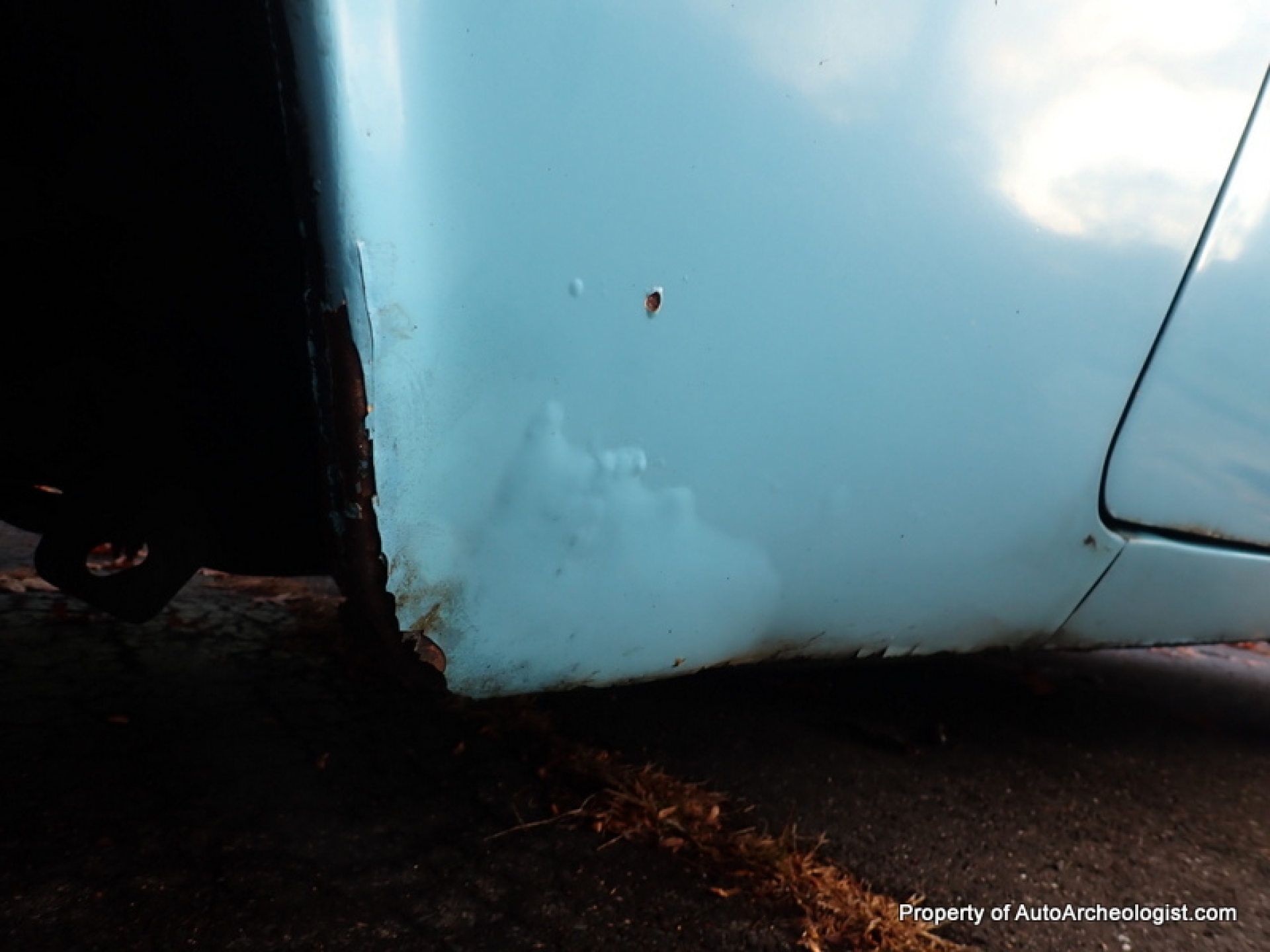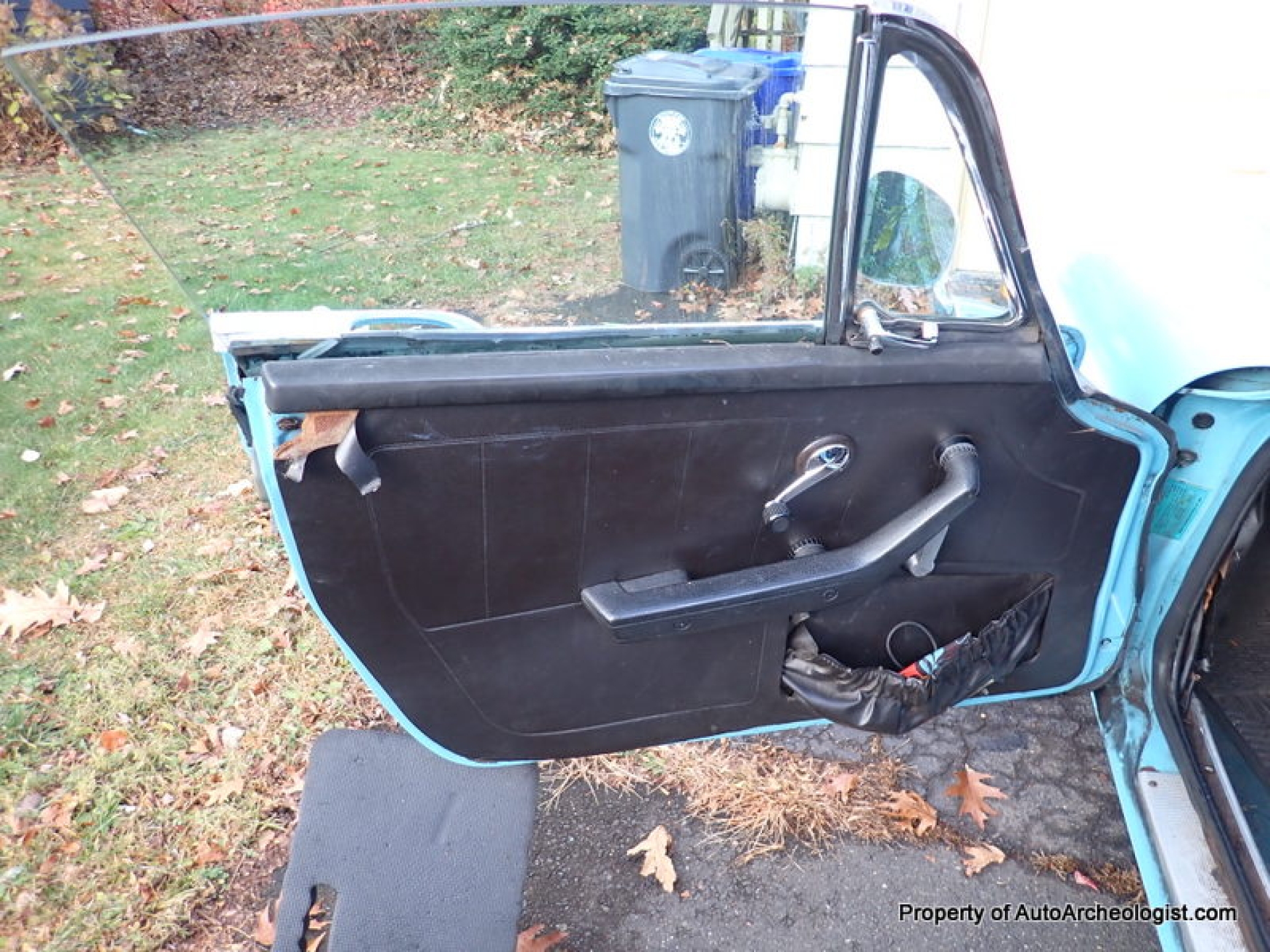 The carpets are matted down and faded. The passenger floor has some sort of fiberglass spread over it, but from below there is no visible rust issues.