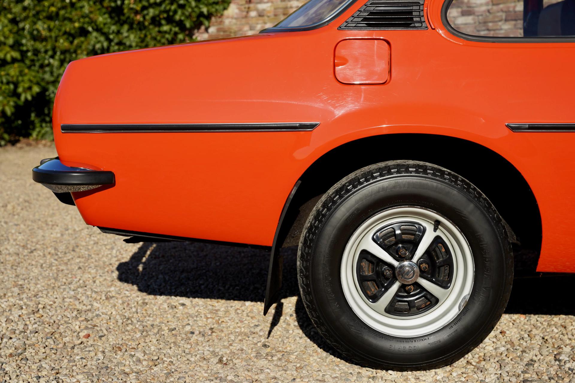 This is not a restored classic or a car that's been rebuilt with fresh paint and updated upholstery. No, this Ascona is genuinely original. The paint? Signal Red, still the stunning factory-original finish. The interior? The black-and-white fabric upholstery looks as if you've stepped straight into a showroom in 1977—still fresh, crisp, and practically like new. Even the original service booklets and accompanying folder are still present.