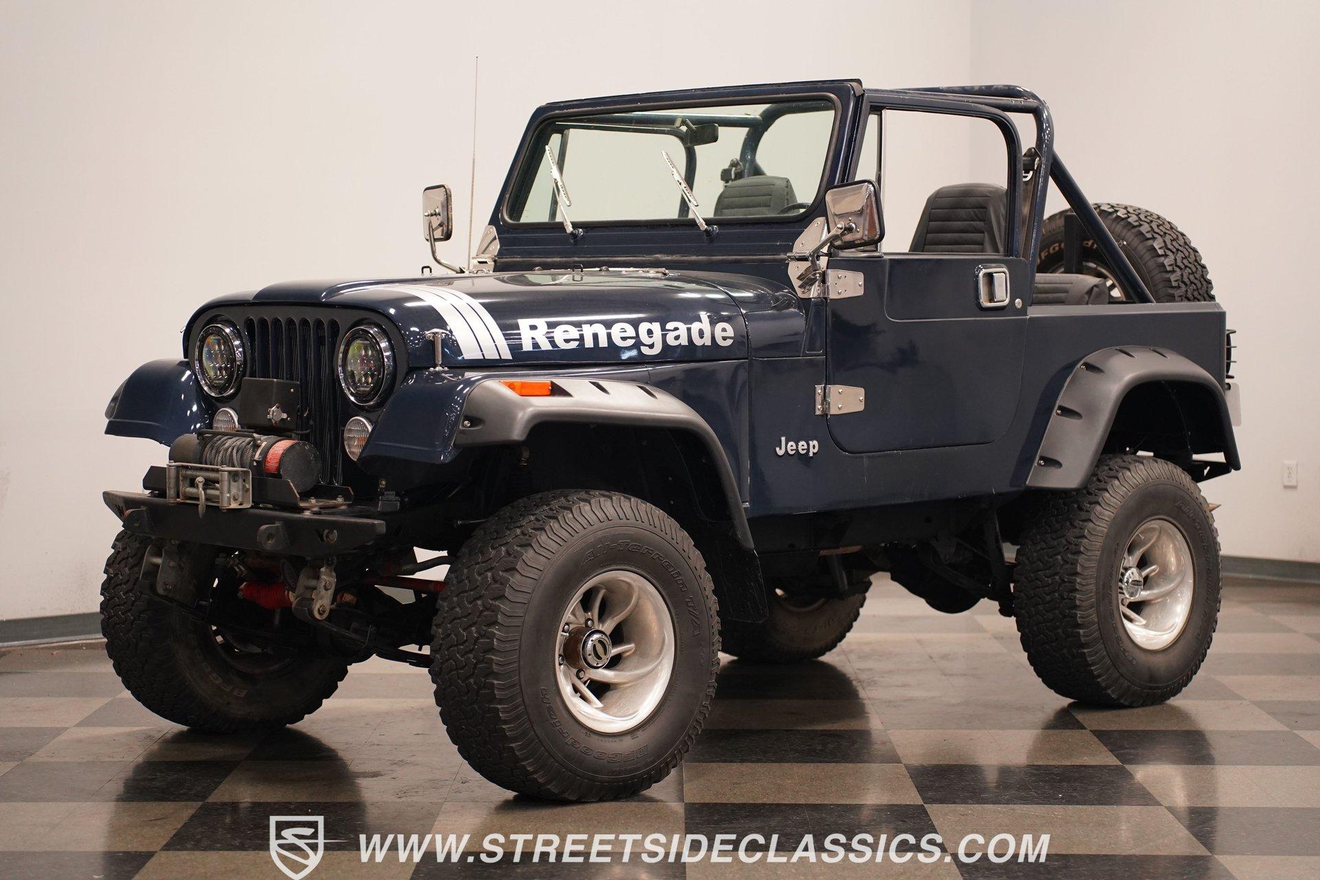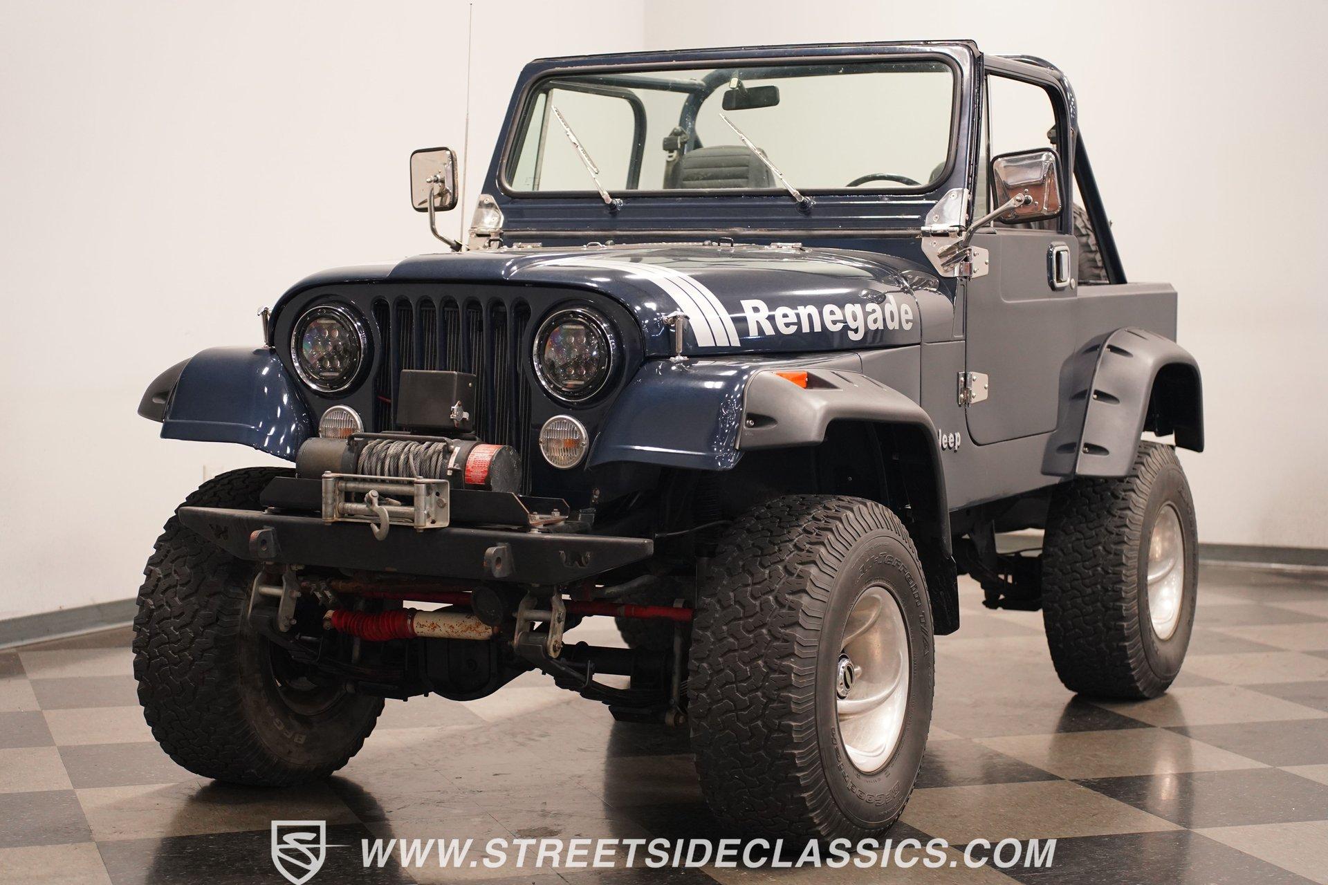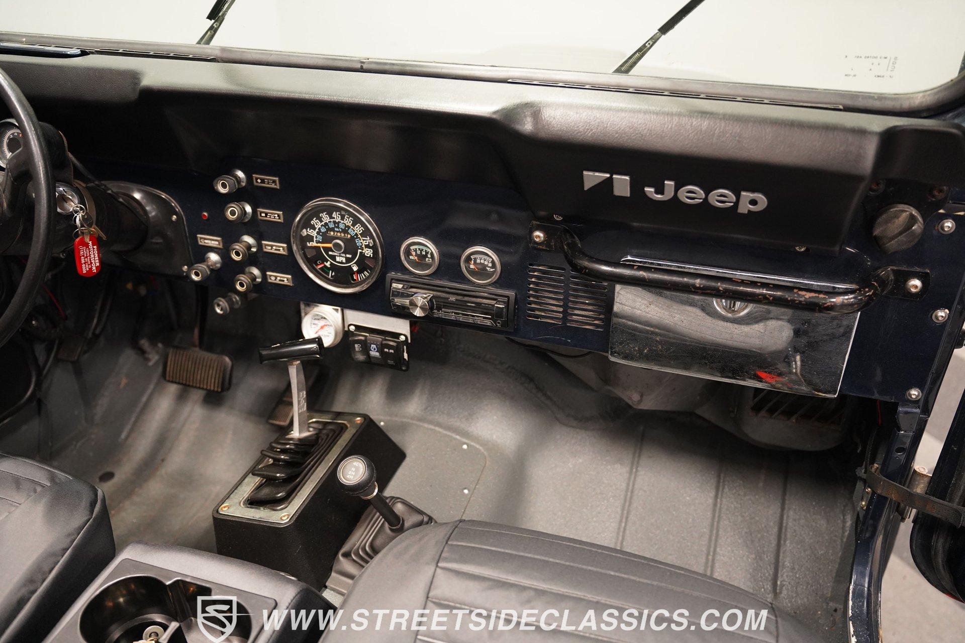 Navigating both city streets and rugged trails with equal poise, this 1985 Jeep CJ7 revs up enthusiasm with its bold Navy Blue Metallic paint and Renegade decals. The exterior is equipped to make a lasting impression, sporting 15" alloy wheels wrapped in 33x12.50R15LT all-terrain tires, capable of tackling any adventure. The presence of a hard top and a supplementary bikini top offers versatility while the silver stripes along the body reflect a playful yet aggressive spirit. Enhanced with a 3-inch lift kit and chrome accents, this Jeep stands tall, ready to dominate any terrain. Inside, the Jeep CJ7 offers a blend of utility and comfort. Black vinyl seats, resilient against the elements, align with the Jeep's adventurous ethos, while garnet vinyl denim bucket covers add a touch of sophistication. The floor-mounted shifter and central console integrate functionality with style, complemented by door panels that keep essentials within easy reach. The setup is complete with an AM/FM single CD player equipped with USB and AUX inputs, ensuring connectivity and entertainment is always on hand. Beneath the surface lies a robust 4.2L Inline 6 engine, mated to a 3-speed automatic transmission that delivers power smoothly and efficiently. The powertrain is bolstered by a Howell Engine Developments modification, providing reliability and enhanced performance. Supporting this power is a leaf-spring suspension with shocks and power brakes, which maintain the vehicle's composure on rough terrains. The exhaust notes from the Xcelerator muffler echo the Jeep's readiness for both leisurely cruises and spirited jaunts. HIGHLIGHTS: 4.2L Inline 6 Engine 3 Speed Automatic Transmission Howell Engine Developments replacement Single Barrel Carburetor Upgraded Distributor, Wires, etc. Xcelerator Muffler Power Disc Brakes at Front Navy Blue Metallic Paint with Silver Decals 15" Alloy Wheels in 33x12.50R15LT All-Terrain Tires Hard Top Bikini Top LED Headlights Tow Hitch Receiver Chrome Accessories 3-inch Lift Kit Front Mount Winch Updated Renegade Decals Black Vinyl Seats with Garnet Vinyl Denim Bucket Covers Power Steering Center Console AM/FM Single CD Player with USB, AUX Air Activation System Compressor B&M Shifter With its formidable 4.2L engine and thoughtfully designed interior, this 1985 Jeep CJ7 combines power with poise, offering an exhilarating ride both on and off-road. Its meticulously crafted features make it an enticing choice for anyone eager to forge new paths. Call today!