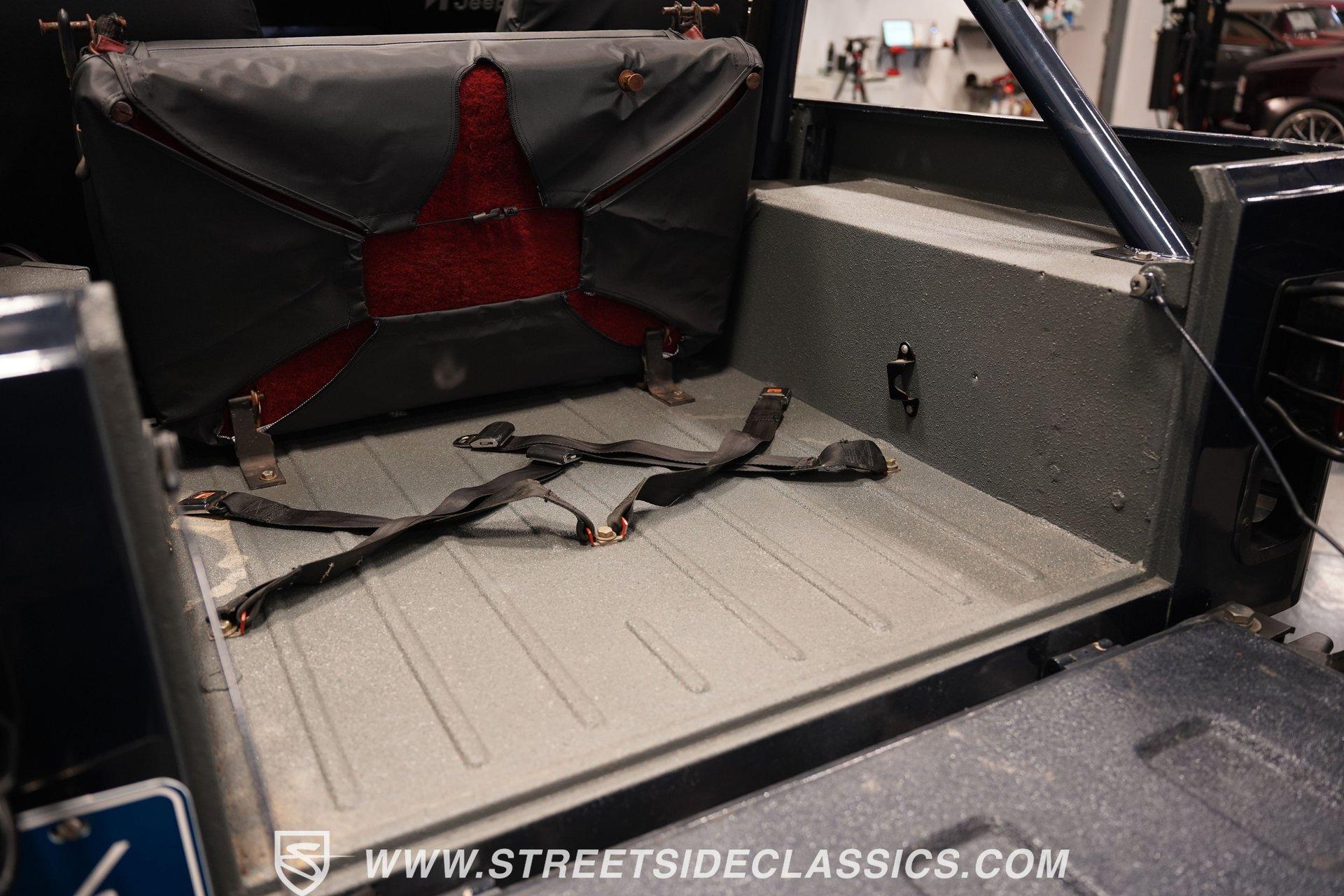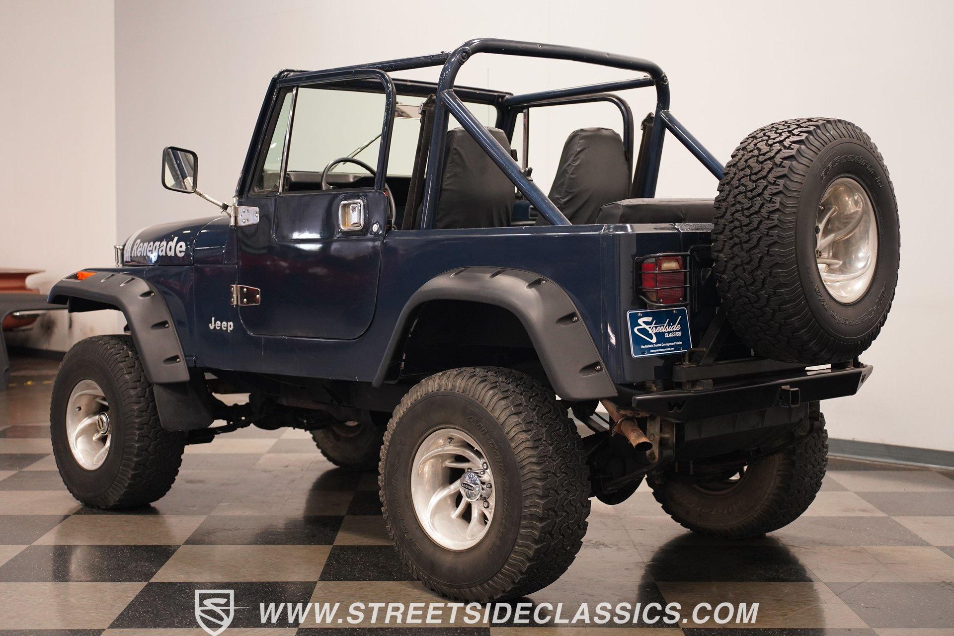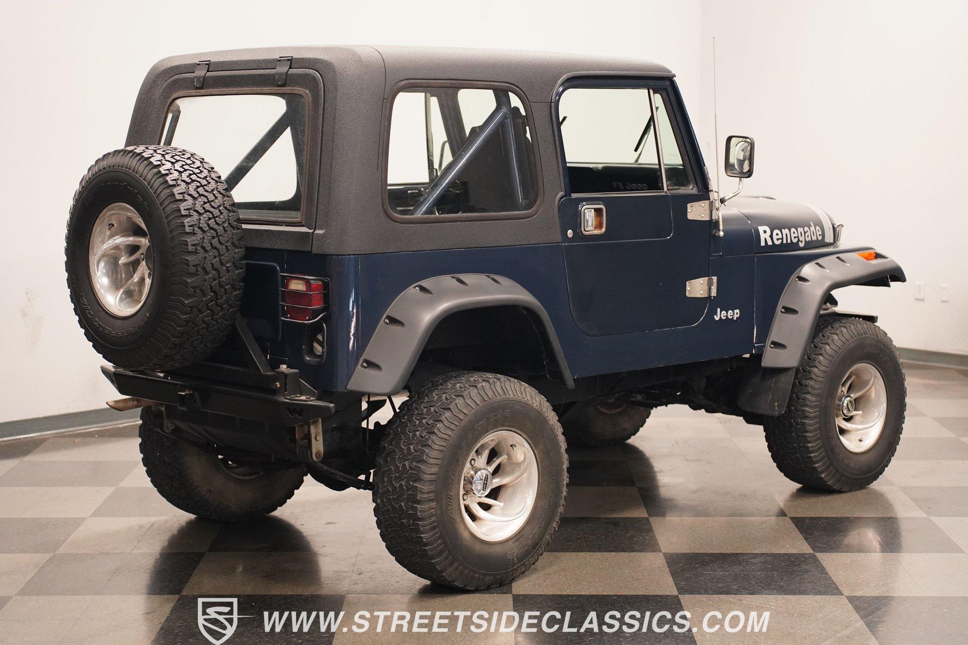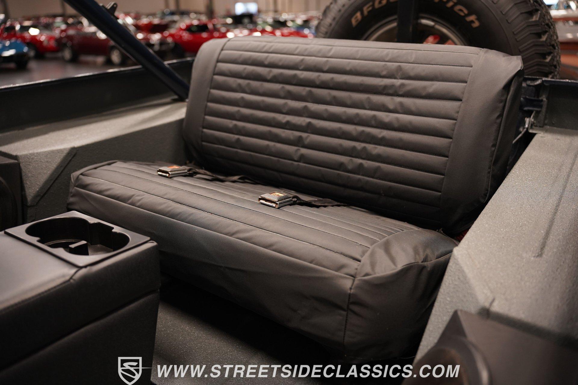Navigating both city streets and rugged trails with equal poise, this 1985 Jeep CJ7 revs up enthusiasm with its bold Navy Blue Metallic paint and Renegade decals. The exterior is equipped to make a lasting impression, sporting 15" alloy wheels wrapped in 33x12.50R15LT all-terrain tires, capable of tackling any adventure. The presence of a hard top and a supplementary bikini top offers versatility while the silver stripes along the body reflect a playful yet aggressive spirit. Enhanced with a 3-inch lift kit and chrome accents, this Jeep stands tall, ready to dominate any terrain. Inside, the Jeep CJ7 offers a blend of utility and comfort. Black vinyl seats, resilient against the elements, align with the Jeep's adventurous ethos, while garnet vinyl denim bucket covers add a touch of sophistication. The floor-mounted shifter and central console integrate functionality with style, complemented by door panels that keep essentials within easy reach. The setup is complete with an AM/FM single CD player equipped with USB and AUX inputs, ensuring connectivity and entertainment is always on hand. Beneath the surface lies a robust 4.2L Inline 6 engine, mated to a 3-speed automatic transmission that delivers power smoothly and efficiently. The powertrain is bolstered by a Howell Engine Developments modification, providing reliability and enhanced performance. Supporting this power is a leaf-spring suspension with shocks and power brakes, which maintain the vehicle's composure on rough terrains. The exhaust notes from the Xcelerator muffler echo the Jeep's readiness for both leisurely cruises and spirited jaunts. HIGHLIGHTS: 4.2L Inline 6 Engine 3 Speed Automatic Transmission Howell Engine Developments replacement Single Barrel Carburetor Upgraded Distributor, Wires, etc. Xcelerator Muffler Power Disc Brakes at Front Navy Blue Metallic Paint with Silver Decals 15" Alloy Wheels in 33x12.50R15LT All-Terrain Tires Hard Top Bikini Top LED Headlights Tow Hitch Receiver Chrome Accessories 3-inch Lift Kit Front Mount Winch Updated Renegade Decals Black Vinyl Seats with Garnet Vinyl Denim Bucket Covers Power Steering Center Console AM/FM Single CD Player with USB, AUX Air Activation System Compressor B&M Shifter With its formidable 4.2L engine and thoughtfully designed interior, this 1985 Jeep CJ7 combines power with poise, offering an exhilarating ride both on and off-road. Its meticulously crafted features make it an enticing choice for anyone eager to forge new paths. Call today!