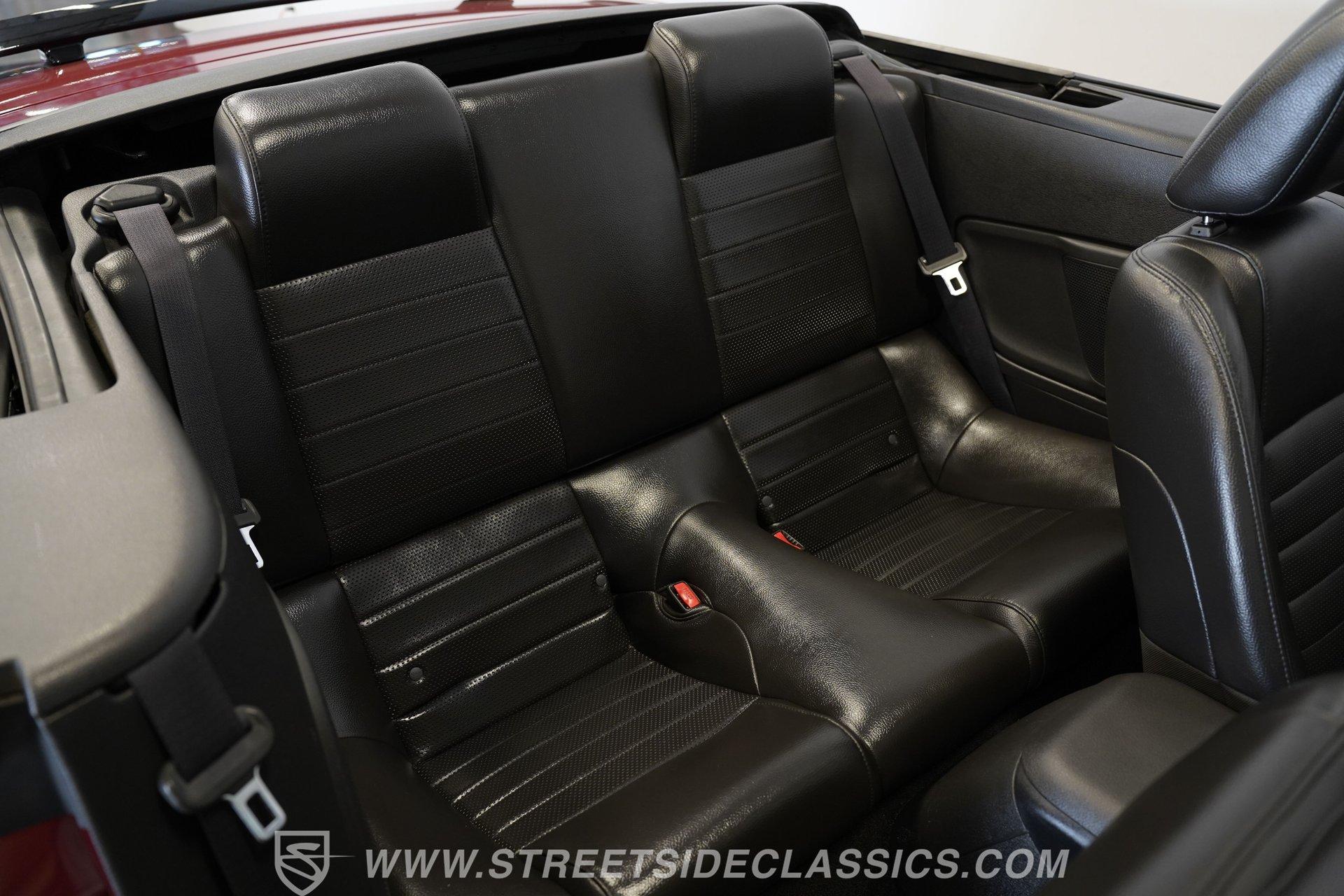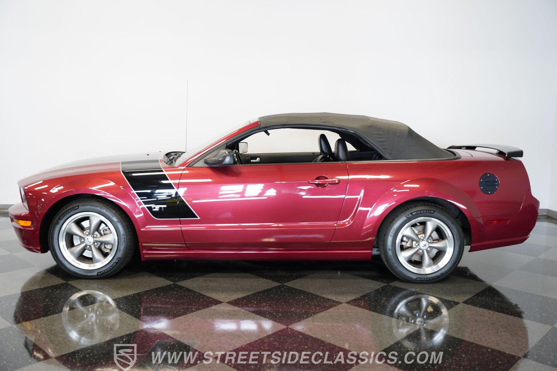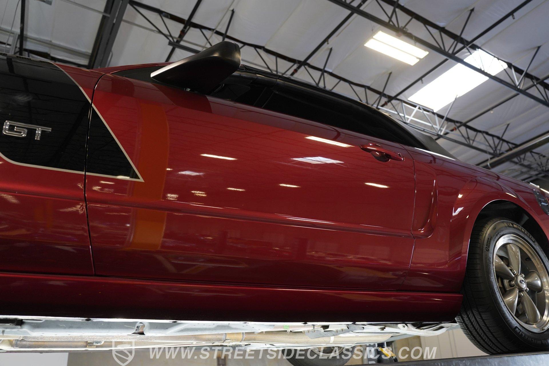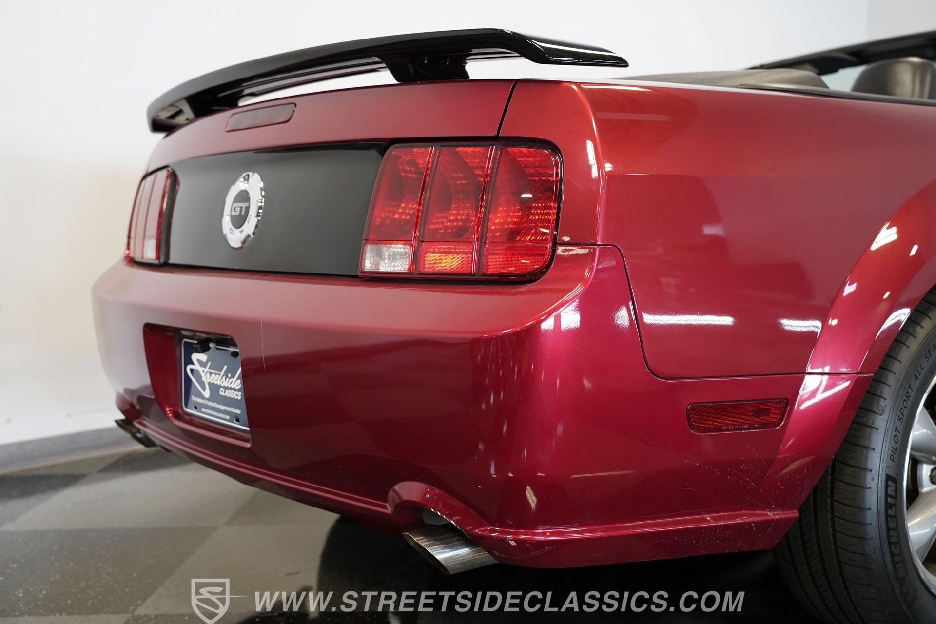 Factory Red Fire and a black convertible top keep this 2005 Ford Mustang GT Convertible looking sharp and properly outfitted. The power top has a glass rear window and fits snug across the frame. All the glass is clean and clear, and both doors, hood, and trunk shut with a tight, solid feel. Lighting and lenses are factory-original and clean. The factory 17-inch wheels are wrapped in 235/55ZR17 Michelin tires with good tread and proper stance. The appearance of this clean Mustang GT has been enhanced with a custom black stripe on the hood, custom billet-style grill with fog lights, black low-rise rear spoiler and a custom fuel door. Black leather bucket seats give the interior a clean and cohesive tone, matched by the center console, door panels, and carpet. The dash layout is stock with a full set of gauges and bright displays. An upgraded BOSS touchscreen with backup camera and Bluetooth handles the tunes, and power equipment includes windows, locks, mirrors, and a power driver seat. A tilt steering column and cruise control add to the usability, and air conditioning keeps things cool. The trunk is carpeted with the spare located under the floor. A 4.6-liter SOHC V8 feeds through a 5-speed 5R55S automatic transmission to a 3.31 ratio rear axle. The factory fuel injection system keeps it simple and correct, and the stock-style manifolds and upgraded dual Promax exhaust sound like a muscle car should. Power steering and power disc brakes are present on all four corners, and suspension comes from MacPherson struts up front and a coil spring/trailing arm system out back. HIGHLIGHTS 4.6 Liter V8 5 Speed Automatic Transmission Fuel Injection Power Brakes Four-Wheel Power Disc Brakes Promax Dual Exhaust Backup Camera Red Fire Paint Black Power Convertible Top With Glass Rear Window 17" Wheels 235/55ZR17 Tires Factory Lighting And Lenses Black Interior With Power Leather Bucket Seats Matching Center Console, Carpet, And Door Panels BOSS touchscreen infotainment system Air Conditioning Power Windows, Locks, Mirrors Tilt Steering Column Power Steering Cruise Control Dual Airbags V8 power, custom features, and a clean color combo give this 2005 Ford Mustang GT Convertible exactly what it needs to stand out from the crowd. Solid throughout and ready for open-top miles. Call today!!