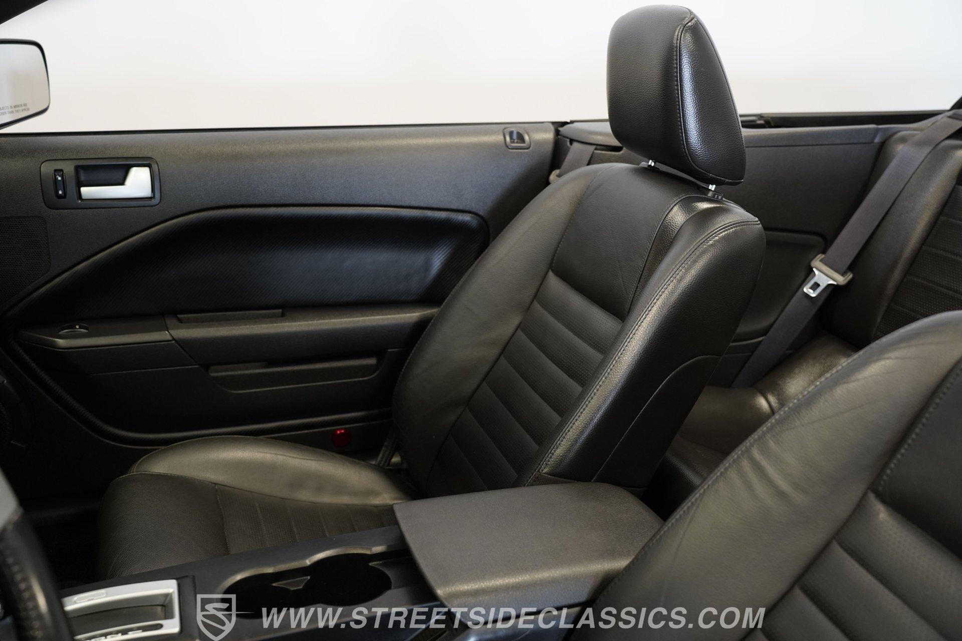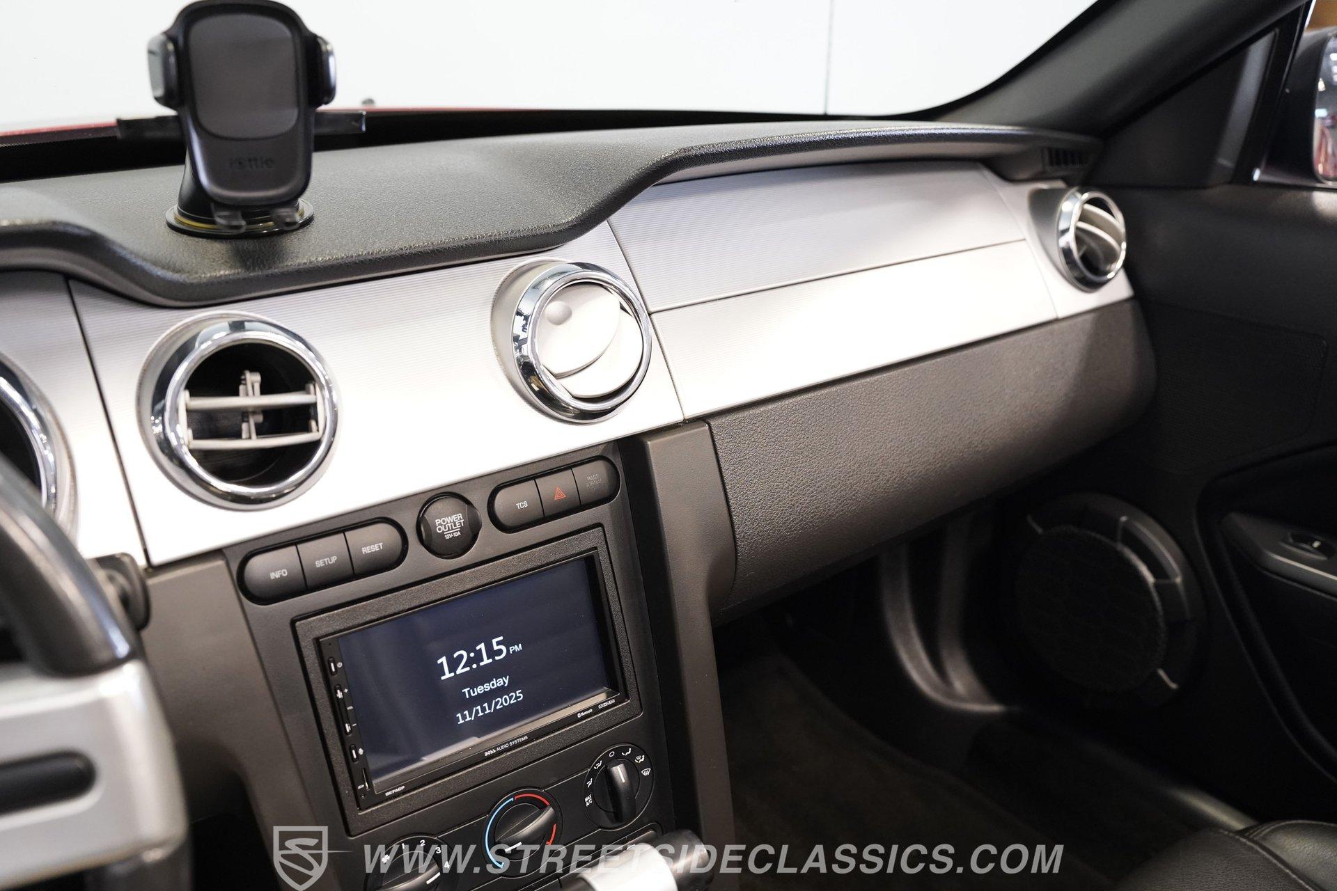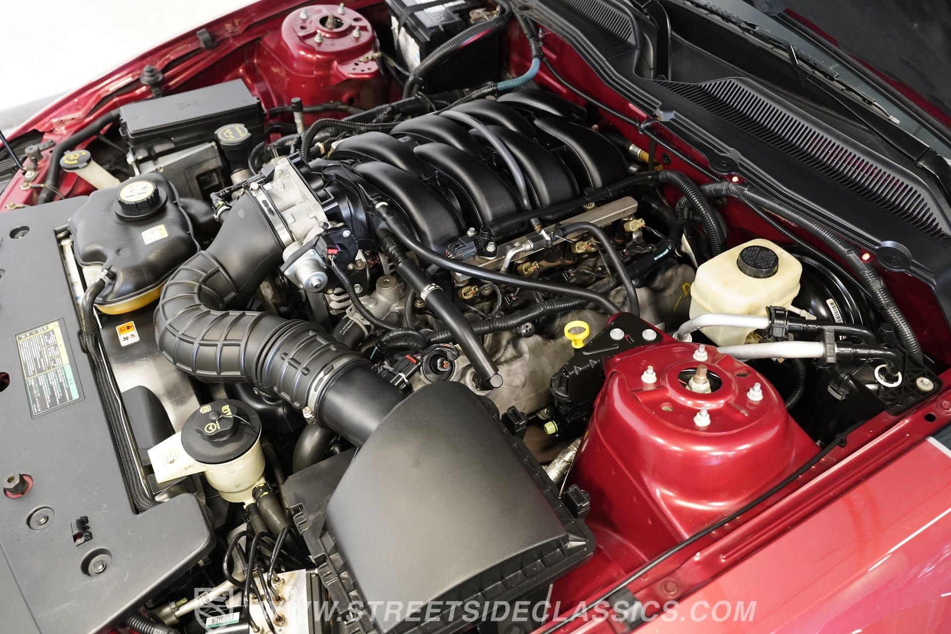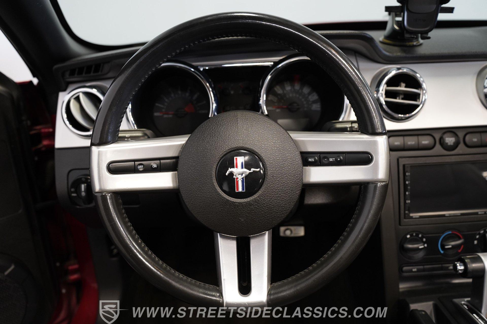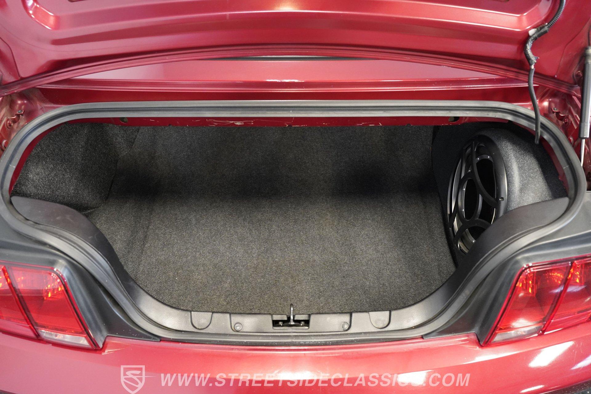 Factory Red Fire and a black convertible top keep this 2005 Ford Mustang GT Convertible looking sharp and properly outfitted. The power top has a glass rear window and fits snug across the frame. All the glass is clean and clear, and both doors, hood, and trunk shut with a tight, solid feel. Lighting and lenses are factory-original and clean. The factory 17-inch wheels are wrapped in 235/55ZR17 Michelin tires with good tread and proper stance. The appearance of this clean Mustang GT has been enhanced with a custom black stripe on the hood, custom billet-style grill with fog lights, black low-rise rear spoiler and a custom fuel door. Black leather bucket seats give the interior a clean and cohesive tone, matched by the center console, door panels, and carpet. The dash layout is stock with a full set of gauges and bright displays. An upgraded BOSS touchscreen with backup camera and Bluetooth handles the tunes, and power equipment includes windows, locks, mirrors, and a power driver seat. A tilt steering column and cruise control add to the usability, and air conditioning keeps things cool. The trunk is carpeted with the spare located under the floor. A 4.6-liter SOHC V8 feeds through a 5-speed 5R55S automatic transmission to a 3.31 ratio rear axle. The factory fuel injection system keeps it simple and correct, and the stock-style manifolds and upgraded dual Promax exhaust sound like a muscle car should. Power steering and power disc brakes are present on all four corners, and suspension comes from MacPherson struts up front and a coil spring/trailing arm system out back. HIGHLIGHTS 4.6 Liter V8 5 Speed Automatic Transmission Fuel Injection Power Brakes Four-Wheel Power Disc Brakes Promax Dual Exhaust Backup Camera Red Fire Paint Black Power Convertible Top With Glass Rear Window 17" Wheels 235/55ZR17 Tires Factory Lighting And Lenses Black Interior With Power Leather Bucket Seats Matching Center Console, Carpet, And Door Panels BOSS touchscreen infotainment system Air Conditioning Power Windows, Locks, Mirrors Tilt Steering Column Power Steering Cruise Control Dual Airbags V8 power, custom features, and a clean color combo give this 2005 Ford Mustang GT Convertible exactly what it needs to stand out from the crowd. Solid throughout and ready for open-top miles. Call today!!