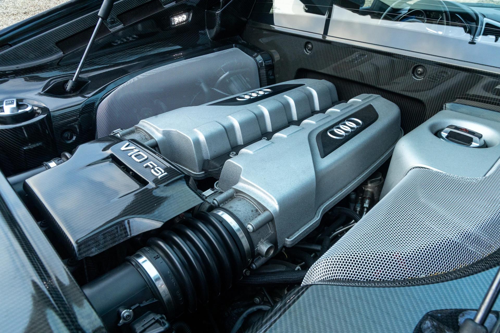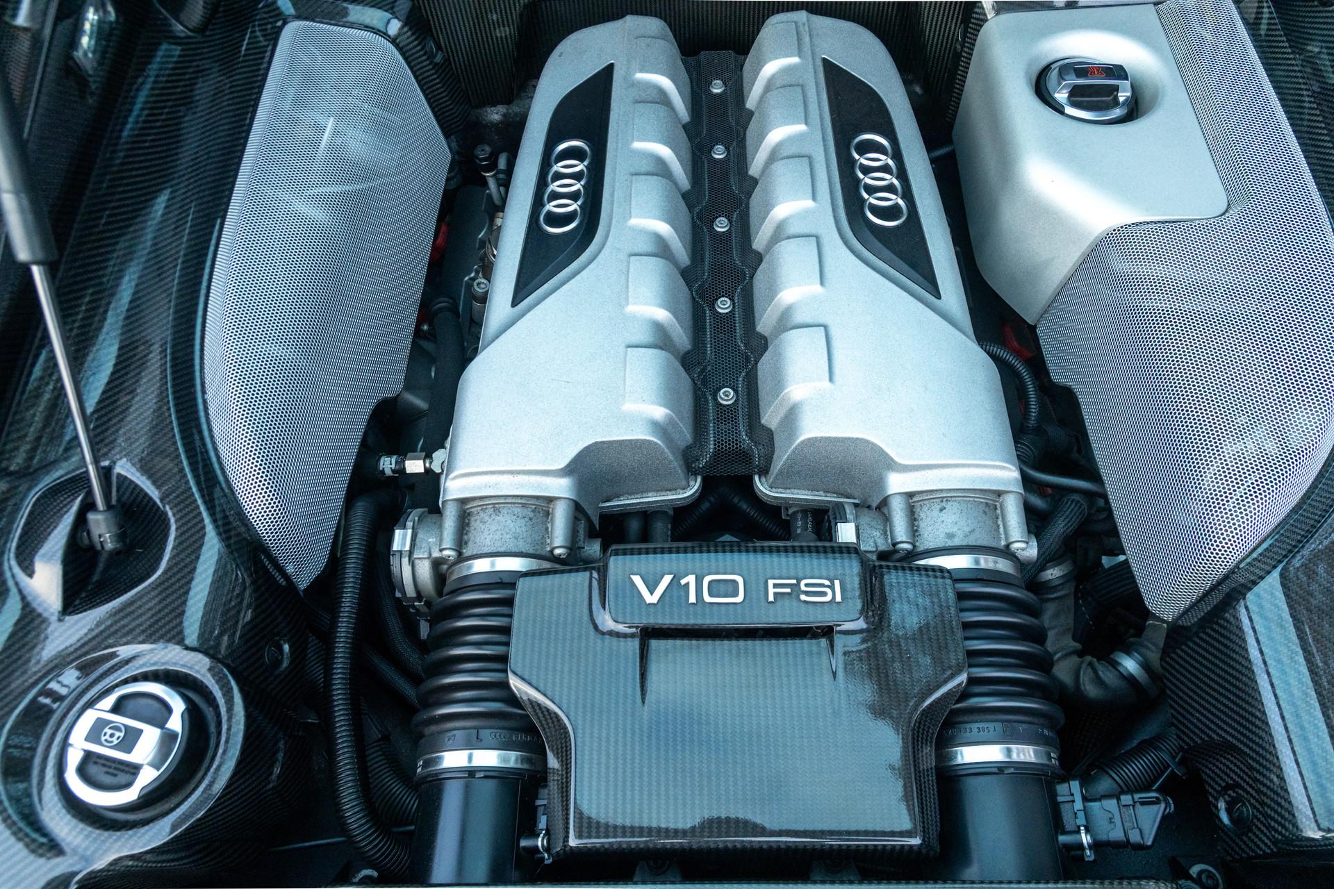 But the R8 reveals its true identity the moment the V10 comes to life. The 5.2-liter FSI engine is a technical masterpiece—high-revving, immediate, and rich with emotion. Mounted behind the driver, it delivers a unique driving experience: centrally balanced, precise, and razor-sharp. Combined with Audi's quattro all-wheel-drive system, it inspires confidence even as the pace rises. Acceleration feels effortless, almost instinctive, while the soundtrack builds from a mechanical growl into an addictive crescendo.