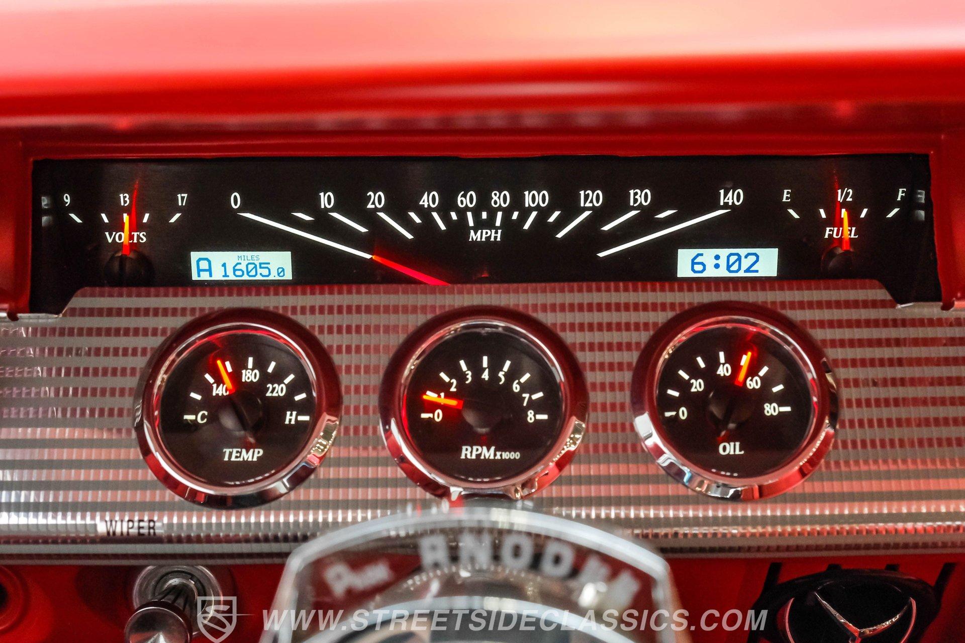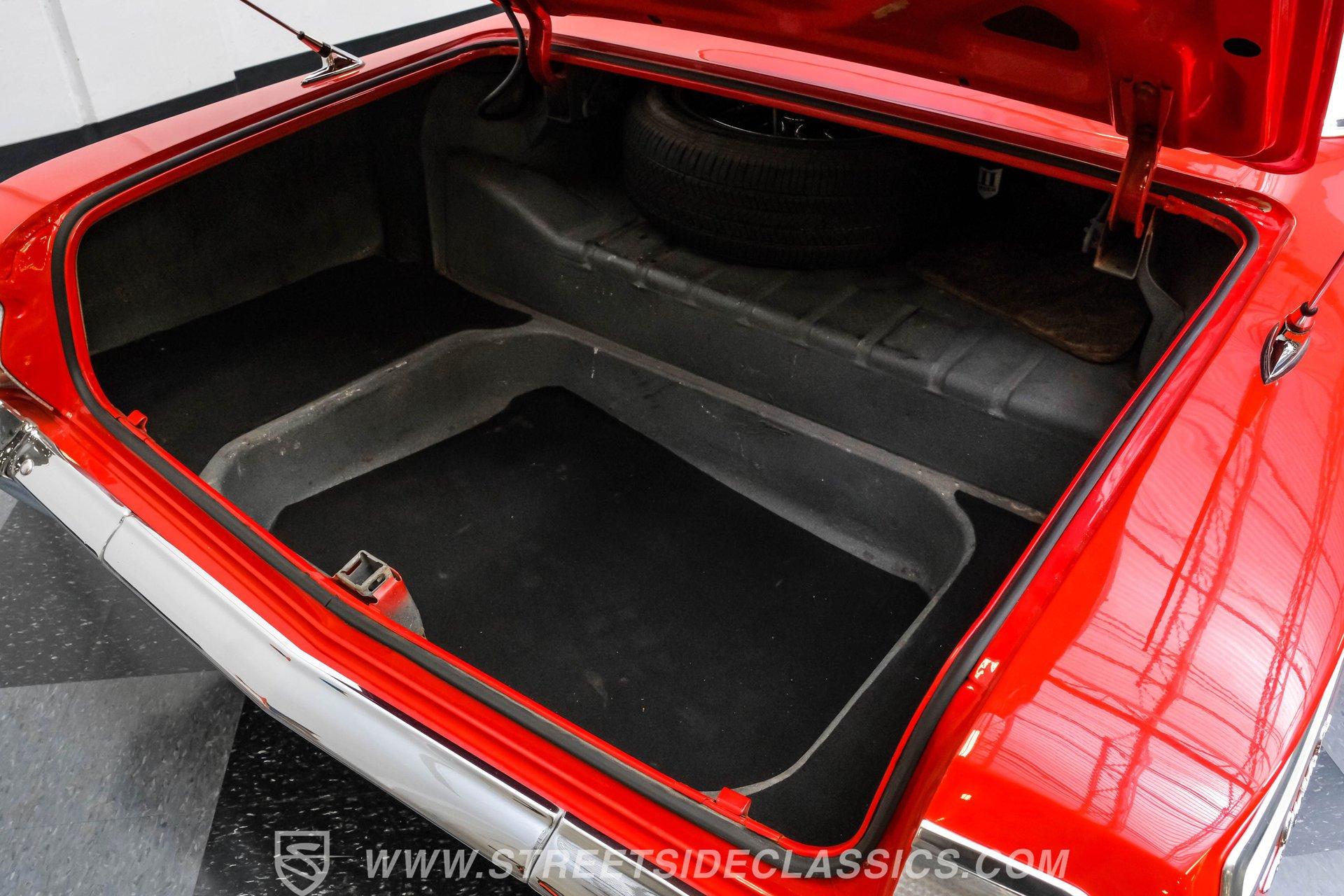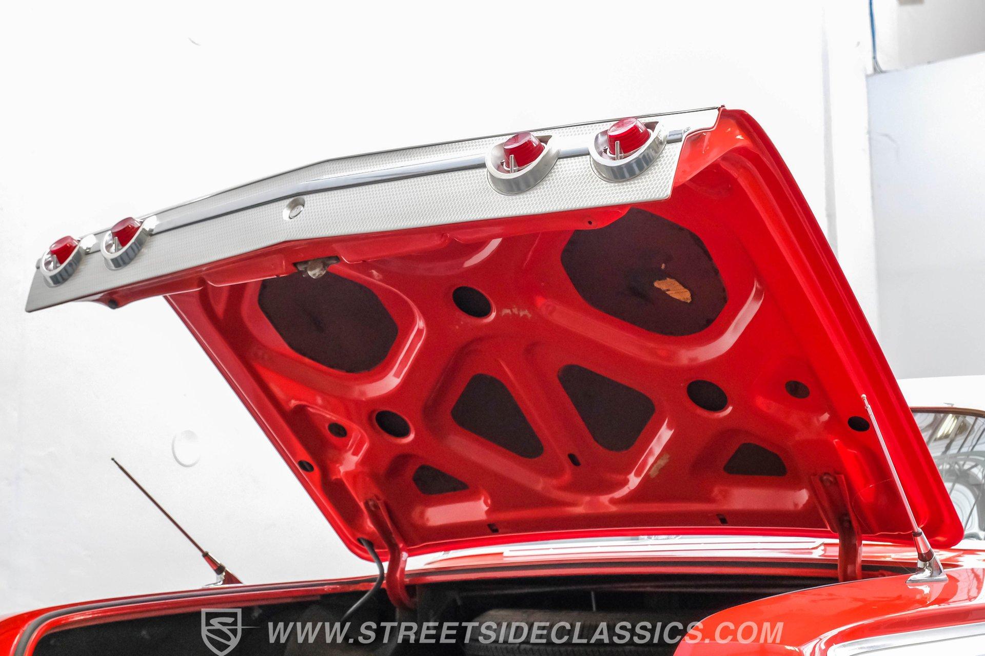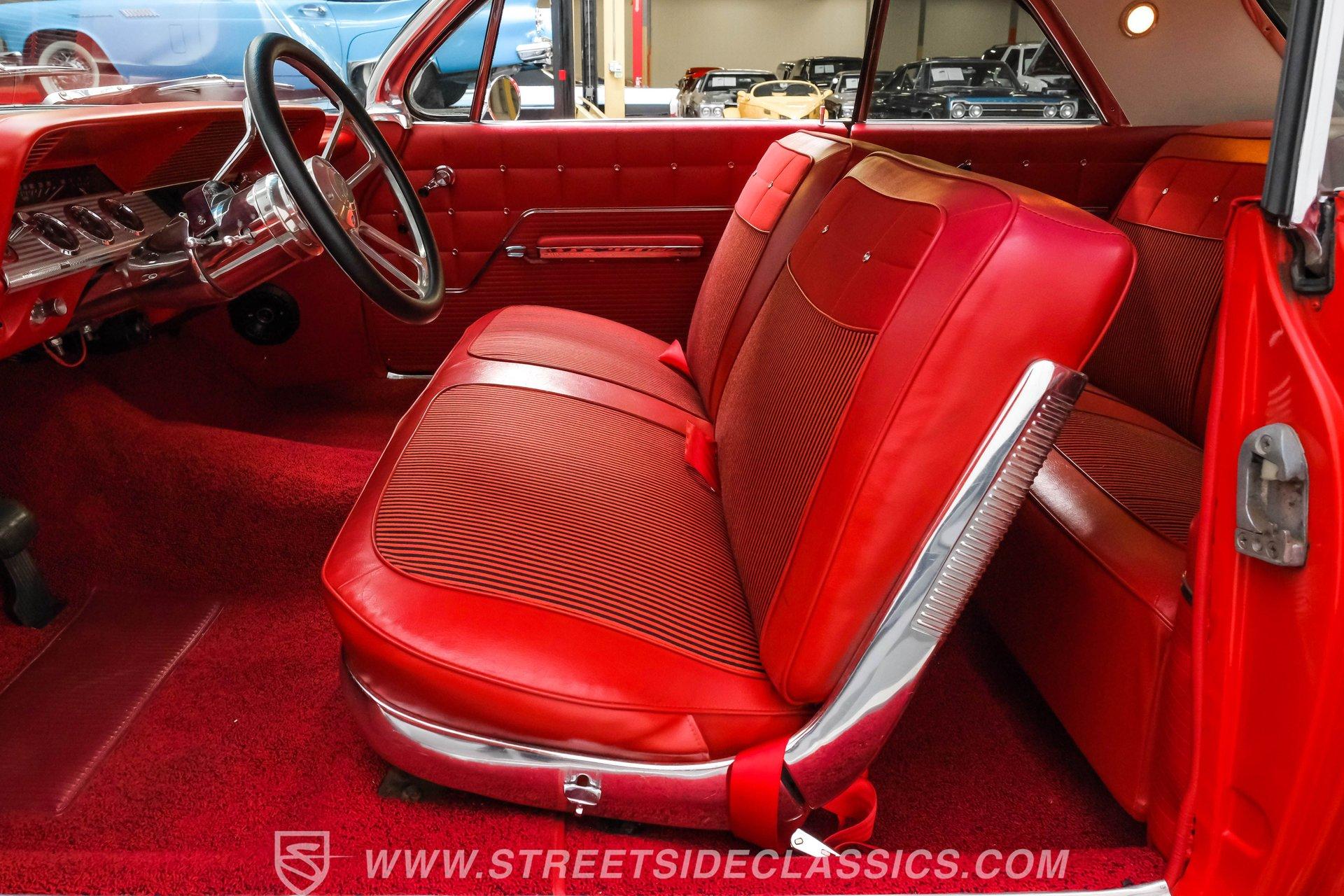Looking to make an impact behind the wheel of one of the most coveted classics ever to hit the boulevard? Then you'll definitely want to check out this 1962 Chevrolet Impala Restomod. This founding member of cruising royalty is decked out with aggressively sized, staggered 20"/22" wheels and a tastefully striking paint job that can't help but attract attention. Yet, it also boasts a downright impressive level of factory-correctness both inside and out. Yep, that Roman Red exterior mirrors the same shade it rolled off the assembly line with, and it's ornamented by chrome trim that's in top form. But this standout ride isn't just about aesthetics. It also features an assembly of quality mechanical components that combine to create an outstanding driving experience. The ultra-clean state of the interior is a good indication that it received a thorough refurbishment not long ago, and its consistently factory-correct configuration shows plenty of attention to detail. The combination of the fresh vinyl and cloth bench seating accompanied by matching door panels and carpeting creates quite an impression, and the well-fitted white headliner above adds just the right amount of contrast. The aftermarket custom billet steering wheel is perched on a Flaming River tilt column that puts it in just the right position, and the painted dash beyond it features a collection of Dakota Digital gauges to monitor motoring functions. A vintage-look AM/FM stereo with an auxiliary port has been seamlessly recessed into the center of the dash, and with the added climate control system functioning flawlessly, you and your passengers will ride in comfort throughout the year. Beneath the hood, a 350-cubic-inch crate V8 engine stands by in a very clean compartment, ready for action and outfitted with a Weiand intake manifold and Fi-Tech fuel injection to maximize its output, adjustability, and all-weather dependability. It pairs with a four-speed automatic 700R4 transmission with an overdrive gear to keep engine revs nice and low during highway driving. Up front, a sizable aluminum radiator teams with a pair of electric fans for outstanding engine temperature control. And with a well-chosen assembly of Ridetech suspension components in place at both ends, this Chevy's handling ability and ride quality are sure to put a smile on your face. HIGHLIGHTS: 350-CUBIC-INCH CRATE V8 FI-TECH FUEL INJECTION WEIAND INTAKE MANIFOLD 4-SPEED AUTOMATIC 700R4 TRANSMISSION ALUMINUM RADIATOR WITH DUAL ELECTRIC FANS SERPENTINE BELT SYSTEM POWER STEERING 4-WHEEL POWER DISC BRAKES RIDETECH COIL SPRINGS, SHOCKS, AND SWAY BAR IN FRONT RIDETECH TUBULAR ARMS, COIL SPRINGS, AND SHOCKS IN REAR FACTORY CORRECT ROMAN RED PAINT FACTORY-CORRECT RED CLOTH AND VINYL INTERIOR BENCH SEATING AIR CONDITIONING BUILD RECEIPTS INCLUDED A fine example of factory correctness, with some great aftermarket add-ons to enhance both visual impact and drivability, this 1962 Chevrolet Impala Restomod would be a perfect match for the Chevy enthusiast who appreciates the model's storied lineage and places a high premium on the behind-the-wheel experience. Call today!