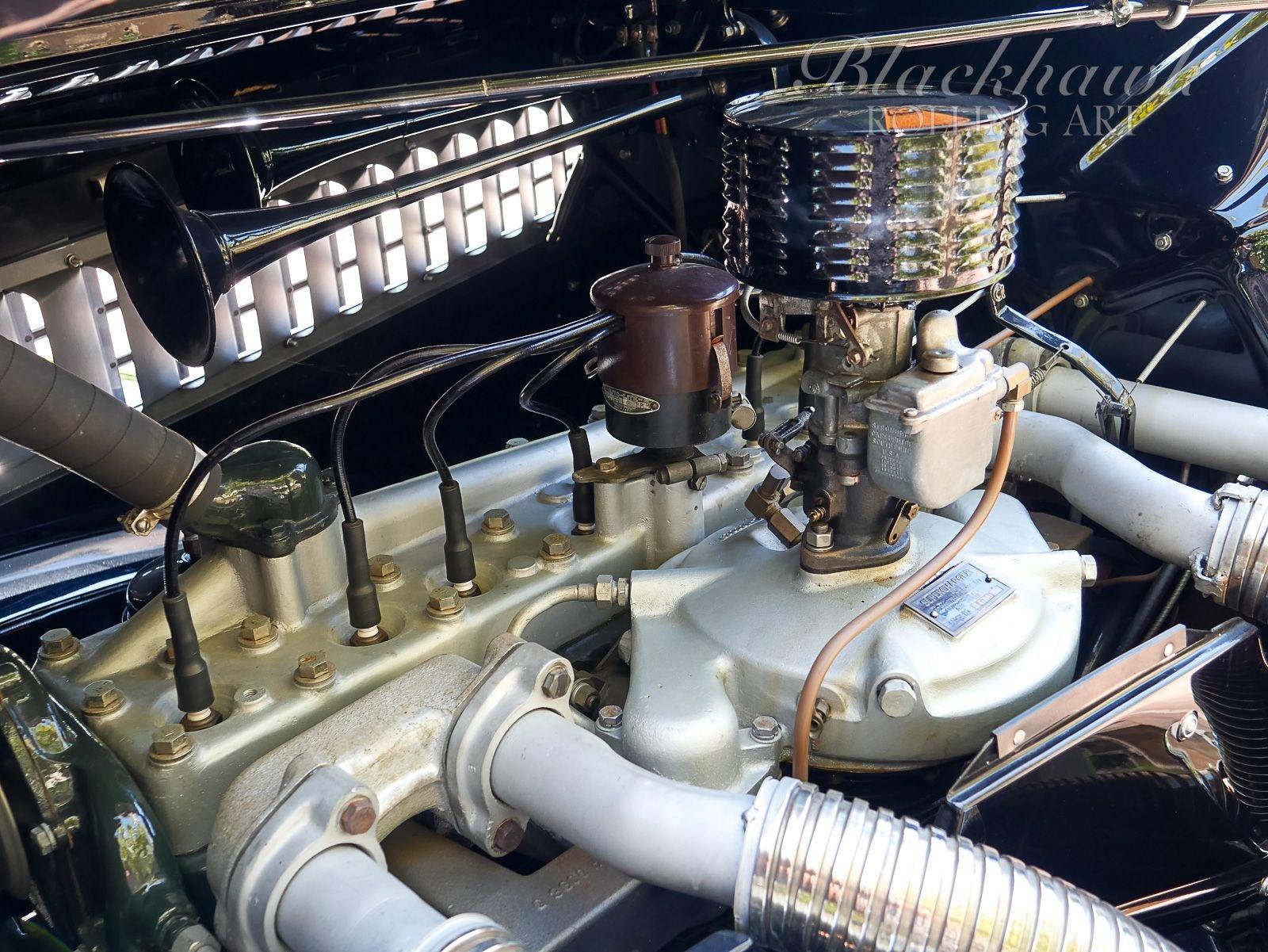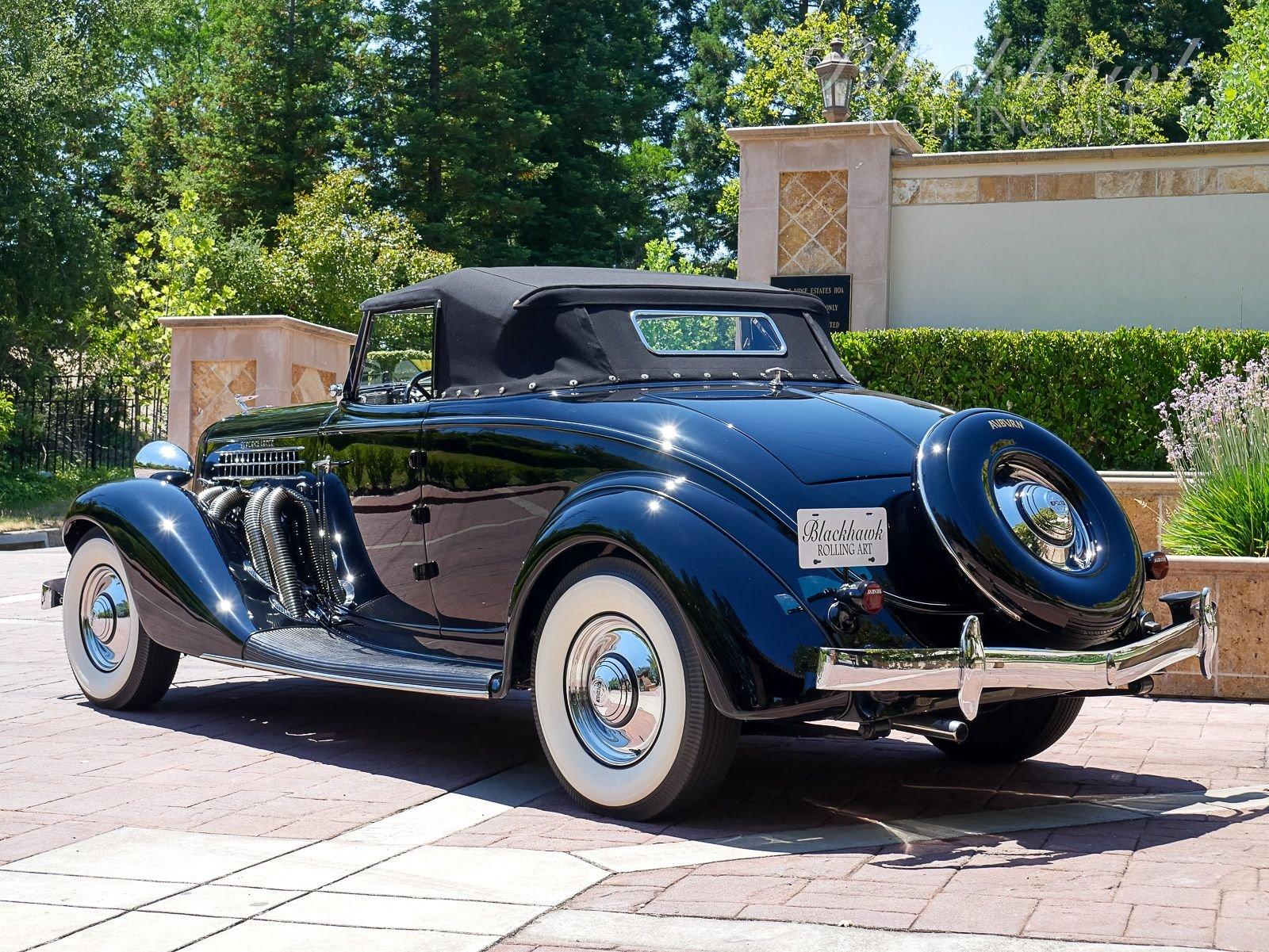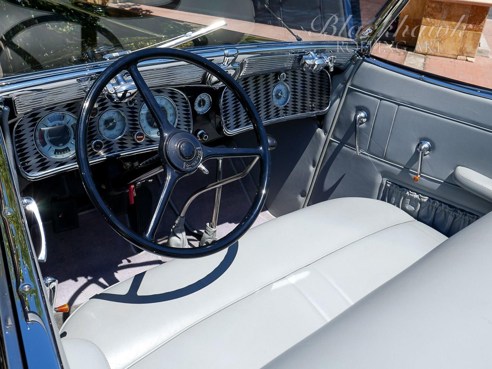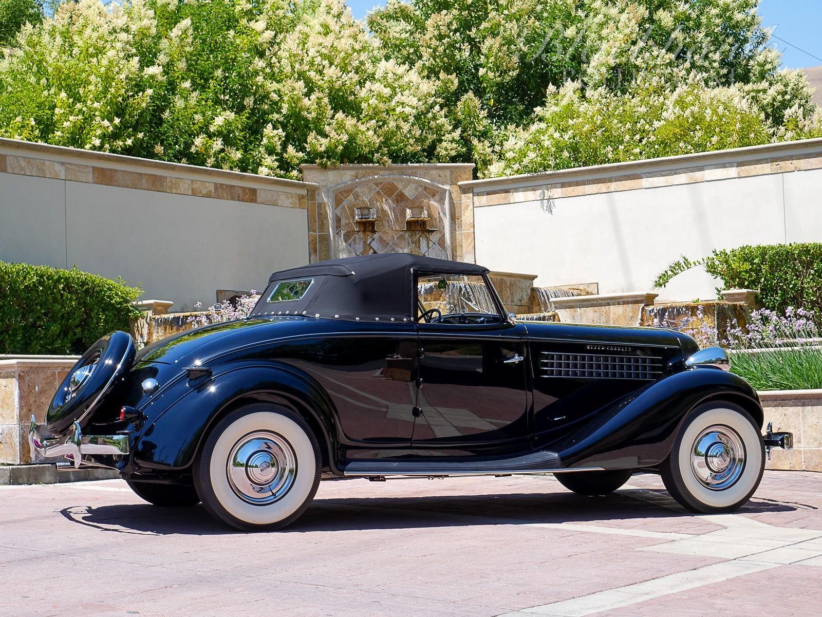 Presented in striking Auburn Onyx Black with a rich slate gray leather interior, this 1936 Auburn 852 Convertible Cabriolet is a true jewel of prewar American motoring. The car underwent a comprehensive, nut-and-bolt, frame-off restoration by renowned Auburn authority James Milligan and owner of Auburn West, a respected purveyor of Auburn new-old-stock (NOS) parts and a trusted source for service components essential to preserving these rare and venerable classics. The restoration, performed during Mr. Milligan’s personal 30-year stewardship, spared no detail. The bodywork is simply amazing and finished to a near-flawless standard, complemented by show-quality chrome, a beautifully tailored convertible top, and a meticulously restored interior. Mechanically, the supercharged engine, transmission, and rear differential were rebuilt and detailed to exacting factory specifications, ensuring the car performs as impressively as it presents. Only original restored components, NOS parts, or otherwise perfect pieces were used throughout the restoration, resulting in a concours-level example. This cabriolet has been certified as a Category One car by the Auburn Cord Duesenberg Club, the gold standard of authenticity and correctness for these marques. Though the restoration was completed in the 1990s, the car remains in show-stopping condition thanks to its life in climate-controlled museum care. It is mechanically sound, cosmetically immaculate, and needs nothing to be enjoyed, shown, or proudly added to a discerning collection.