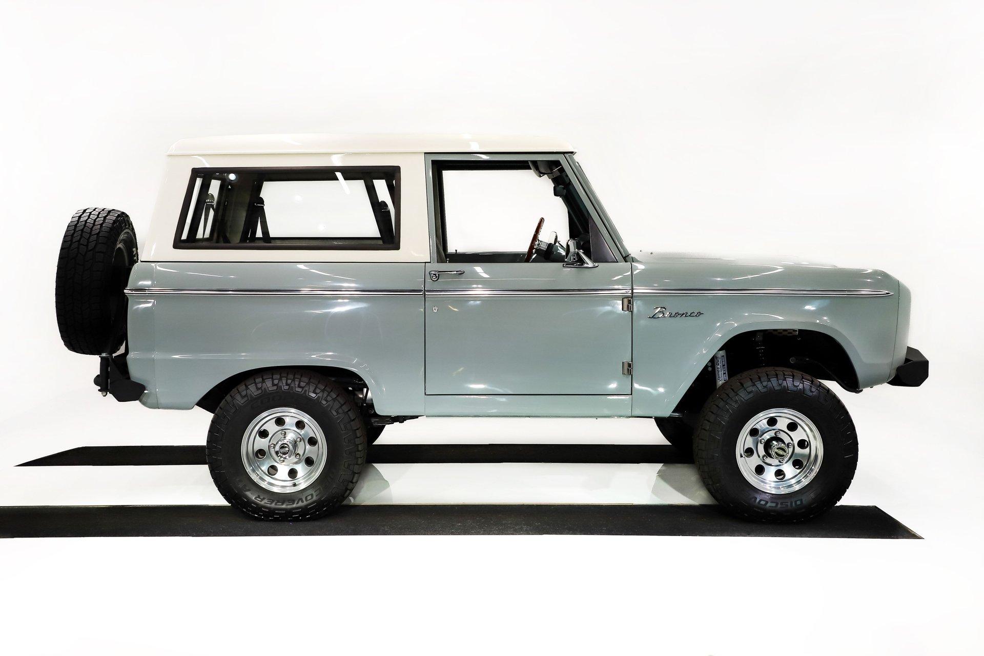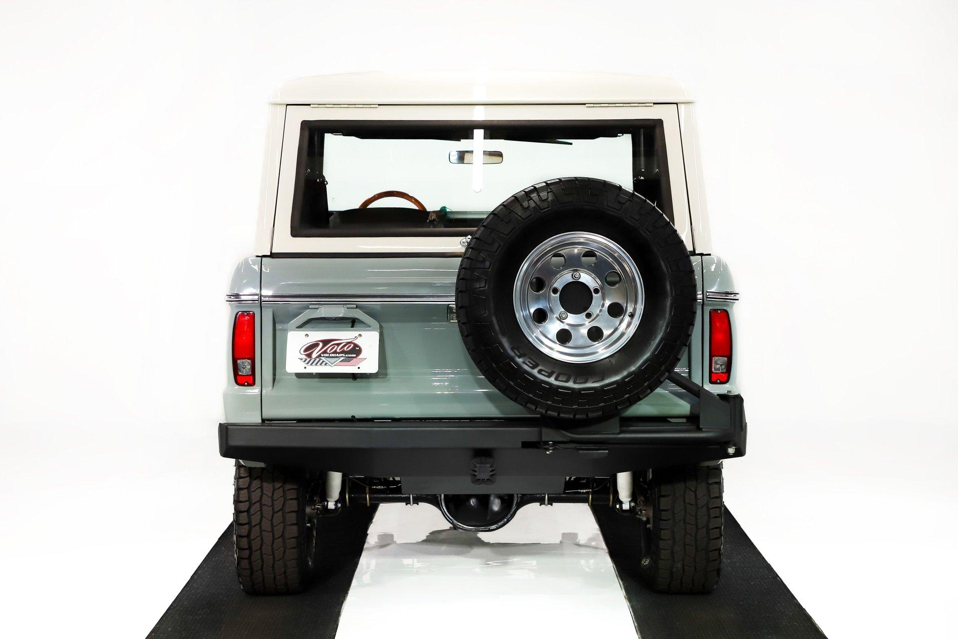 Celebrating our 65 year anniversary! This family owned and operated business was established in 1960, making us the oldest classic car dealership in America. Special thank you to all our customers for entrusting us to park the car of your dreams in your driveway while preserving automotive history for future generations to embrace and enjoy. -Grams family & Volo Museum staff INTRODUCTION: The closer you look the more impressed you will be, this is a meticulously restored Bronco! It retains its vintage charm while incorporating modern performance, comfort and reliability. The very fussy owner has put 4,200 miles on it including a long distance trip. I swear it looks like it has 40 miles on it! EXTERIOR: The body is pristine, straight and has uncut fenders. It has been given flush mount fuel doors for a modern touch. The paint is a glass finish Cactus Gray (used on new Broncos). The hardtop was completely restored and painted a gloss white, nice contrast against the gray. The doors are sitting on billet hinges and lift right off if you are feeling extra adventurous. The doors have also been modified with one piece windows for a cleaner look, the vent windows were eliminated. All new glass and weatherstrips. I like the custom James Duff heavy duty bumpers painted black, it has a built in hitch receiver in back. It also has an accessory swing away spare tire mount with a 5th matching tire and wheel. LED headlights and taillights are a much appreciated upgrade. It does its rolling and climbing on Copper Discoverer 31x10.5 tires wrapped around 15 inch aluminum wheels. INTERIOR: It was completely stripped down to a bare shell inside. The pristine metal was sprayed with a durable bedliner. It has a complete interior upholstery kit with matching side panels. The seats have new cushions and upholstery. It comes with the rear seat and as a bonus: a single person seat can be used instead to give you options for additional cargo space. The headliner was replaced. There is a fully integrated roll bar system with 3-point retractable seat belts front and back. The wiring was redone and it has a new vintage style instrument cluster with tachometer. It also has an Ididit till column with a beautiful custom steering wheel. The center console has locking storage and cup holders. The Winters shifter assures you put it in the gear you want, when you want. Electric wipers with a custom cover is a nice upgrade aesthetically. It also has an Out of Sight Mark 3 Bluetooth stereo and 4 Polk Audio marine speakers. Billet pedals. ENGINE COMPARTMENT: Very meticulous with many custom upgrades! At the center of it all is a crate 302-292hp motor from Phoenix Engines. It has a Comp cam, aluminum intake, Edelbrock 600 carb, Pertronix electronic ignition and shorty headers with black Cerakot. Wild Horses staggered 4 core radiator keeps it running cool. Vintage Air heat and a/c system keeps the passengers comfy. The driver will appreciate the power steering and Hydroboost power brakes with a wilwood master cylinder. Custom made stainless fillers, 2 tool compartments, vented inner fender shields and a custom air intake. The battery is secured, it has upgraded gas hinges, squirters are hooked up etc. It is show quality in here, painted slick and even the nuts and bolts look new! TRUNK COMPARTMENT: The spare tire easily swings out of the way and the tailgates open and close with ease. The tailgate mechanisms were replaced and upgraded, it has a stainless handle, cables supporting the bottom and gas struts lifting the upper. The back side of the tailgate is painted slick, inside the cargo area it is sprayed with a durable bedliner. UNDERSIDE: The body was off the frame for a thorough restoration. The owner was fussy, it still looks show ready under here! Upgraded with a Duff 2.5 inch suspension lift with LUBR blocks, axle alignment plate, long travel shock tower, progressive rate front coil springs, 11 leaf rear springs, rear shackle mounts, heavy duty u-bolt plates, swaybars, progressive rate coil springs, 70/30 auto adjusting shocks. The steering was rebuilt and upgraded with a stabilizer bar, Tom's steering box with reinforcement bracket. The brake system was completely replaced and upgraded with Wild Horses 4 wheel disc brake system including stainless lines and E-stop electric parking brake. Nice sounding dual exhaust with Xcelerator mufflers. It has a new fuel system with dual tanks. Looking up at the motor it is spotless and has a high torque starter. The trans is a Culhane Racing C4 automatic The driveline consists of a rebuilt Dana 20 transfer case with Twin Sticks. In front is a rebuilt Dana 44 center section with 4340 chromoly axles and Warn hubs. In back is a Yukon Grizzly 9 inch locker rear end with 3.50 gears and 31 spline axles. Spicer 760 joints and extreme duty driveshafts. Again, it is spotless under here! SERVICE: We take pride in our cars and reputation. Therefore, we built a 2 million dollar, 10,000 square ft service center, and hired a team of technicians to service the essentials on every car we sell. CONCLUSION: I keep using the terms fussy and meticulous, that's because this Bronco was extremely well built and cared for. It speaks for itself! For nearly 30 years, I, Jay Grams, have personally written the highlights for almost every car in our collection. What I provide is my professional opinion based on my experience with these vehicles. However, opinions can vary, and I strongly recommend a personal inspection to form your own view. Our sales team is always available to answer any questions you may have. One great option is to request a personalized walk-around video, where we can showcase the car and share our team’s insights. **Our cars are displayed within a museum setting. If you are interested in a specific vehicle, please schedule an appointment with a salesperson to view it. Without an appointment, there is an admission fee to enter the showroom. If you decide to purchase a car, your admission