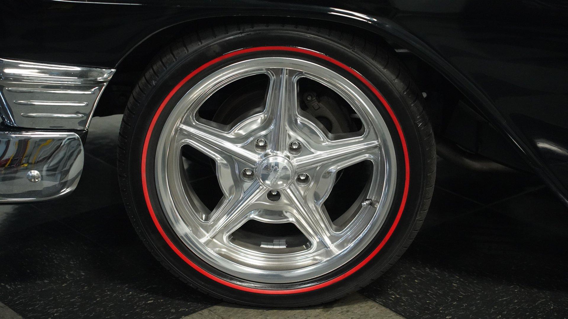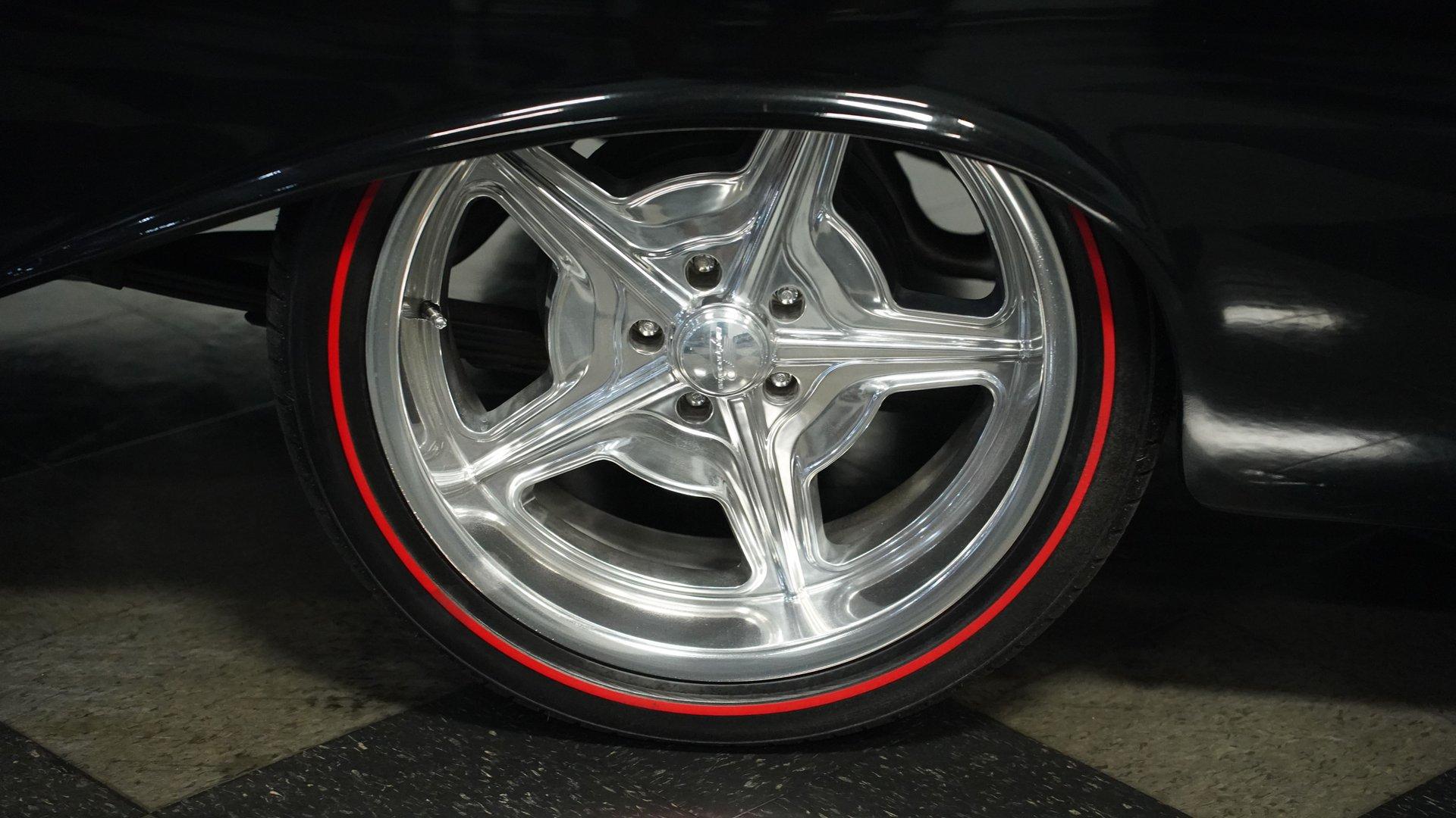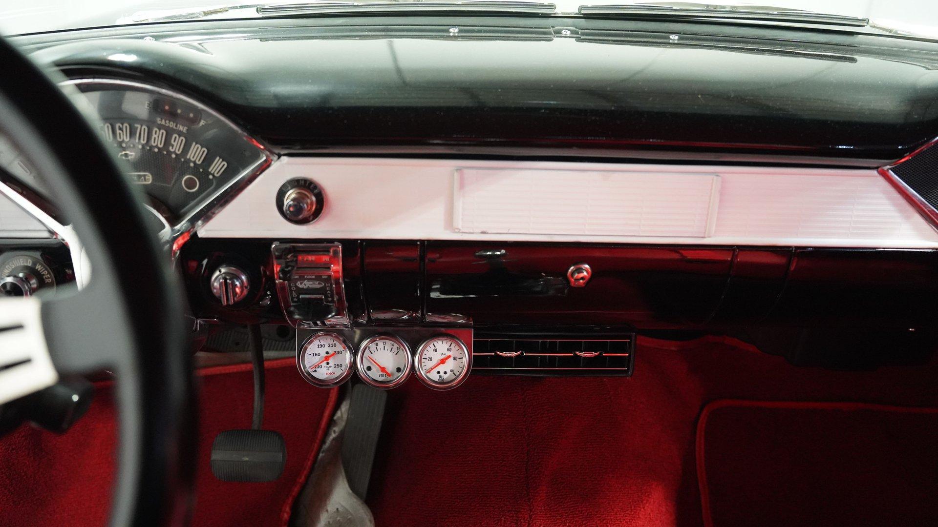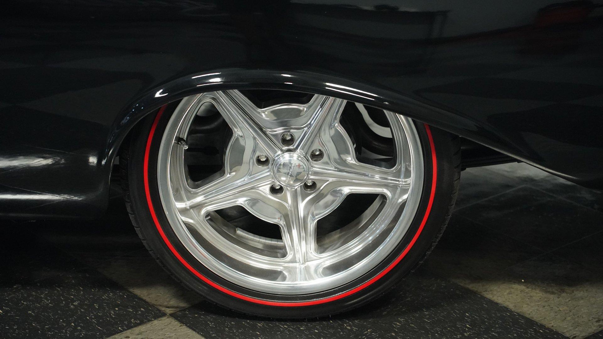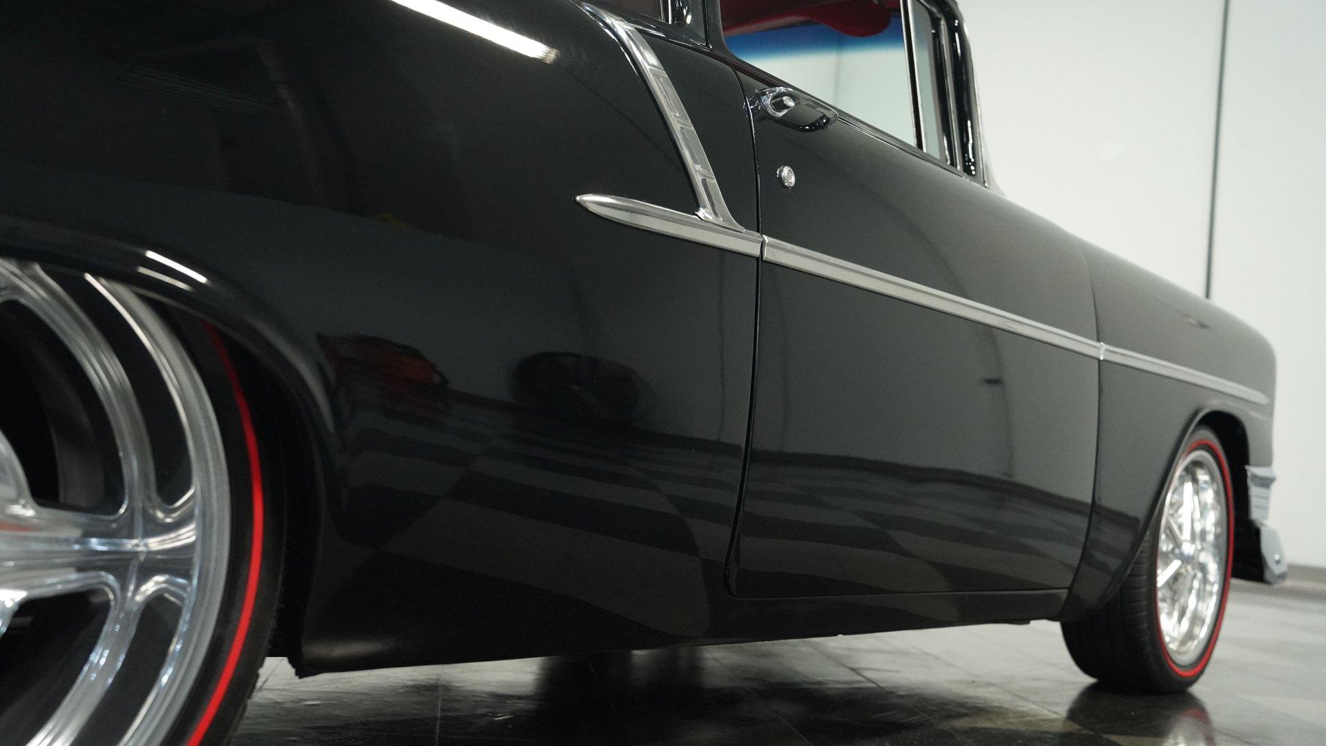 The Tri-Five Chevy is one of the most popular collector cars of all time. One look at this exceptional 1956 Chevrolet 150 Two-Door Sedan and it is easy to understand the attraction. The base model 150 is the cleanest design of all the 1956 Chevrolets, devoid of any excess (and heavy) exterior trim. Its beauty is in its simplicity, especially when finished in a mirror-gloss Black like this beauty. The chrome bumpers and polished brightwork are in excellent condition and really pop against the deep Black paint. A light tint has been added to the side glass as well. Its clean look is enhanced with a set of polished Billet Specialties wheels wrapped with low-profile red stripe tires staggered 18-inches front and 20-inches rear to create just the right stance. Inside, the red interior contrasts nicely with the Black paint and ties in with the red stripe tires. The interior features front seat belts, a custom four-spoke steering wheel, Vintage Air conditioning, under-dash Bosch temperature, volt and oil pressure gauges and a floor shifter. 350 V8 engine 700R4 4-speed automatic transmission Power steering Power front disc brakes Edelbrock intake and carburetor Vintage Air conditioning Billet Specialties wheels Red stripe tires Under the hood is a fresh, smooth-running small-block 350 matched with a 700R4 4-speed automatic transmission. The detailed engine compartment features an Edelbrock aluminum intake and Edelbrock carburetor, chrome alternator, black matte finish Chevrolet logo open element air cleaner and valve covers, power steering, aluminum radiator and power front disc brakes. The dual exhaust system with twin Xlerator Turbo mufflers allow the engine to breathe and sound great. This handsome 1956 Chevrolet 150 does everything well. Perfect for car events, joy rides on Sundays or comfortable long-distance touring in style. Call today!