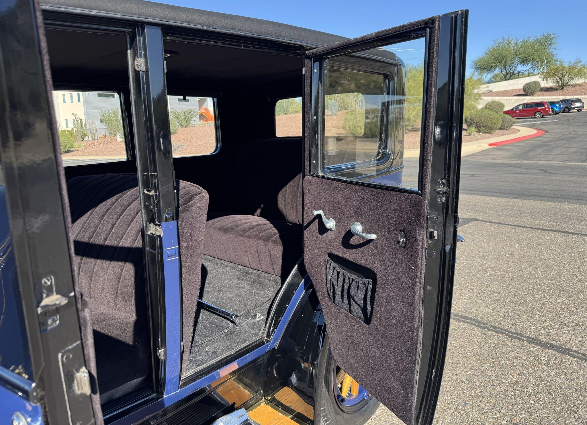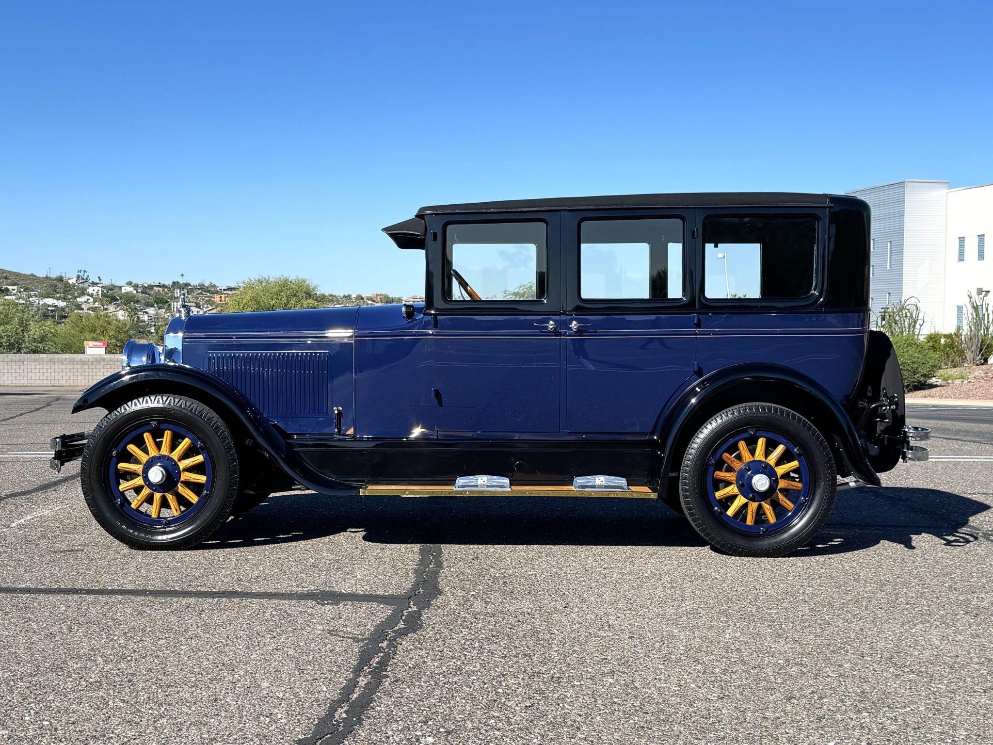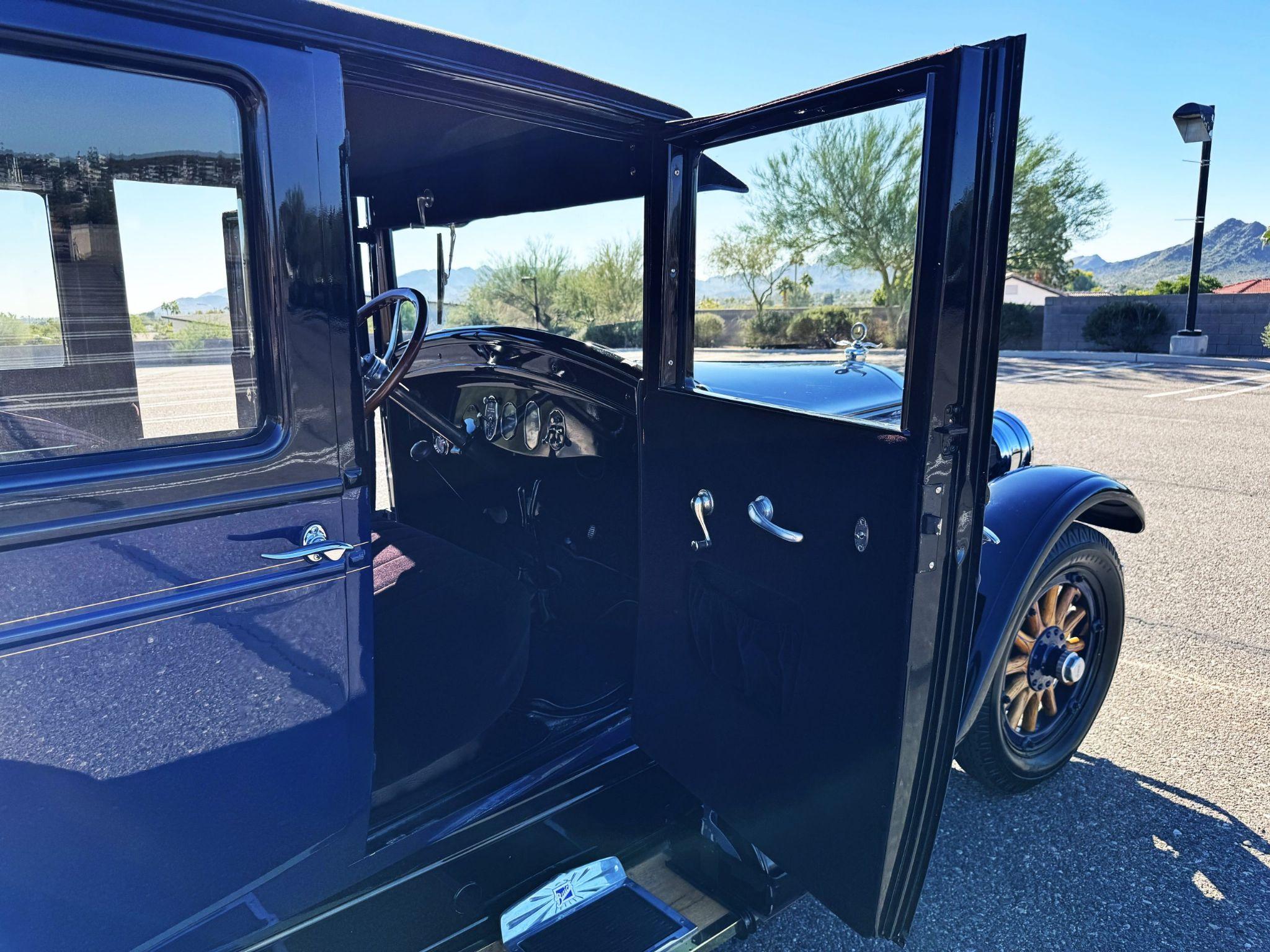 The 1927 Buick Master Six Model 47 represents one of the marques most successful and respected prewar sedans, offering ample power, a luxurious interior, and Fisher body craftsmanship. Riding on a 120-inch wheelbase and powered by a 274-cubic-inch inline six producing 74 horsepower, this example combines originality with excellent presentation. With only 72,640 miles from new, concours recognition, and comprehensive documentation, Buick VIN 29699 is equally suited for regional shows, historic tours, or weekend outings. Buick produced 49,105 examples of the Model 47 for the 1927 model year, with coachwork by Fisher in Detroit and final assembly in Flint, Michigan. This example remained in the original Coyne family from its delivery new in New Jersey until 2015, passing from Mr. and Mrs. Coyne to their son Francis, then to his son James, a noted Utah restorer who operated A&J Body & Paint until his passing in 2016. The Buick entered its current ownership in 2015, chosen for its close resemblance to the 1928 Buick the owners family enjoyed in New Zealand during the early 1950s. Used sparingly for dinners and local events over the past decade, the Buick has been carefully maintained, with thorough service records and original documentation accompanying the sale. The exterior presents in excellent condition, finished in Washington Blue with black fenders and roof and highlighted by yellow pinstriping. The Buick was repainted in the mid-1990s and retains an attractive luster. Its 21-inch oak artillery wheels, painted in matching Washington Blue highlights, are fitted with newer Firestone tires and a rear-mounted spare. Original Buick-branded step plates, cowl lamps, and the factory luggage rack contribute to its authentic character. Overall, the bodywork and trim convey the presence of a well-preserved, highly usable prewar sedan. Inside, the Buicks cabin is notable for its size and comfort, featuring black mohair upholstery and headlining that were professionally restored in the 1990s and remain in excellent order today. The front and rear bench seats show minimal wear, while the spacious rear compartment is equipped with door pockets, robe bar, footrest, and window shades for passenger comfort. Nickel-plated door handles and window cranks, a wood four-spoke steering wheel, and the original steel dash with Buicks distinctive control panel all remain in excellent overall condition. This interior captures both the durability and the understated elegance for which Buick was known in the 1920s. Power comes from the original 274-cubic-inch inline six paired to a three-speed manual transmission, with semi-elliptical leaf springs at all four corners and mechanical drum brakes. Modifications for usability include a Chevrolet distributor conversion, an upgraded electric fuel system installed in 2016, and an 8-volt battery with trickle charger. The drivetrain runs well at moderate speeds, and maintenance has been kept current by marque specialists. The Buick was inspected and serviced in October 2025. This Buick has been shown at a number of concours events over its 98 year history, and won several category awards. Importantly, this Buick has been recognized with 390 of 400 points by the Buick Club of America, earning Senior status and confirming its authenticity and quality. Equal parts showpiece and touring companion, this example is a true testament to Buick craftsmanship at the height of the Jazz Age. For more information and details, please call or text Kendi Brown at 1.623.404.9042 or email us at sales@classicpromenade.com . This Buick is available for inspection at our showroom in Phoenix. We are pleased to offer FaceTime or WhatsApp live video inspections, and we help coordinate shipping worldwide. We also have financing partners if you are interested in financing.