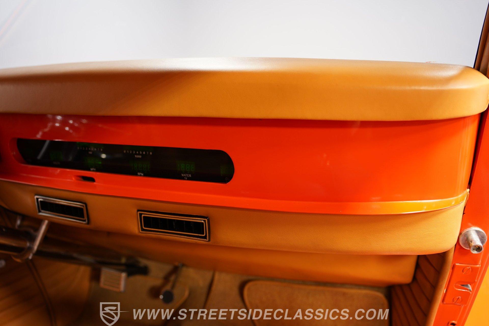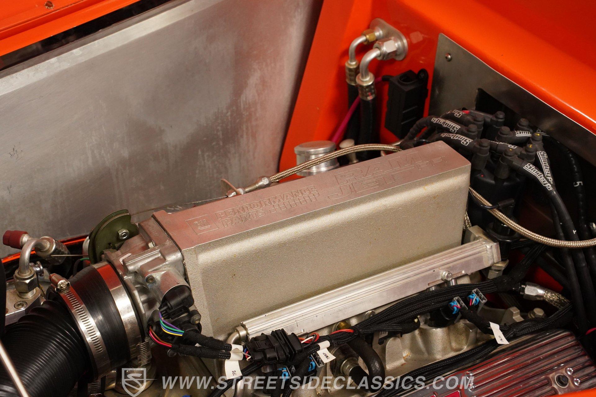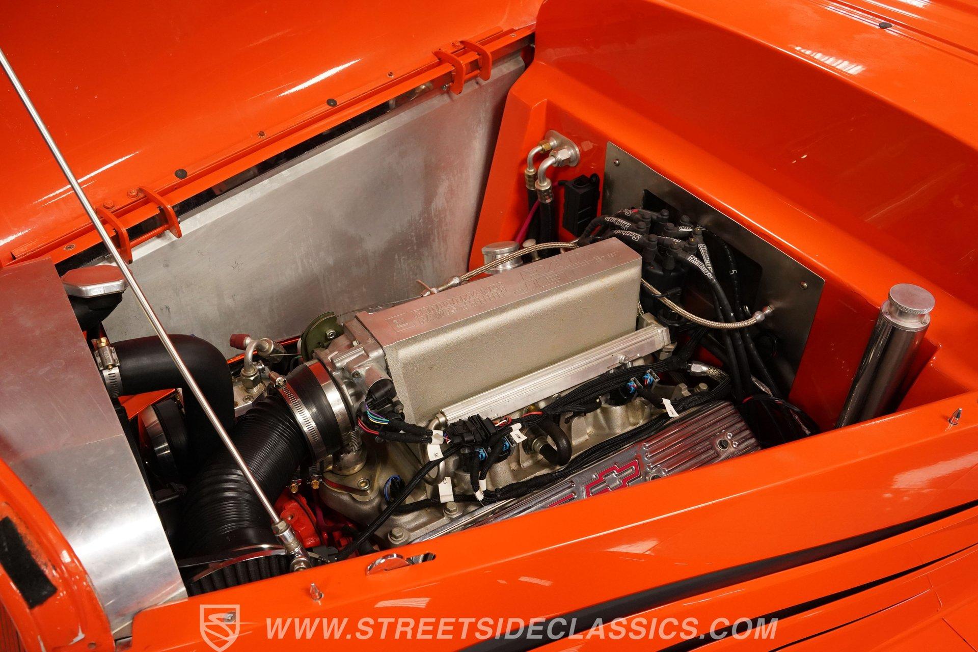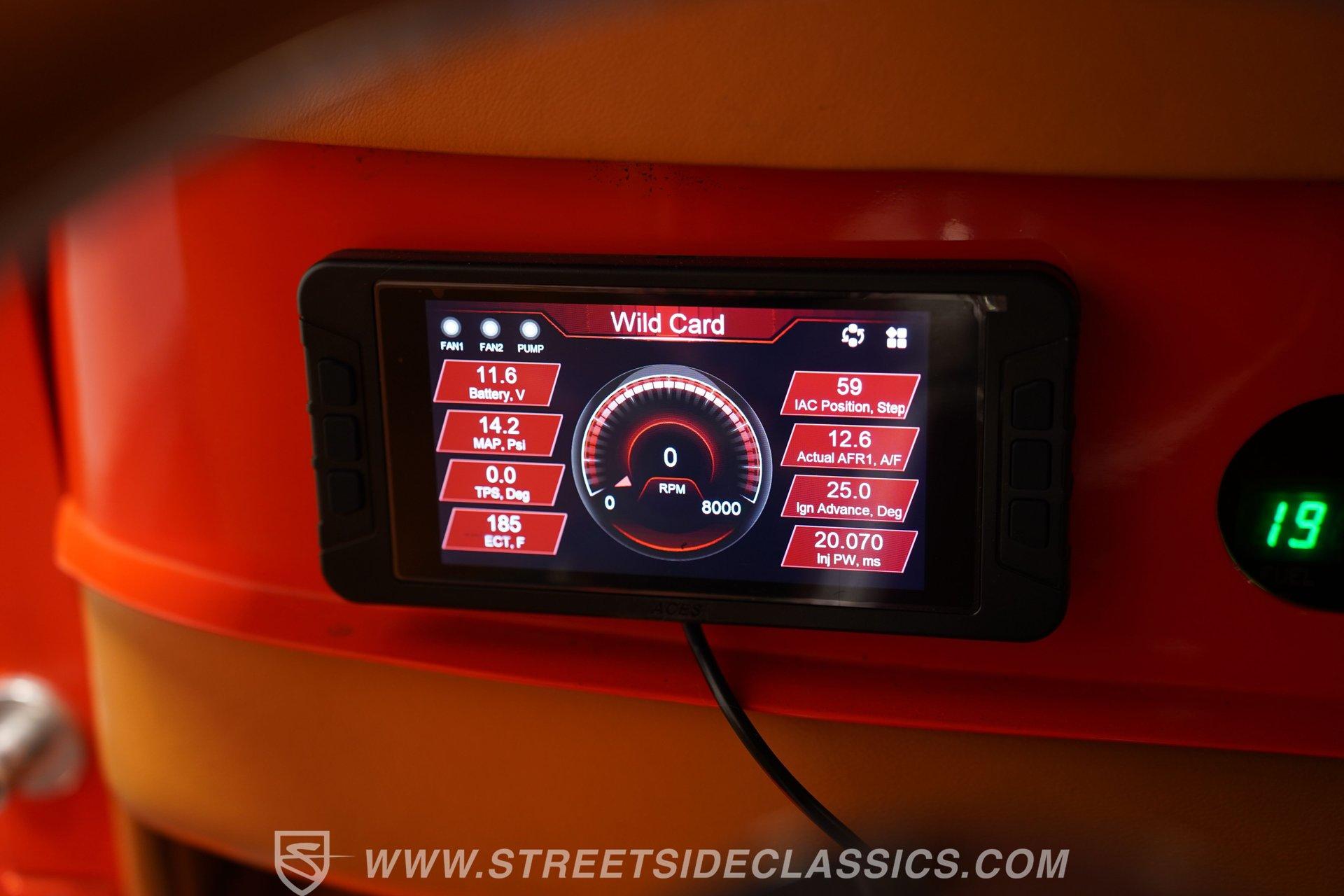 Almost all car enthusiasts have fantasized about owning a beautiful old-school hot rod at some point in their lives. The reason most don't follow through is that the time commitment and the constant trial-and-error are often far too daunting. That's why when a car like this 1933 Ford 3-Window Coupe Street Rod comes along, it's worth taking some time to see how much effort and time have been invested in it for you, no work required. With its full Orange Flame repaint, upgraded tri-bar headlights, unique side flame waves, and classic suicide doors, this vibrant coupe is sure to turn heads wherever it goes. Inside, we find a beautifully appointed and fully custom tan leather interior. A Budnik custom billet steering wheel sits atop a matching tilt column. Just beyond that wheel sits a digital readout for the Wild Card electronic fuel injection system, while in the center-dash, we find a trick Dakota Digital gauge cluster. A custom center console, home to the floor-mounted Lokar shifter, completes the look. What you don't see right away are the window buttons, nor the hidden AM/FM/CD sound system, nor the fully finished trunk and included briefcase. Finally, the addition of air conditioning puts a bow on this custom cozy cabin, making it a dream to drive near or far. Prop open that steel hood, and you're treated to a clean and full engine bay featuring a 350 cubic-inch Ram Jet V-8 engine that utilizes the aforementioned EFI on the intake side, while a set of shorty headers eliminates spent gases via a dual exhaust capped off with Xcelerator mufflers. That power is routed through a 700R4 three-speed automatic transmission before being sent out to the nine-inch rear end which transfers those ponies to the pavement via a set of staggered chrome five-spoke rims measuring 16 inches up front and 17 inches in the rear. HIGHLIGHTS: Full Orange Repaint Custom Side Flame Waves Upgraded Tri-Bar Headlights Ram Jet 350 CID V8 Wild Card EFI Shorty Headers Dual Exhaust Xcelerator Mufflers 700R4 Three Speed Auto Lowered suspension Tubular Front A-Arms Multi-Link Jaguar Style IRS Coilovers Four Wheel Power Discs Inboard Rear Brakes Four Piston Calipers Custom Leather Interior Bucket Seats Power Windows Custom Wheel Tilt Column AC AM/FM/CD This 1933 Ford 3-Window Coupe Street Rod rides on a custom lowered suspension consisting of a tubular A-arm front, Jaguar-style multi-link independent rear, and coilovers all around. Four-piston power disc brakes at both the front and inboard rear units make it easy to rein in speed whenever necessary, and instill a sense of confidence that this car is ready to go, no matter what the road ahead looks like. So, if you've always wanted a true old-school hot rod, but don't have the time or patience to put one together piece by piece, then this beautifully put-together street rod is exactly what you've been waiting for. Don't wait, call today!