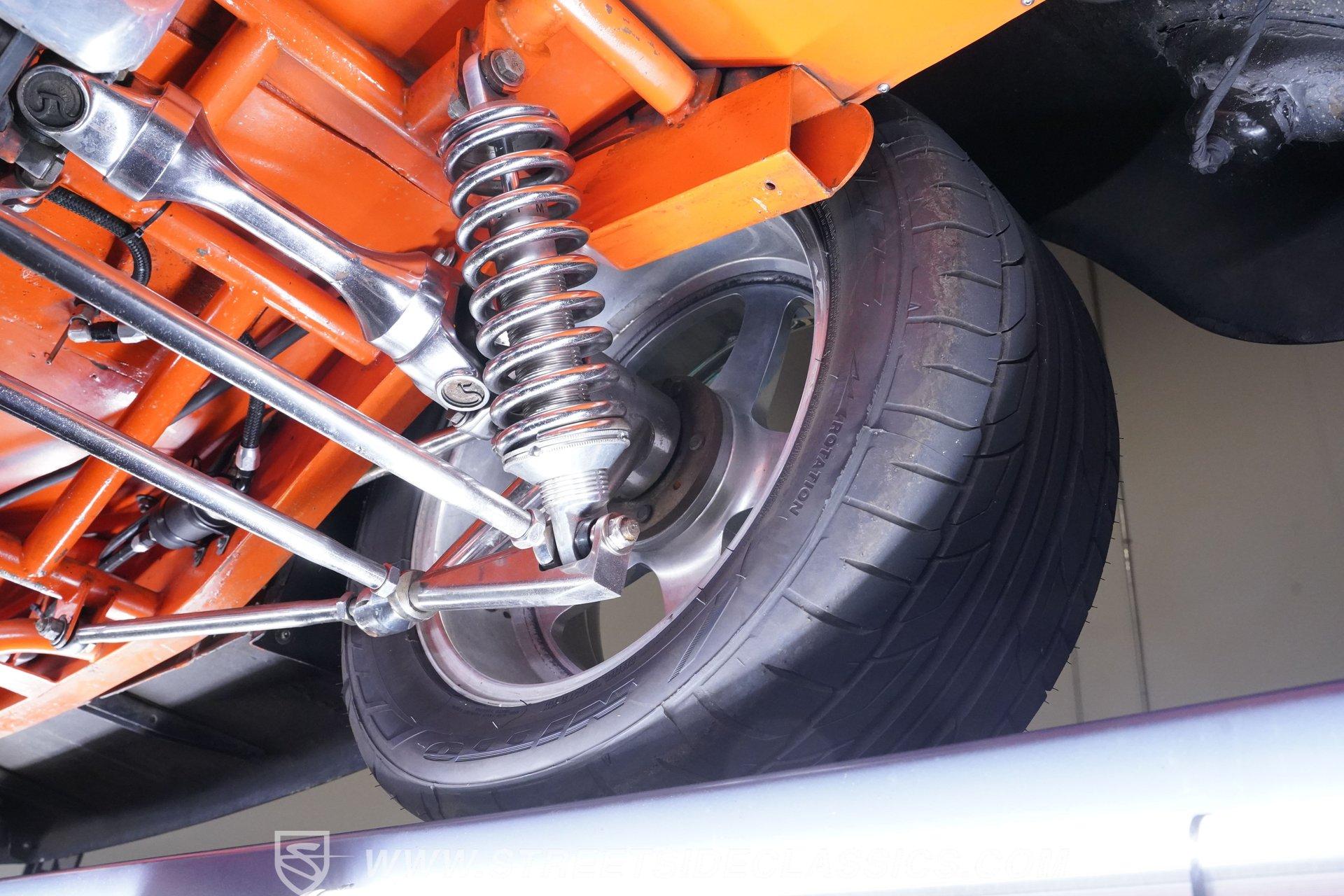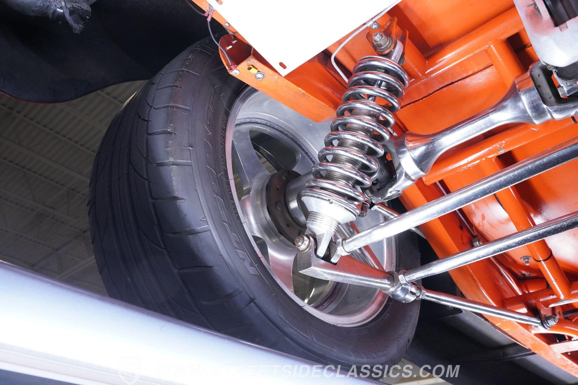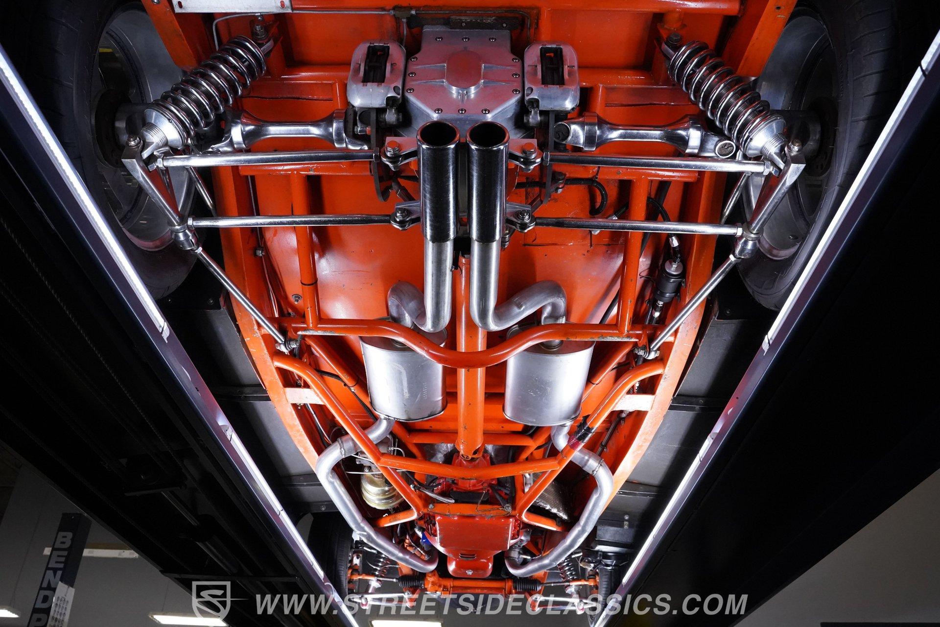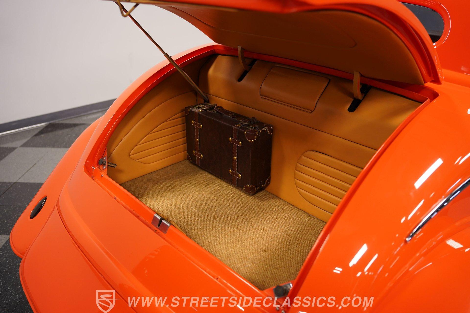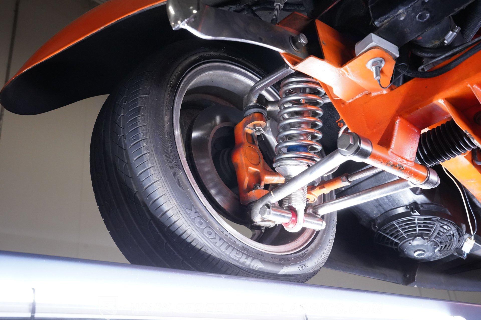 Almost all car enthusiasts have fantasized about owning a beautiful old-school hot rod at some point in their lives. The reason most don't follow through is that the time commitment and the constant trial-and-error are often far too daunting. That's why when a car like this 1933 Ford 3-Window Coupe Street Rod comes along, it's worth taking some time to see how much effort and time have been invested in it for you, no work required. With its full Orange Flame repaint, upgraded tri-bar headlights, unique side flame waves, and classic suicide doors, this vibrant coupe is sure to turn heads wherever it goes. Inside, we find a beautifully appointed and fully custom tan leather interior. A Budnik custom billet steering wheel sits atop a matching tilt column. Just beyond that wheel sits a digital readout for the Wild Card electronic fuel injection system, while in the center-dash, we find a trick Dakota Digital gauge cluster. A custom center console, home to the floor-mounted Lokar shifter, completes the look. What you don't see right away are the window buttons, nor the hidden AM/FM/CD sound system, nor the fully finished trunk and included briefcase. Finally, the addition of air conditioning puts a bow on this custom cozy cabin, making it a dream to drive near or far. Prop open that steel hood, and you're treated to a clean and full engine bay featuring a 350 cubic-inch Ram Jet V-8 engine that utilizes the aforementioned EFI on the intake side, while a set of shorty headers eliminates spent gases via a dual exhaust capped off with Xcelerator mufflers. That power is routed through a 700R4 three-speed automatic transmission before being sent out to the nine-inch rear end which transfers those ponies to the pavement via a set of staggered chrome five-spoke rims measuring 16 inches up front and 17 inches in the rear. HIGHLIGHTS: Full Orange Repaint Custom Side Flame Waves Upgraded Tri-Bar Headlights Ram Jet 350 CID V8 Wild Card EFI Shorty Headers Dual Exhaust Xcelerator Mufflers 700R4 Three Speed Auto Lowered suspension Tubular Front A-Arms Multi-Link Jaguar Style IRS Coilovers Four Wheel Power Discs Inboard Rear Brakes Four Piston Calipers Custom Leather Interior Bucket Seats Power Windows Custom Wheel Tilt Column AC AM/FM/CD This 1933 Ford 3-Window Coupe Street Rod rides on a custom lowered suspension consisting of a tubular A-arm front, Jaguar-style multi-link independent rear, and coilovers all around. Four-piston power disc brakes at both the front and inboard rear units make it easy to rein in speed whenever necessary, and instill a sense of confidence that this car is ready to go, no matter what the road ahead looks like. So, if you've always wanted a true old-school hot rod, but don't have the time or patience to put one together piece by piece, then this beautifully put-together street rod is exactly what you've been waiting for. Don't wait, call today!
