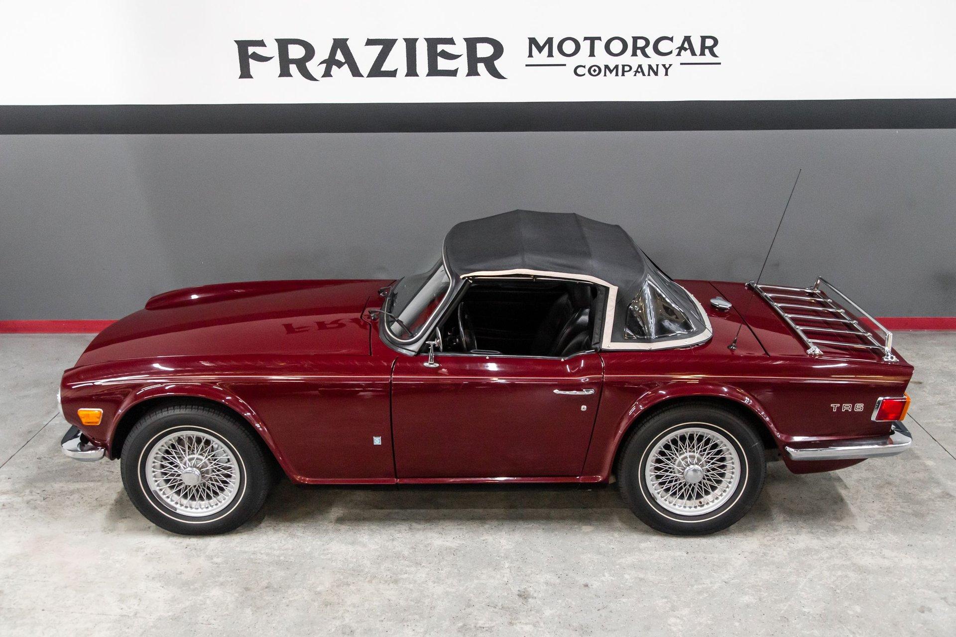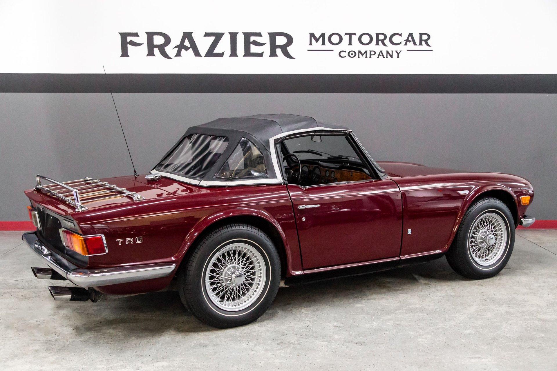 This restored TR6 is an ABSOLUTE STUNNER.!!! The combination of the beautiful paint ,fresh interior ,upgraded beautiful dash, as well as over 150 lbs per cylinder makes this a very attractive package that should be sought after !! The car sits well with new front end rebuilds and suspension refresh. The run and drive is exemplary-TIGHT ! STRONG ! RESPONSIVE !! This is the bar in which all TR6 cars should strive for. The complete package makes for a car that one should seek. Review the 96 pictures posted .If the car holds interest contact Jeff Frazier at 615-971-4409 or email jeff@jpfrazier.com. The car is located 25 mile east of downtown Nashville Tn in our indoor facility. Independent inspections are welcomed and encouraged. This and other European Collectibles may be reviewed at WWW.JPFRAZIER.com E-DISCLAIMER: This vehicle description is accurate to the best of our knowledge at the time posted All information provided is true to our best efforts, but not guaranteed, and we assume no liability for any omissions or errors. We do sell classic cars in a variety of conditions, and may not see every imperfection or issue per vehicle. Our cars are sold as-is and without warranty. Price does not include state, city, or county taxes, title, license, registration, or shipping. Independent inspections by marque specialists are welcomed and encouraged as all sales are final